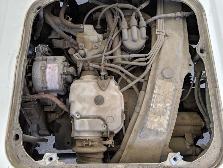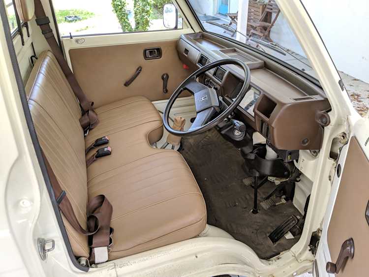This first generation Acty truck is powered by a 2 cylinder EH engine, a 4 stroke liquid cooled power plant. Based on one bank of cylinders from the fantastic Honda Gold Wing GL1000’s guts, you can tell everyone your truck is powered by half a Gold Wing. This engine is placed midship, just in front of the rear wheels. That’s right, this tiny classic Honda truck shares a lot with the NSX as Both are mid engine, manual transmission, rear wheel drive vehicles.