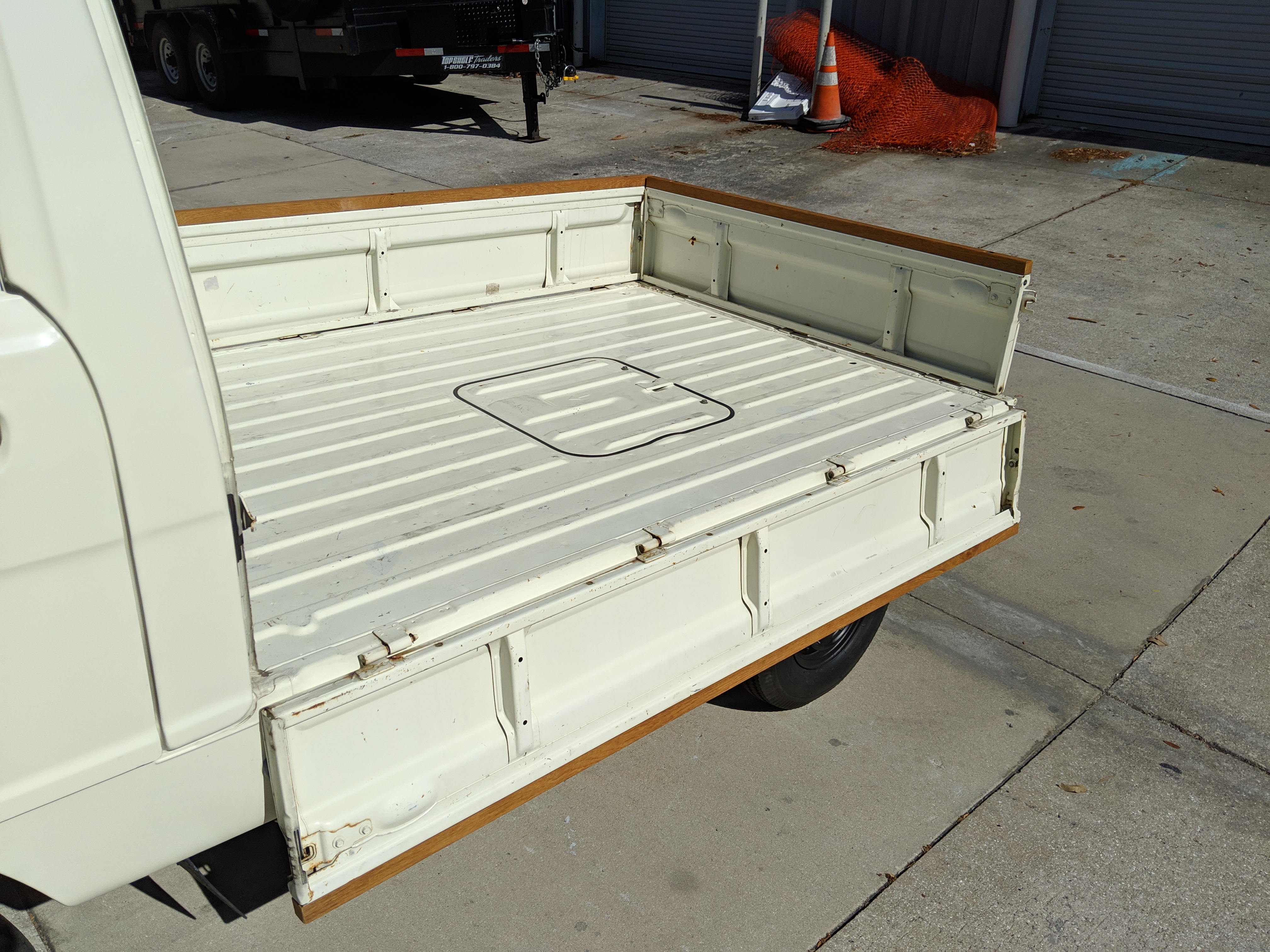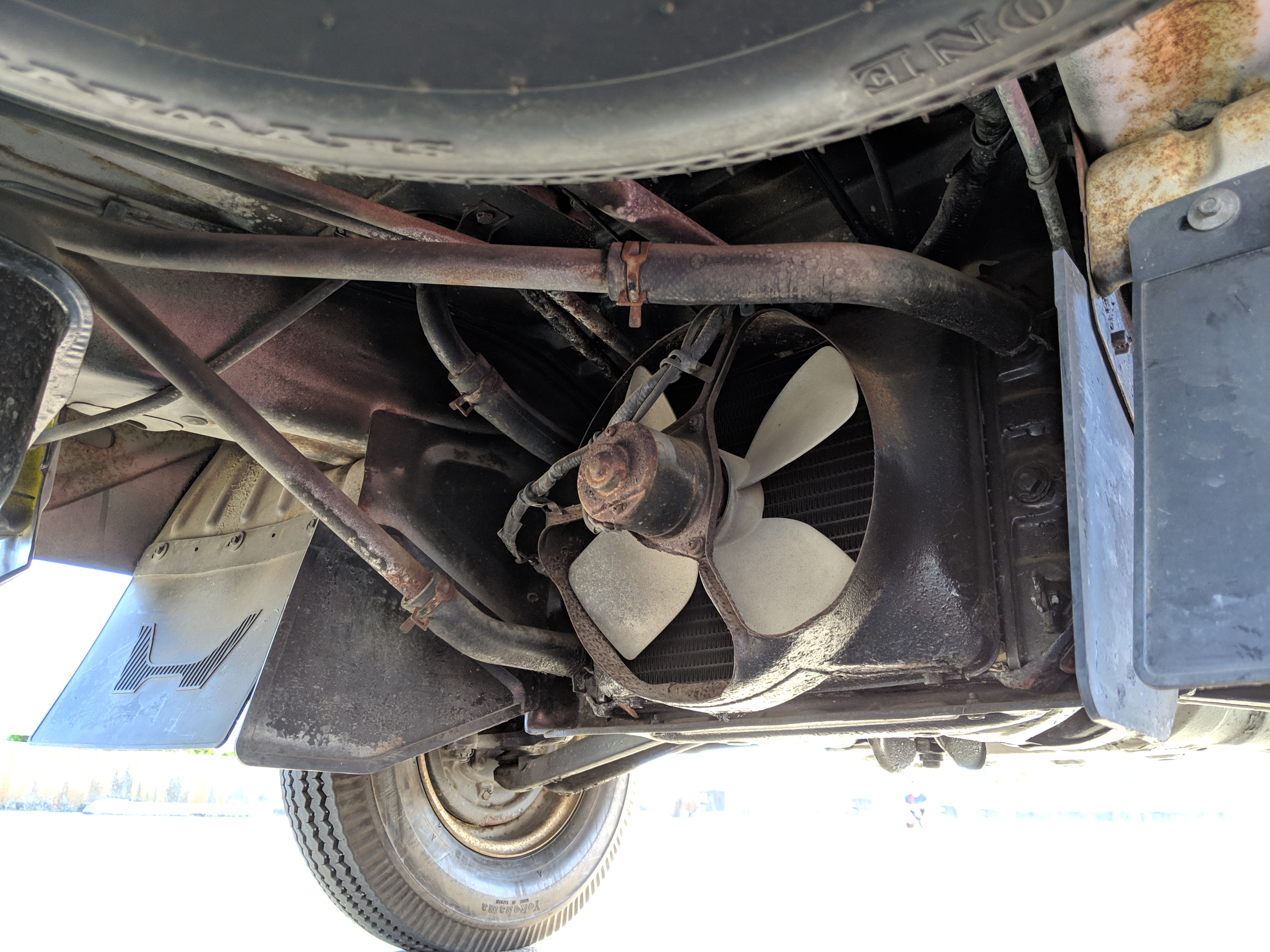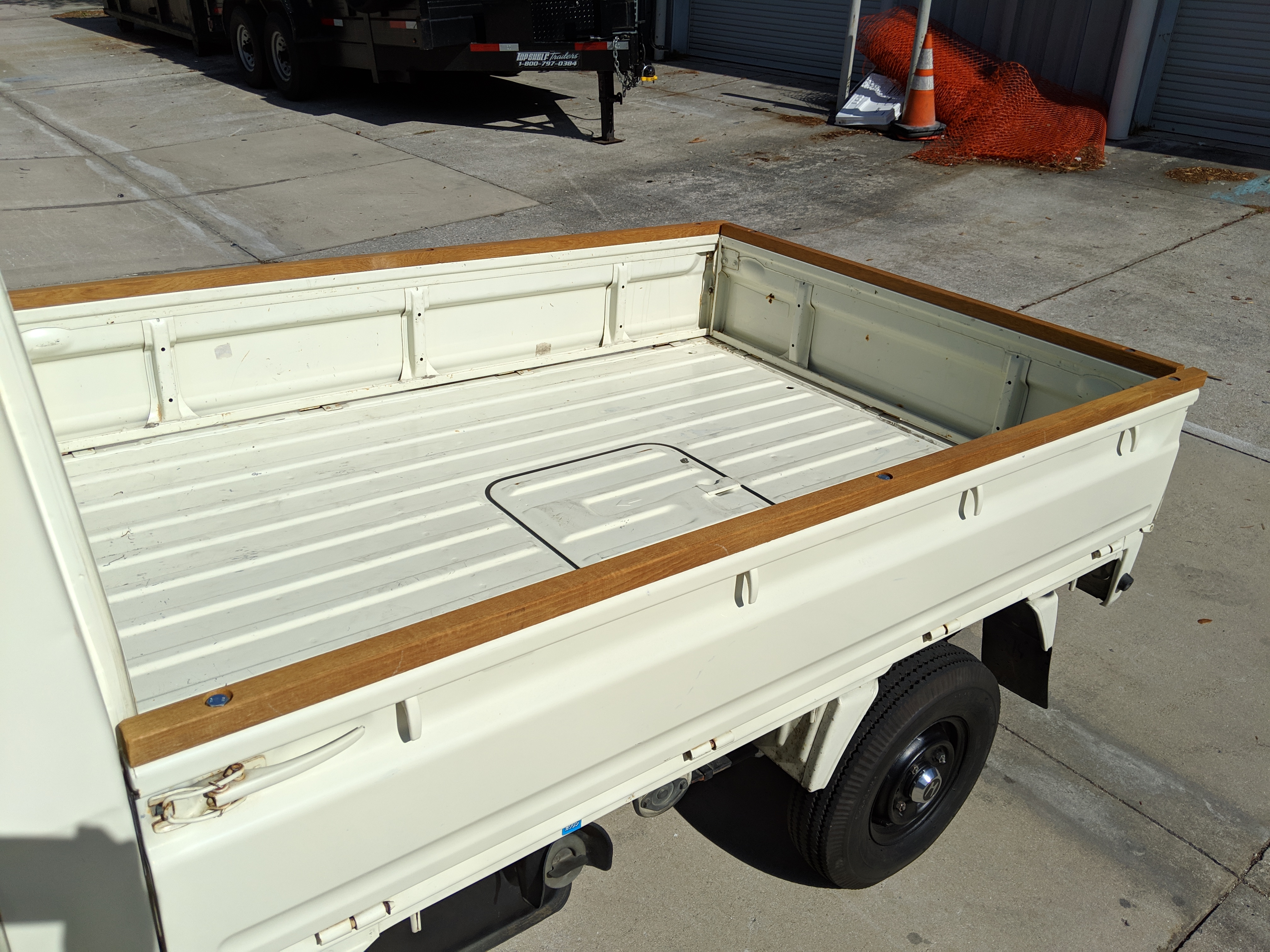 Styling is classic Honda. Round headlights set in black trim with amber indicators. In the center is the classic HONDA name, white on black. Right side has the battery compartment and spare wheel, left side has the fuel tank, coolant overflow tank, oil filler neck and oil dipstick. The engine sits underneath a panel that be accessed from the bed, which is why the dipstick and oil fill neck are not underneath the ‘hood’, with the dipstick being accessed from the left rear wheel well. Original 10” wheels wrapped in new Yokohama tires complete the look.