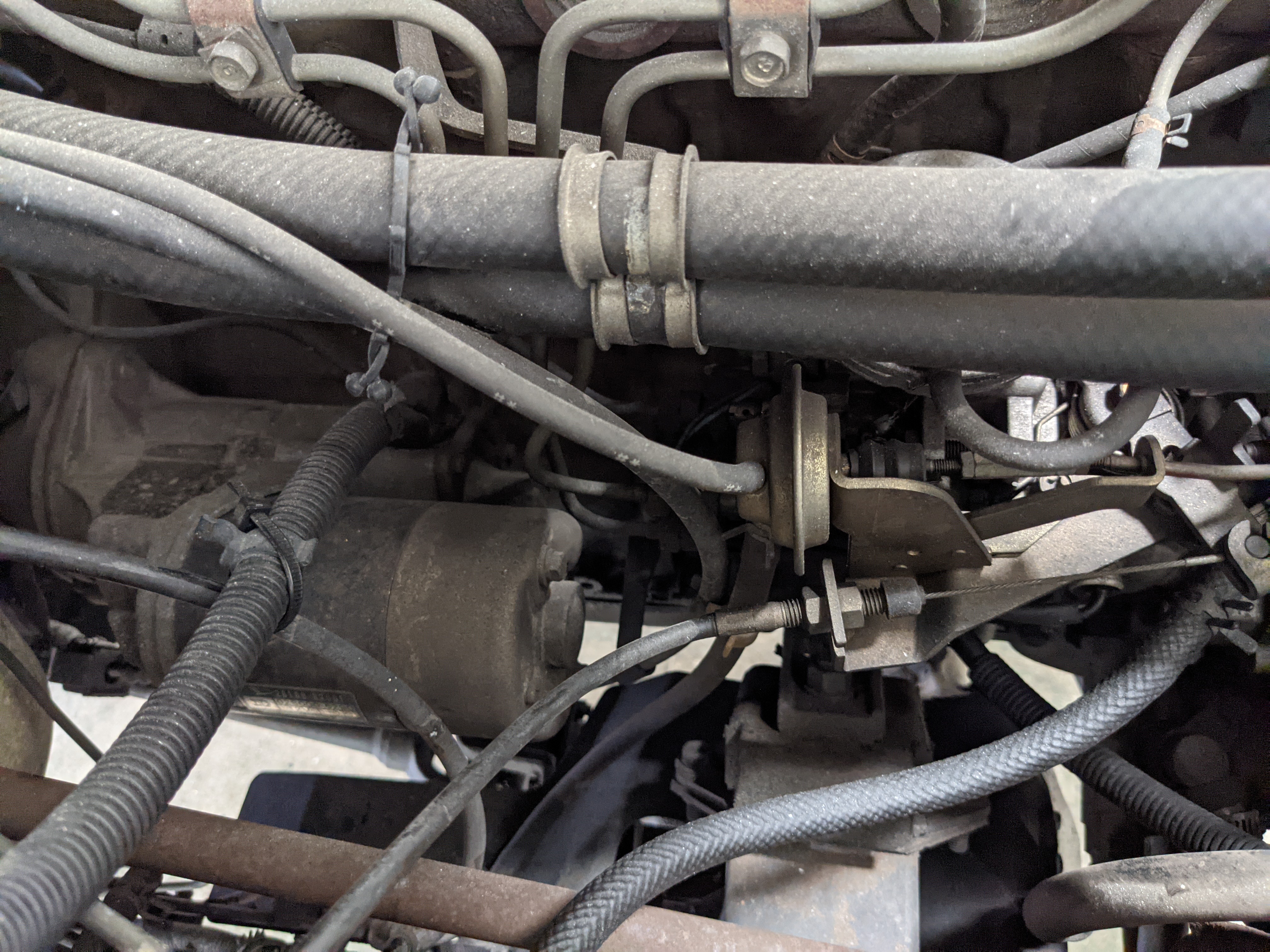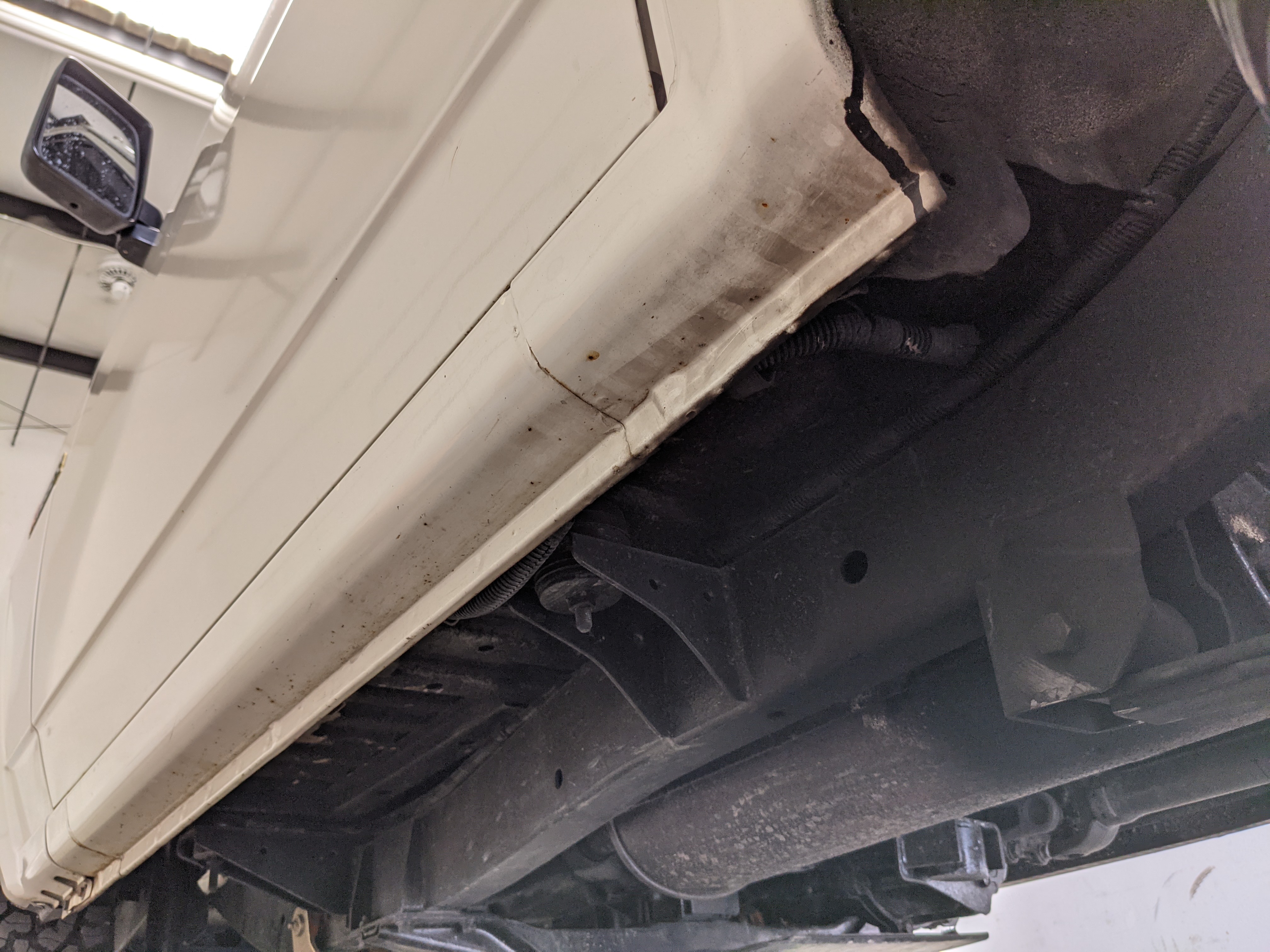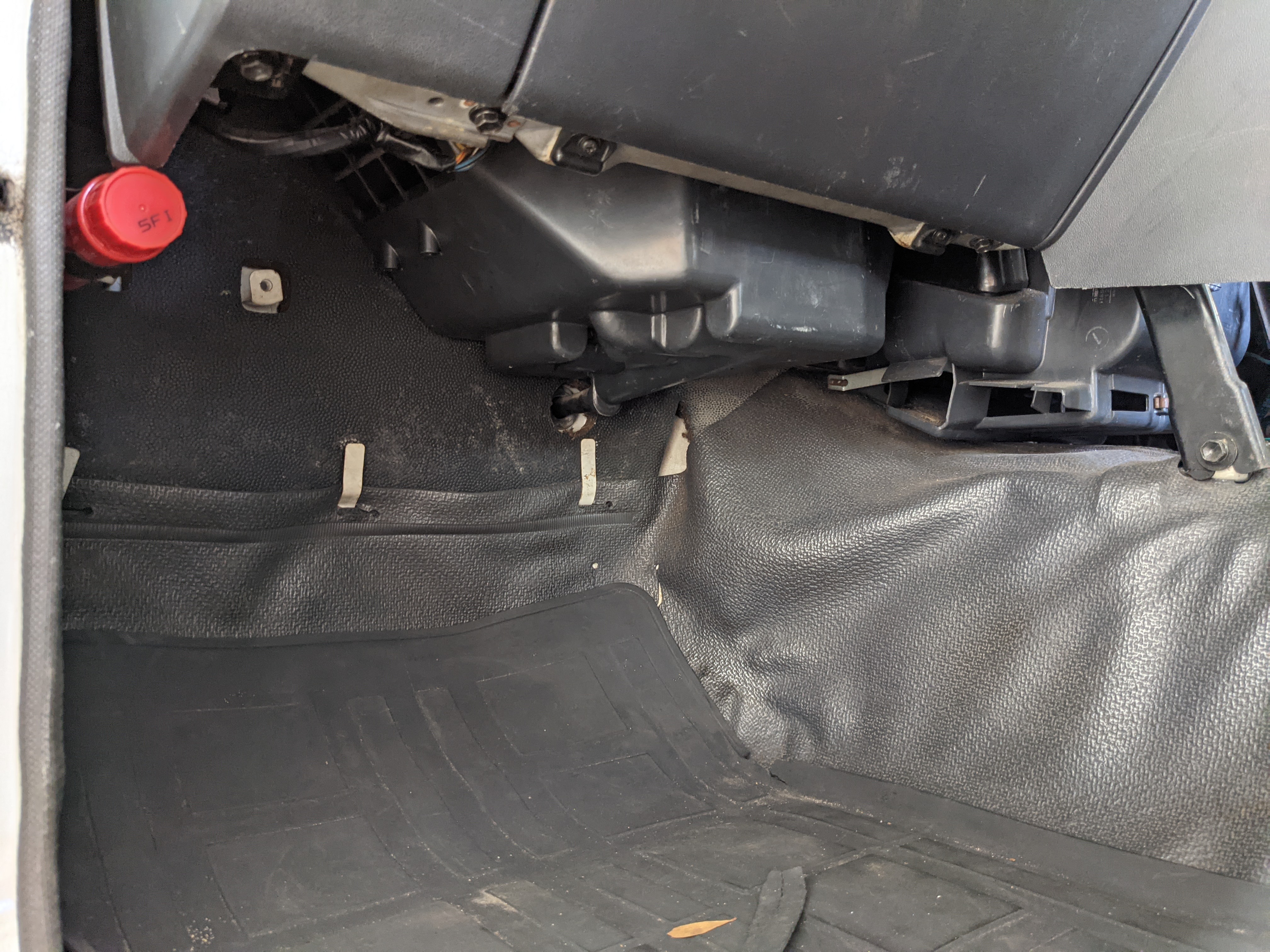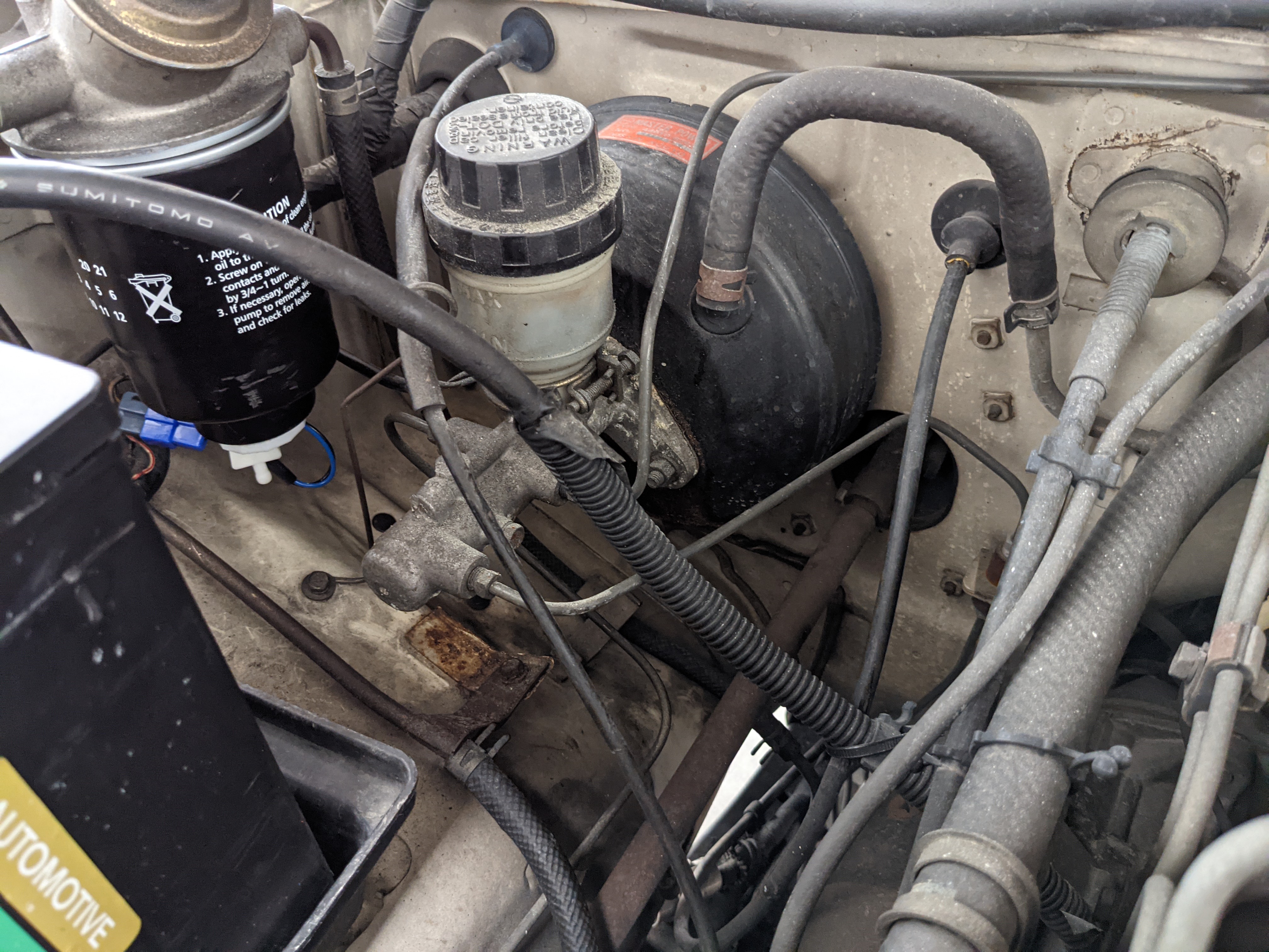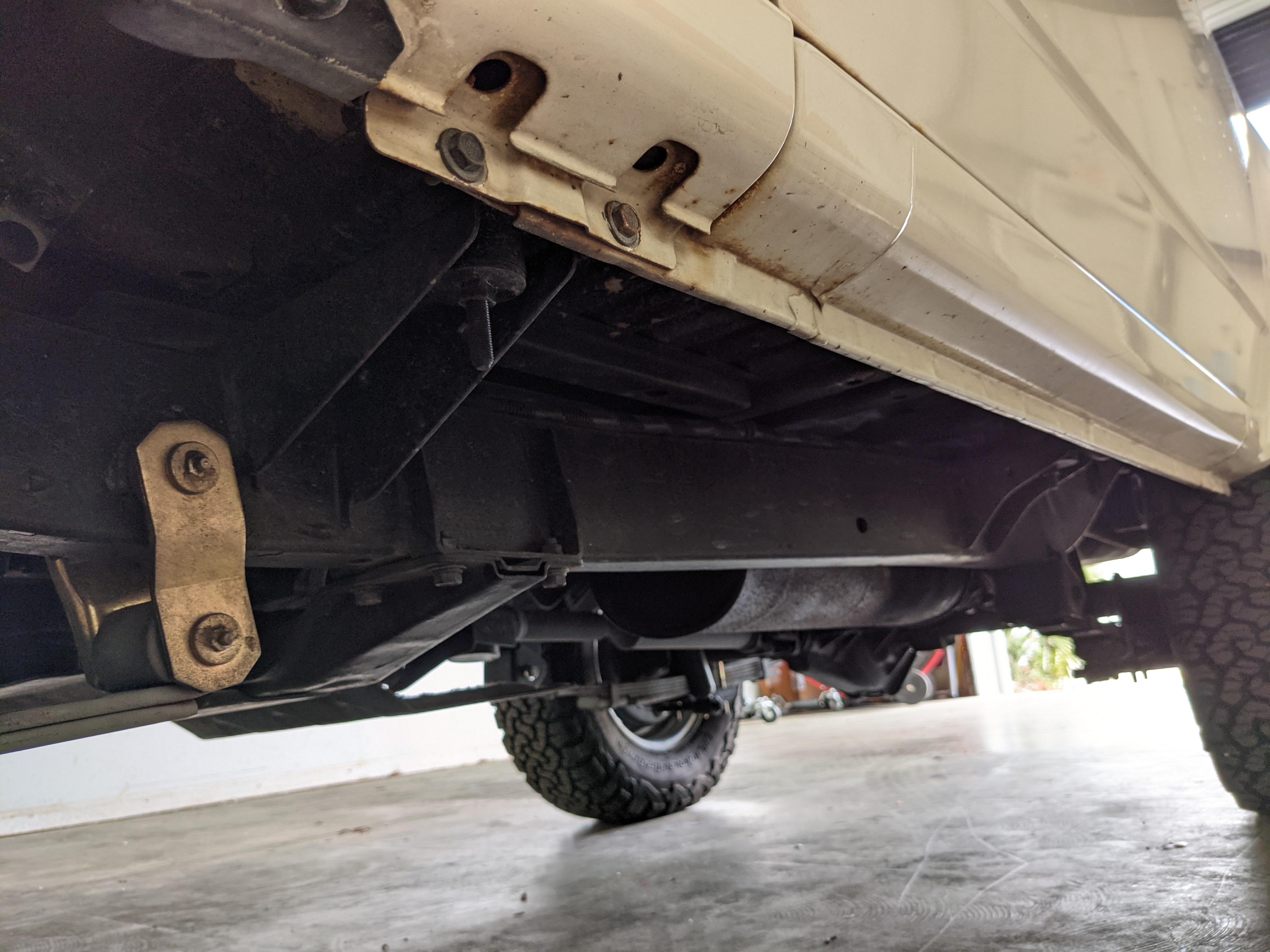 Exterior is in quite excellent shape for being 37 years old. Single stage white paint shines well, with various scrapes and chips in various places. These early Ruggers have an extremely square and blocky design with a distinct look placing it right in the early 80s. We personally drive it as you see here, back windows rolled up safari-style and open but the roof closed, AC on if weather demands. All five original wheels are here, wrapped in BF Goodrich KO2s installed last year in 2020 (including the spare). Both front and rear center caps are present as well. New brake pads and calipers were also installed. If you peek underneath you will find a body on frame design, with the frame itself being in absolutely perfect shape, with new Lesjöfors leaf springs at all four corners, with new Monroe absorbers as well, with new bushings in all suspension components. Solid axles front and back, this is a quite tough little offroader. Pop the hood and you’re greeted with Daihatsu’s own DL-50 2.8 liter turbo diesel engine. Completely cast iron, completely mechanical injection, with a set of timing gears under an alloy timing cover. It is a peppy, mechanically loud, immortal power plant. Later revisions of this engine moved to a typical rubber timing belt, but this Rugger, being so early, has the old style timing gear setup. Battery is brand new as of 9/2020. Fuel filter is also new.