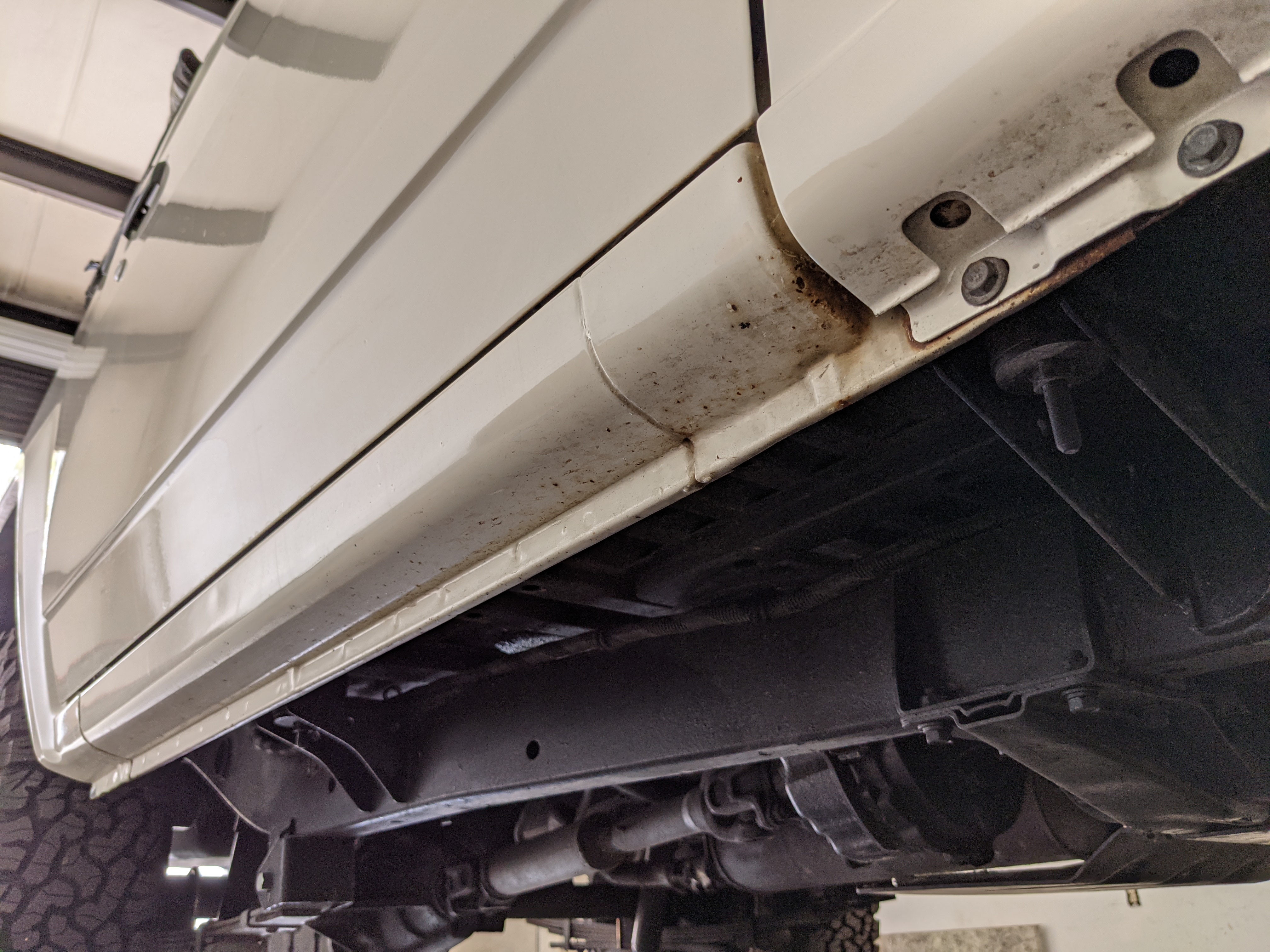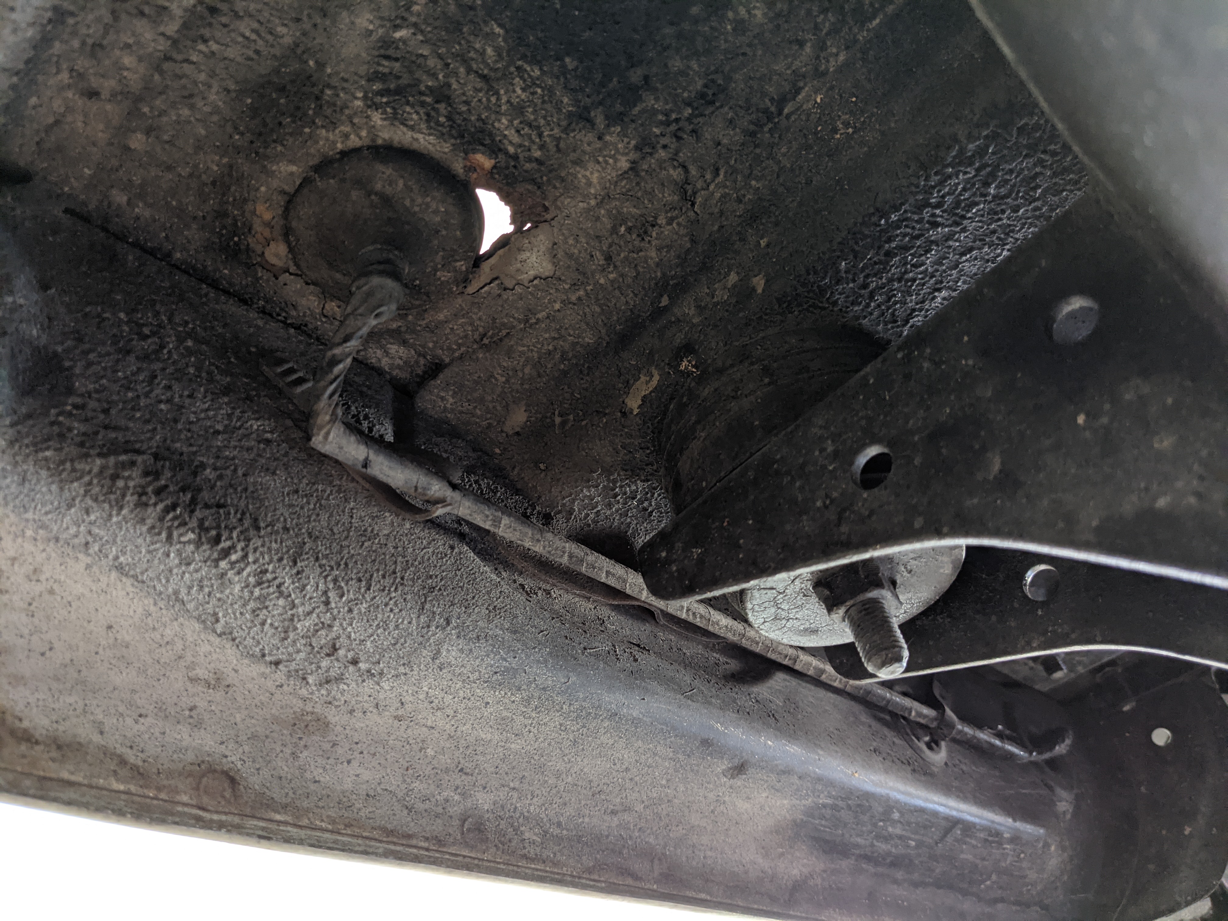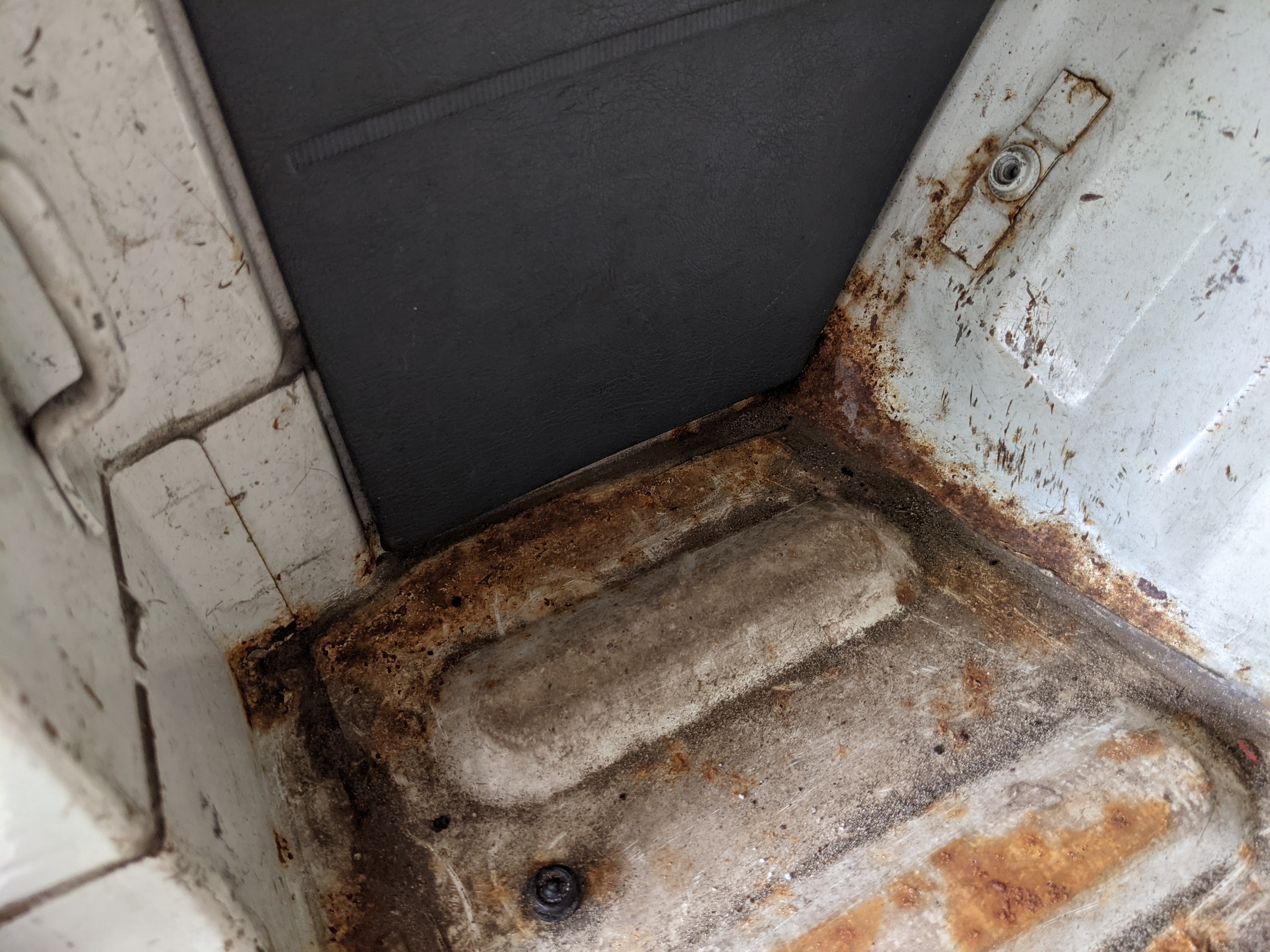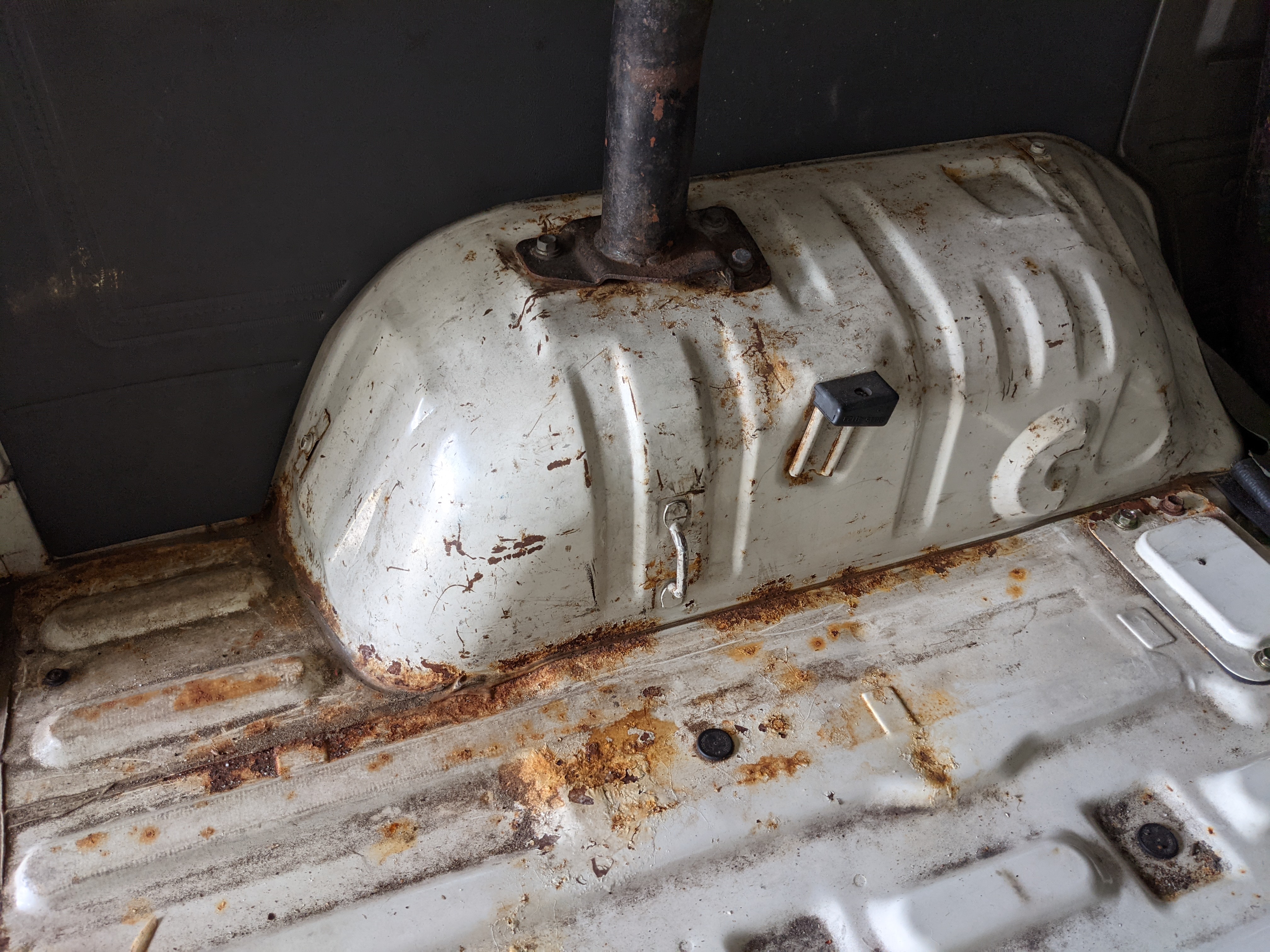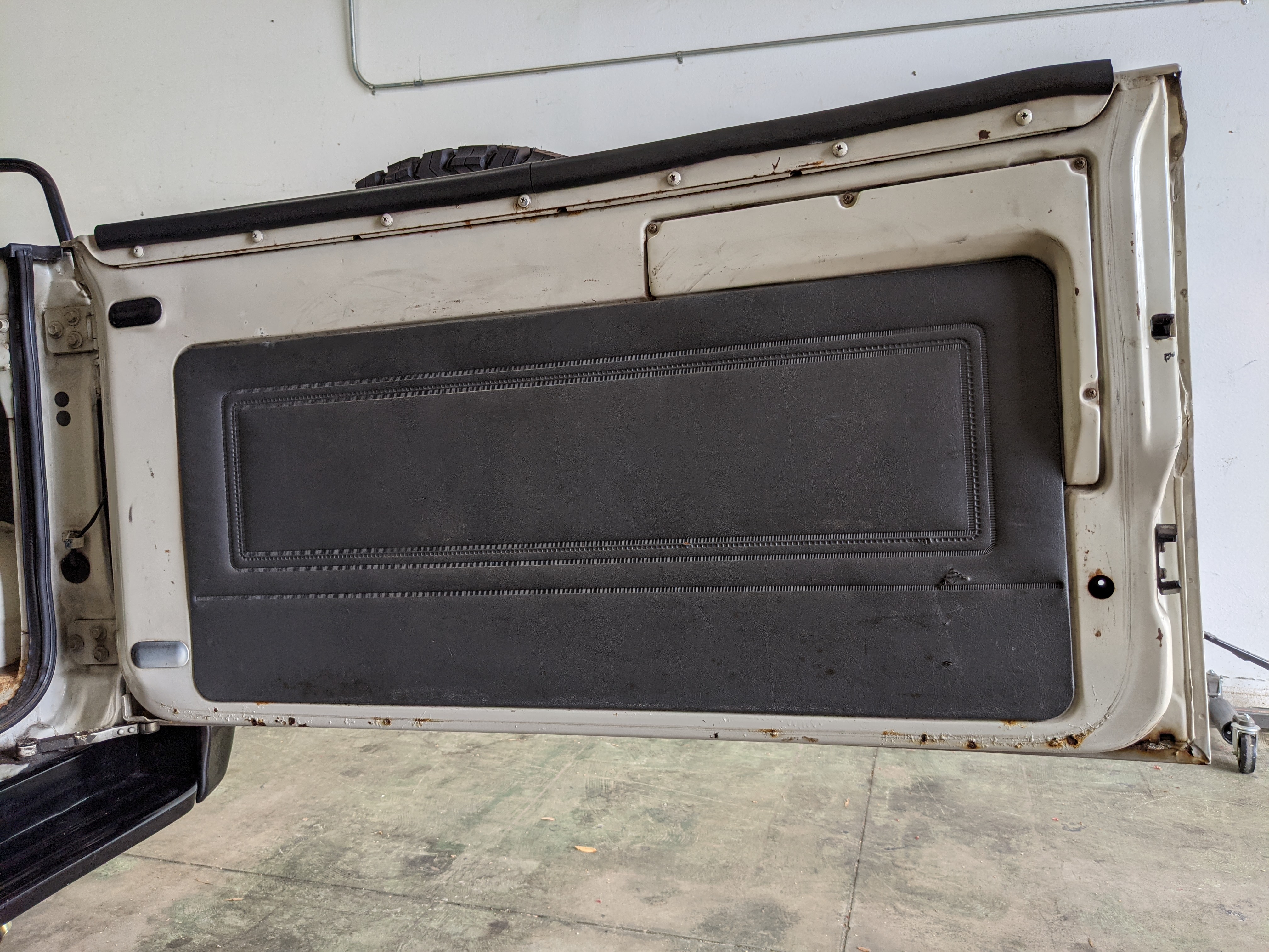 Condition-wise it’s a perfect driver. Everything works, drives straight and true, does not leak nor burn oil and heck, even for being an 80s diesel it doesn’t smoke any more than an 80s diesel does under load. Mechanically it’s fantastic, hence why it’s been our daily for so long. Cosmetically it does have issues, which are all pictured below. Major issues are there are a few holes rusted through in the floor, both seats are split at the seams exposing the foam and springs, with the driver’s seat being in poor shape. We simply slipped some seat covers over them and drove it anyway. The top needs to be remade as, It keeps the sun off of you and doesn’t leak so much as through the roof, but the canvas is so old that it’s shrunk enough that the windows can no longer reach their snaps in order to fully close the rear sides. The top is complete, just no longer 100% functional. It can be removed without issue for the full top-down experience. Rear cargo area has a large amount of mostly surface rust.