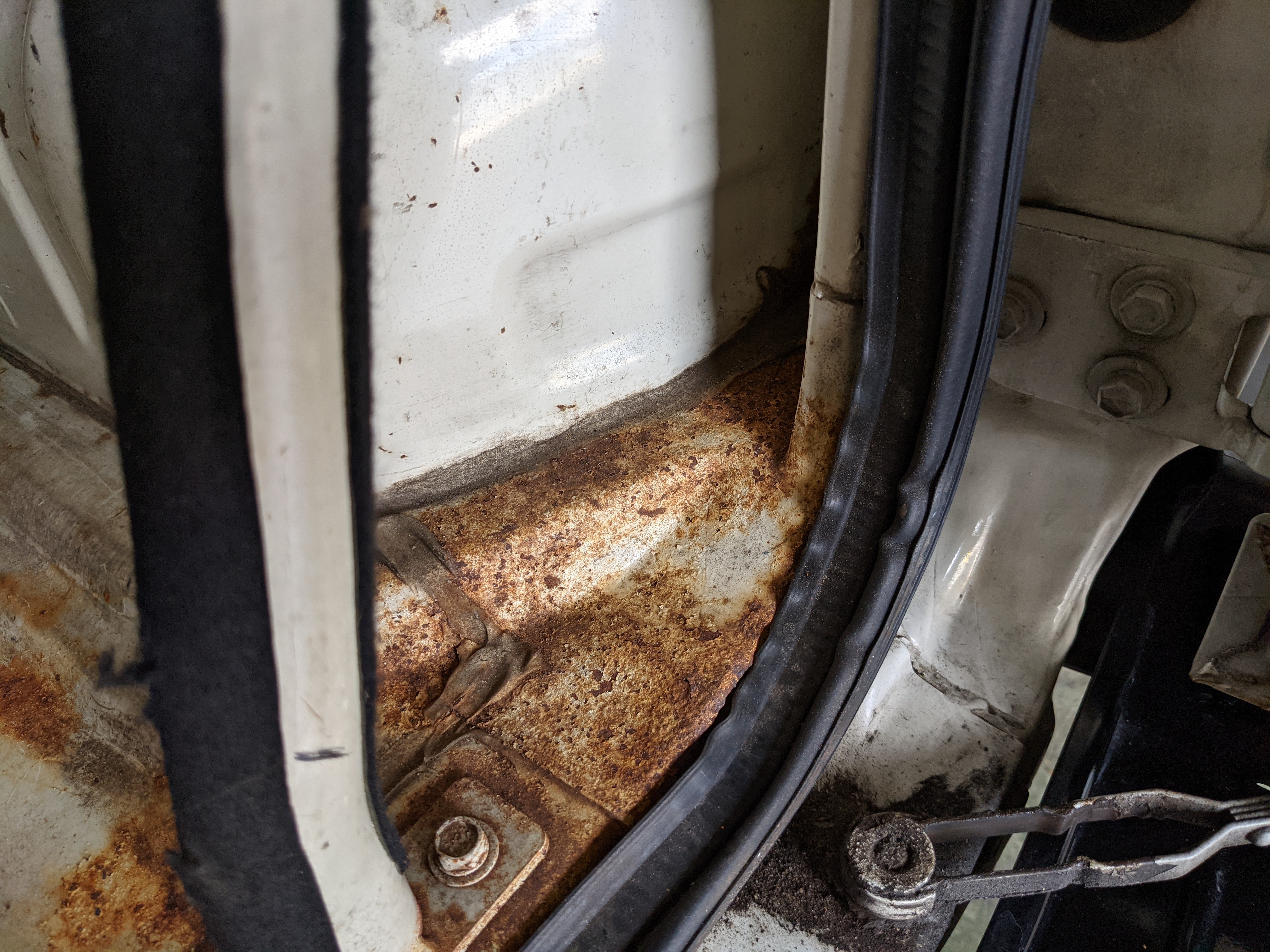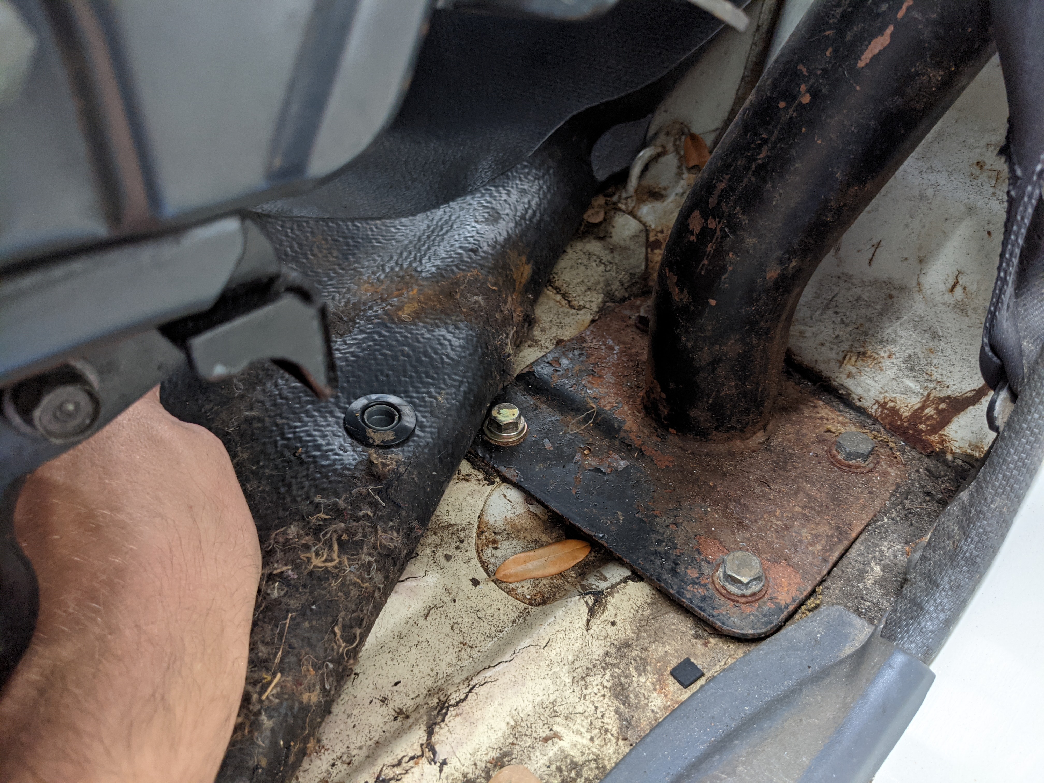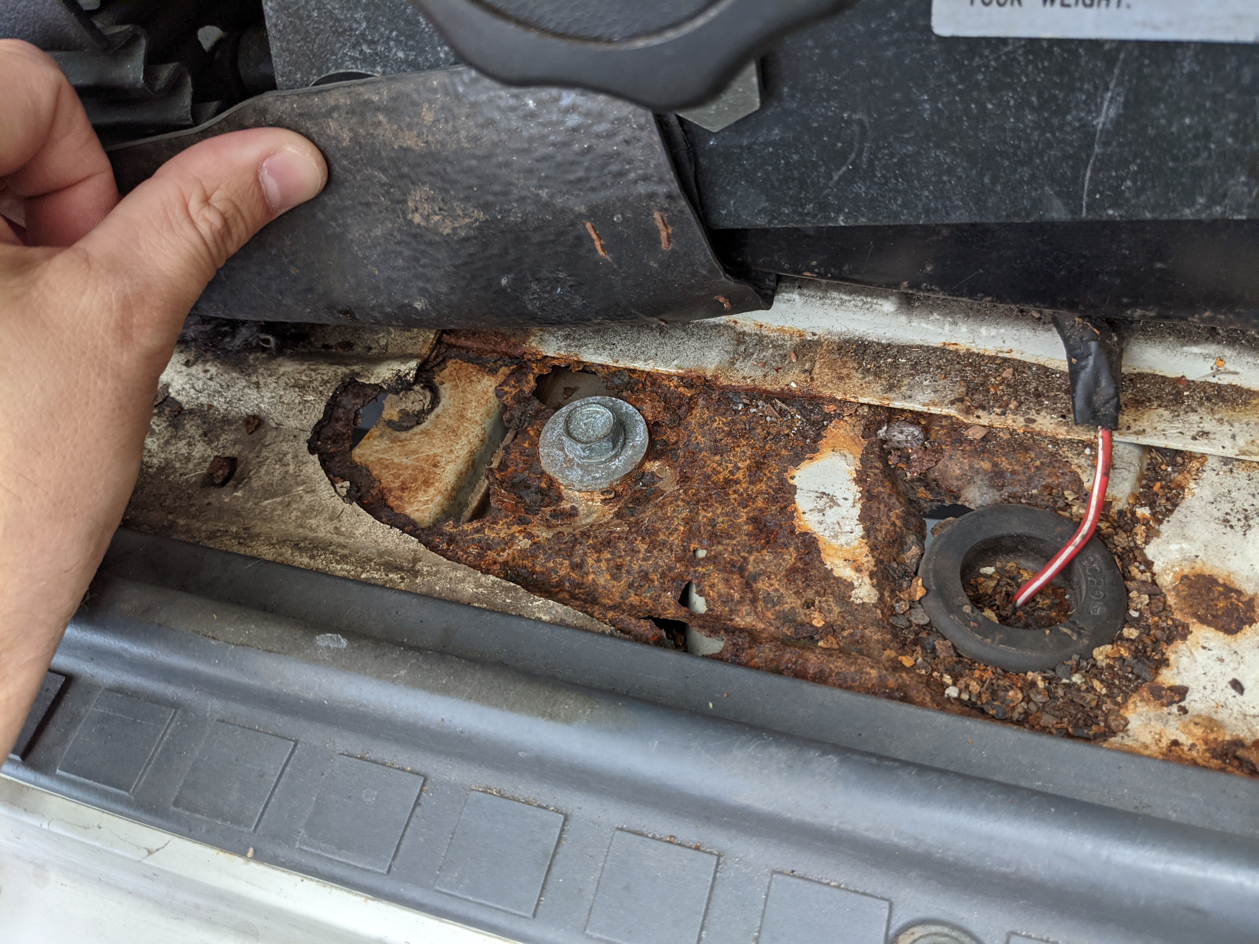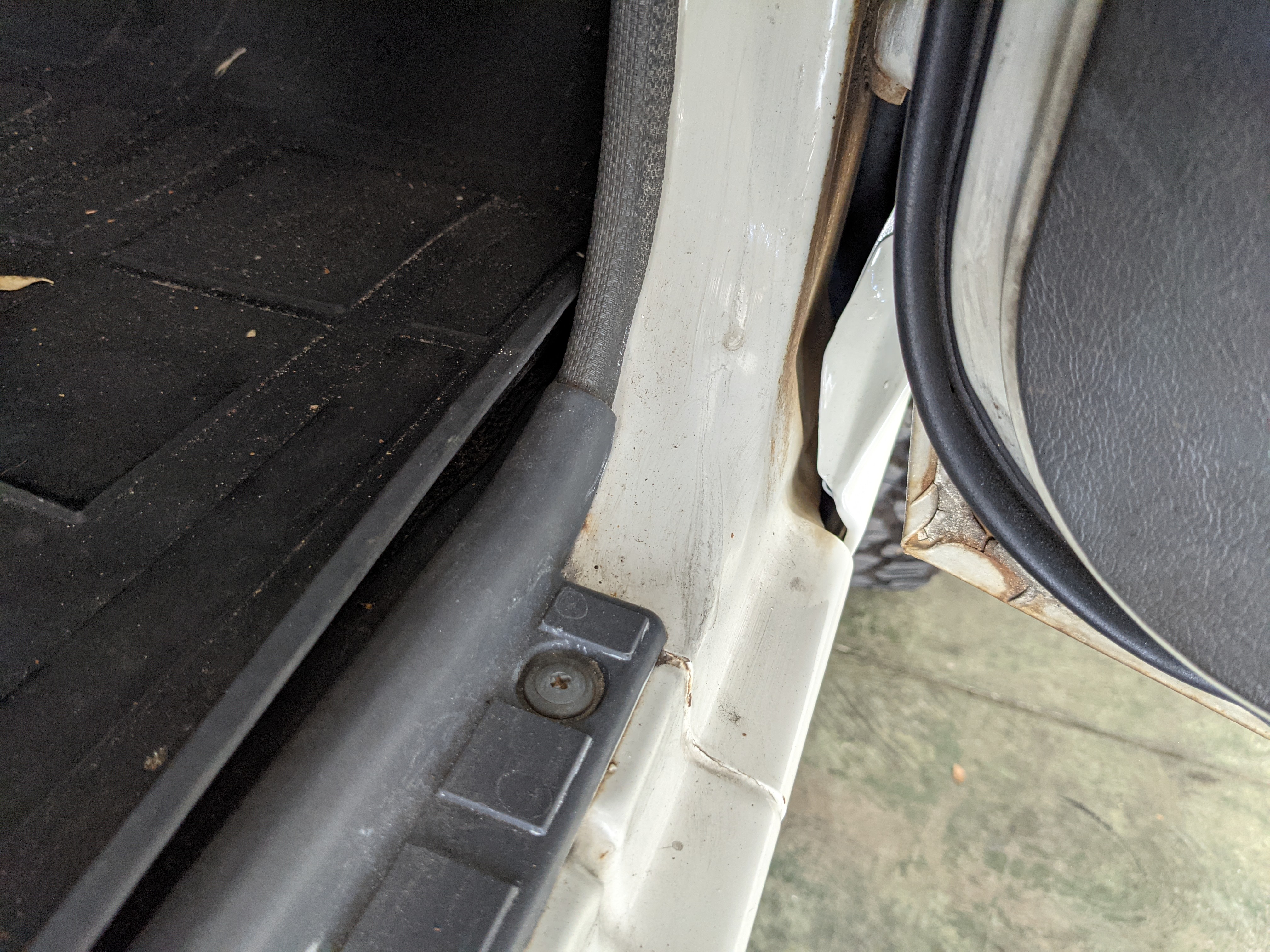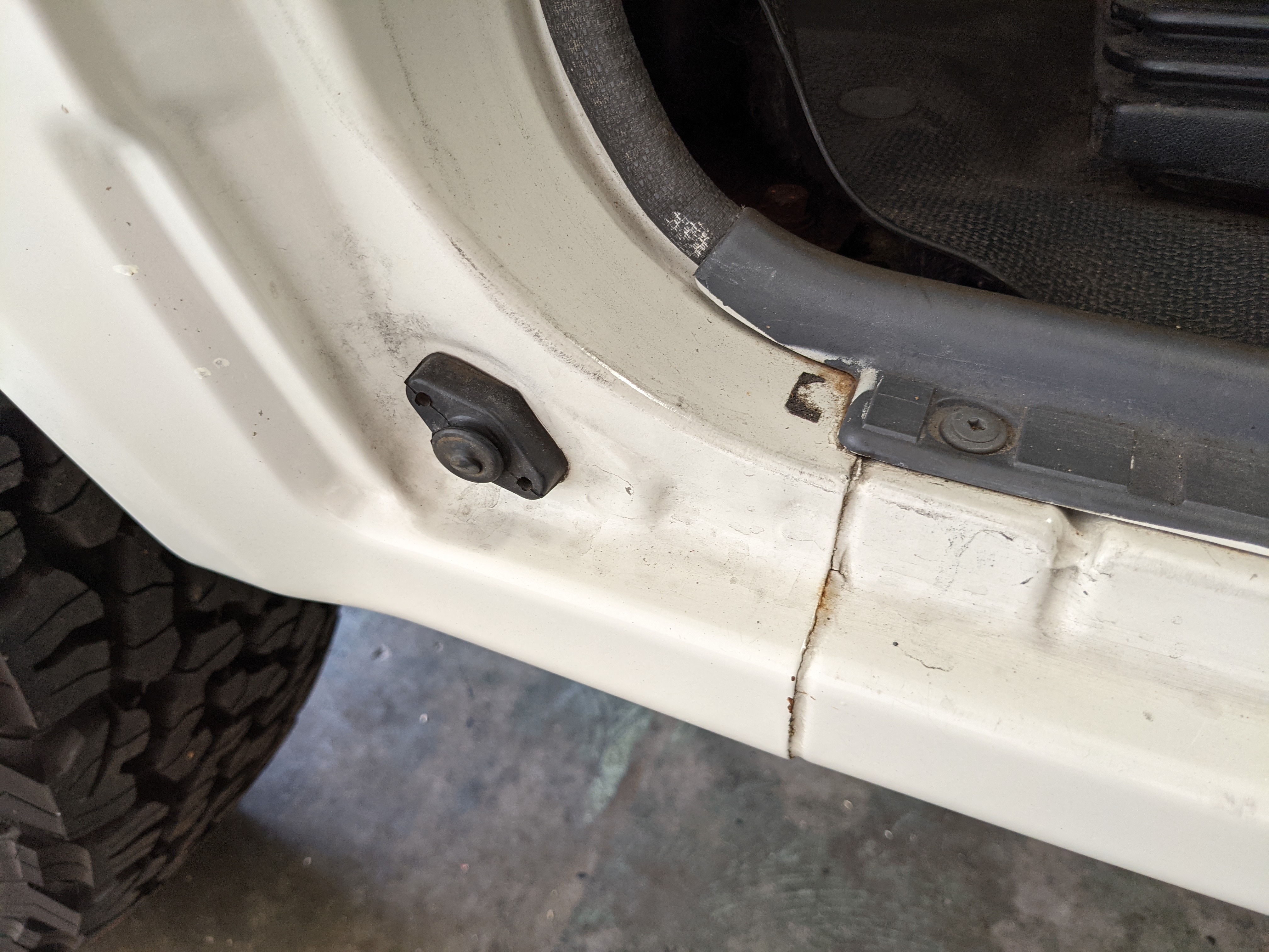 Condition-wise it’s a perfect driver. Everything works, drives straight and true, does not leak nor burn oil and heck, even for being an 80s diesel it doesn’t smoke any more than an 80s diesel does under load. Mechanically it’s fantastic, hence why it’s been our daily for so long. Cosmetically it does have issues, which are all pictured below. Major issues are there are a few holes rusted through in the floor, both seats are split at the seams exposing the foam and springs, with the driver’s seat being in poor shape. We simply slipped some seat covers over them and drove it anyway. The top needs to be remade as, It keeps the sun off of you and doesn’t leak so much as through the roof, but the canvas is so old that it’s shrunk enough that the windows can no longer reach their snaps in order to fully close the rear sides. The top is complete, just no longer 100% functional. It can be removed without issue for the full top-down experience. Rear cargo area has a large amount of mostly surface rust.