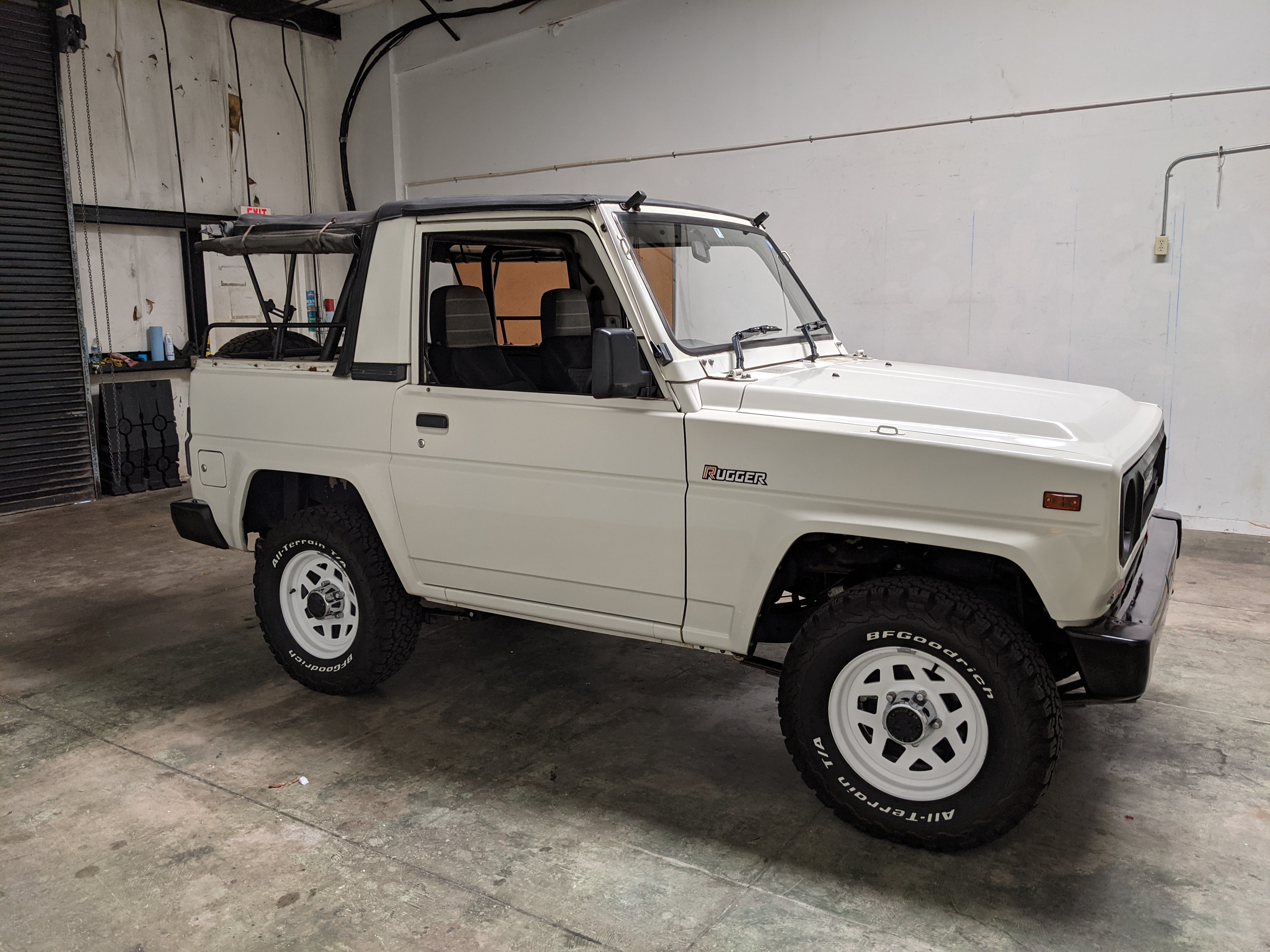 I hope it's clear just how unique, and dare I say, ‘rare’ this vehicle is. There is absolutely nothing like this, Samurais can get a bit close, but Samurais also don’t have 2.8 liter turbo diesels from the factory. It’s rumbly and rattly in all the best ways with a great turbo whistle, with excellent looks that always get a ton of attention when out driving. It makes mundane errands fun adventures, to say nothing of actually taking it off road where it excels. Take the top down, fold the windshield flat and capture all the bugs you can with your teeth. Captures more attention than Broncos or Land Cruisers, more uncommon than an International Scout, but hitting all the same notes. You will most certainly never see another soft-top Rugger like this ever again. I know we won’t.