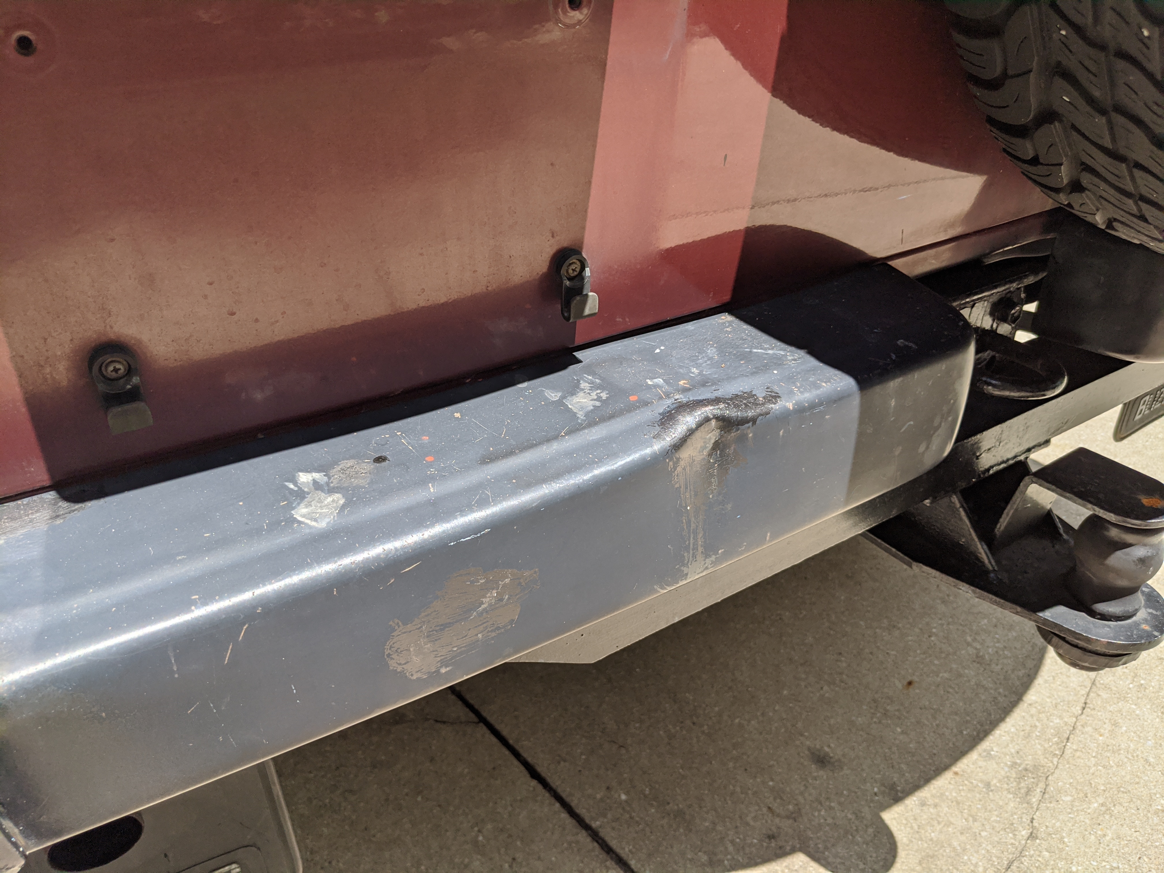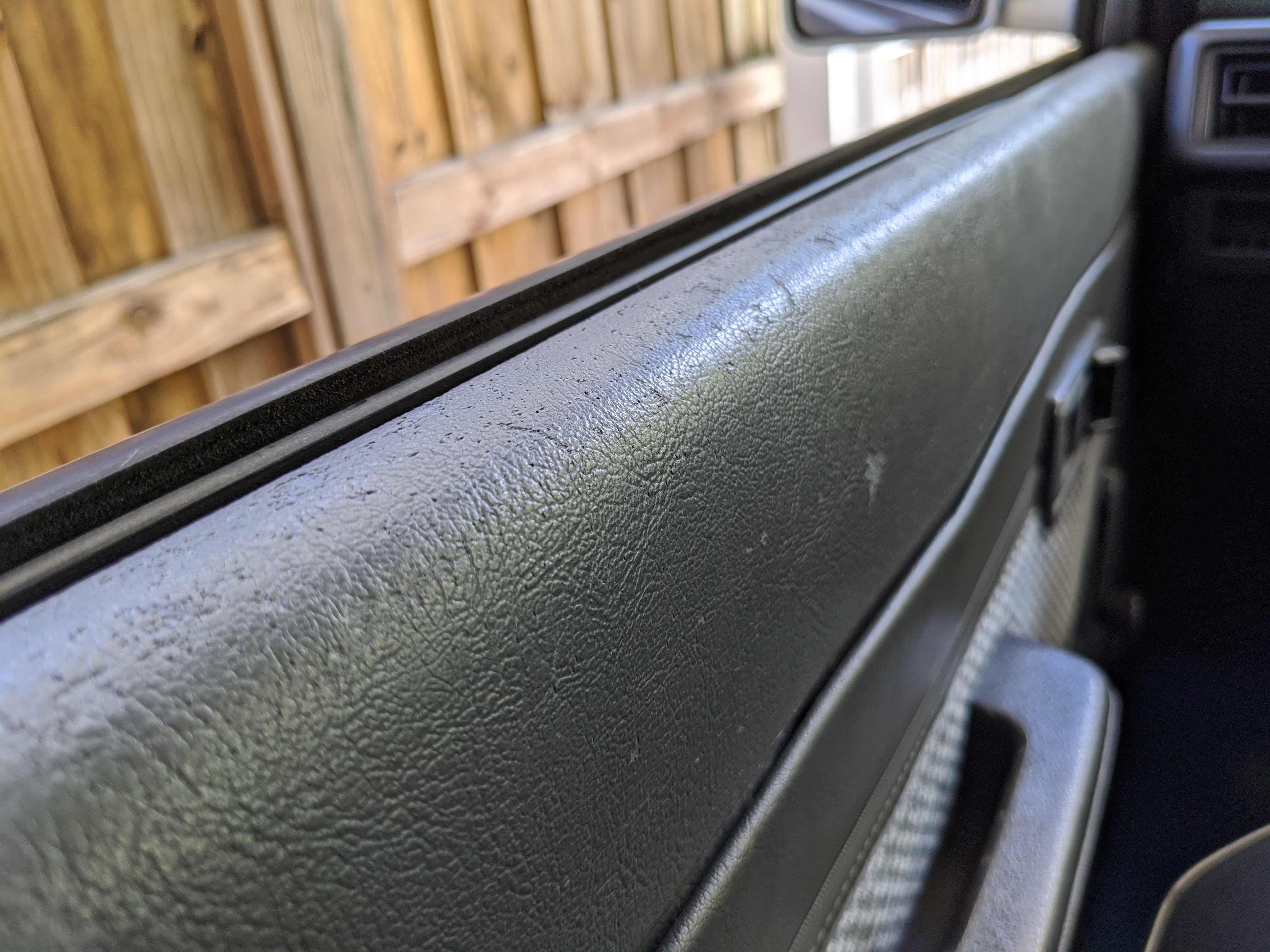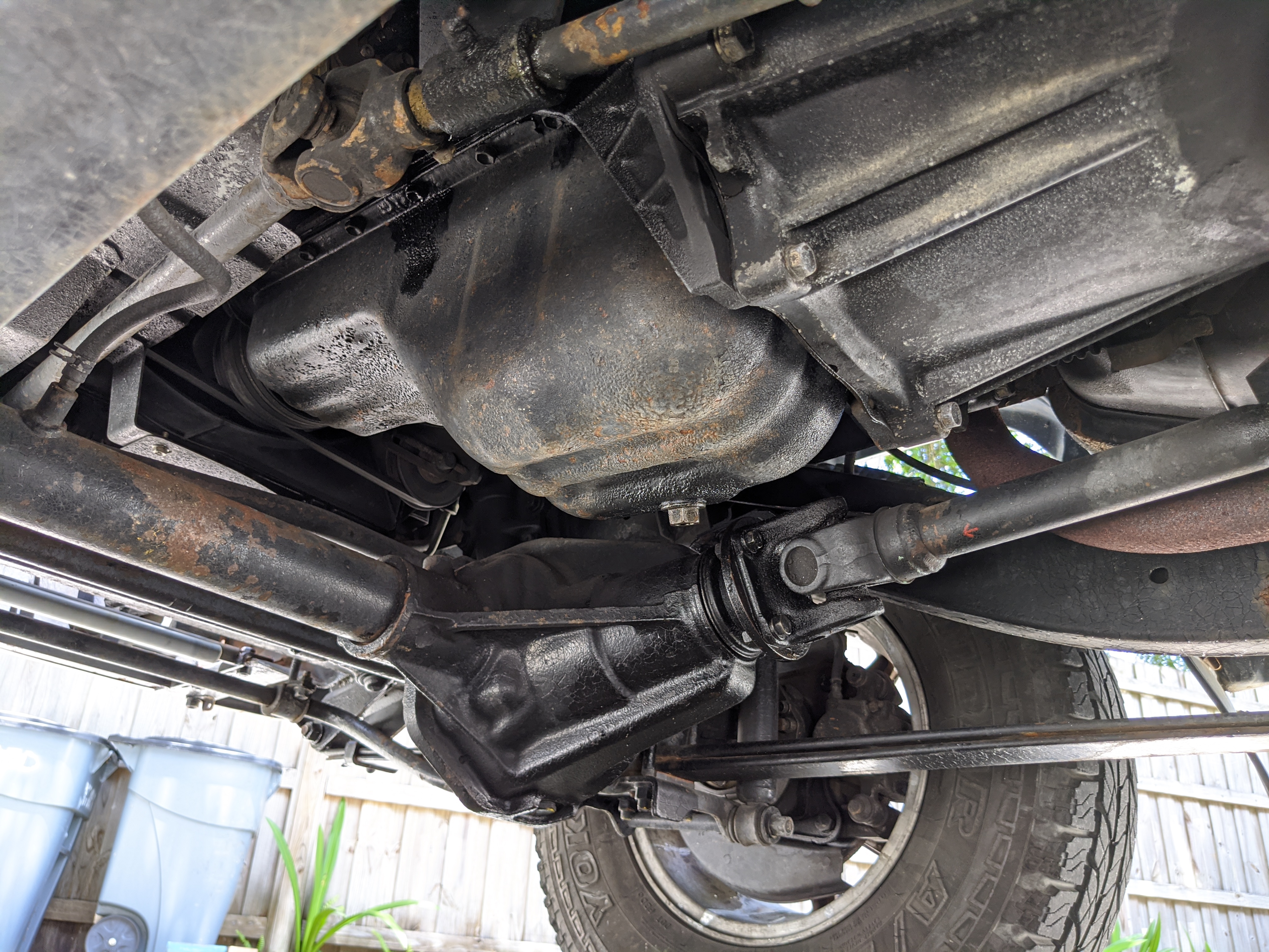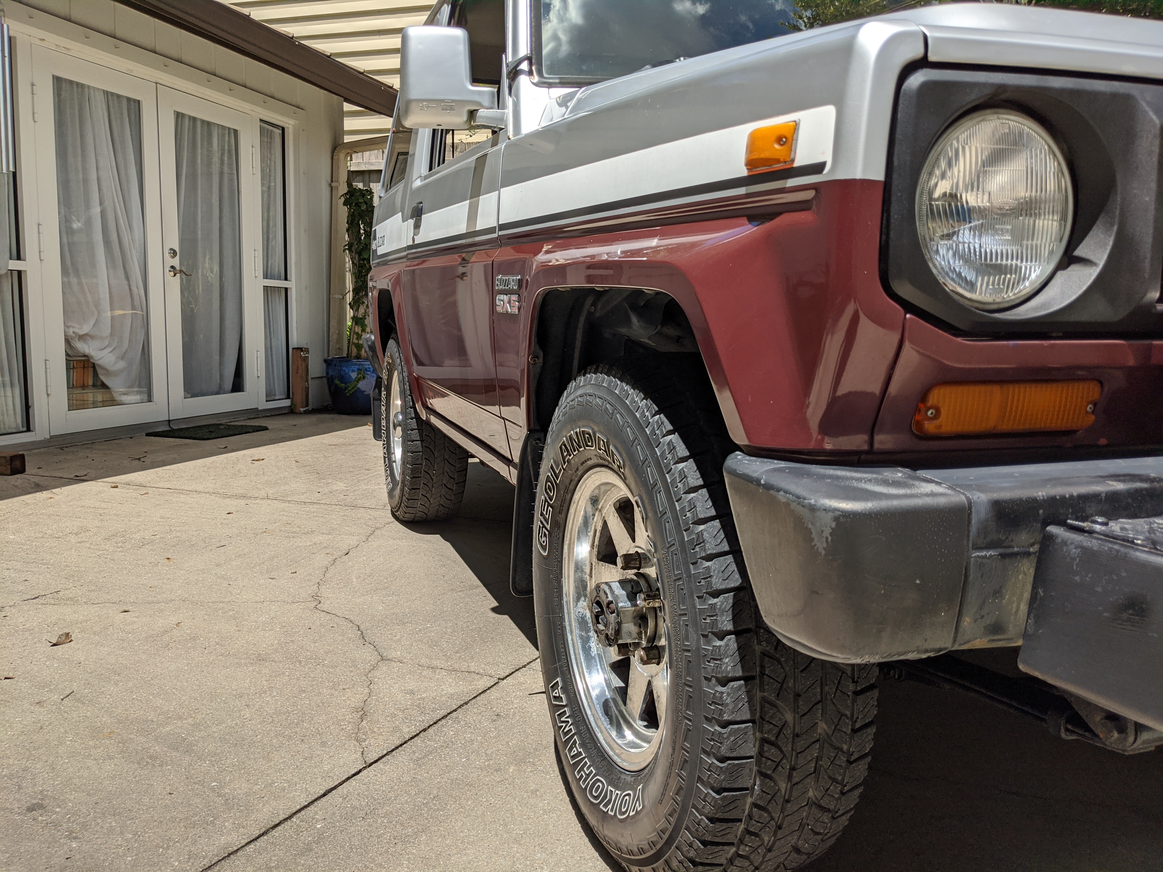 Silver and maroon two-tone paint scheme sets off a retro style, while the decal package pushes it even further. You get ‘Blizzard 4WD’ on each rear quarter panel, with ‘turbo WAGON’ on each door, and two fat ‘BLIZZARD SX5’ badges on each front fender. Up front you get the factory original PTO winch that dominates, with classic block ‘TOYOTA’ in the center of the round headlight-equipped grill with bonus yellow fogs underneath. Included are all 5 original aluminum wheels with ‘TOYOTA’ center caps for the rears. There is also a chassis-mounted rear trailer hitch on the back. The chassis is quite clean and even the exhaust isn’t too bad. There are cosmetic flaws on the exterior, most notably spots of rust and damaged paint on the lower right and left sides of the truck, though it isn’t too serious. The roof has been poorly repainted in a silver that doesn’t quite match and isn’t nearly as good looking as the factory paint. Plastic corner bumpers are faded, there is a dent in the rear bumper, and there are various paint scuffs and scratches all over. The aluminum wheels have aluminum surface corrosion and could really use a grind and polish to be 100%. Tires are older and have agre cracks along the tread, but they do hold air and are balanced.
