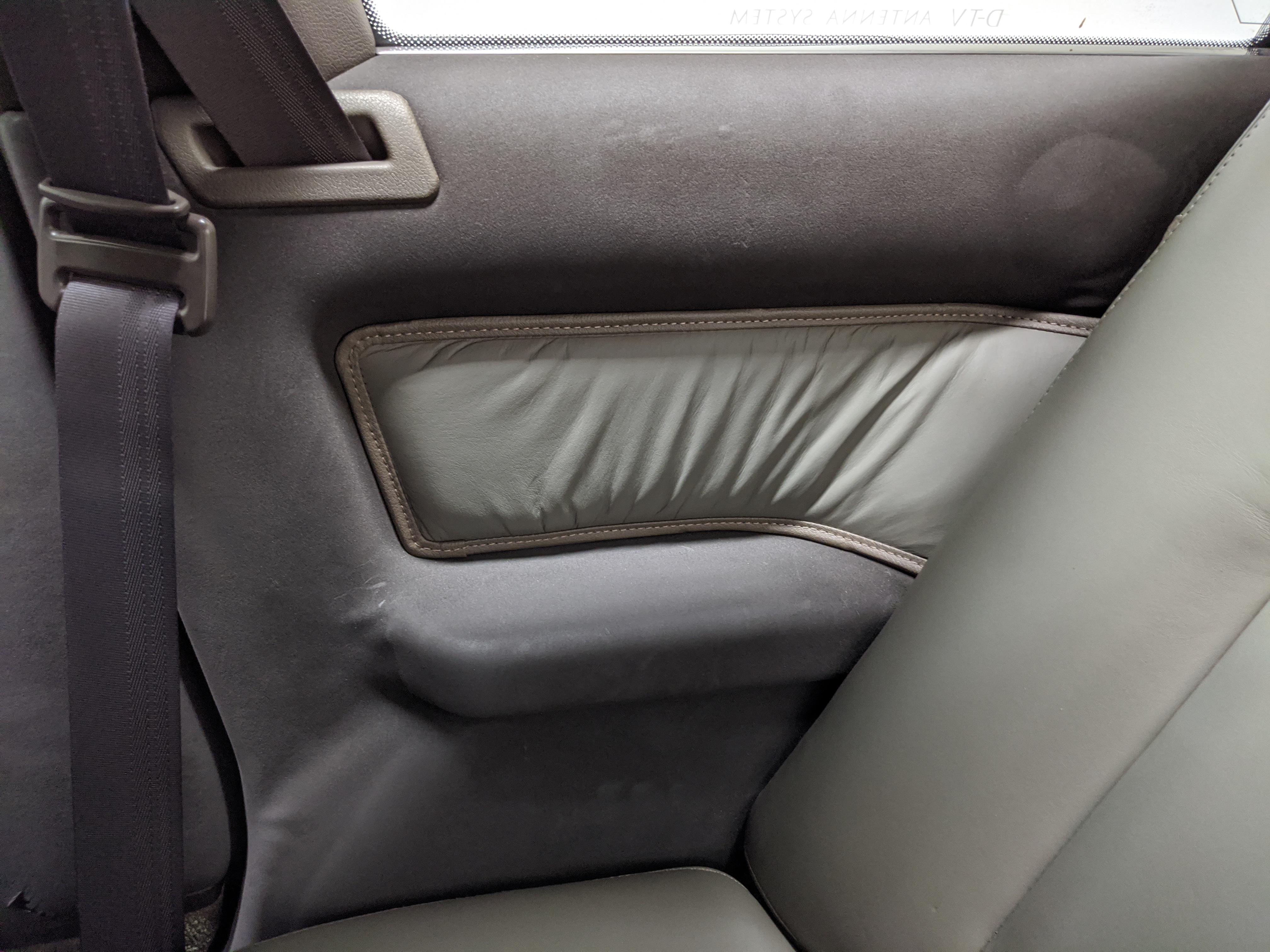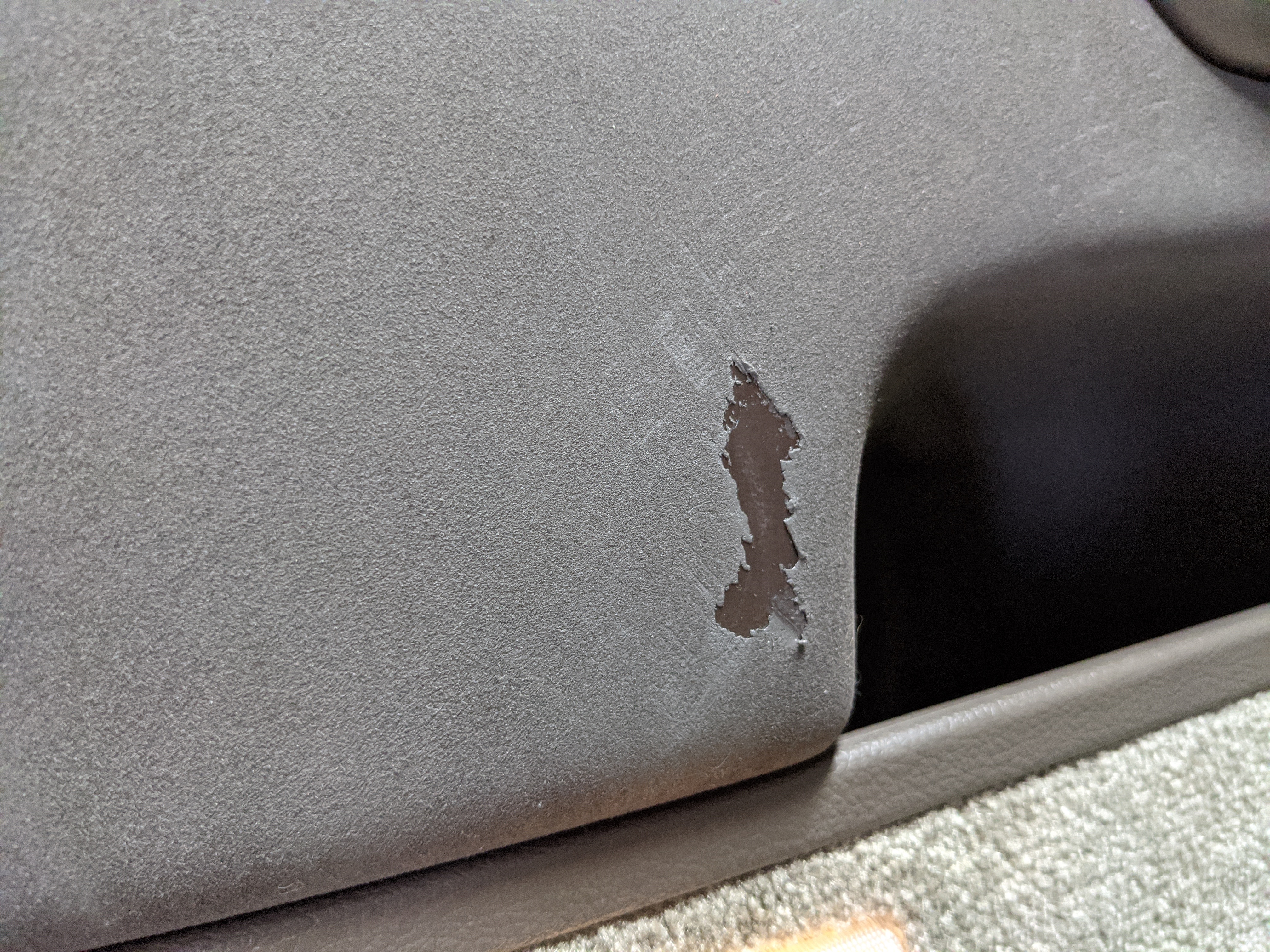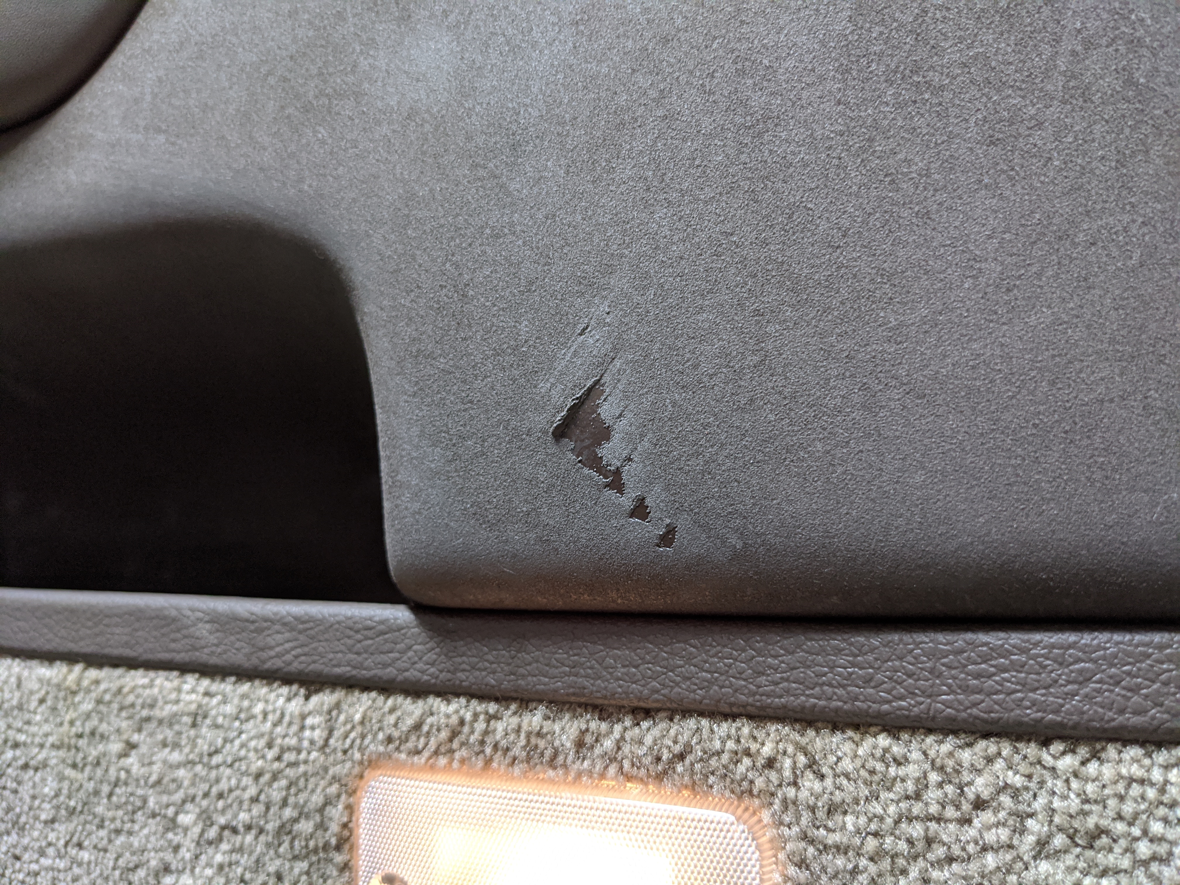 There are minor cosmetic issues on the exterior. The interior is in good shape, but certain parts of the backing that the flock is attached to is turning into a sort of goo that is able to be scraped off. In addition the passenger side door has various bubbles underneath the flocking material as well, these issues are shown in the pictures. This is also happening in the rear passenger section in parts. The sunroof opens and closes just fine, but the mechanism to close it easily is not working correctly, meaning you can overshoot the properly ‘closed’ mode. This means it takes a bit of trial and error to get it properly closed again. It does not leak and is sealed against the elements just fine however. There is staining in the floor carpet and floor mat of the right rear passenger footwell.