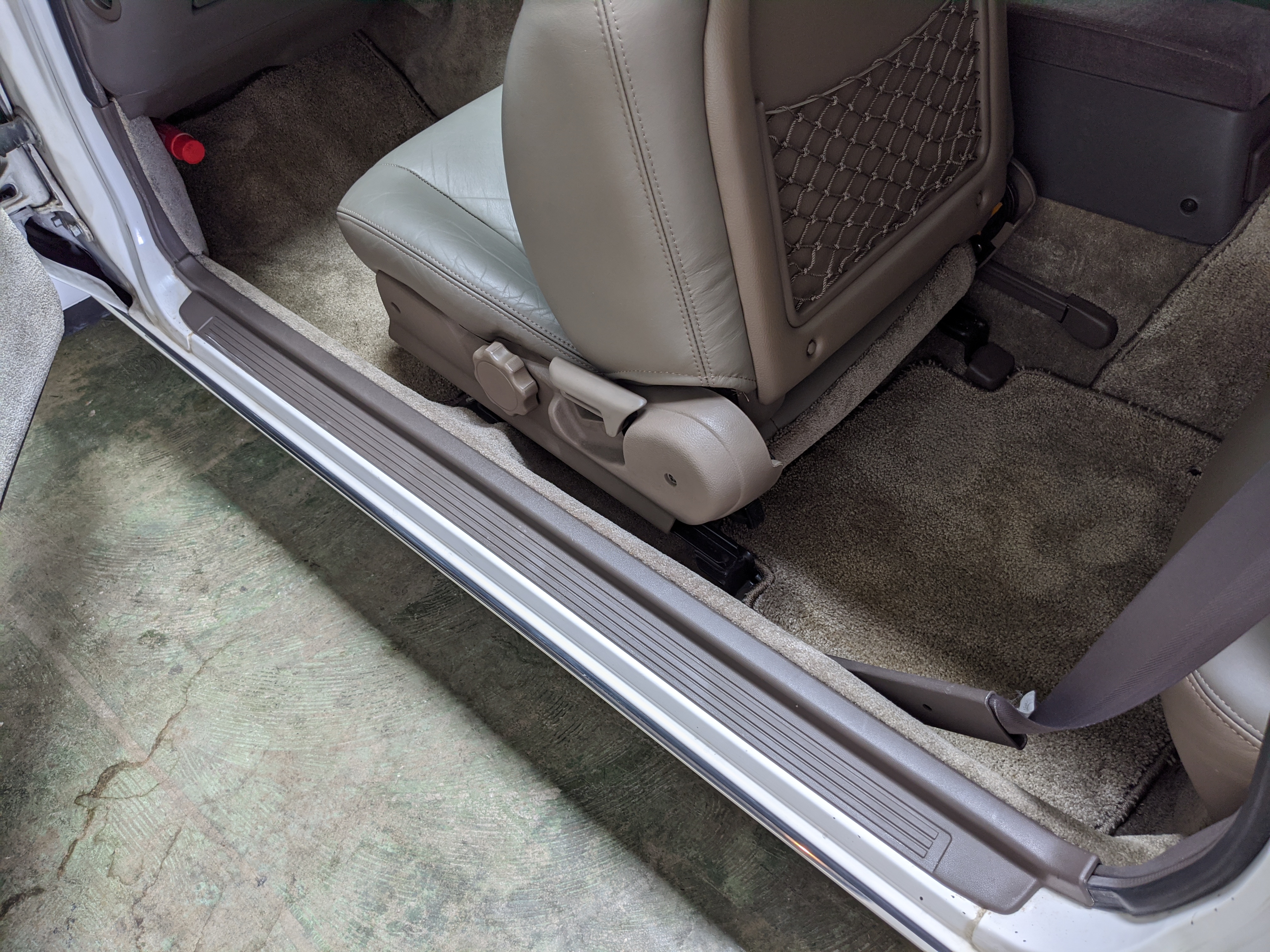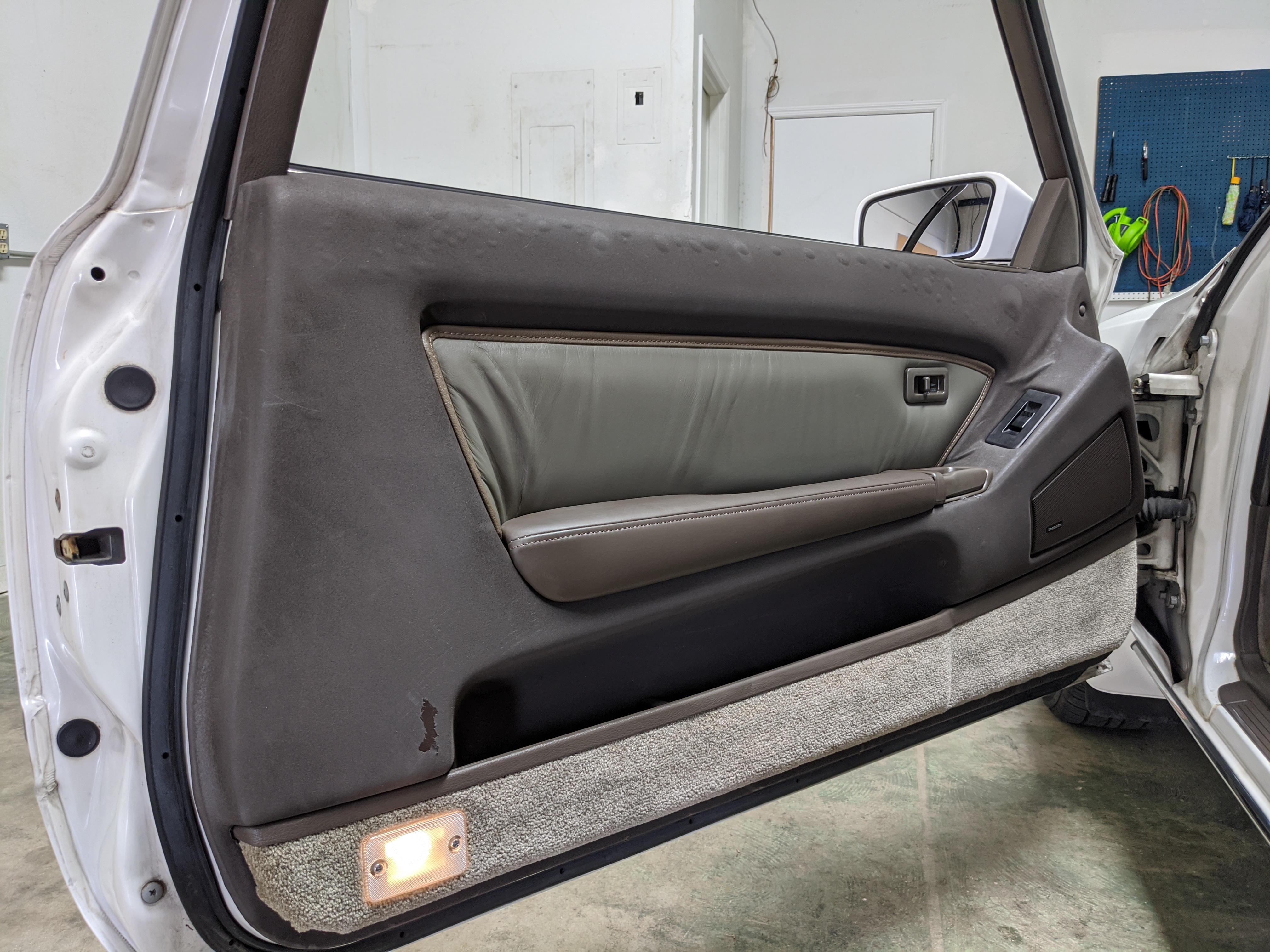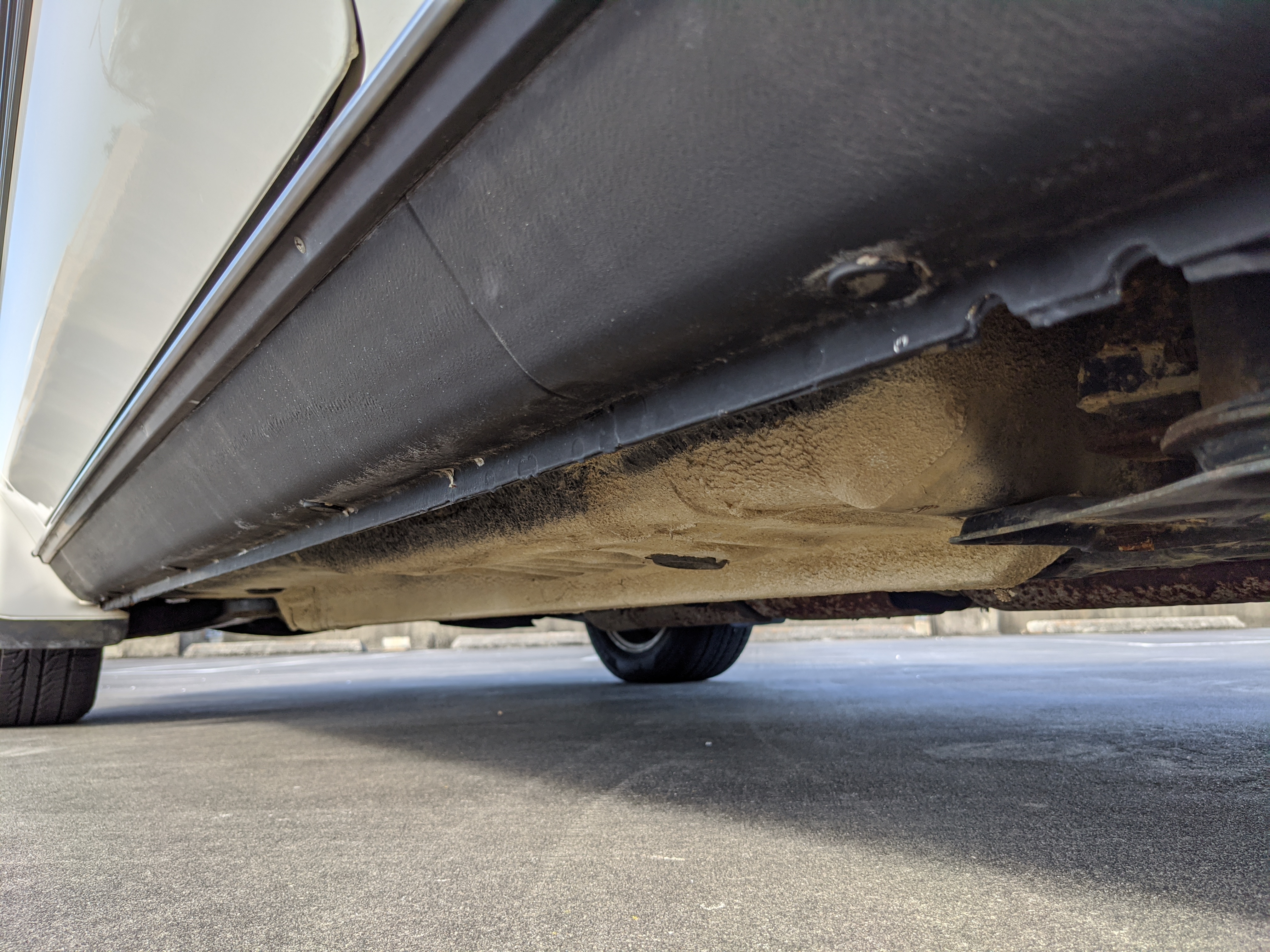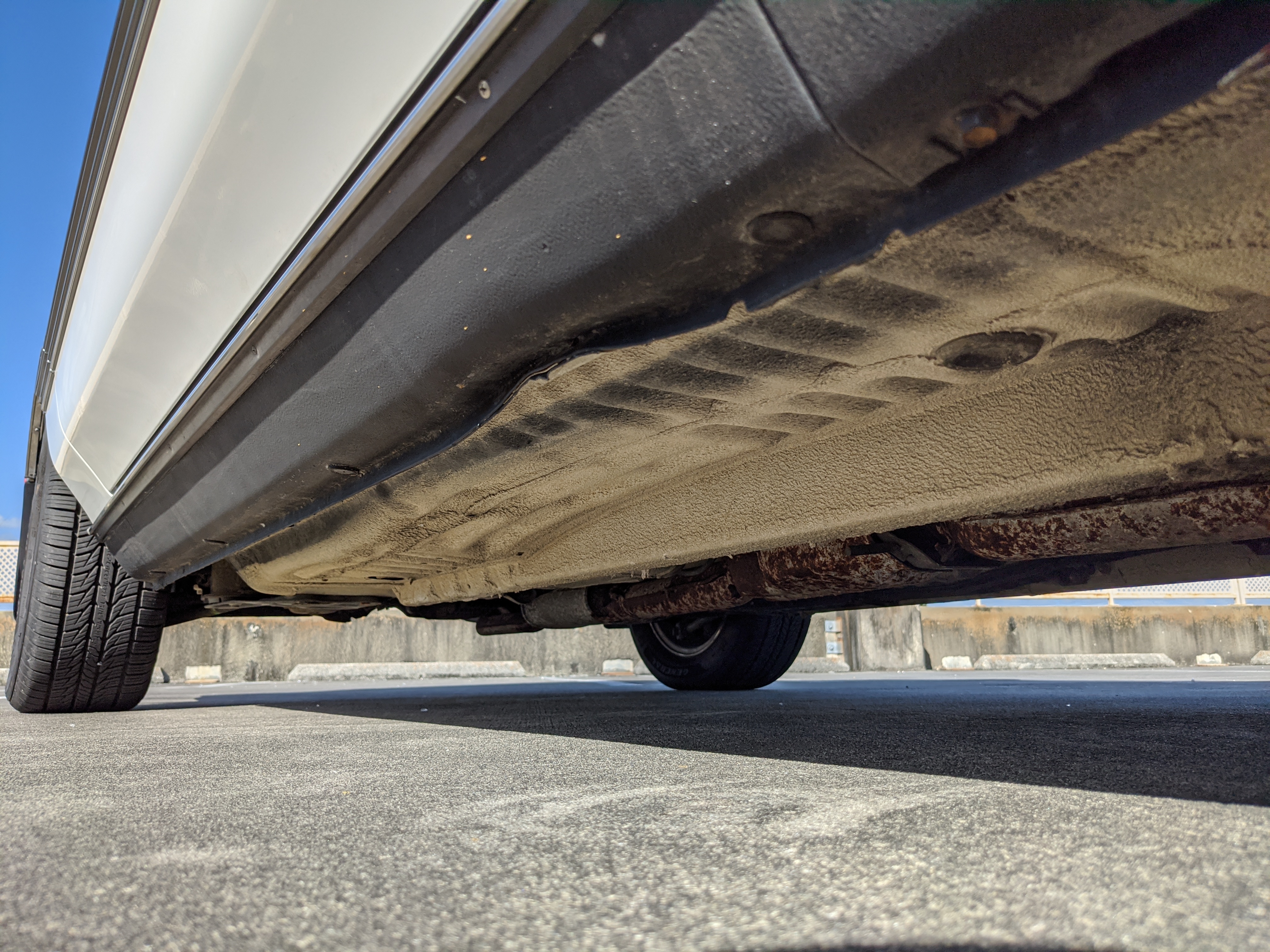 There are minor cosmetic issues on the exterior. The interior is in good shape, but certain parts of the backing that the flock is attached to is turning into a sort of goo that is able to be scraped off. In addition the passenger side door has various bubbles underneath the flocking material as well, these issues are shown in the pictures. This is also happening in the rear passenger section in parts. The sunroof opens and closes just fine, but the mechanism to close it easily is not working correctly, meaning you can overshoot the properly ‘closed’ mode. This means it takes a bit of trial and error to get it properly closed again. It does not leak and is sealed against the elements just fine however. There is staining in the floor carpet and floor mat of the right rear passenger footwell.