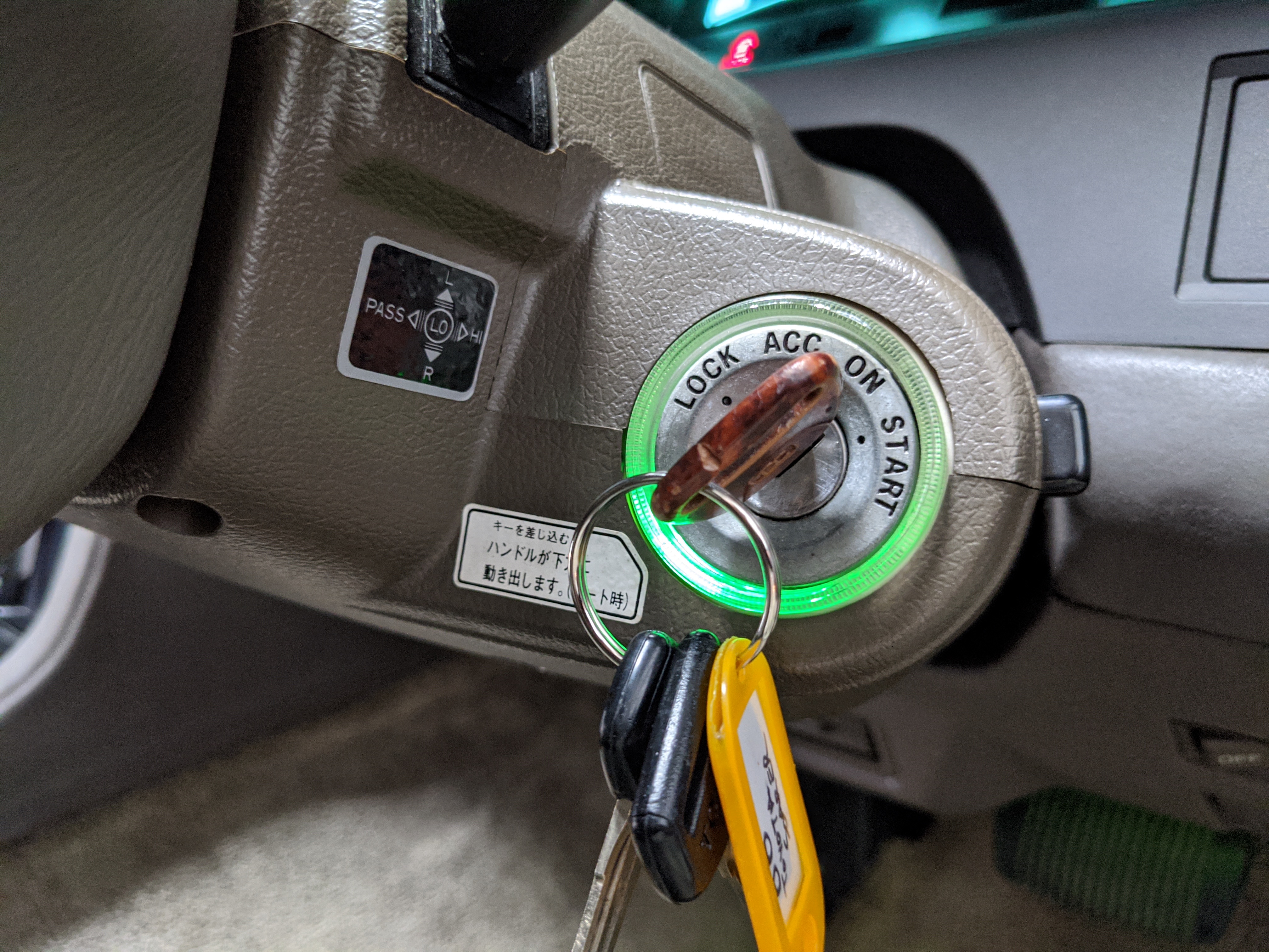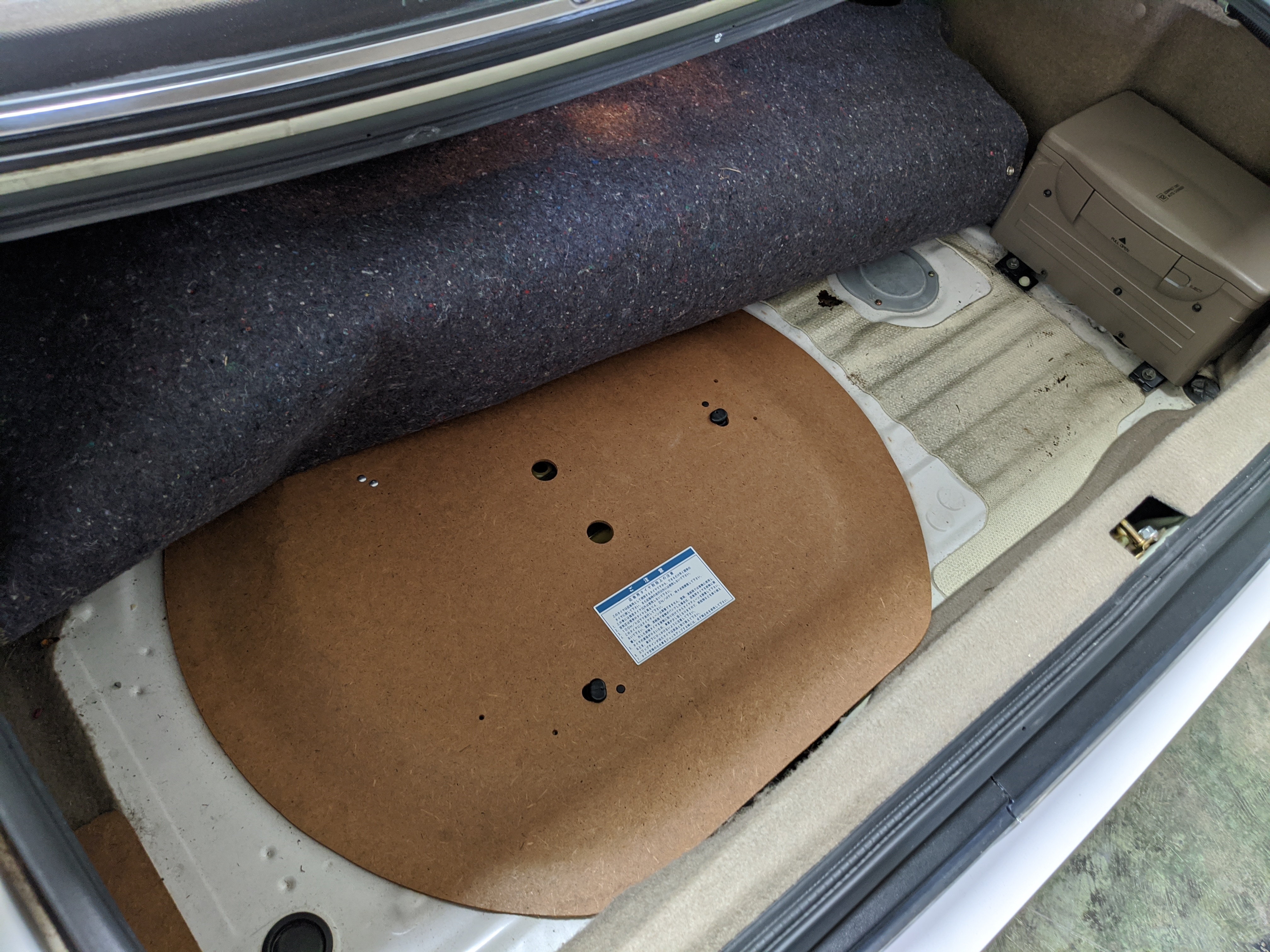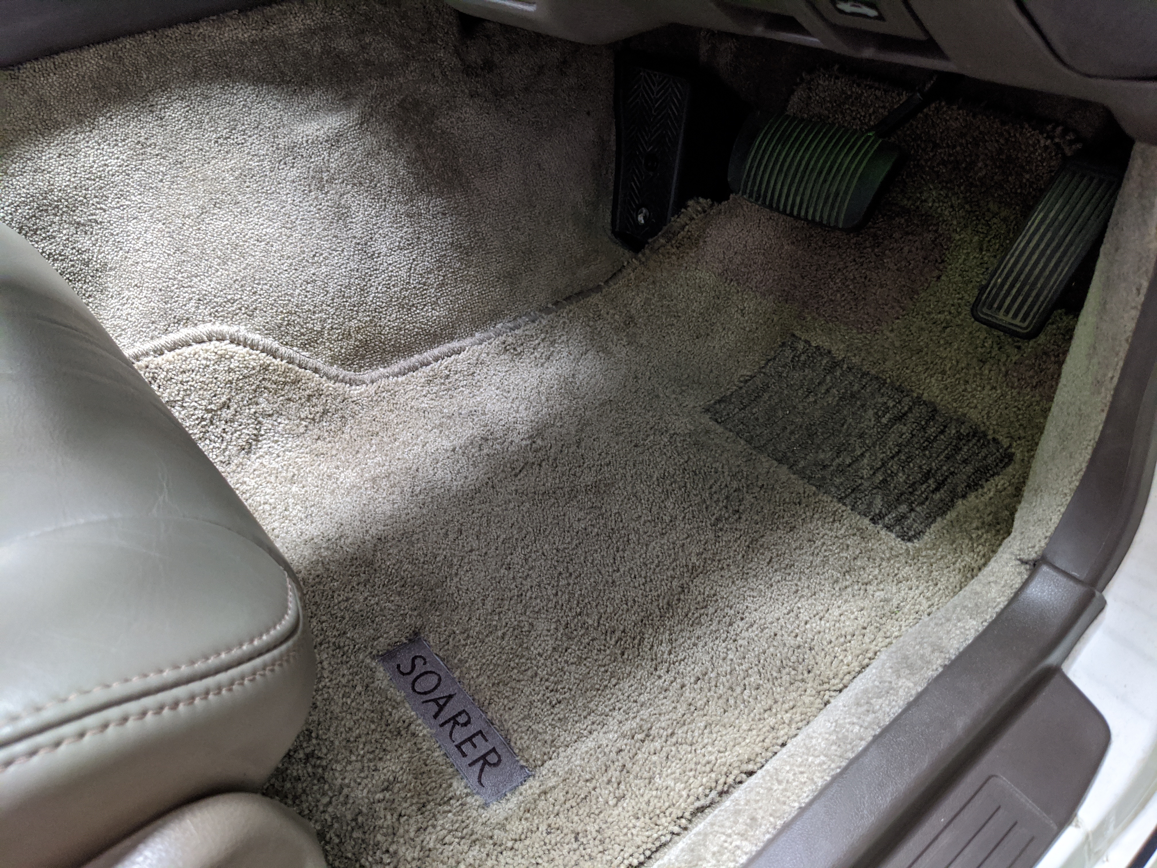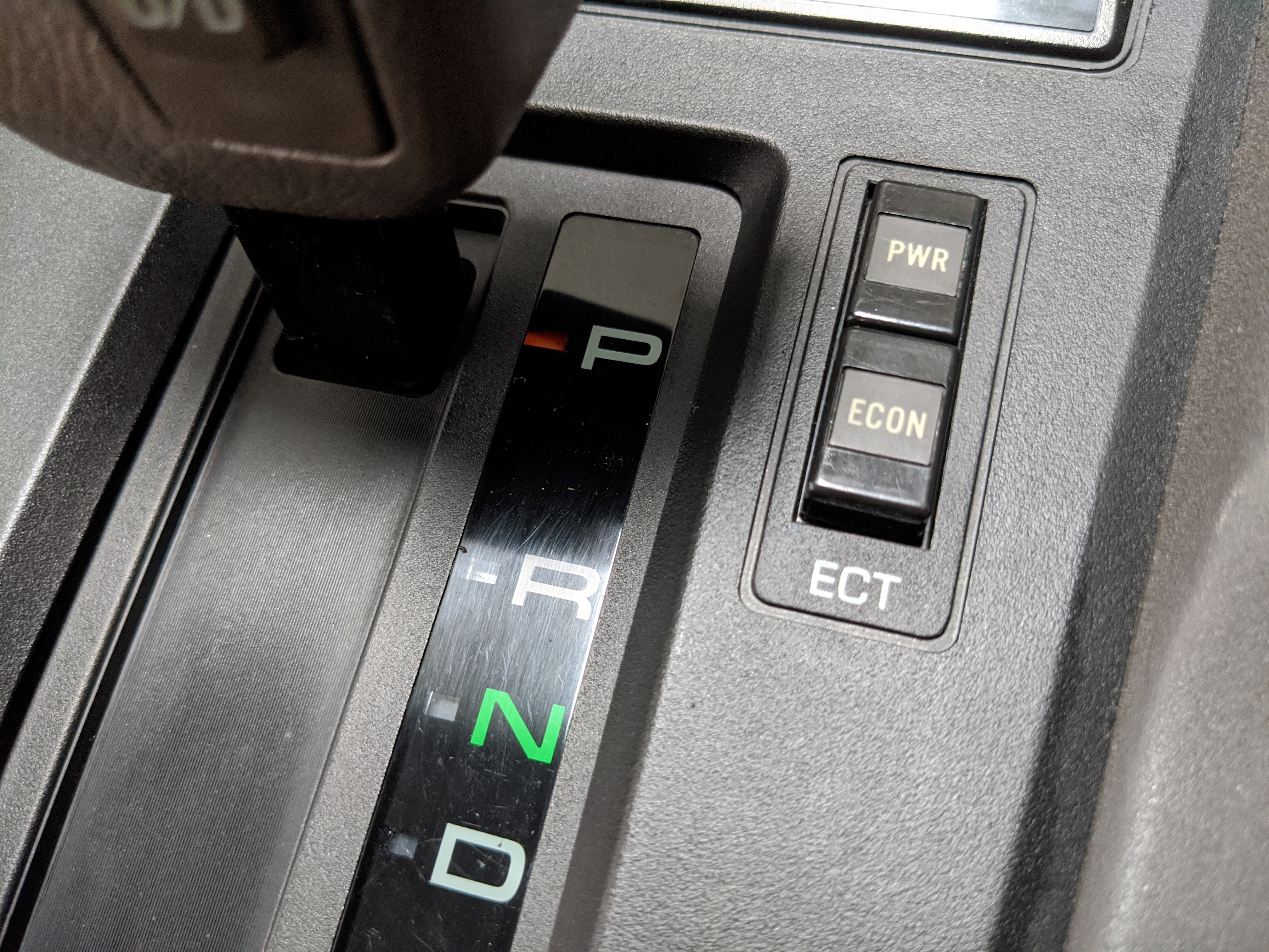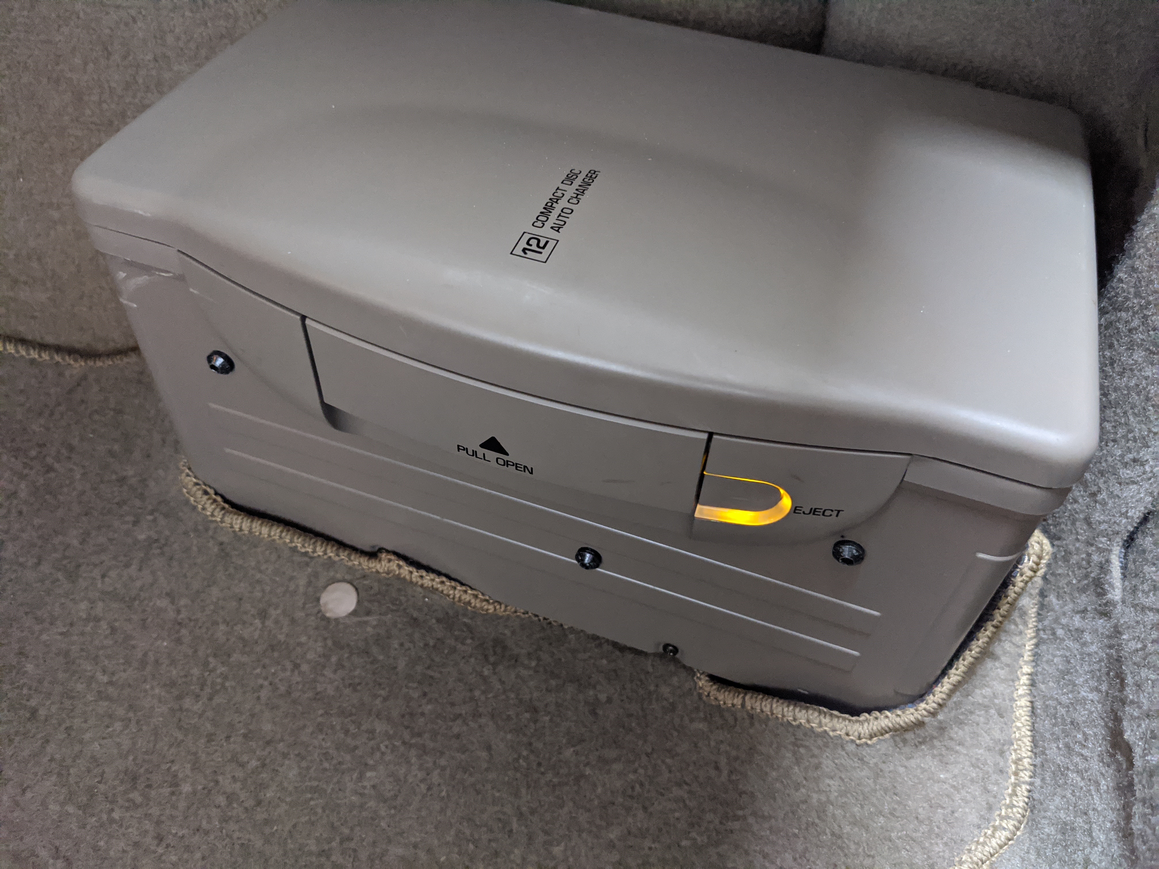 Below this is the greatest technological toy of this Soarer, in the form of a small CRT touch screen monitor. From here you could watch TV (though the over the air broadcasts stopped in Japan years before they stopped here in the USA), adjust a multitude of options in the Technics stereo system, get a readout of various systems in the car, TEMS options and if you have the car raised to its ‘HIGH’ setting or not. Below this by the automatic transmission lever is the TEMS system buttons, including a ‘HIGH’ button. Pressing ‘HIGH’ raises the entire suspension of the car. The ‘Normal’ and ‘Sport’ buttons determine the damping force of the absorbers. ECT buttons tell the transmission to hold revs for longer depending on the mode. Behind the transmission lever is the electronic lumbar adjustment next to the air purifier controls. As far as I can tell this really just makes the inside of the car smell like lemons and I am unsure how much purifying is actually done. All of these systems are intact as they were from the factory, and all are functioning correctly. The original Toyota branded Panasonic remote is included as well. The original factory stereo in this car sounds quite good as it is an optional Technics system with separate tweeters in the doors and rear speakers. This also includes a 12 disc CD changer in the trunk.