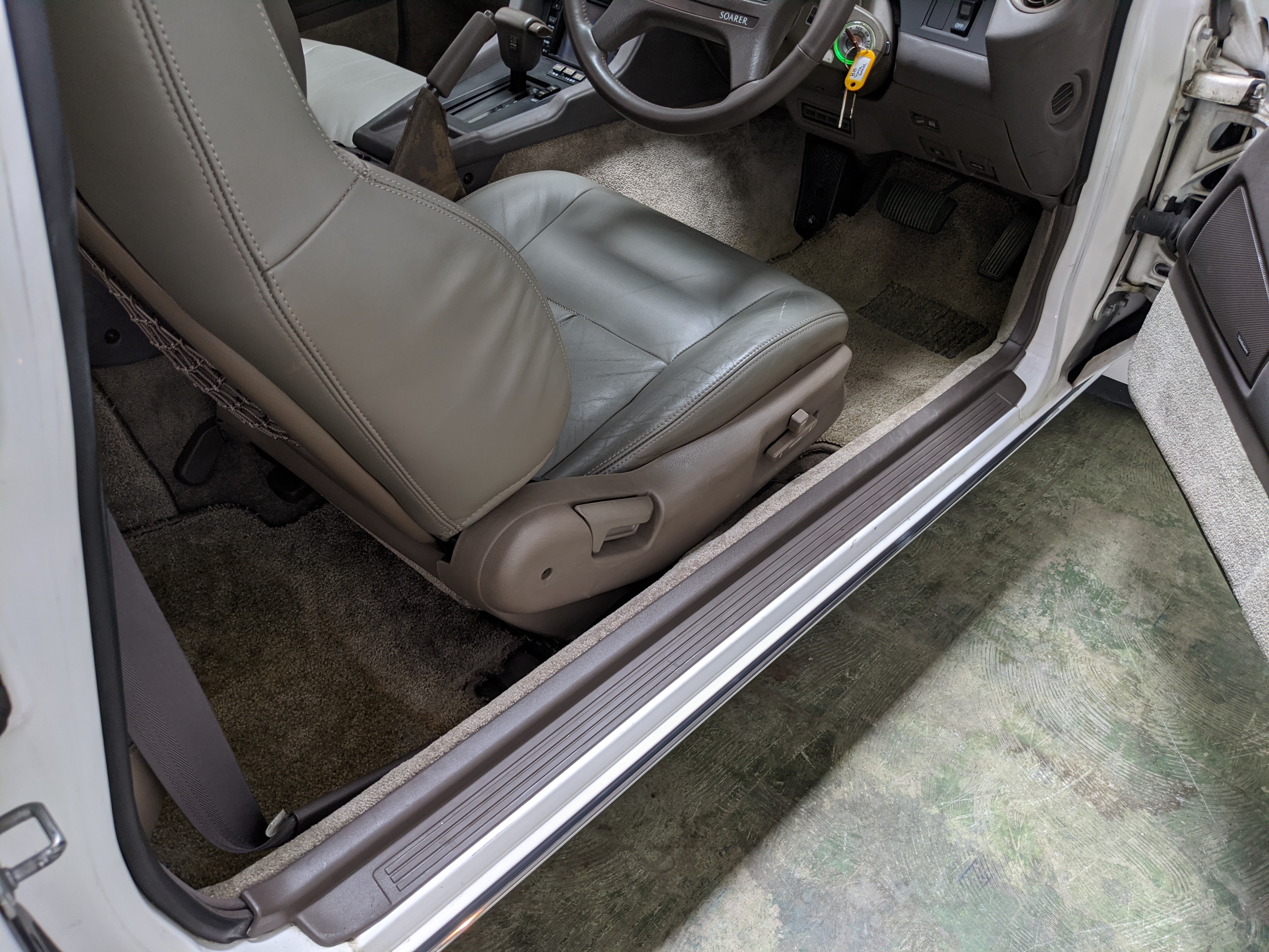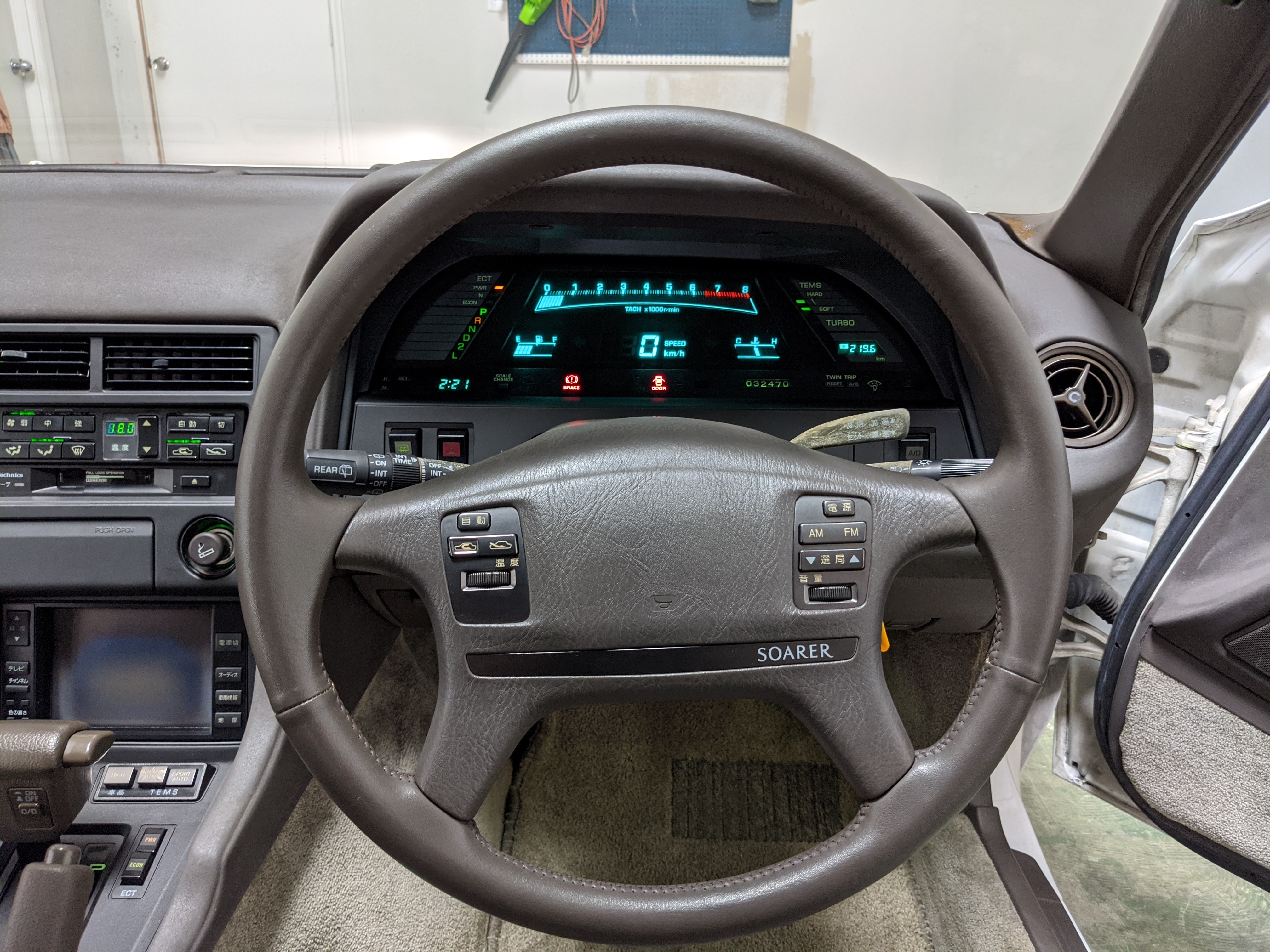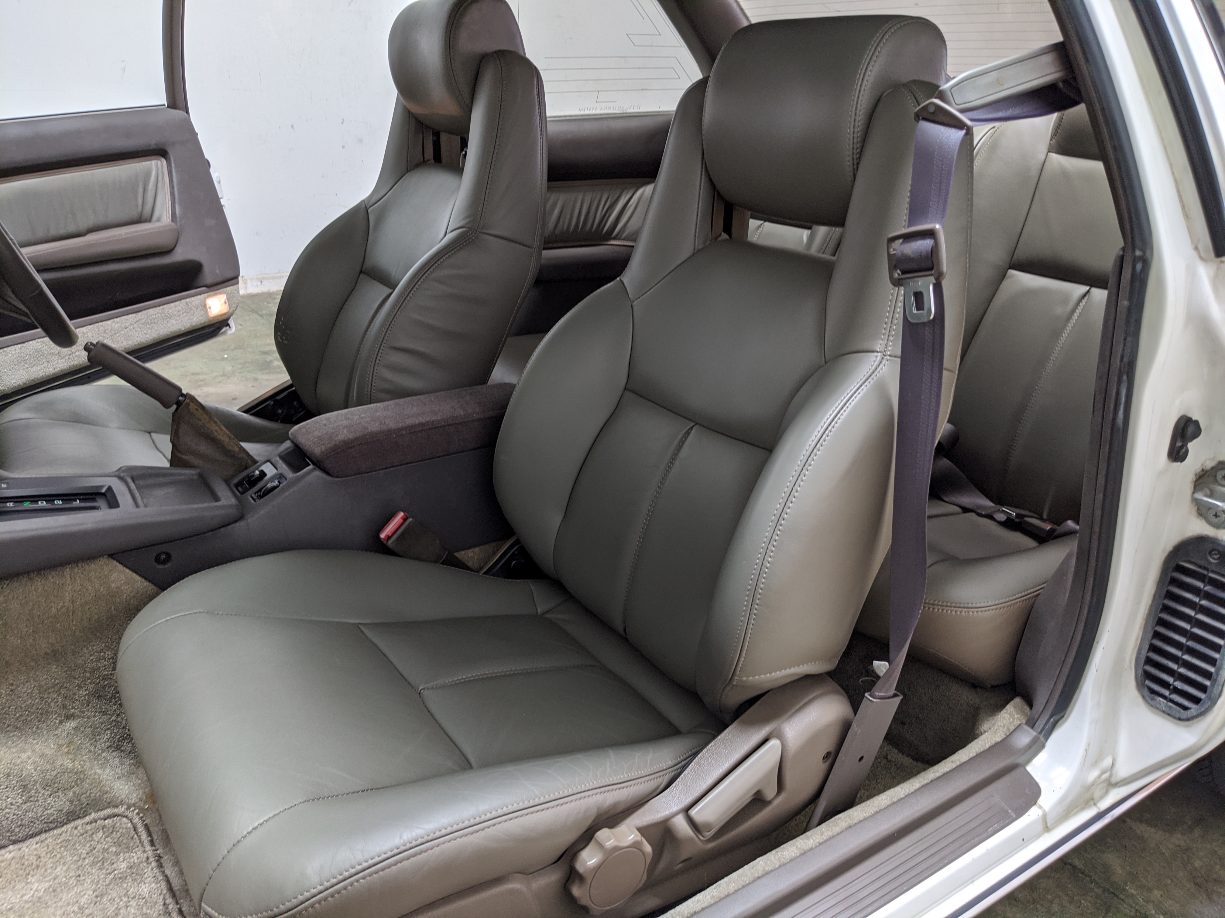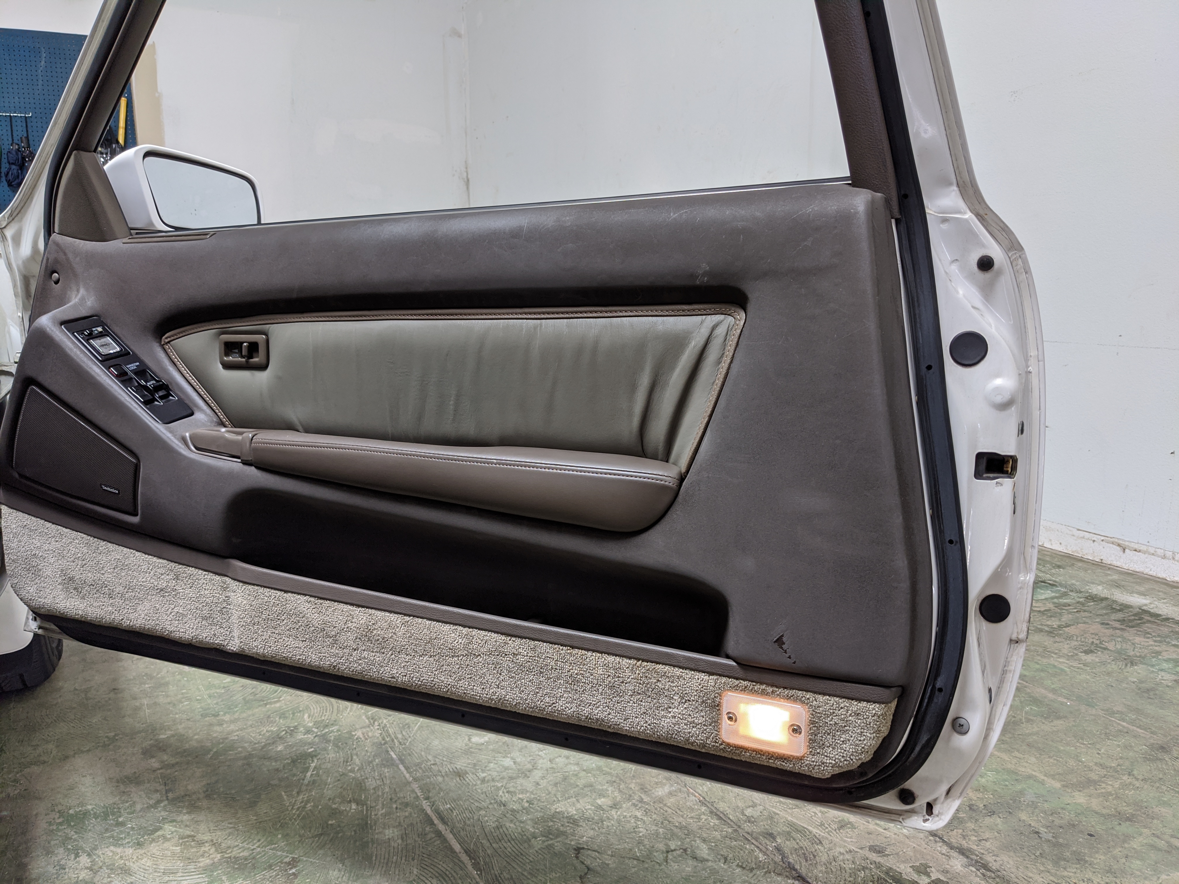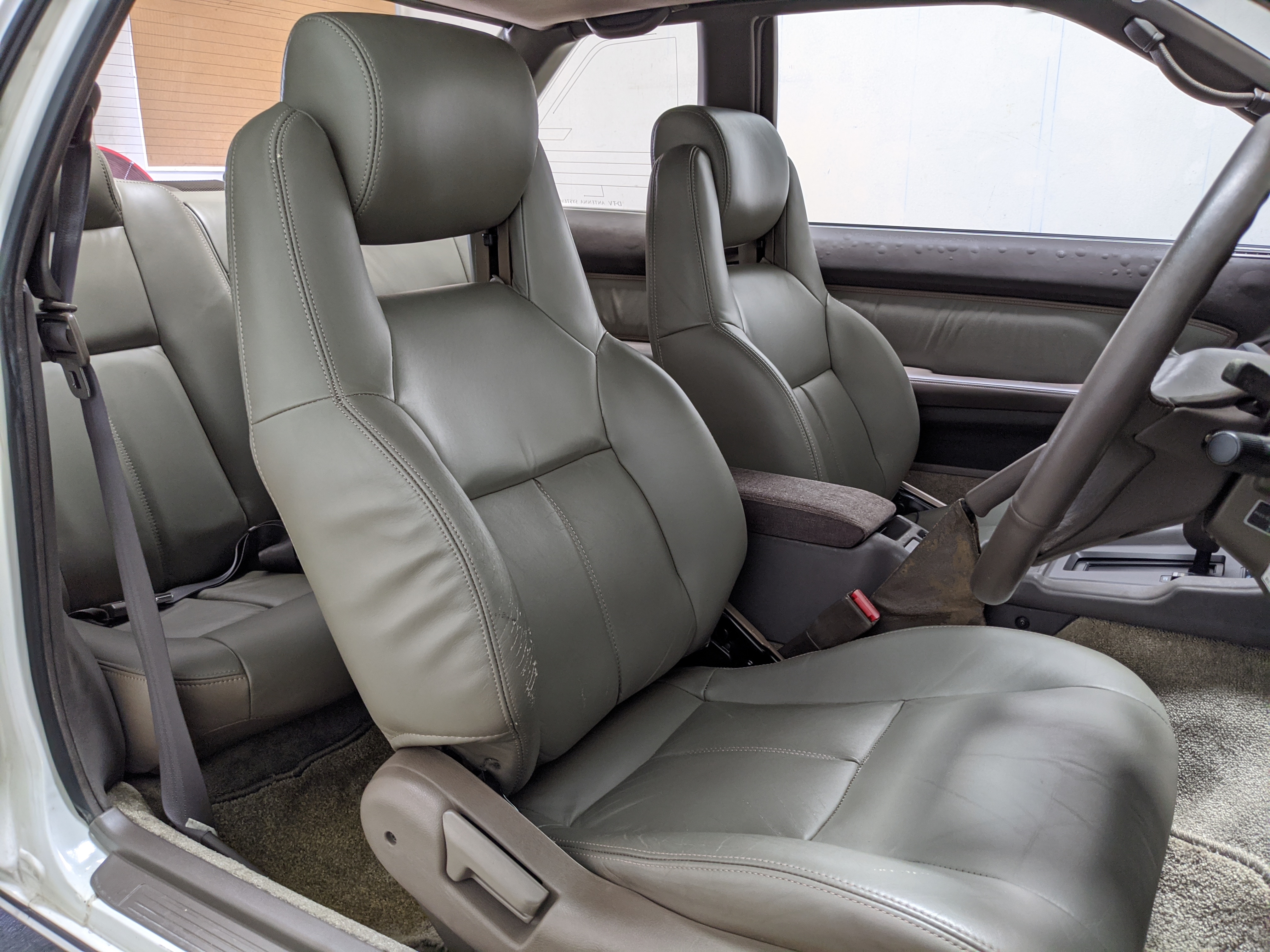 MZ21s are very handsome cars with the classic coupe body style. Low, long hood and clean angled lines with two doors. Headlights are factory halogen projectors. Original ‘Made in West Germany’ Toyota wheels are wrapped in brand new tires with the original Soarer emblems in the center. Original paint is in excellent shape with only a few minor blemishes. The Soarer’s unique emblem, the winged lion, is in place on the front grill and on the rear decklid and rear mud flaps. Electronic folding side mirrors work correctly, as does the rear wiper.