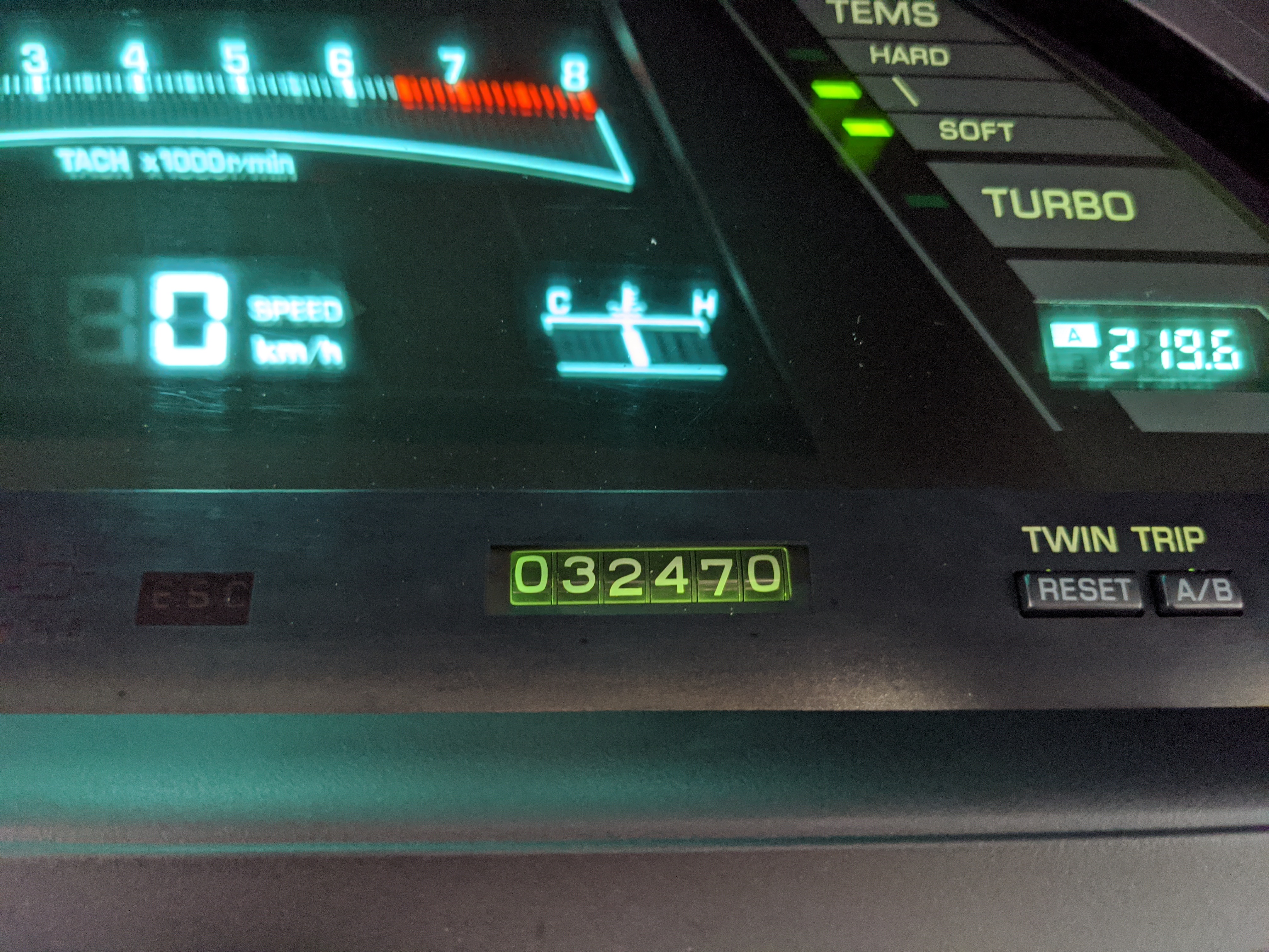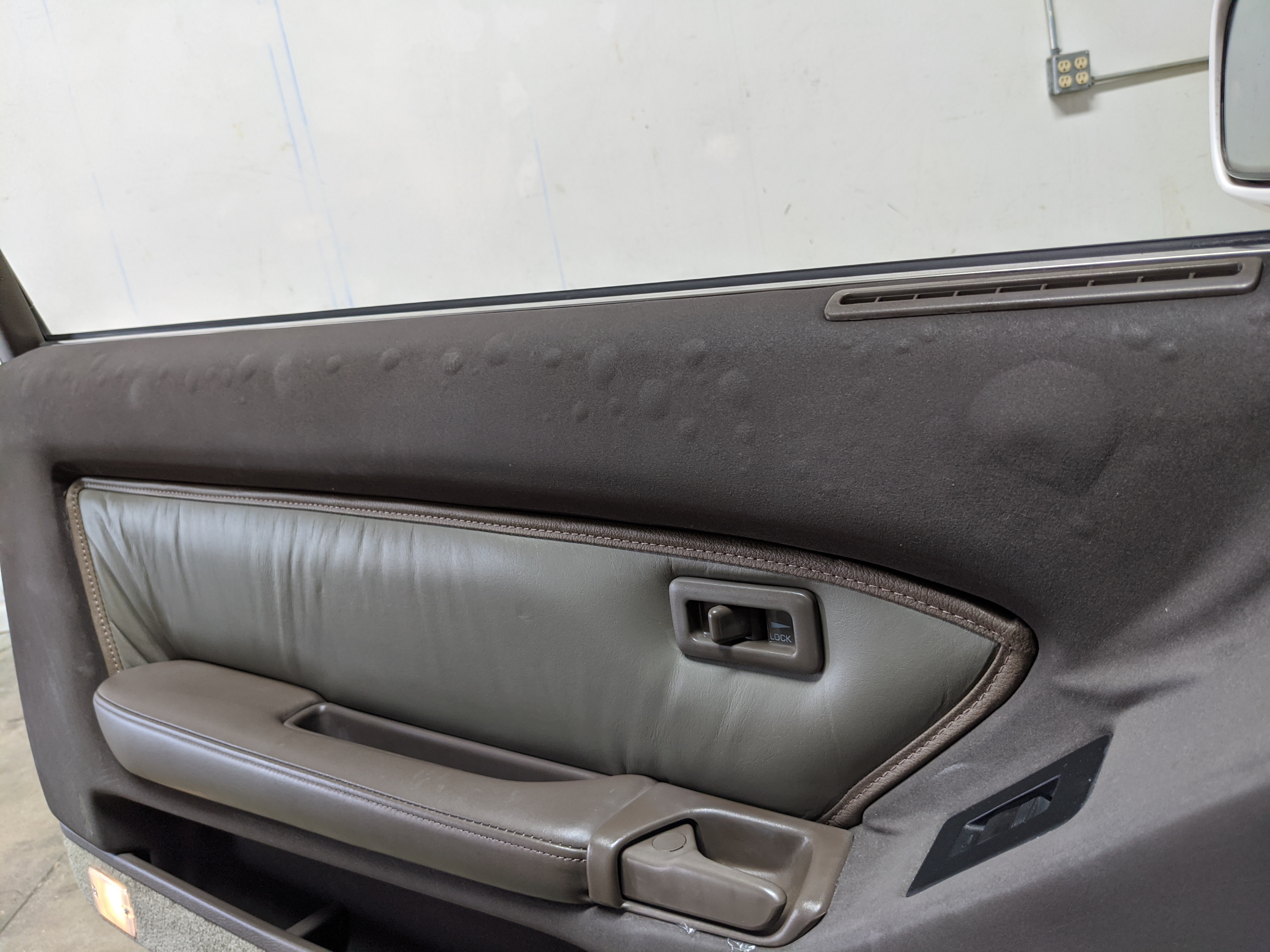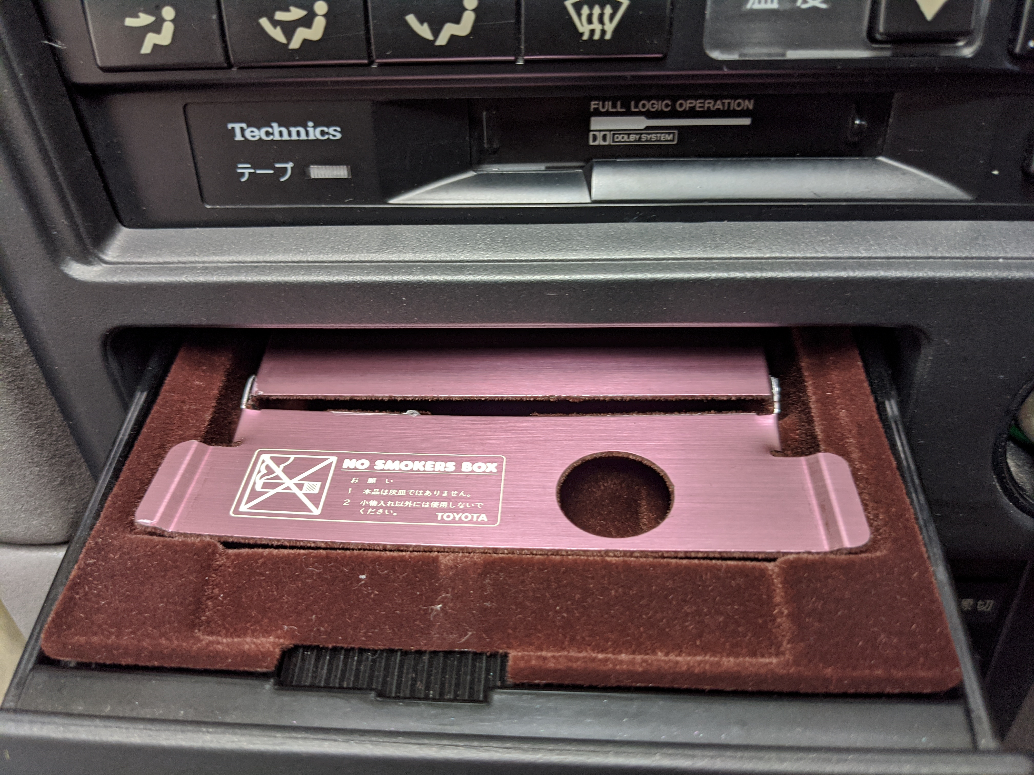 Inside is where this Soarer really comes into its own. As this was one of the highest end Toyotas you could buy at the time it is packed with everything Toyota had on offer in 1988. Full leather interior including the rear seats. Opening the doors show the compound door hinge system, allowing the doors to open wider for easier entry without having to take up so much room. Full leather interior, complete with flocked surfaces throughout. Fully electronically adjustable driver’s seat and steering column. Complete digital projection instrument cluster with the exception of the mechanical odometer, showing the fantastic 33,000 km (25,000 miles). Leather steering wheel complete with both climate and stereo controls for adjusting both without taking your hands off the wheel. Center stack starts with automatic climate control on top with amazingly cold A/C. Below the tape deck is the ashtray, but installed in its place is an original Toyota ‘No Smokers Box’, a velvet insert inside of the ashtray as the original owner was a non-smoker. Above is an optional sunroof and a push-button electric dimming rearview mirror. Original floor mats are included.