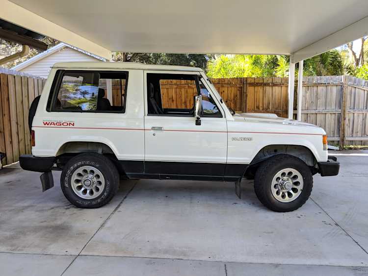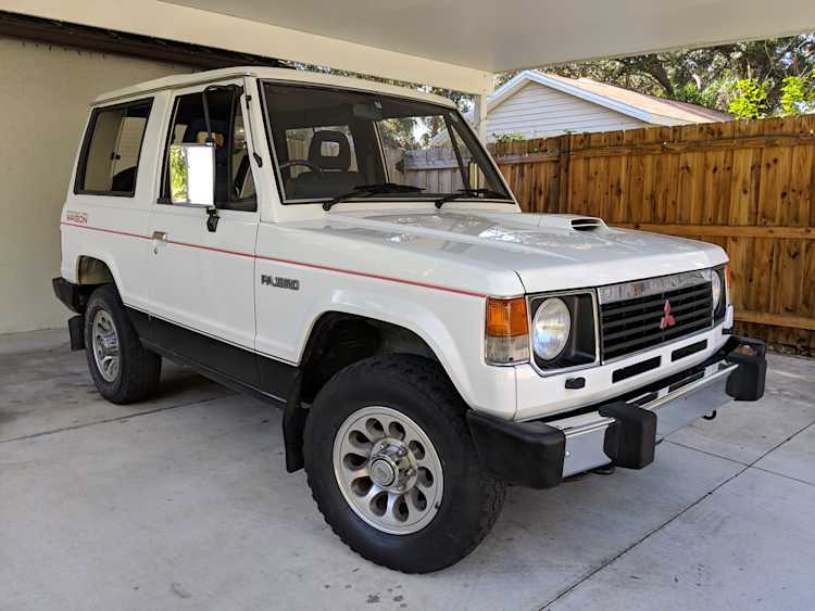 The JDM brother of the USDM Montero, this Pajero is a handsome old school body-on-frame SUV. Squared lines, chiseled features and round headlights, powered by an intercooled turbo diesel engine, plus functional hood scoop. Completely stock and unmodified, one owner and two doors. No corrosion, extremely clean. Original wheels complete with center caps are present. Includes original running boards (not shown but included).