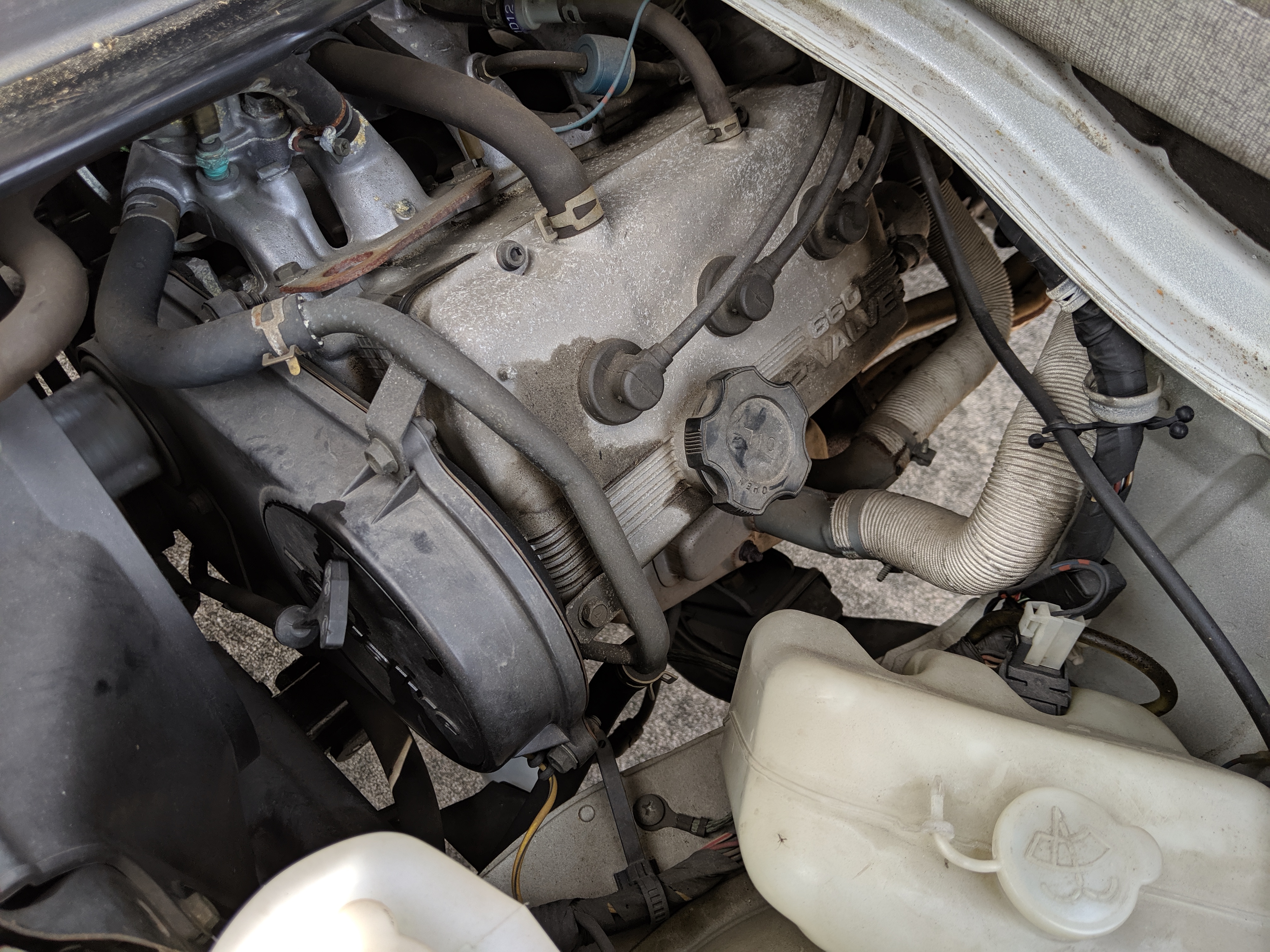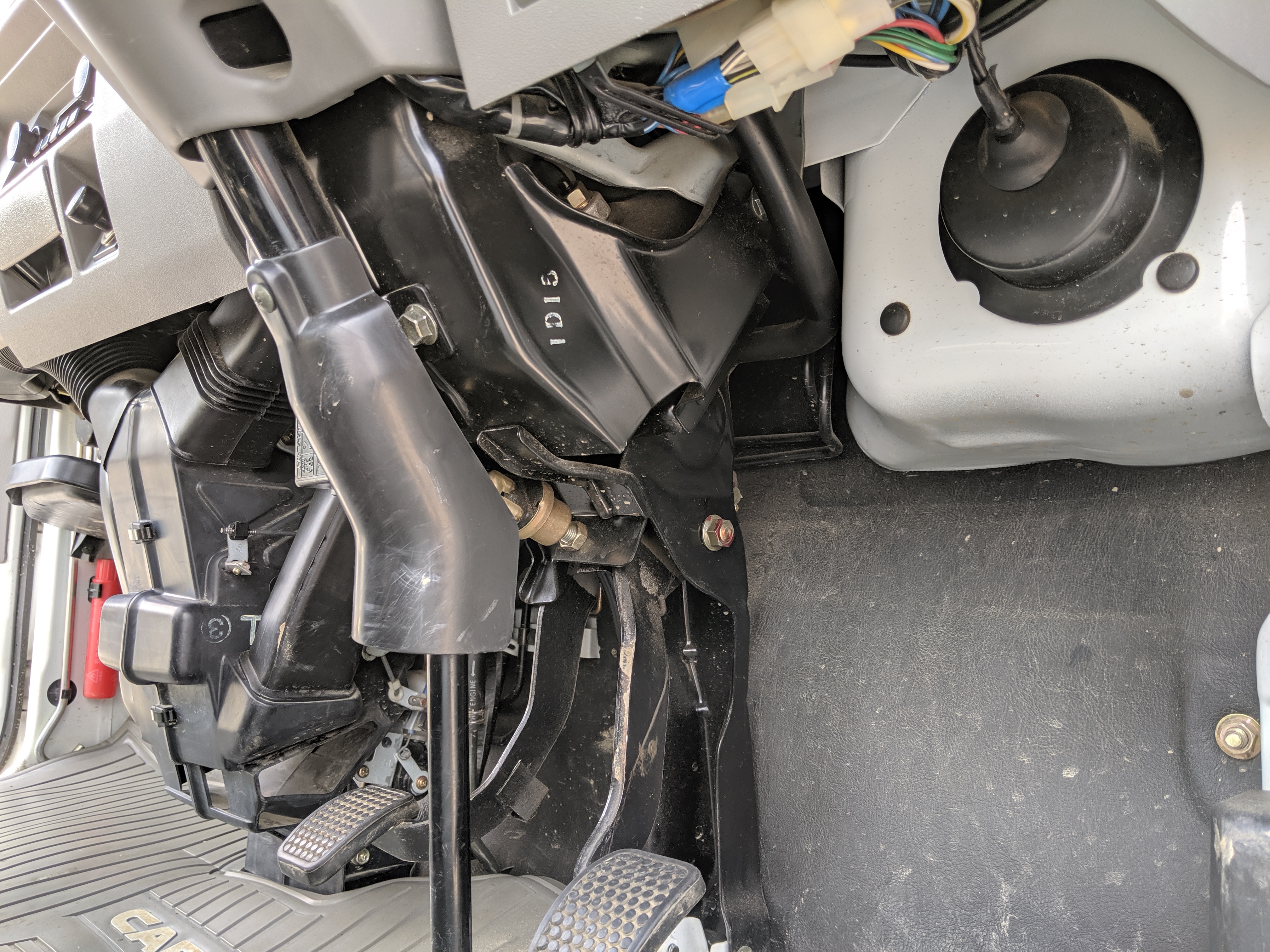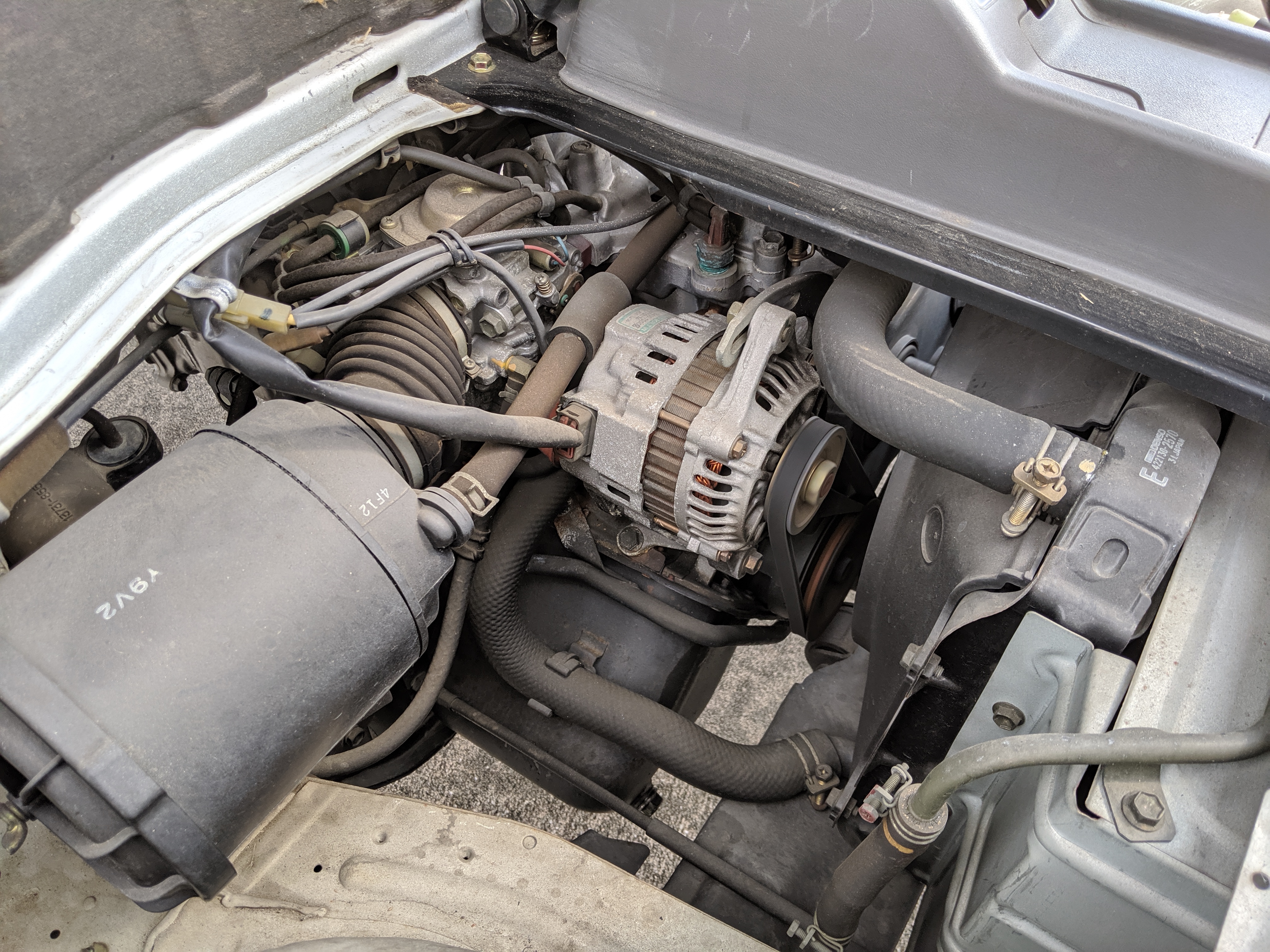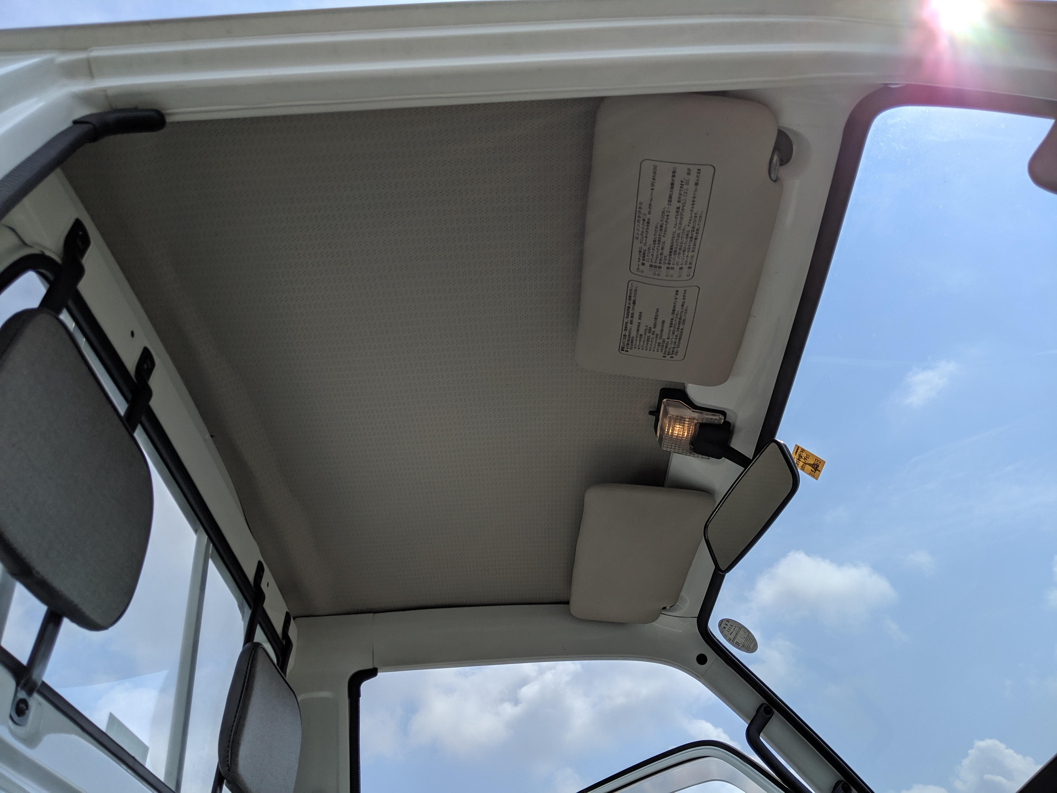 Inside is a cozy cab filled with plastic and rubber. There is no carpet in here, which is great for working conditions as you can quite literally hose the interior out if needed. Both driver and passenger seats are complete with no wear showing. Original Carry rubber floor showing little to no damage after 27 years. Dashboard, class, steering wheel, heck anything you can see inside looks new. Lifting up the seats reveals the engine, with another access panel in the bed held closed by 4 bolts.