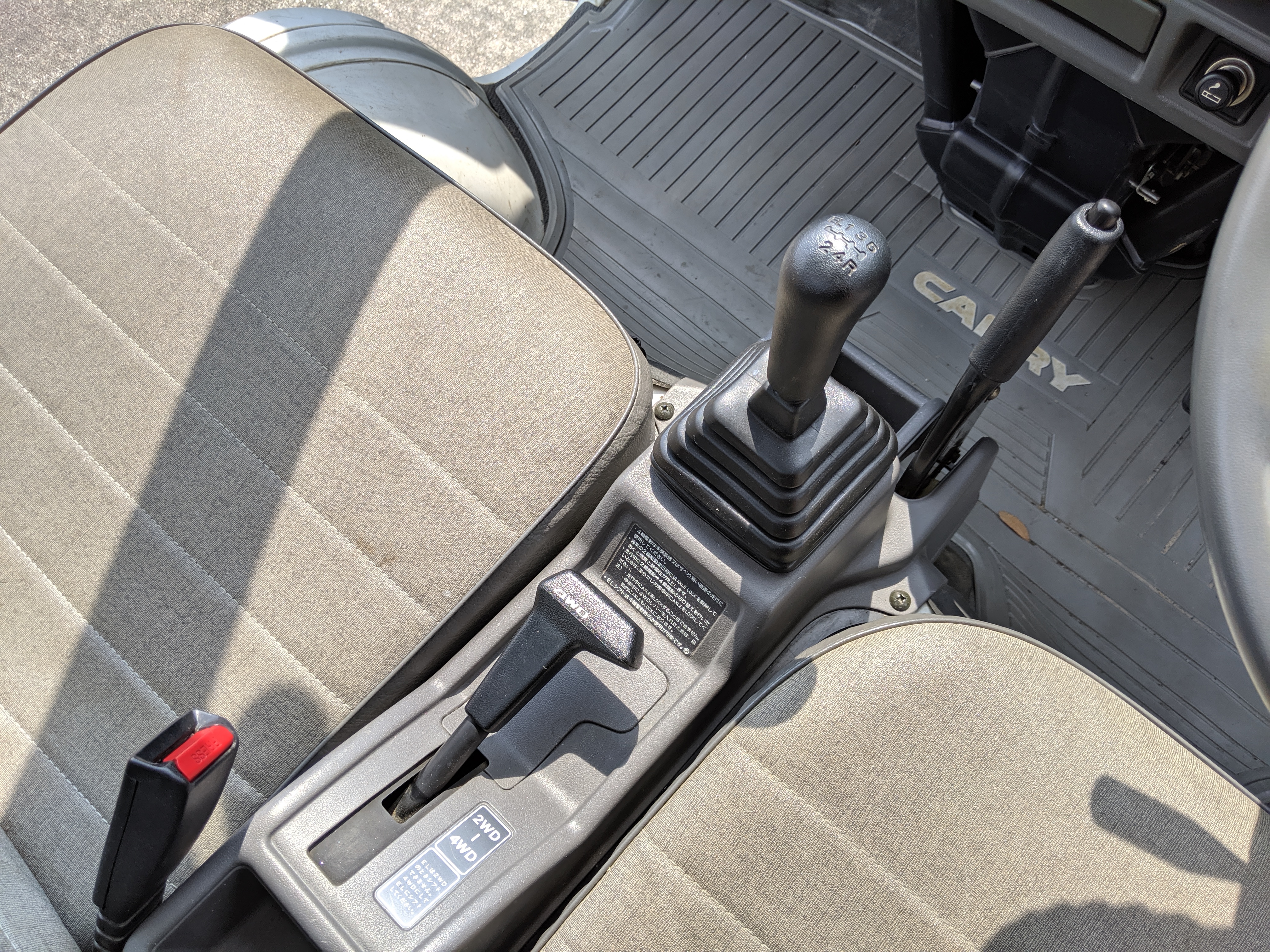 Flip up the 4WD switch in the center console, click ‘Axle Lock’ on the dashboard and you’re ready to tear up offroad. While in 4WD mode you also have access to EL, which stands for ‘Extra Low’ gear. Slide the shifter all the way to the left, past 1st gear, and push forward, this is your low range in this tiny truck.