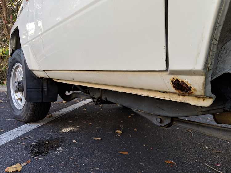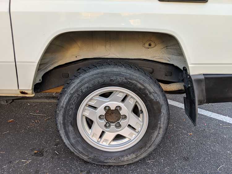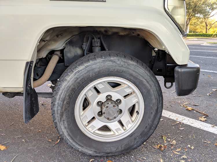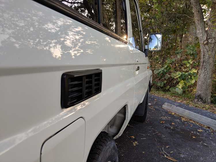 The bad: There are two small bits of rust on either side of the bottom sill just behind the doors. Left side has rusted through the top layer but isn't a through hole. Right side is bubbling in the same place. No other corrosion anywhere else as the pictures show. There is a large sized dent in the left side door that runs pretty much from the bottom to the top of the door. There are smaller dents on the left front fender. This doesn't have an effect on the door opening and shutting, it's just cosmetic. The heater core has been bypassed, I imported it like this and have never bothered to pull the heater core out to see what the deal was, I assume it's clogged hence the bypass. As a result it does not have heat, though the AC and blowers work a treat. The truck itself runs cool even in the blazing Florida sun. The rear center step has a dent as shown.