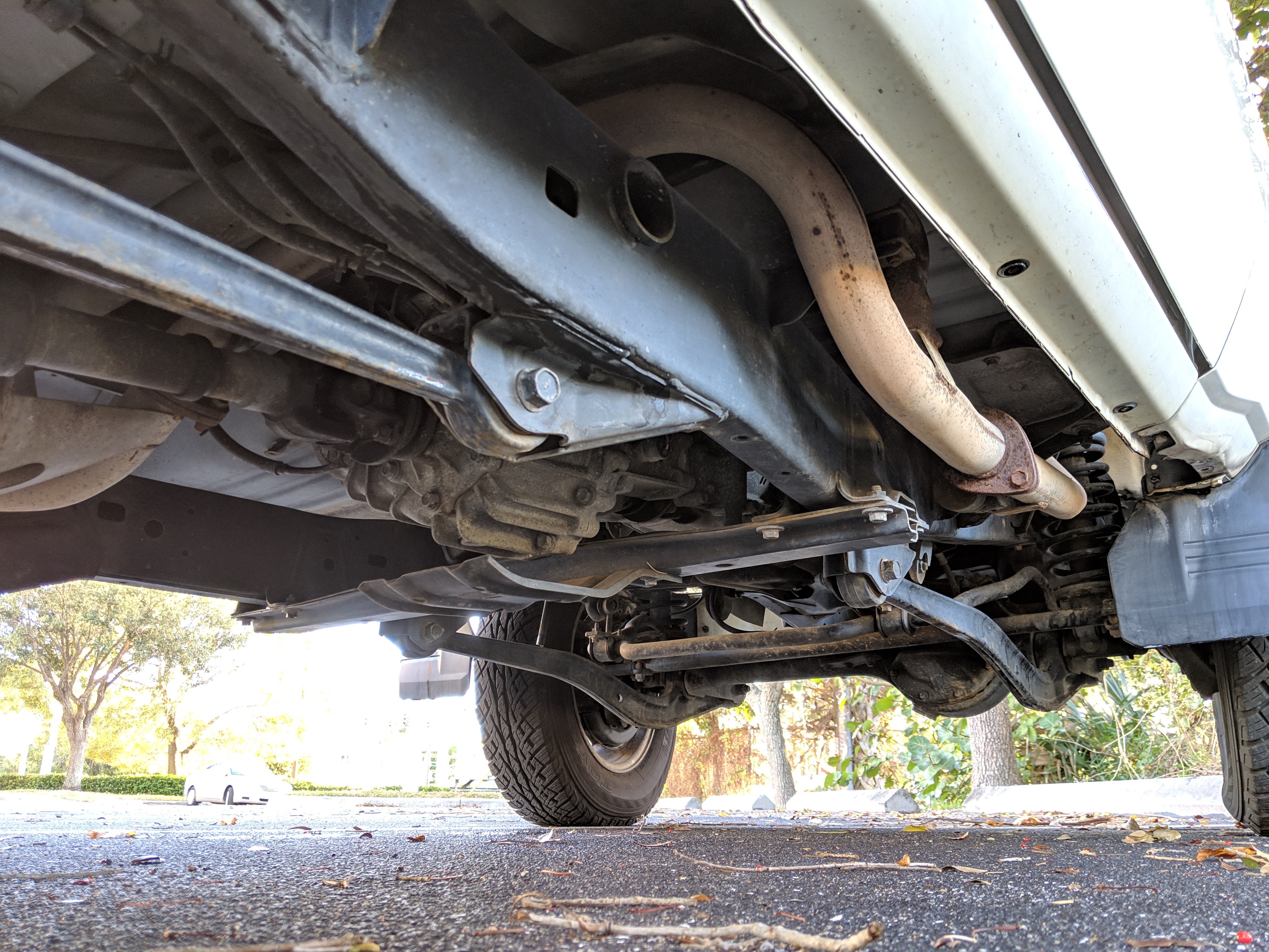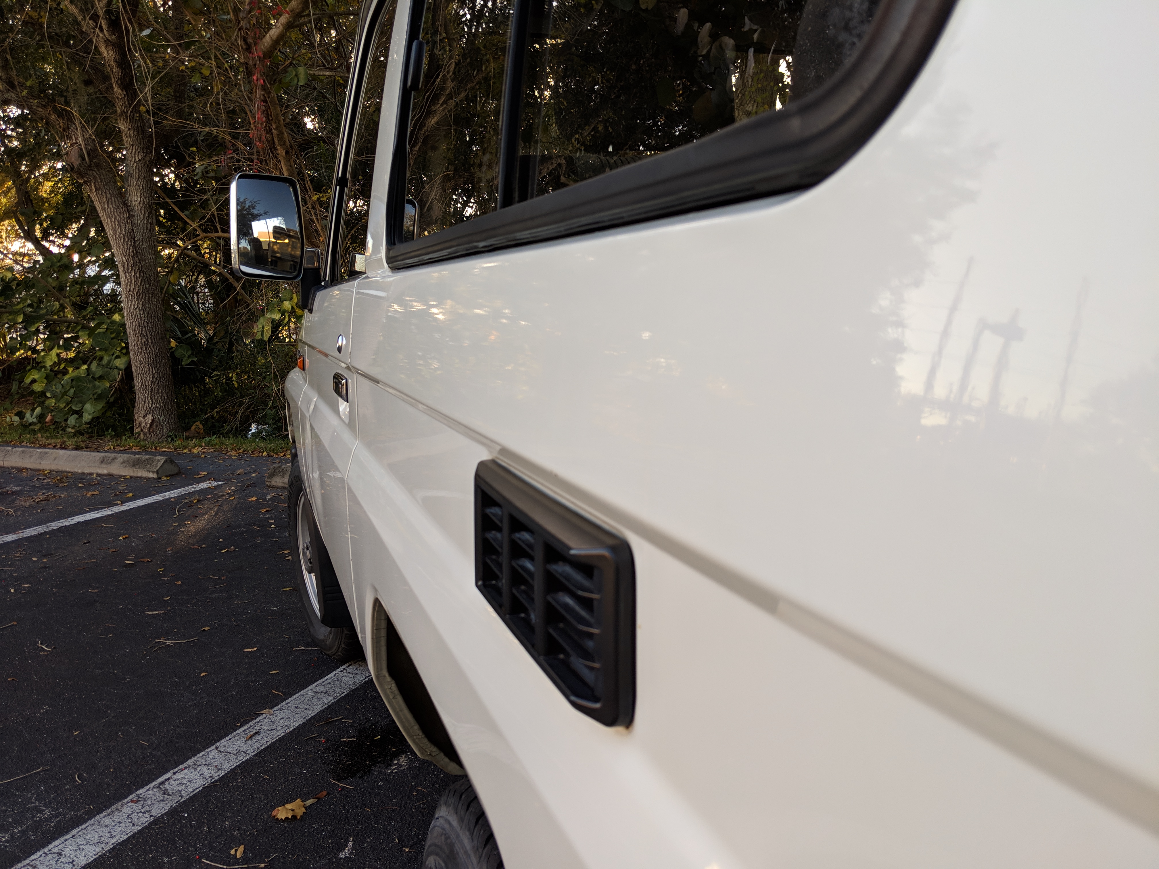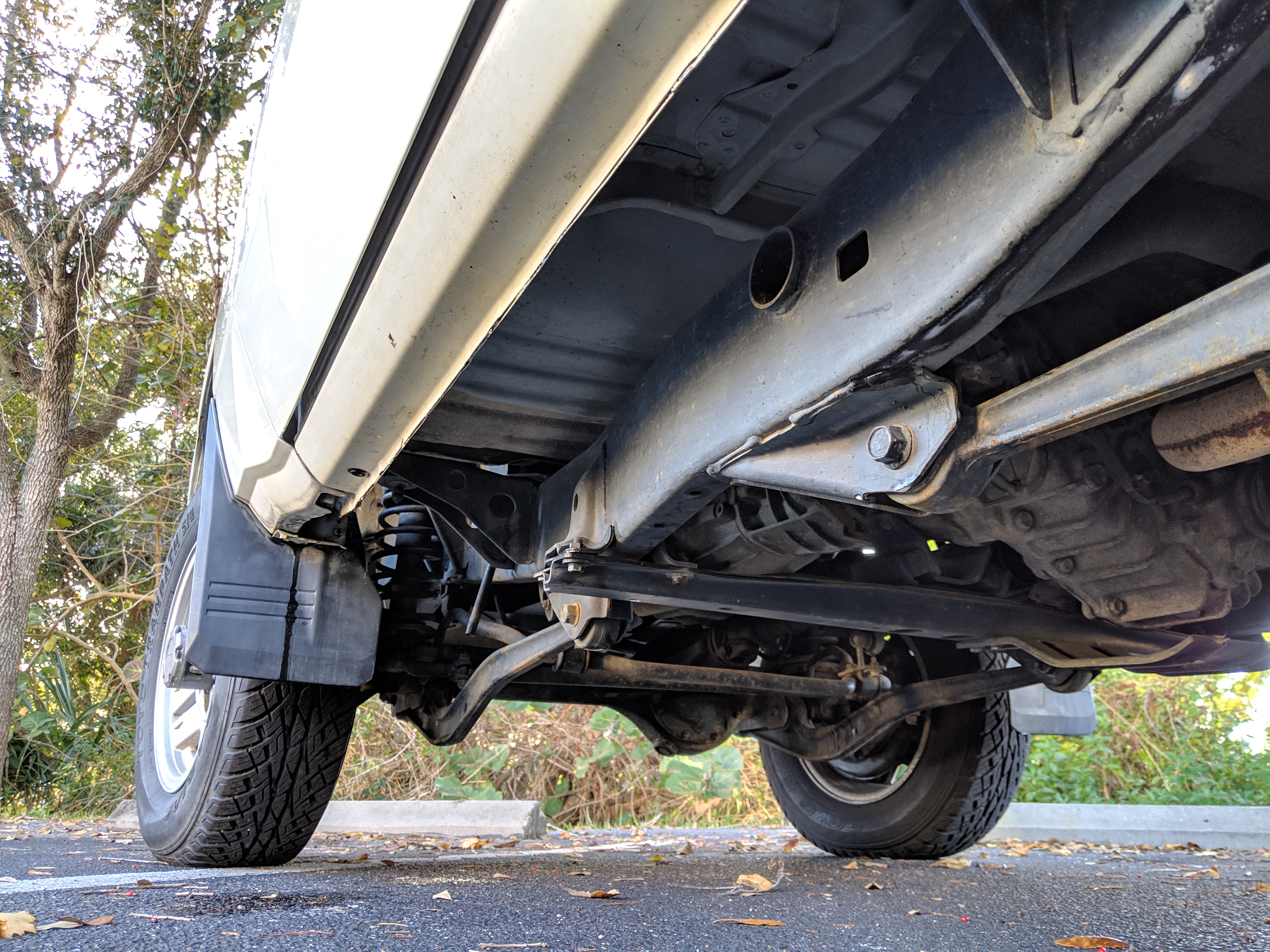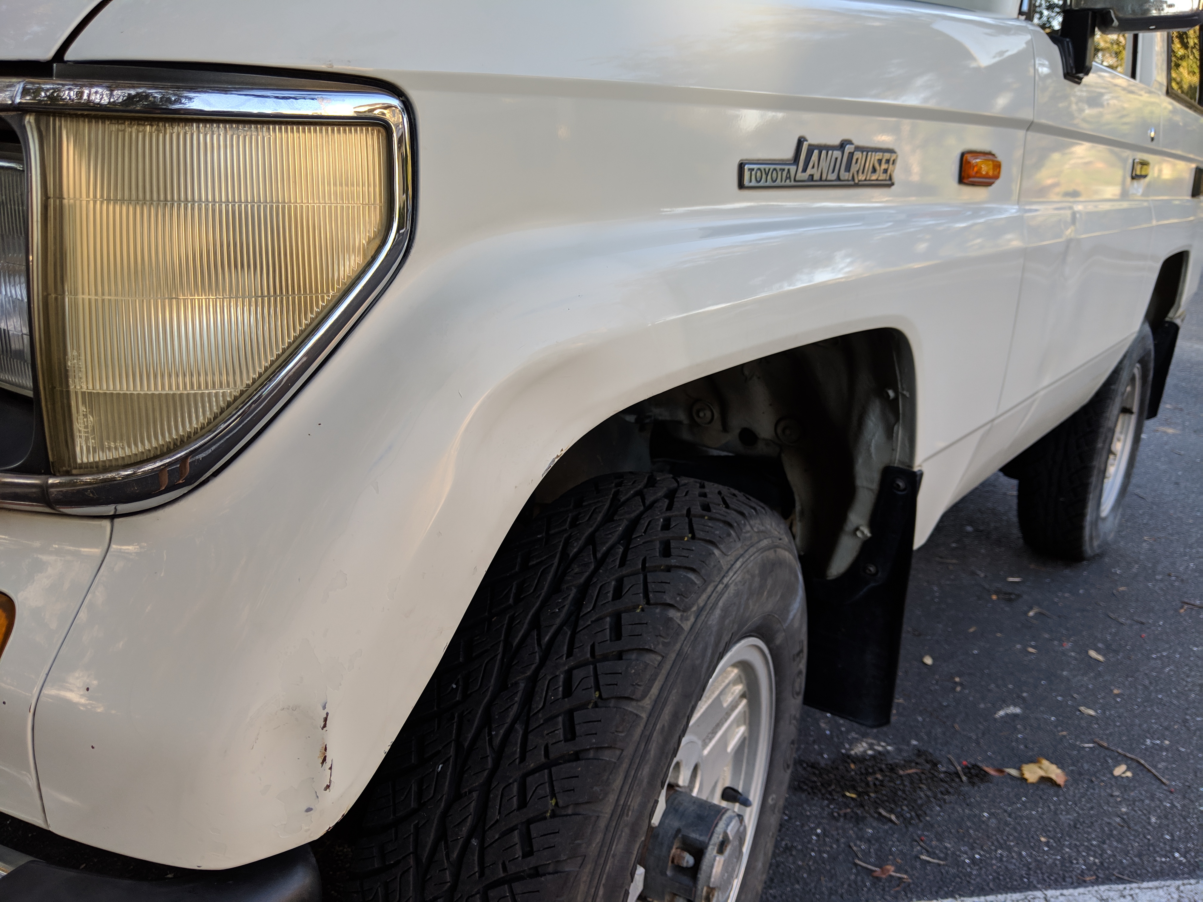 The bad: There are two small bits of rust on either side of the bottom sill just behind the doors. Left side has rusted through the top layer but isn't a through hole. Right side is bubbling in the same place. No other corrosion anywhere else as the pictures show. There is a large sized dent in the left side door that runs pretty much from the bottom to the top of the door. There are smaller dents on the left front fender. This doesn't have an effect on the door opening and shutting, it's just cosmetic. The heater core has been bypassed, I imported it like this and have never bothered to pull the heater core out to see what the deal was, I assume it's clogged hence the bypass. As a result it does not have heat, though the AC and blowers work a treat. The truck itself runs cool even in the blazing Florida sun. The rear center step has a dent as shown.