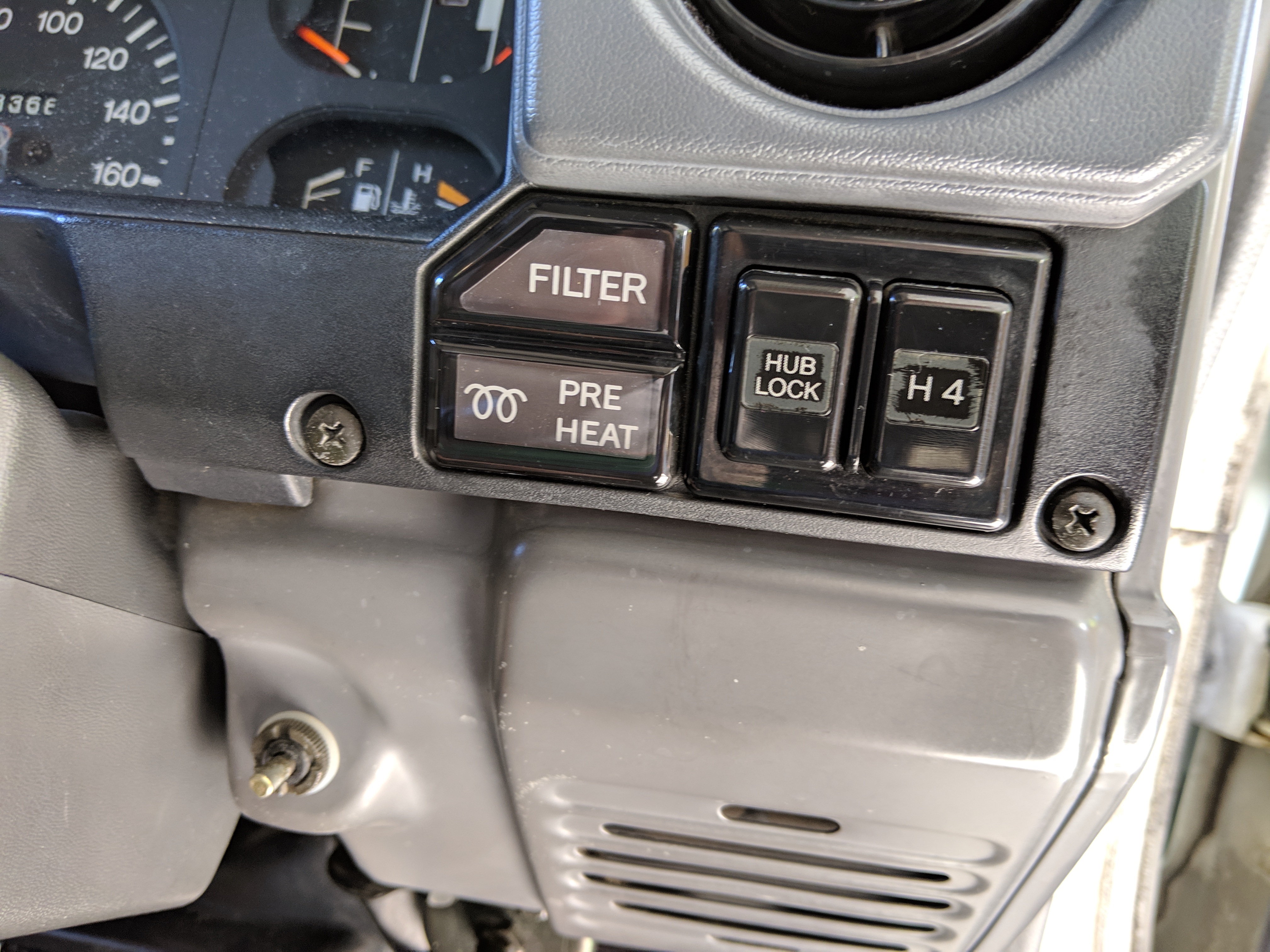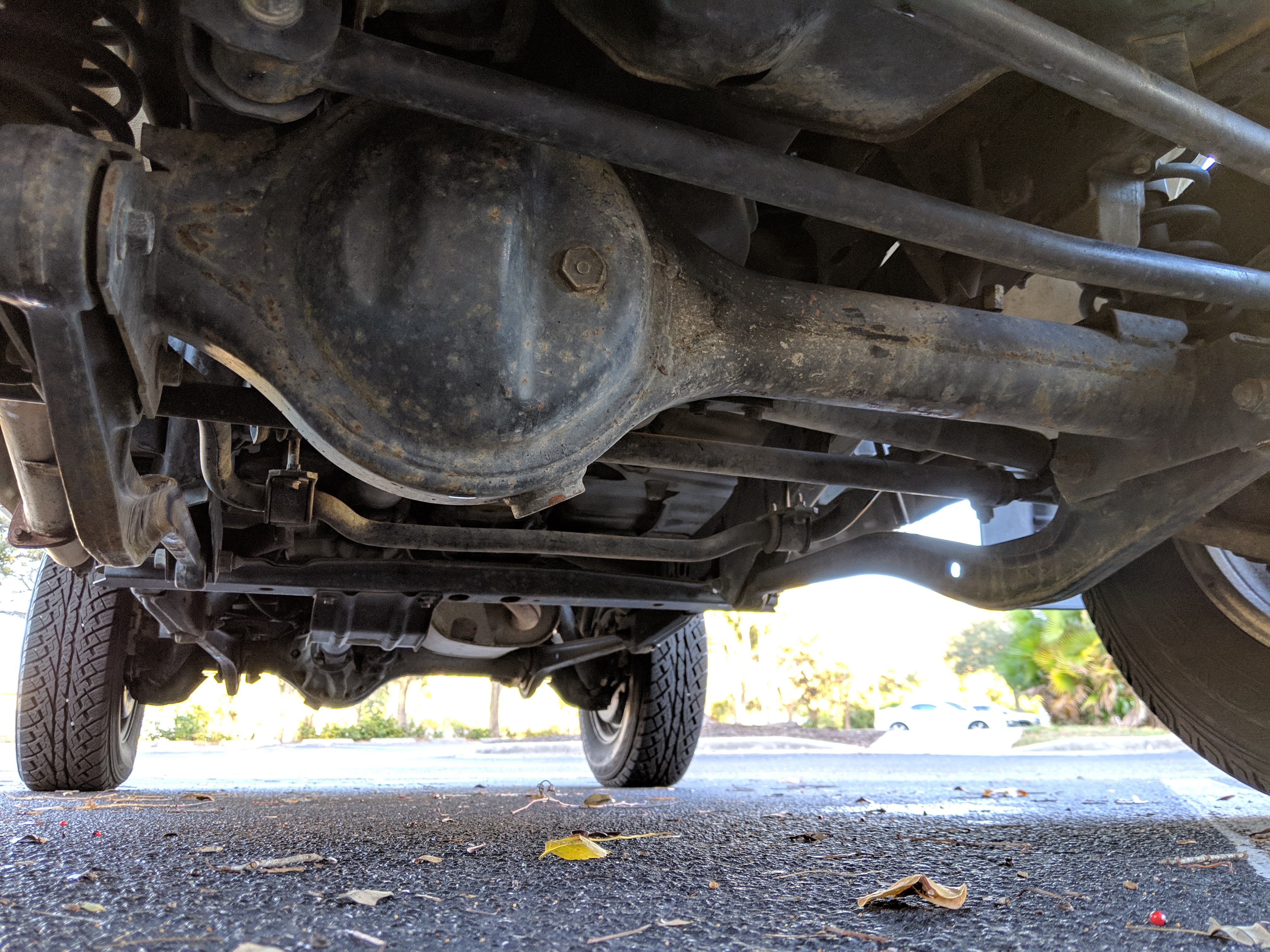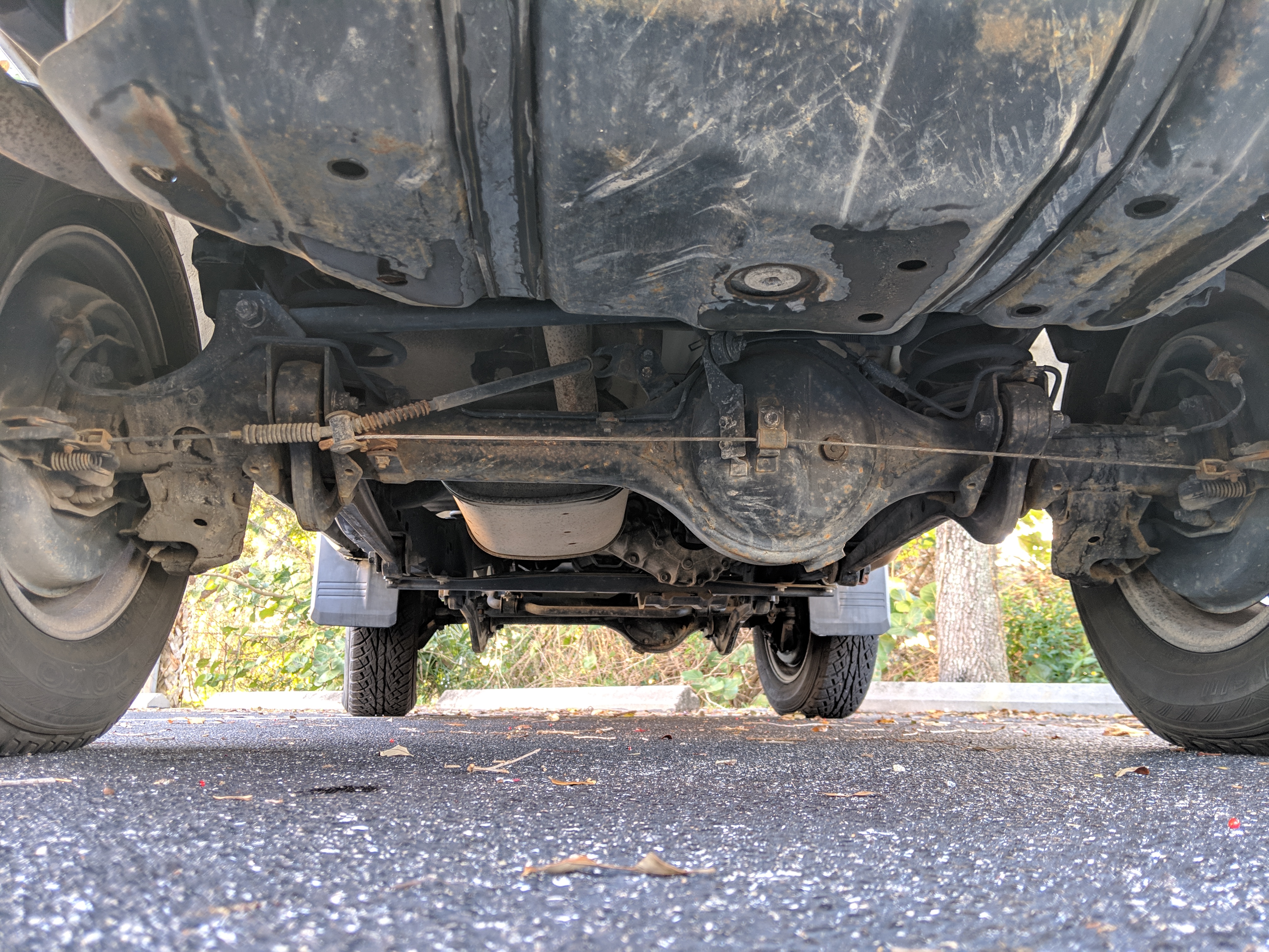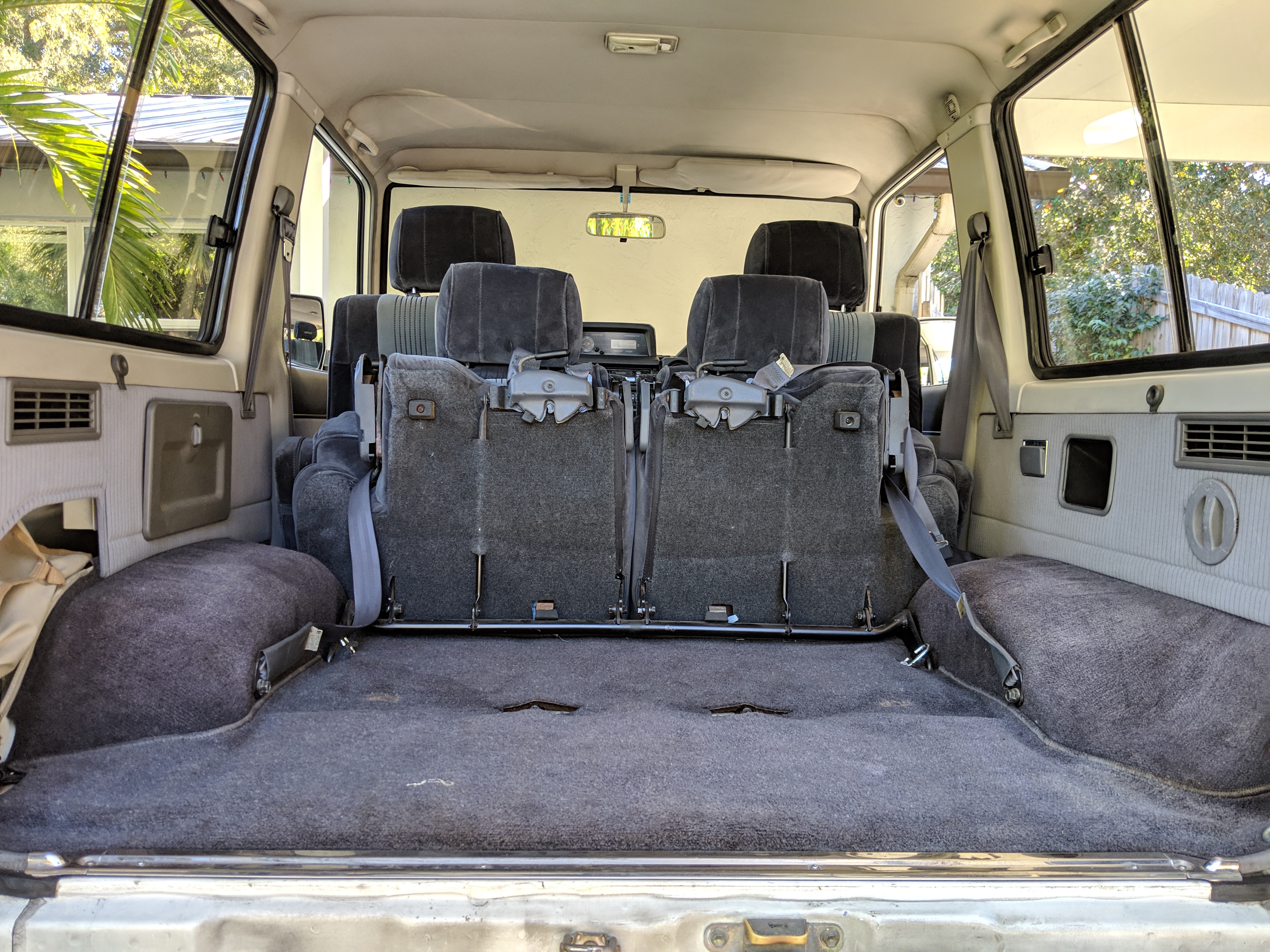 The bad: There are two small bits of rust on either side of the bottom sill just behind the doors. Left side has rusted through the top layer but isn't a through hole. Right side is bubbling in the same place. No other corrosion anywhere else as the pictures show. There is a large sized dent in the left side door that runs pretty much from the bottom to the top of the door. There are smaller dents on the left front fender. This doesn't have an effect on the door opening and shutting, it's just cosmetic. The heater core has been bypassed, I imported it like this and have never bothered to pull the heater core out to see what the deal was, I assume it's clogged hence the bypass. As a result it does not have heat, though the AC and blowers work a treat. The truck itself runs cool even in the blazing Florida sun. The rear center step has a dent as shown.