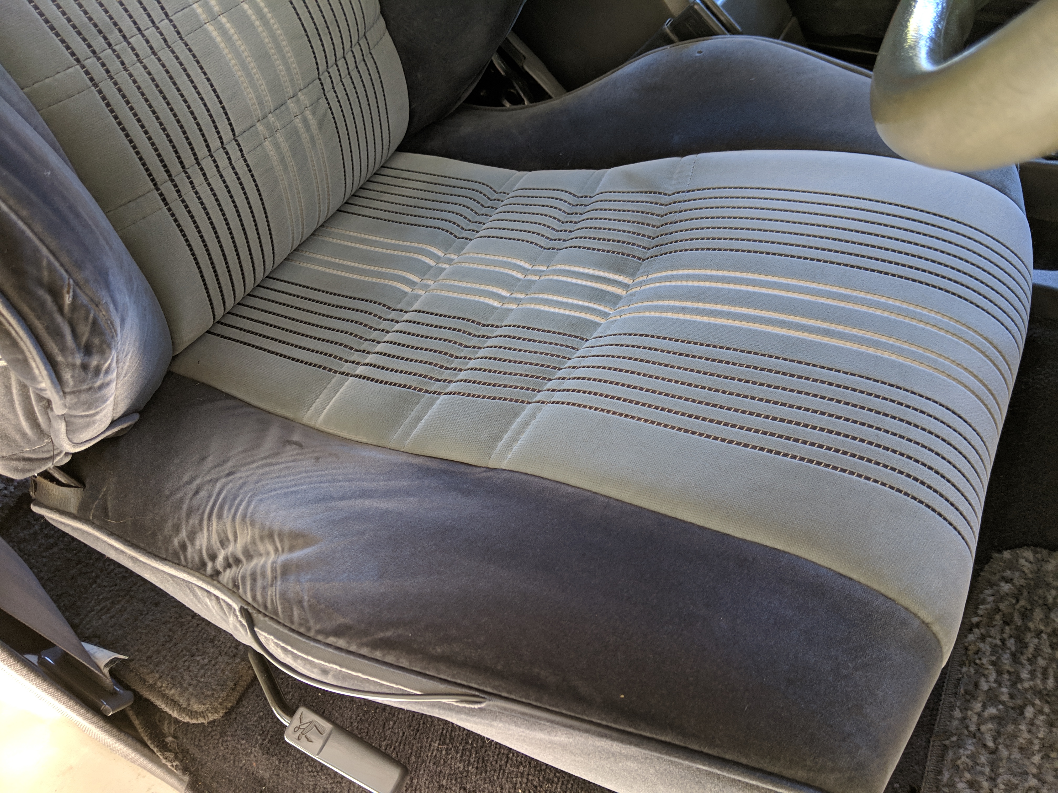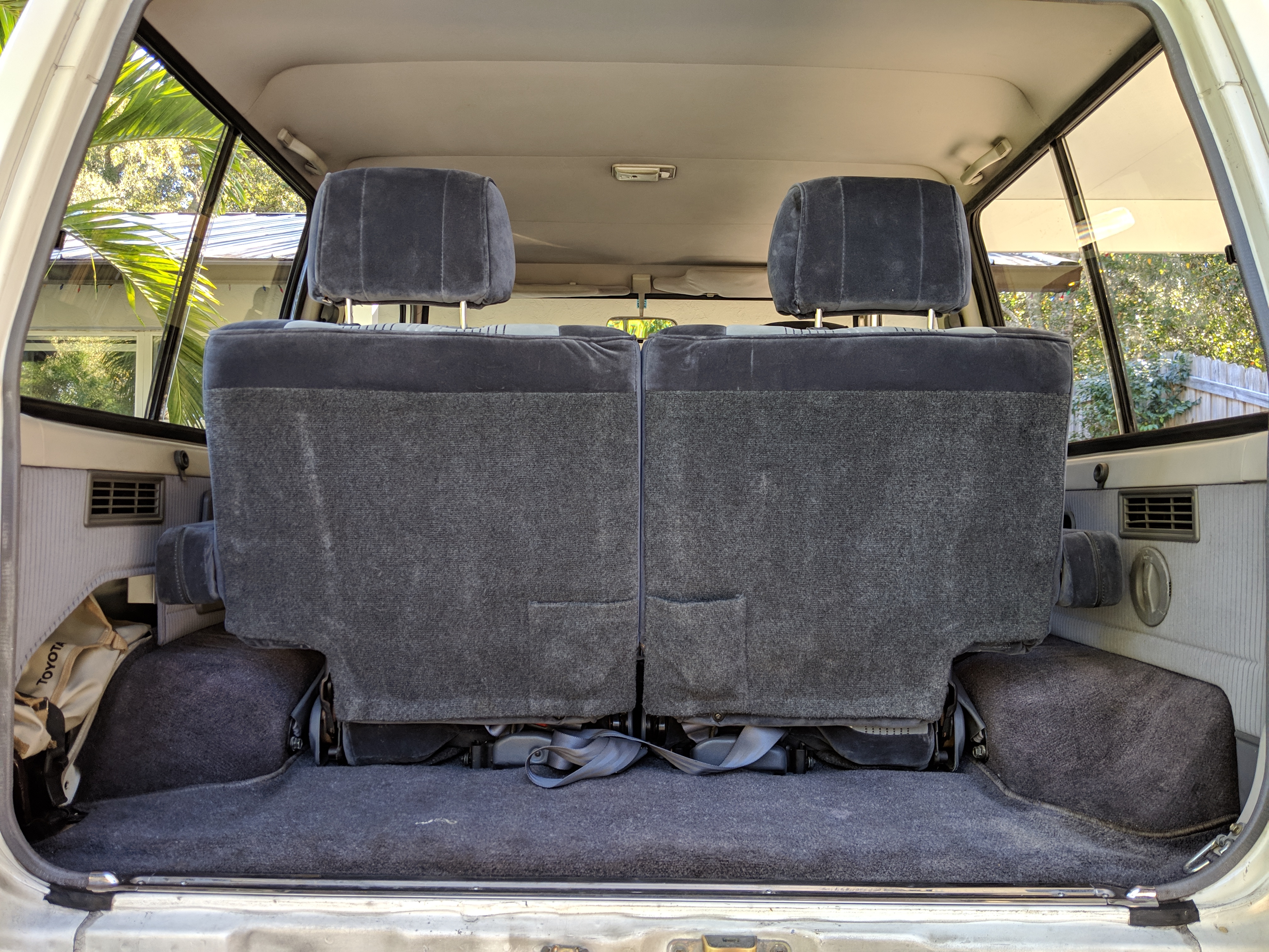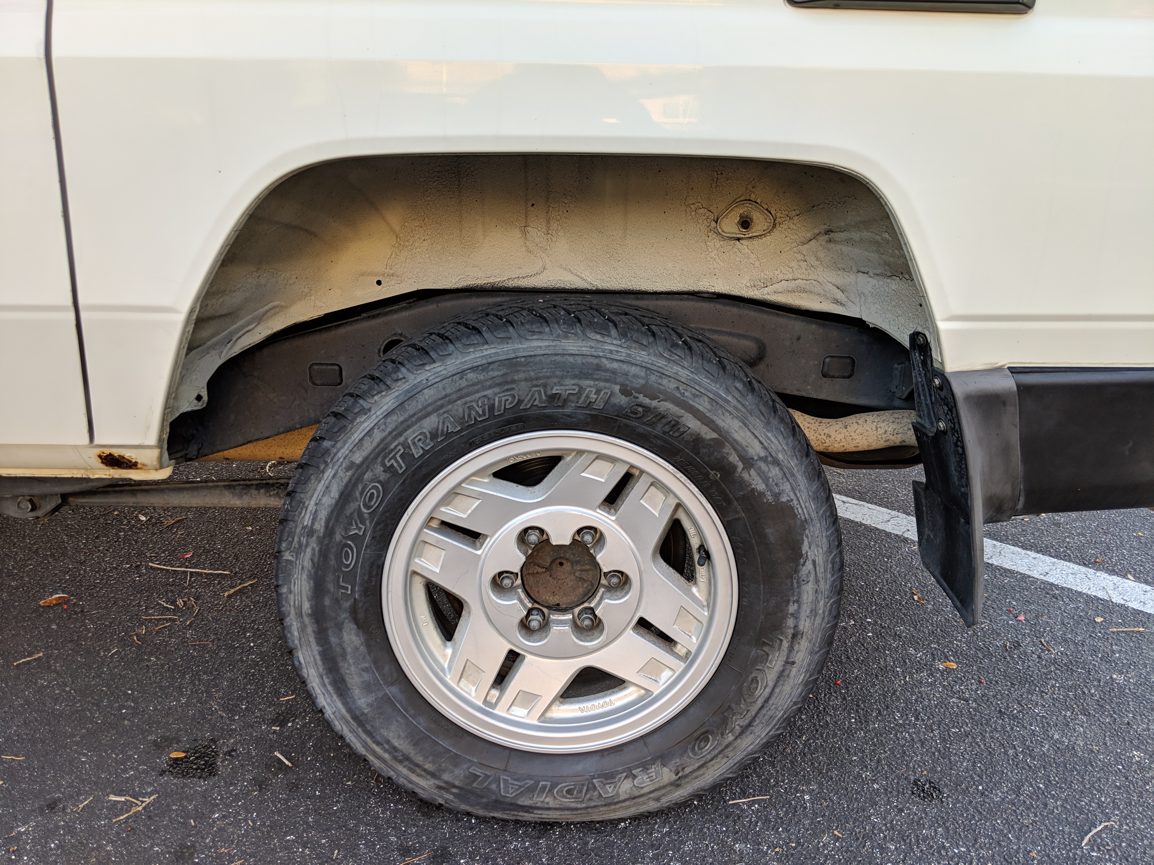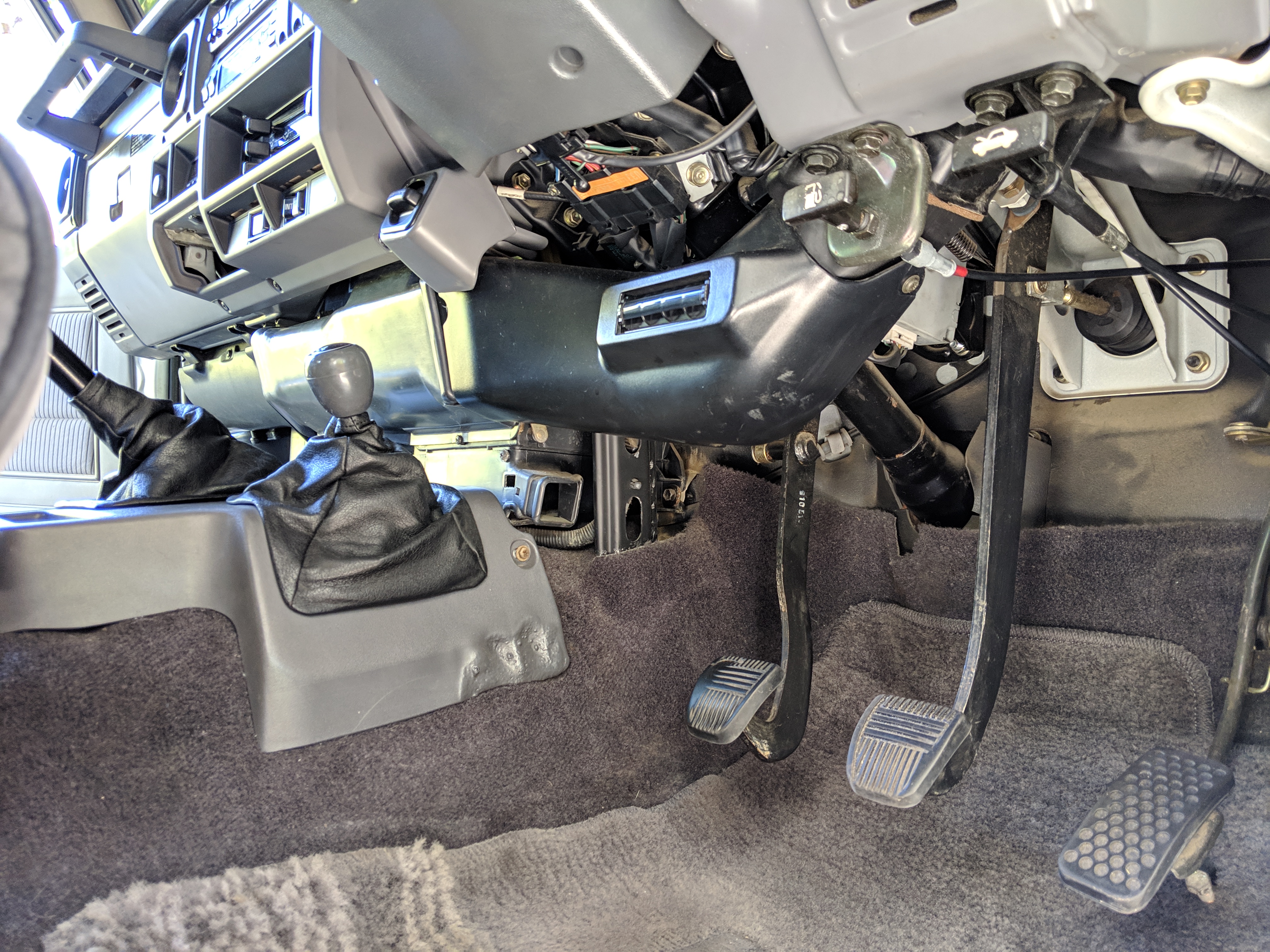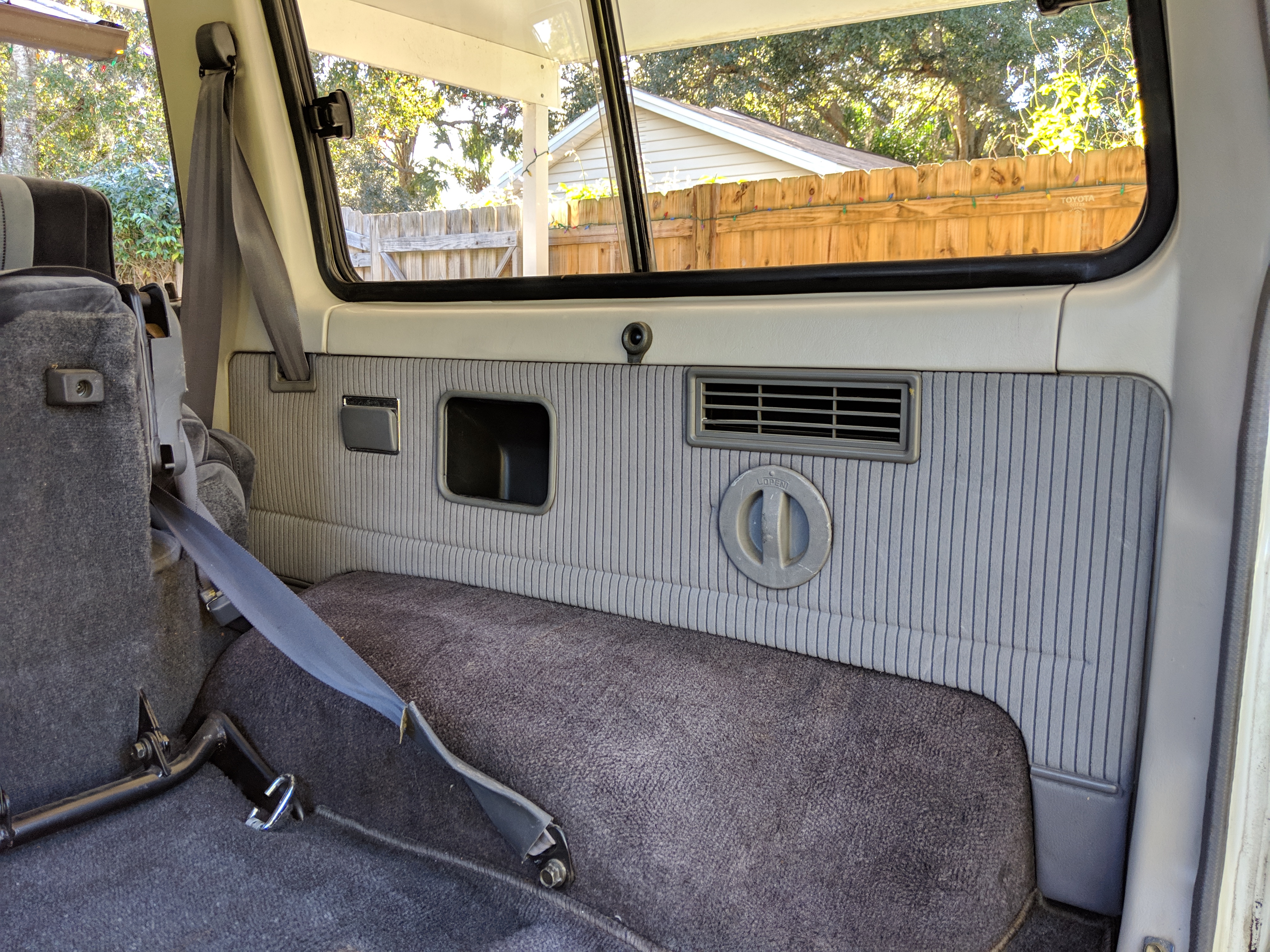 The bad: There are two small bits of rust on either side of the bottom sill just behind the doors. Left side has rusted through the top layer but isn't a through hole. Right side is bubbling in the same place. No other corrosion anywhere else as the pictures show. There is a large sized dent in the left side door that runs pretty much from the bottom to the top of the door. There are smaller dents on the left front fender. This doesn't have an effect on the door opening and shutting, it's just cosmetic. The heater core has been bypassed, I imported it like this and have never bothered to pull the heater core out to see what the deal was, I assume it's clogged hence the bypass. As a result it does not have heat, though the AC and blowers work a treat. The truck itself runs cool even in the blazing Florida sun. The rear center step has a dent as shown.