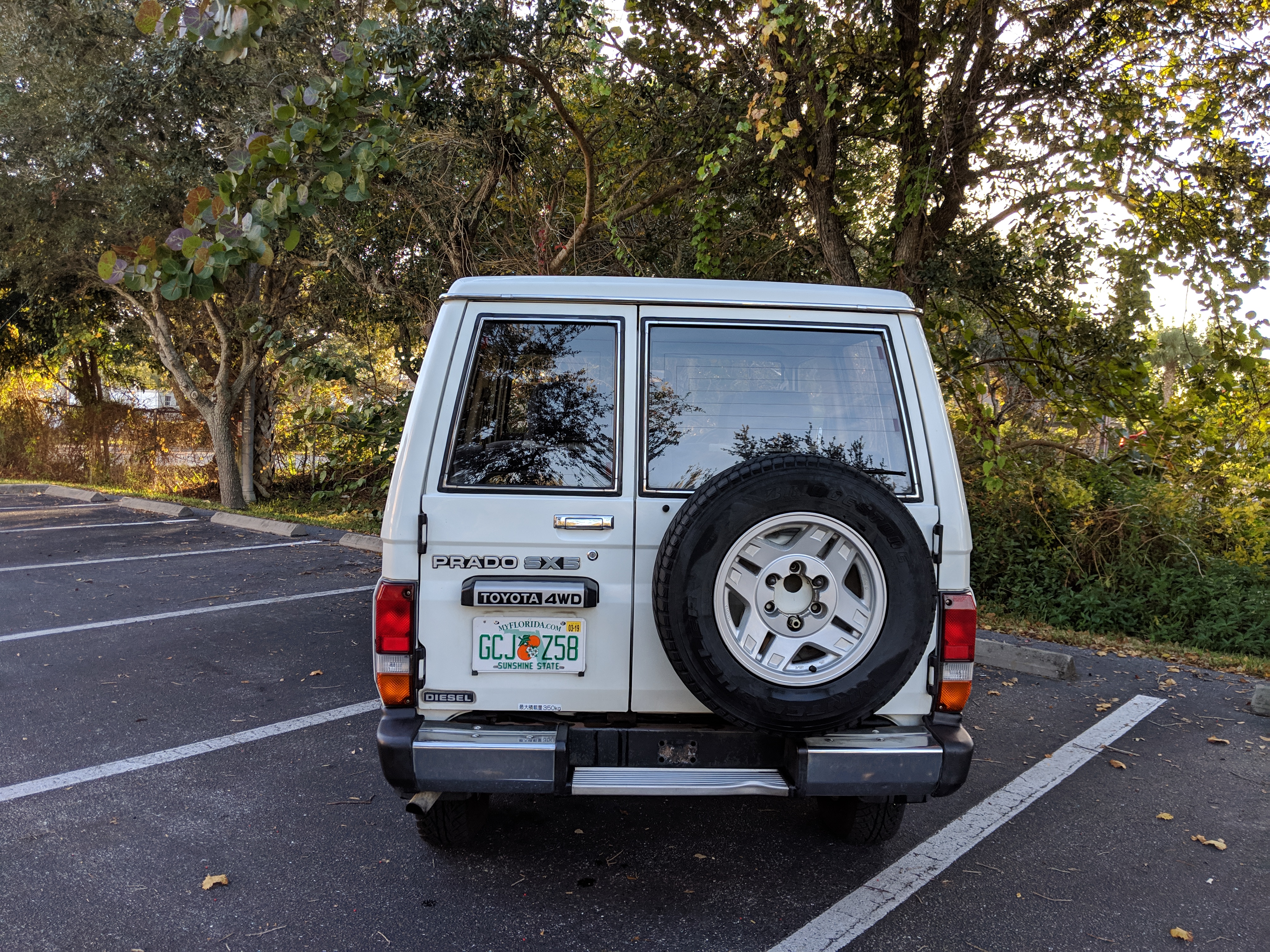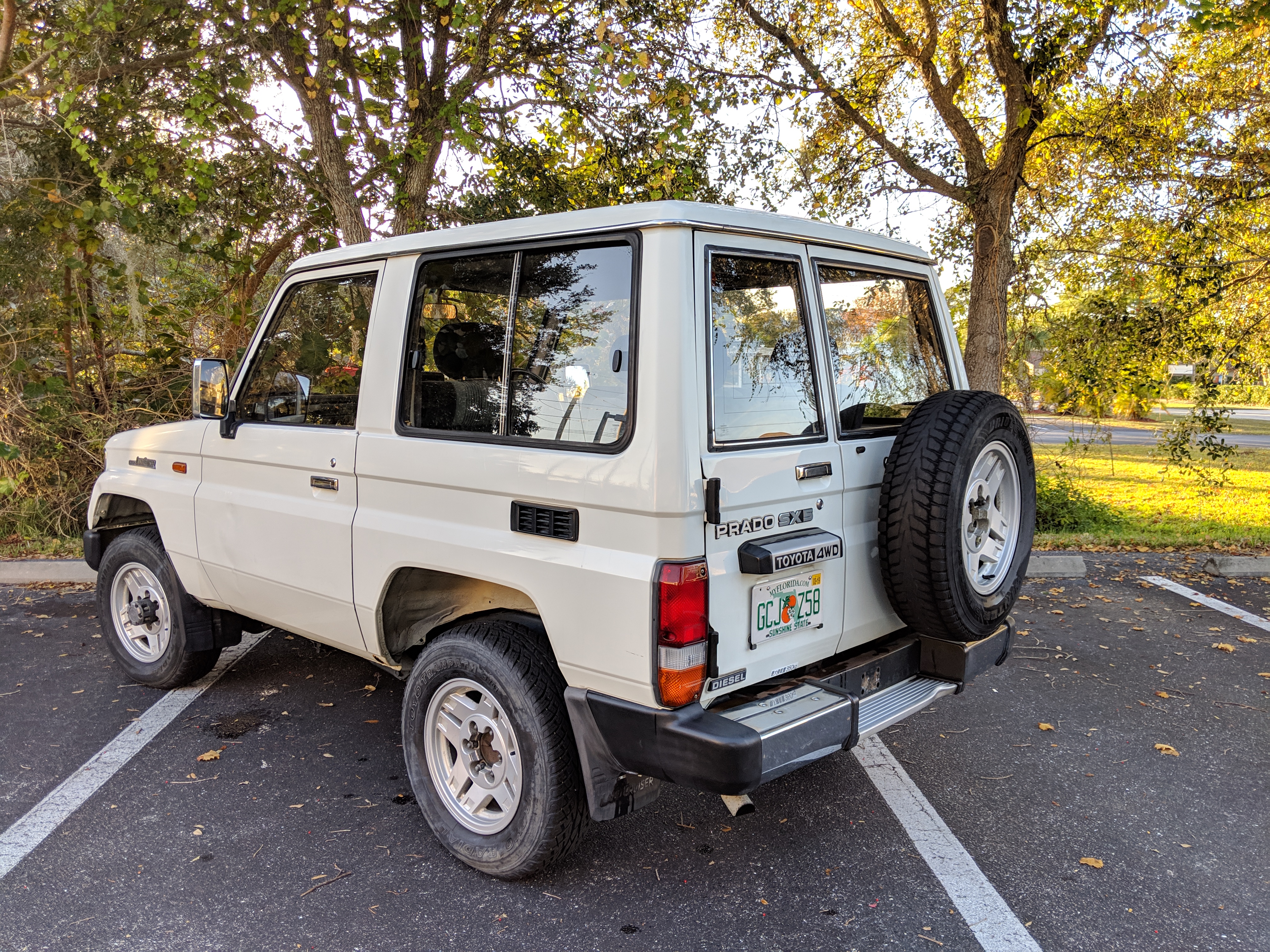 This Land Cruiser Prado is a body on frame, solid axle front and back, coil sprung, short wheelbase, 2 door turbo diesel SUV with a 5 speed manual transmission and a rear locking differential. This is a one owner vehicle.