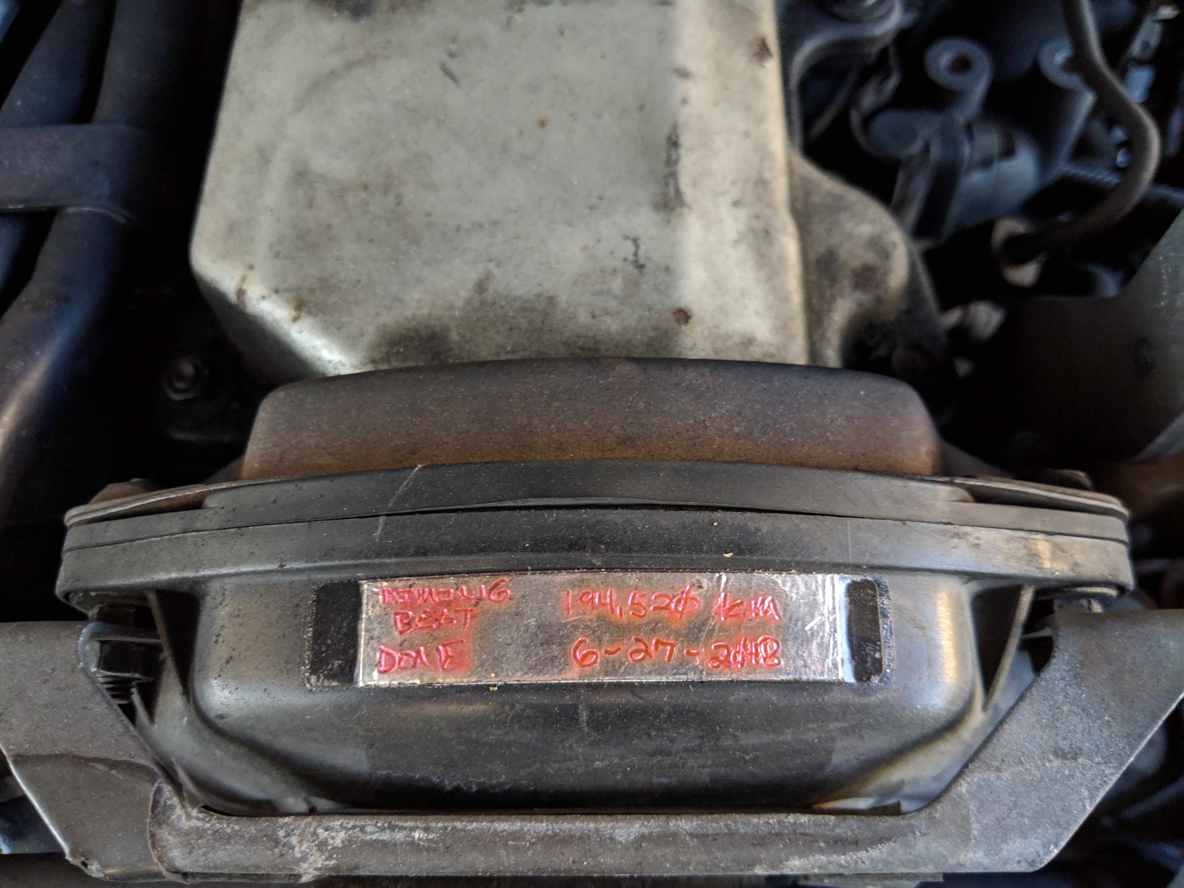 In June of 2018 the timing belt, tensioner and water pump were replaced along with the other accesory belts.
