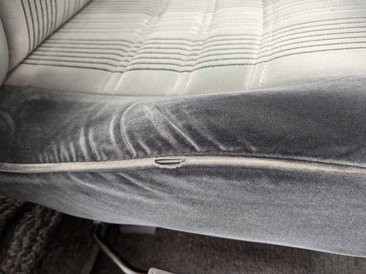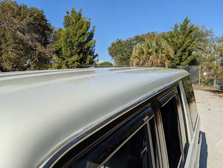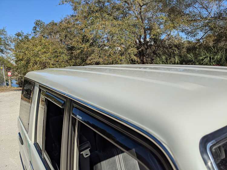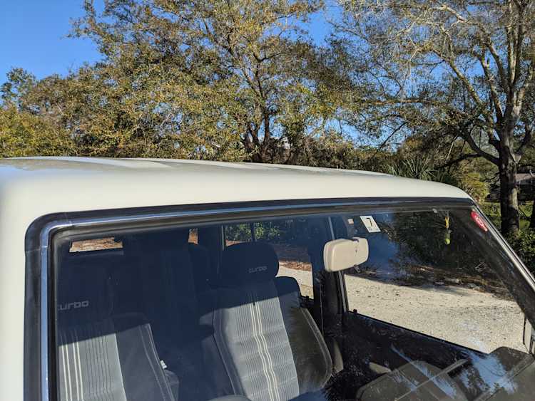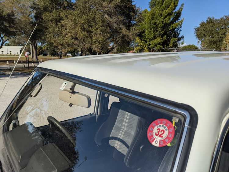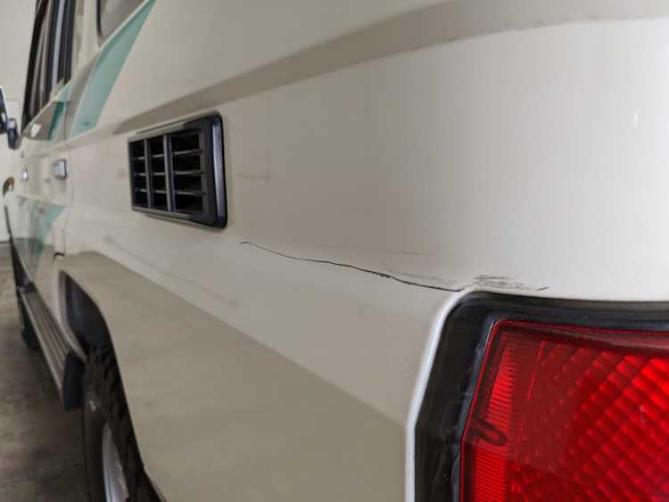 As this is a 30 year old vehicle there are flaws, though they are minor. There is a deep scratch on the left rear right quarter panel just before the tail light. The decal stripes have light scratches. The front right plastic corner has been impacted enough to give it a permanent crease, while the left front bumper has a smooth fist-sized impression on the face. Both rear bumper corners have gouges and scratches. Driver and passenger door edges have chips and paint wear, with the driver’s side having the worst of it.