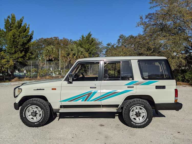 We start with this because we want to highlight just how pretty this Land Cruiser is, how much people can’t keep their eyes off it. We import a lot of cool stuff, and each vehicle has its charms. Some vehicles are more special than others. Some of them transcend even that and move even higher up. This 1991 Prado, with its exceptionally low miles, it’s clean bright paint, smooth panels and original body stripe is special. Even people that don’t care about cars, let alone classic SUVs, look at this.