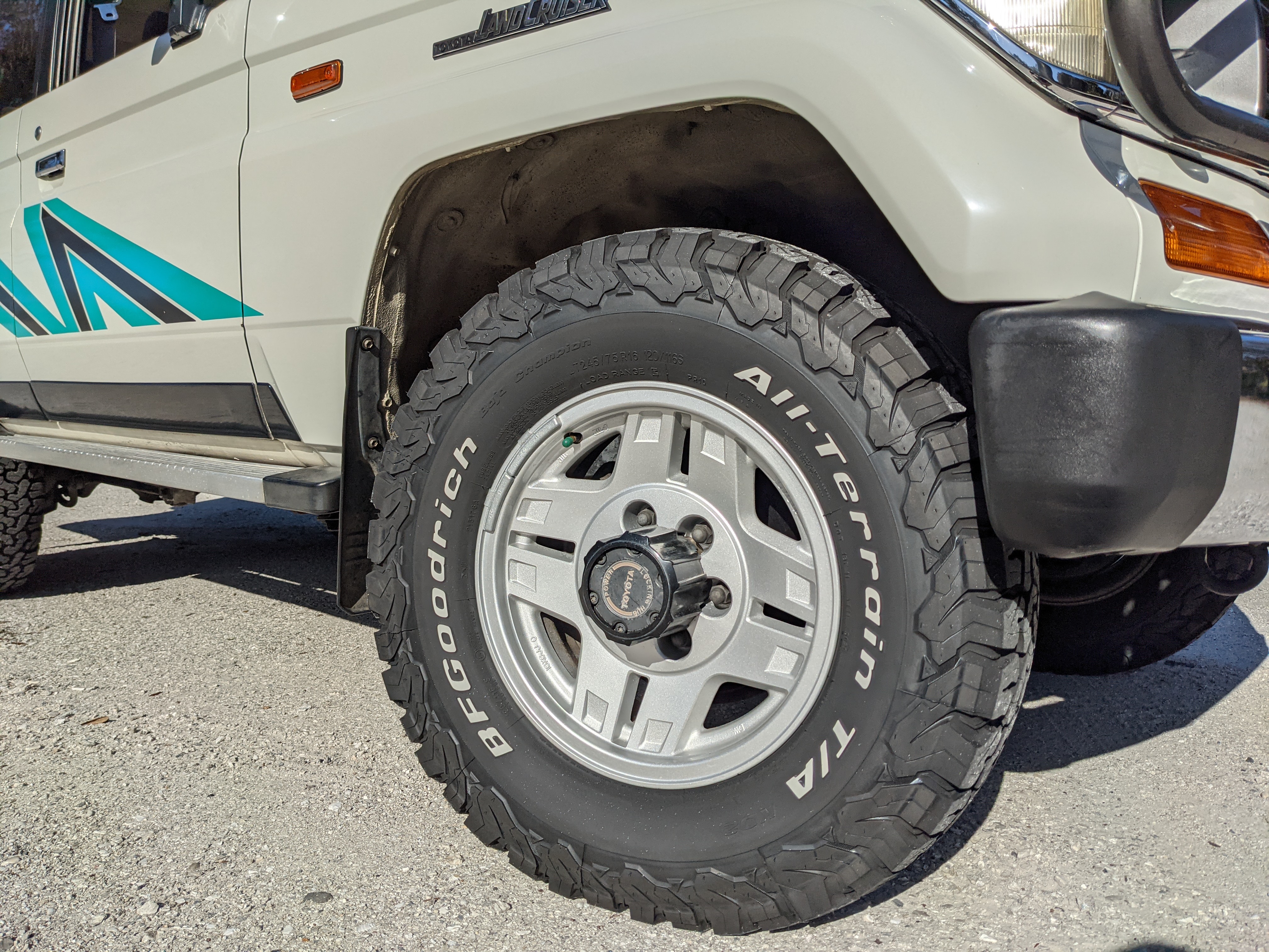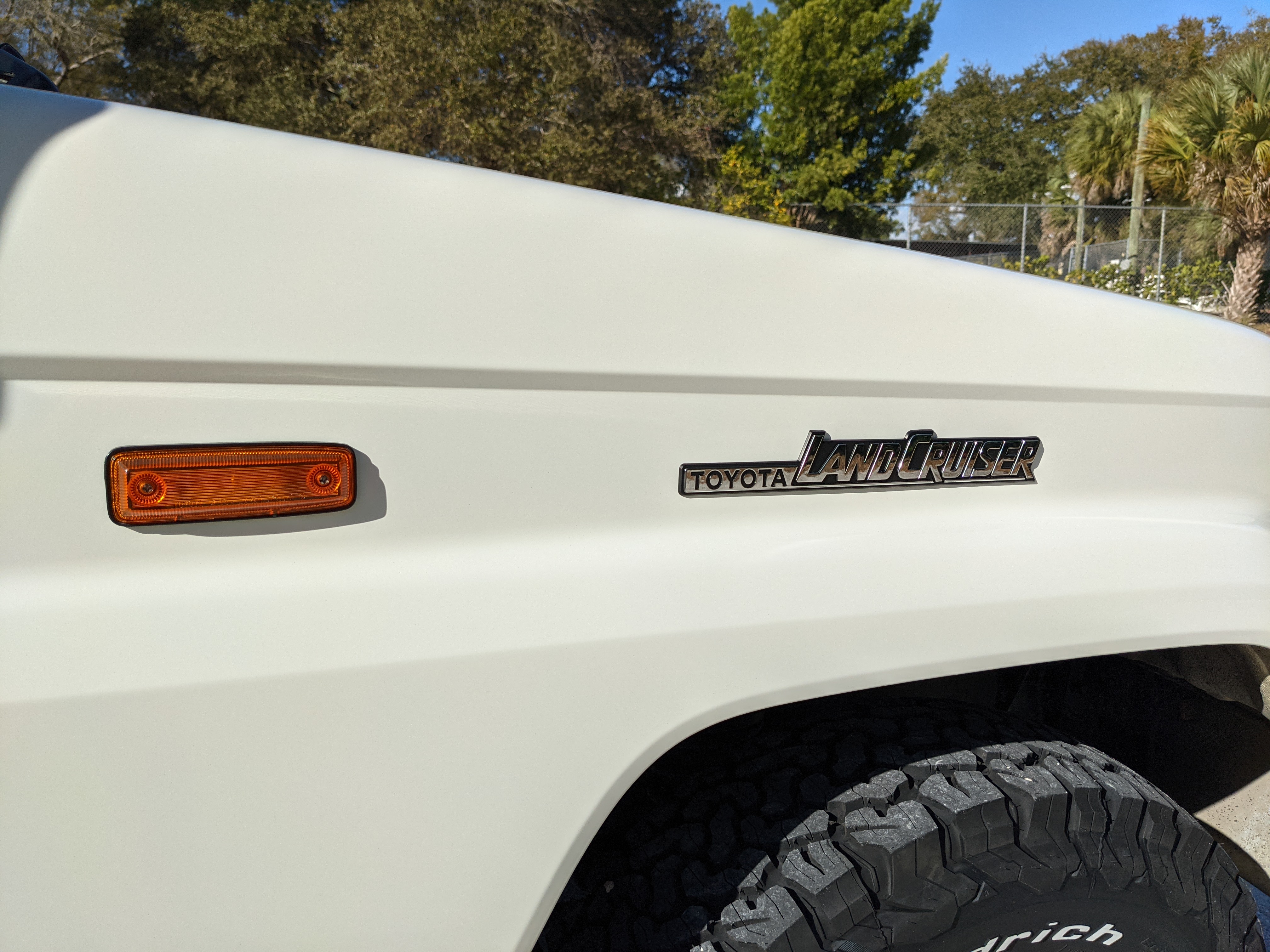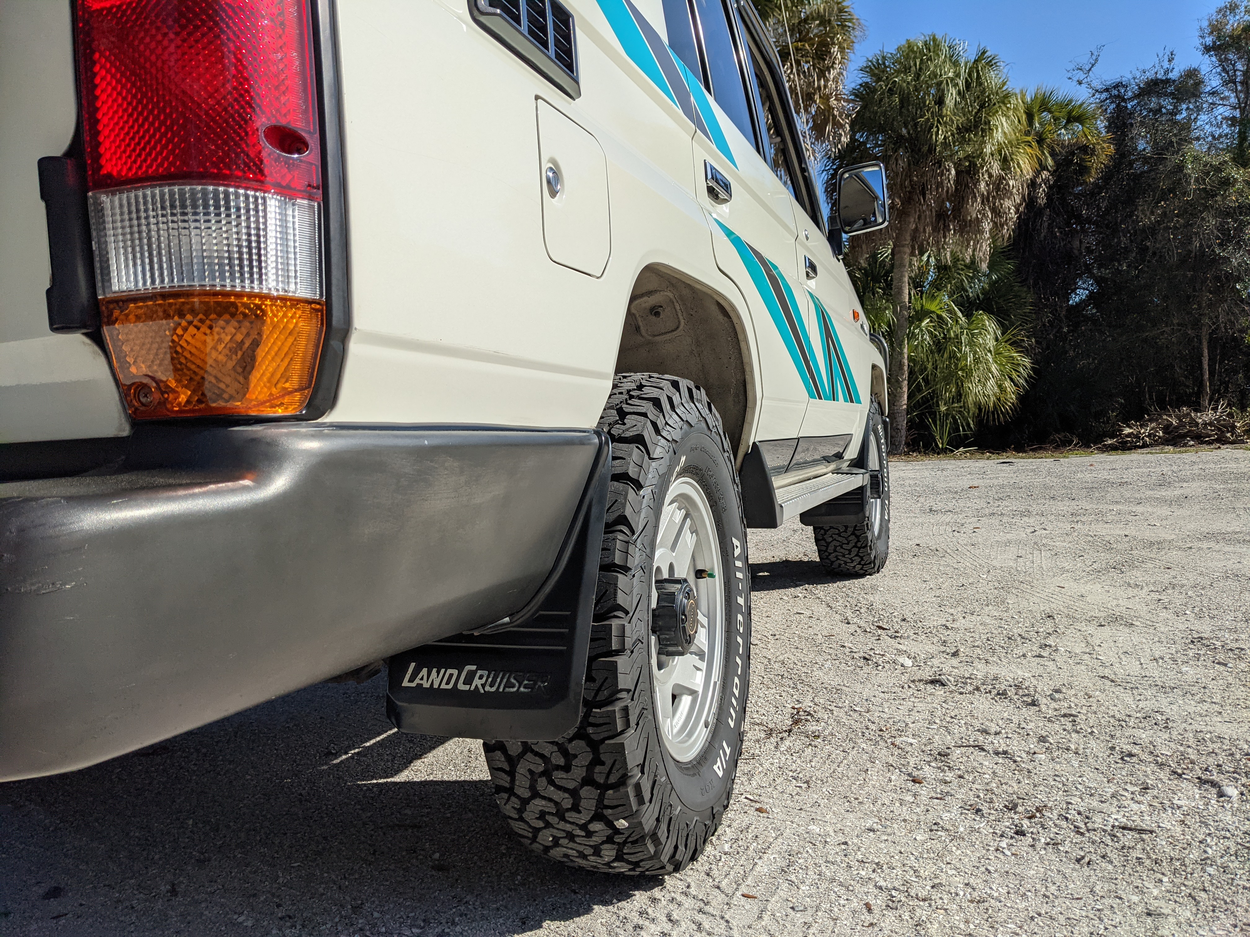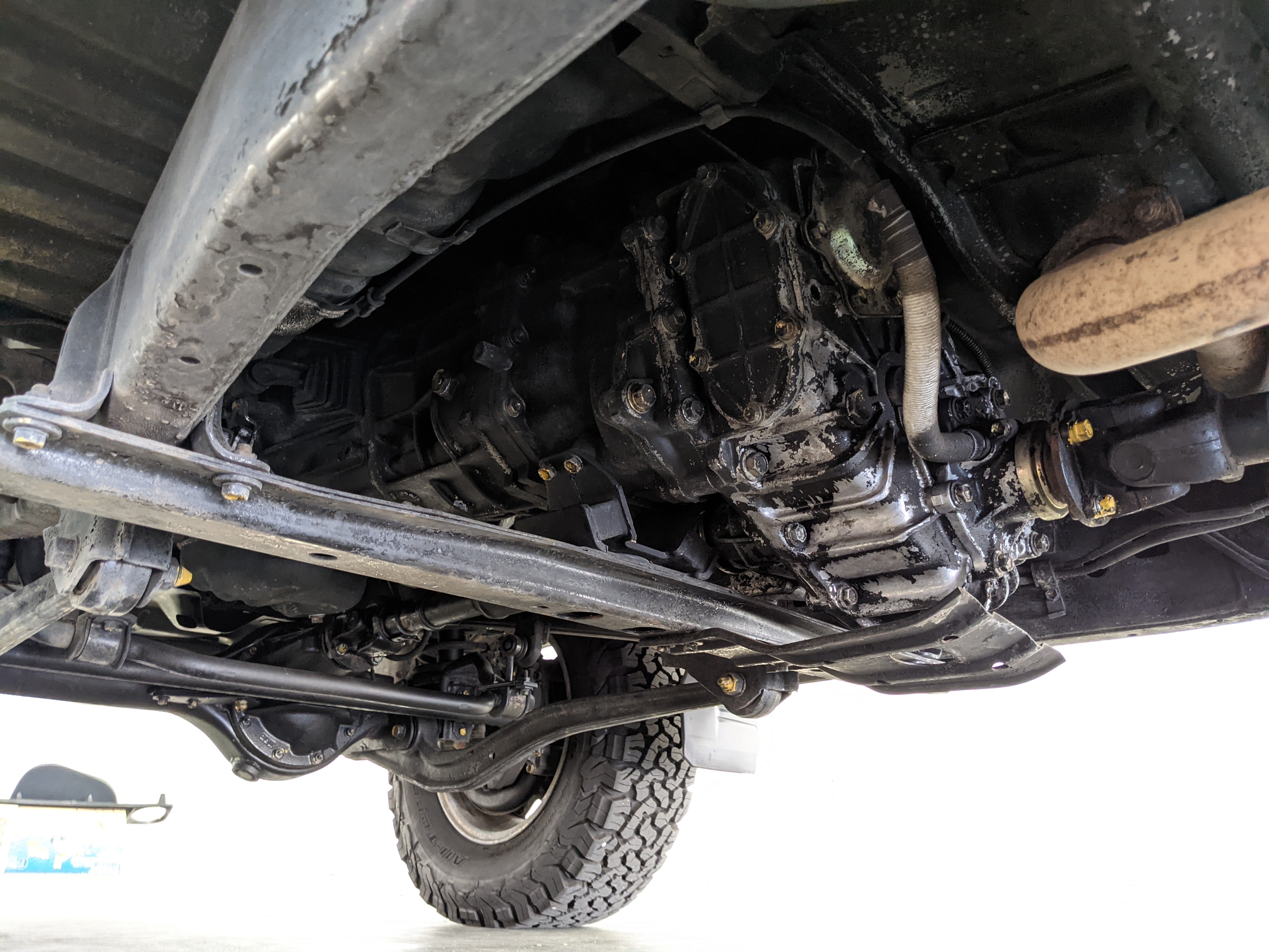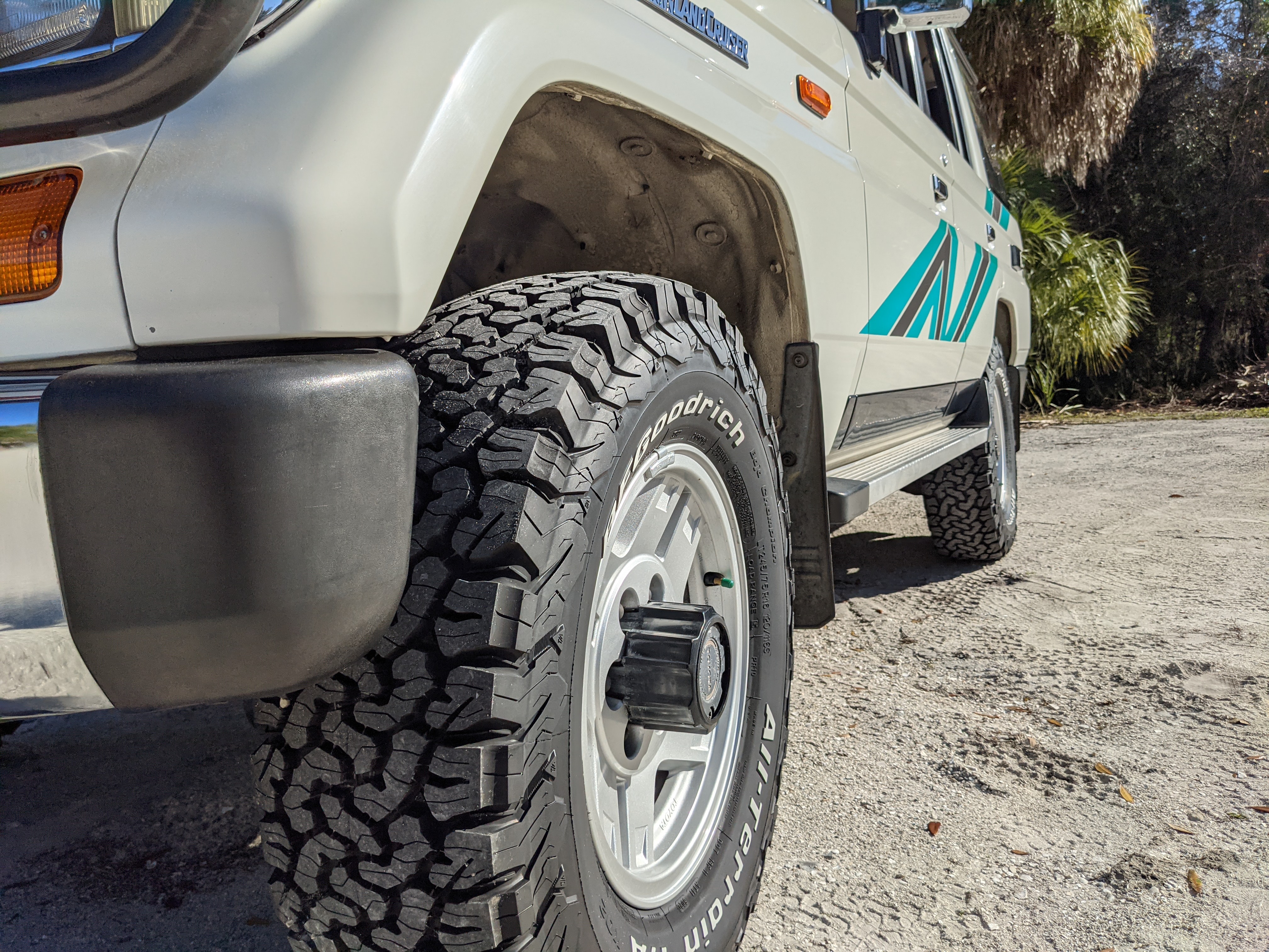 Exterior-wise, this Prado wears Toyota’s ‘Super White’ single-stage paint dressed with the optional body stripe package, and boy does it shine. Included are original low-profile Toyota-branded rain guards for all four windows. Up front on the bumper is the OEM grill guard with factory-original yellow fog lights. Aluminum running boards are mounted on either side and are in great shape. The original wheels are here as well, all 5 (including the spare) have brand new BF Goodrich KO2s mounted, white letters out. All glass, lenses, logos and badges are in excellent shape. A nice bonus is the ‘Japan Automobile Federation' badge in the rear right inside window. There is no rust, no corrosion, no oxides of any kind on the body or the chassis. There is not a single detail out of place. It’s a stunner.