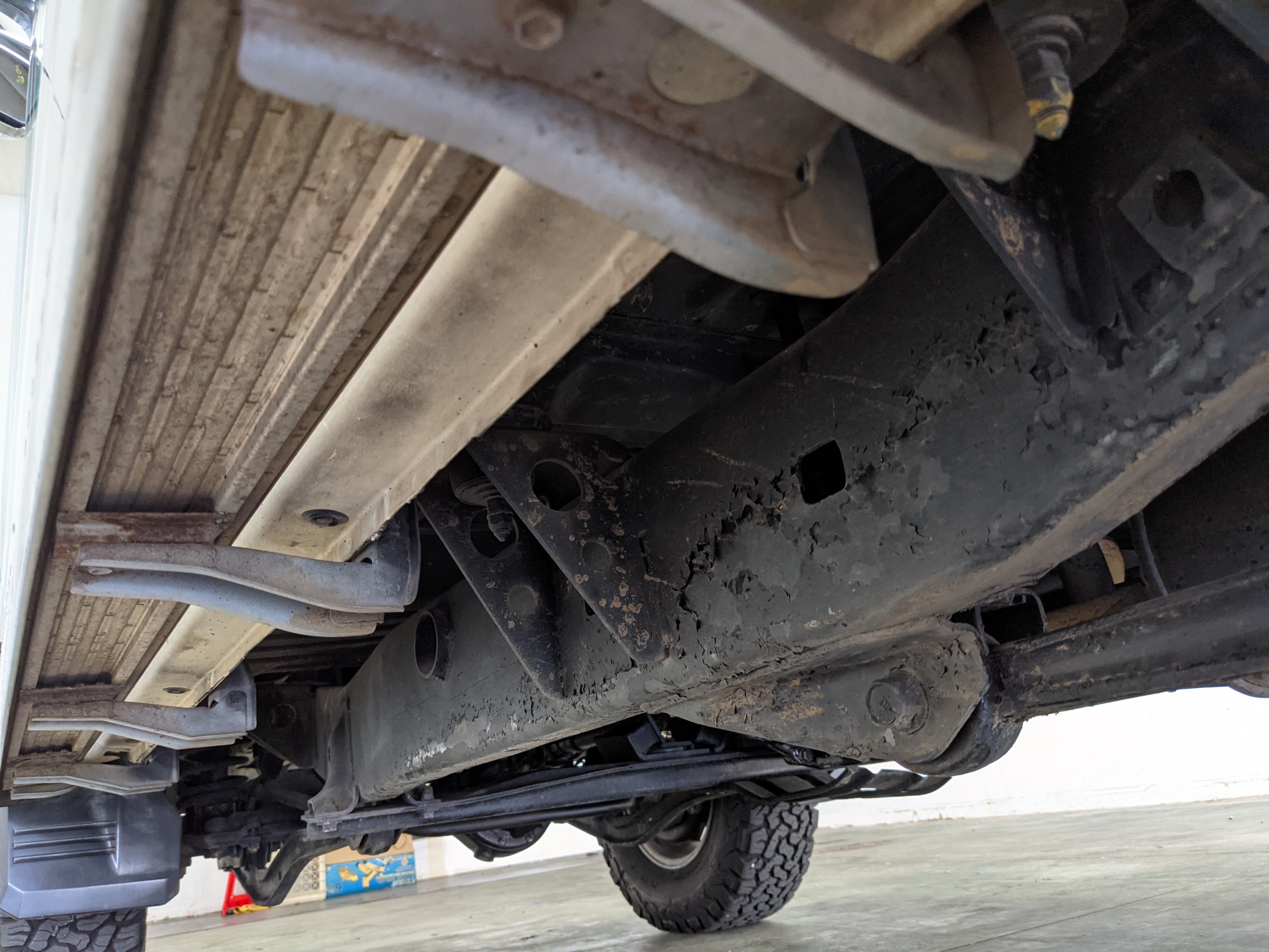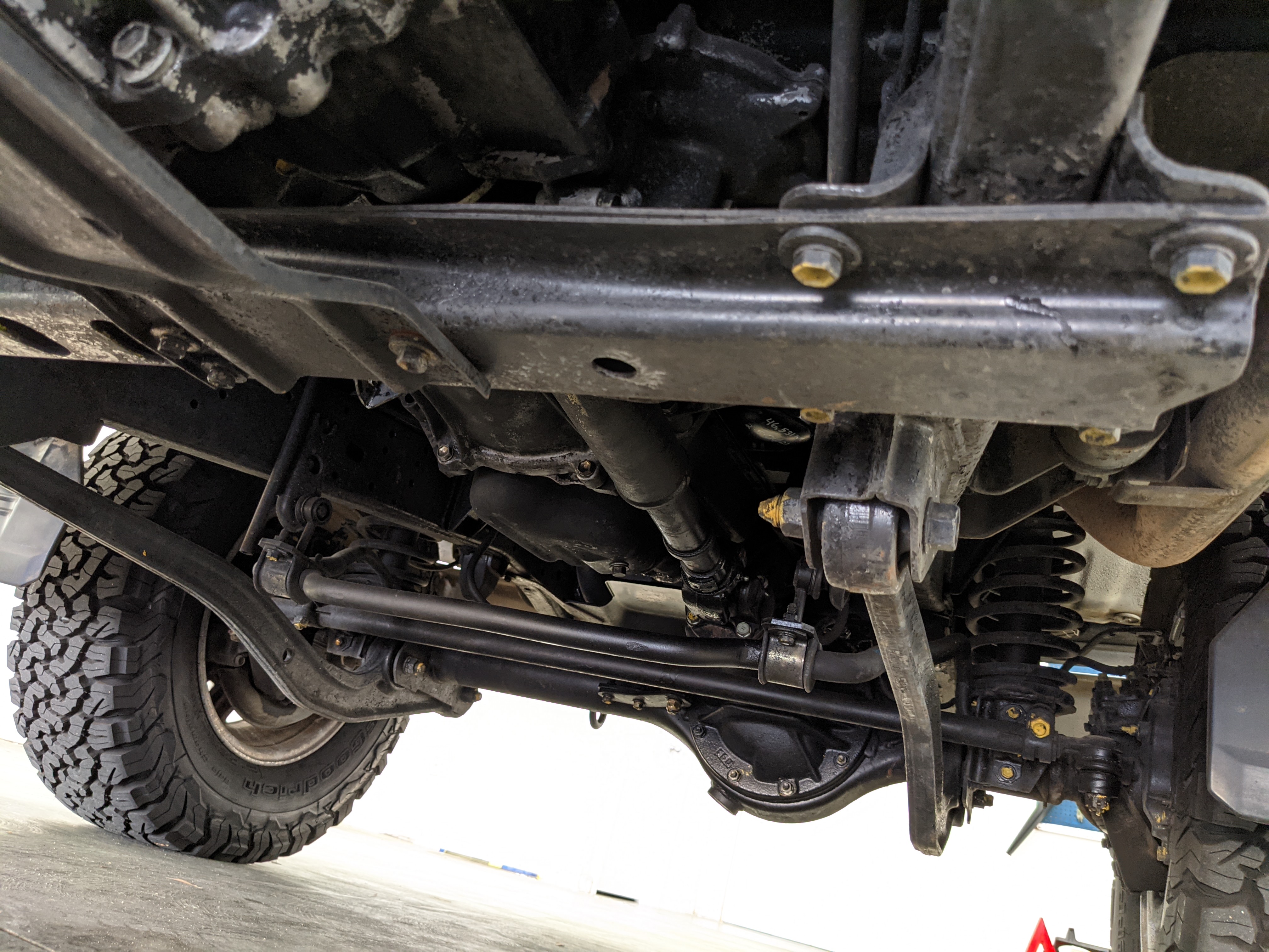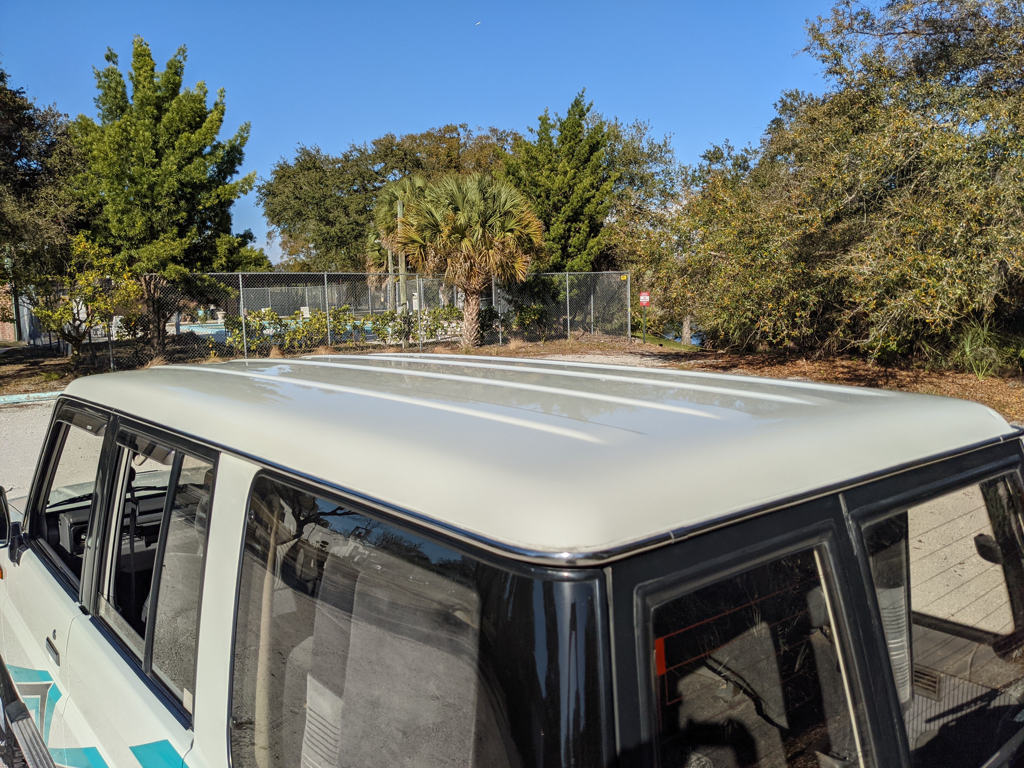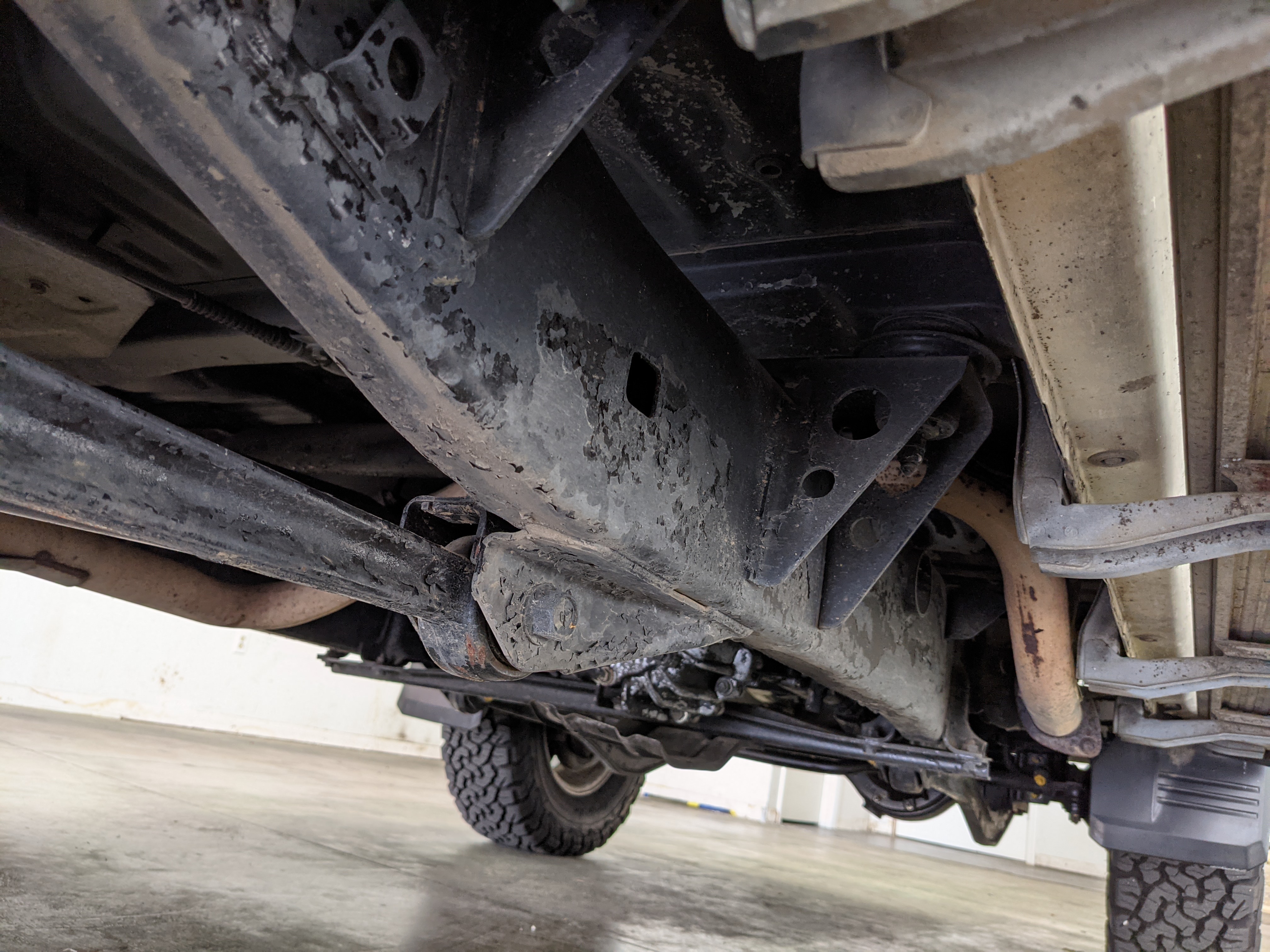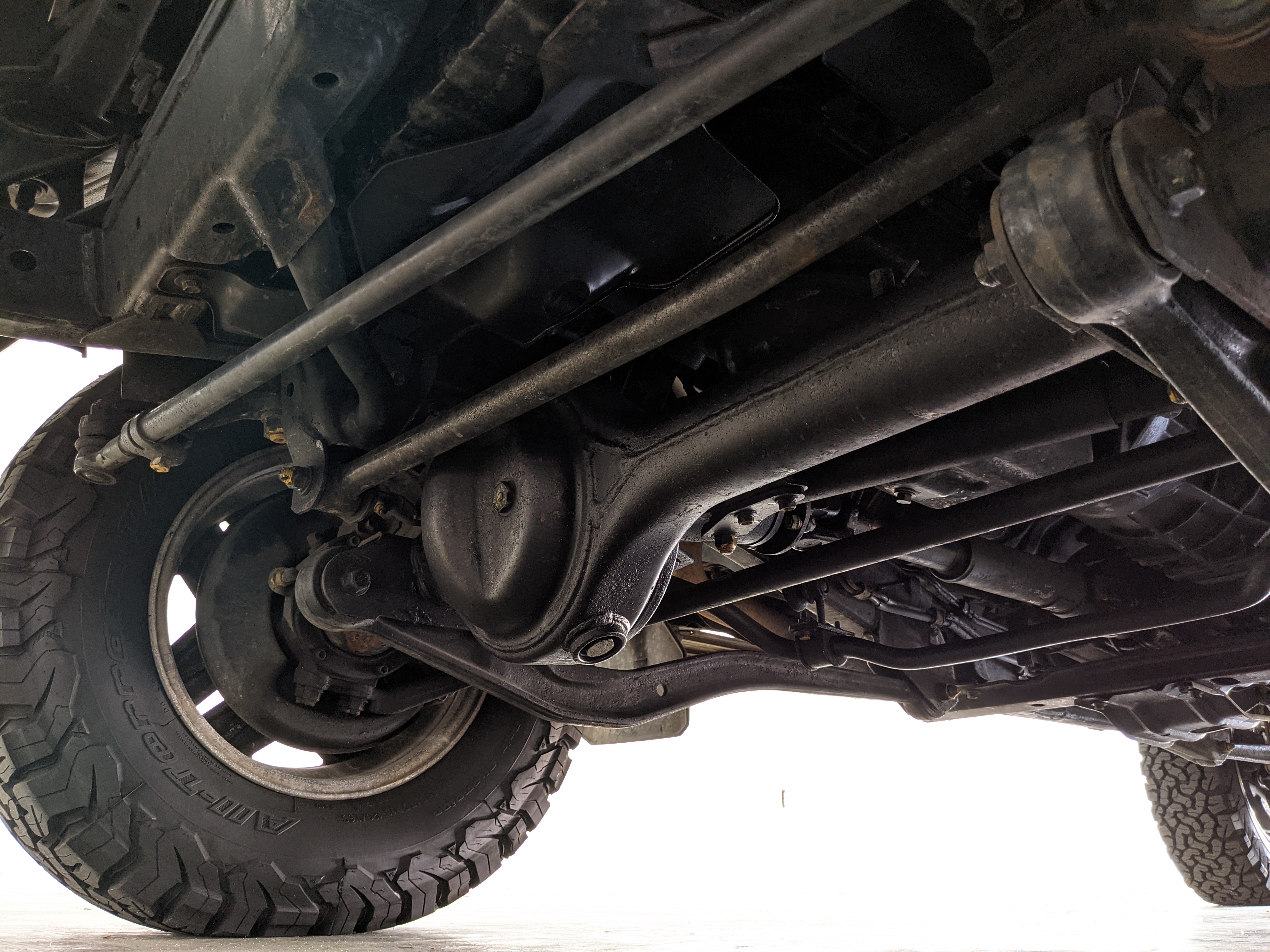 Exterior-wise, this Prado wears Toyota’s ‘Super White’ single-stage paint dressed with the optional body stripe package, and boy does it shine. Included are original low-profile Toyota-branded rain guards for all four windows. Up front on the bumper is the OEM grill guard with factory-original yellow fog lights. Aluminum running boards are mounted on either side and are in great shape. The original wheels are here as well, all 5 (including the spare) have brand new BF Goodrich KO2s mounted, white letters out. All glass, lenses, logos and badges are in excellent shape. A nice bonus is the ‘Japan Automobile Federation' badge in the rear right inside window. There is no rust, no corrosion, no oxides of any kind on the body or the chassis. There is not a single detail out of place. It’s a stunner.