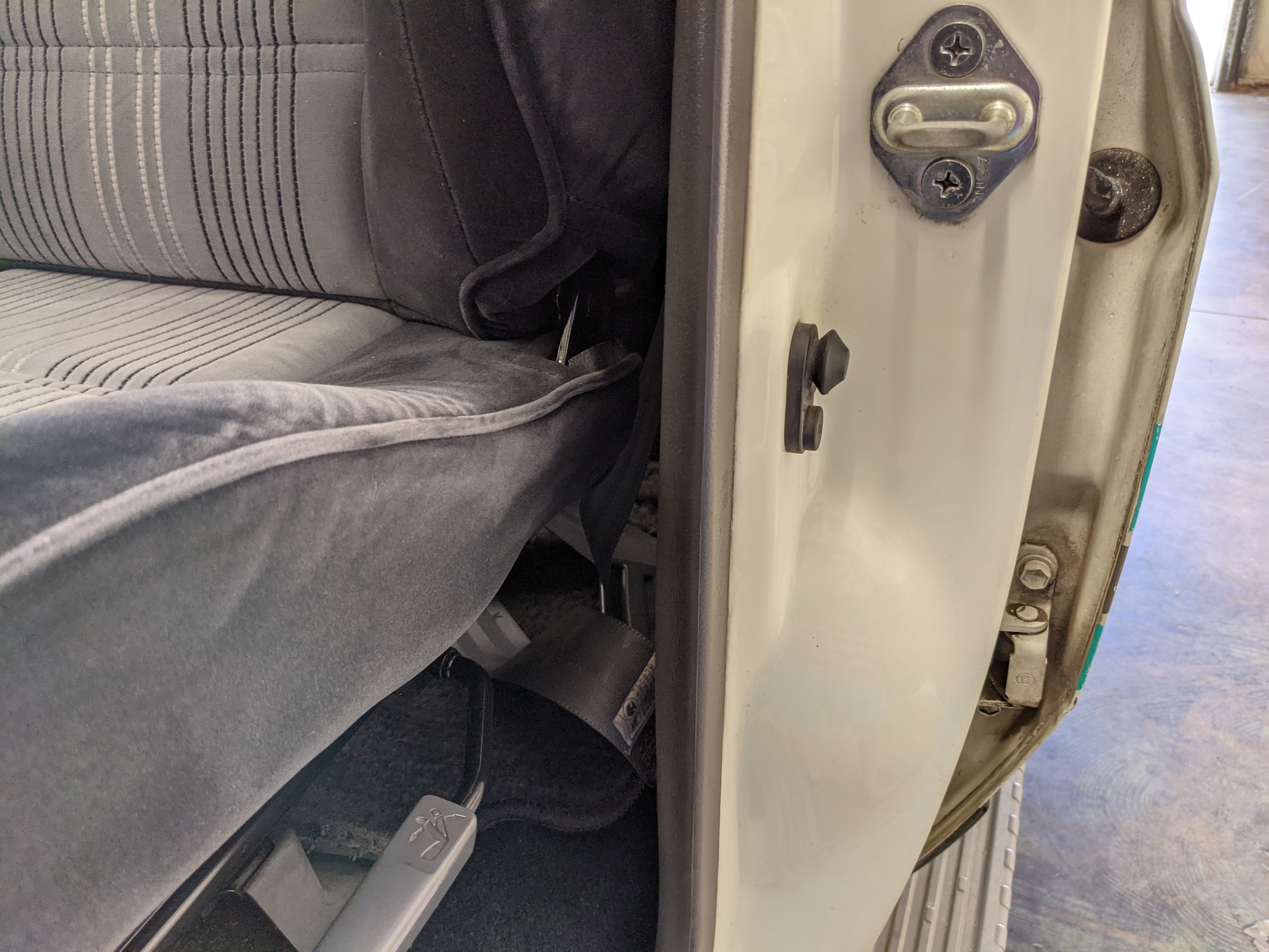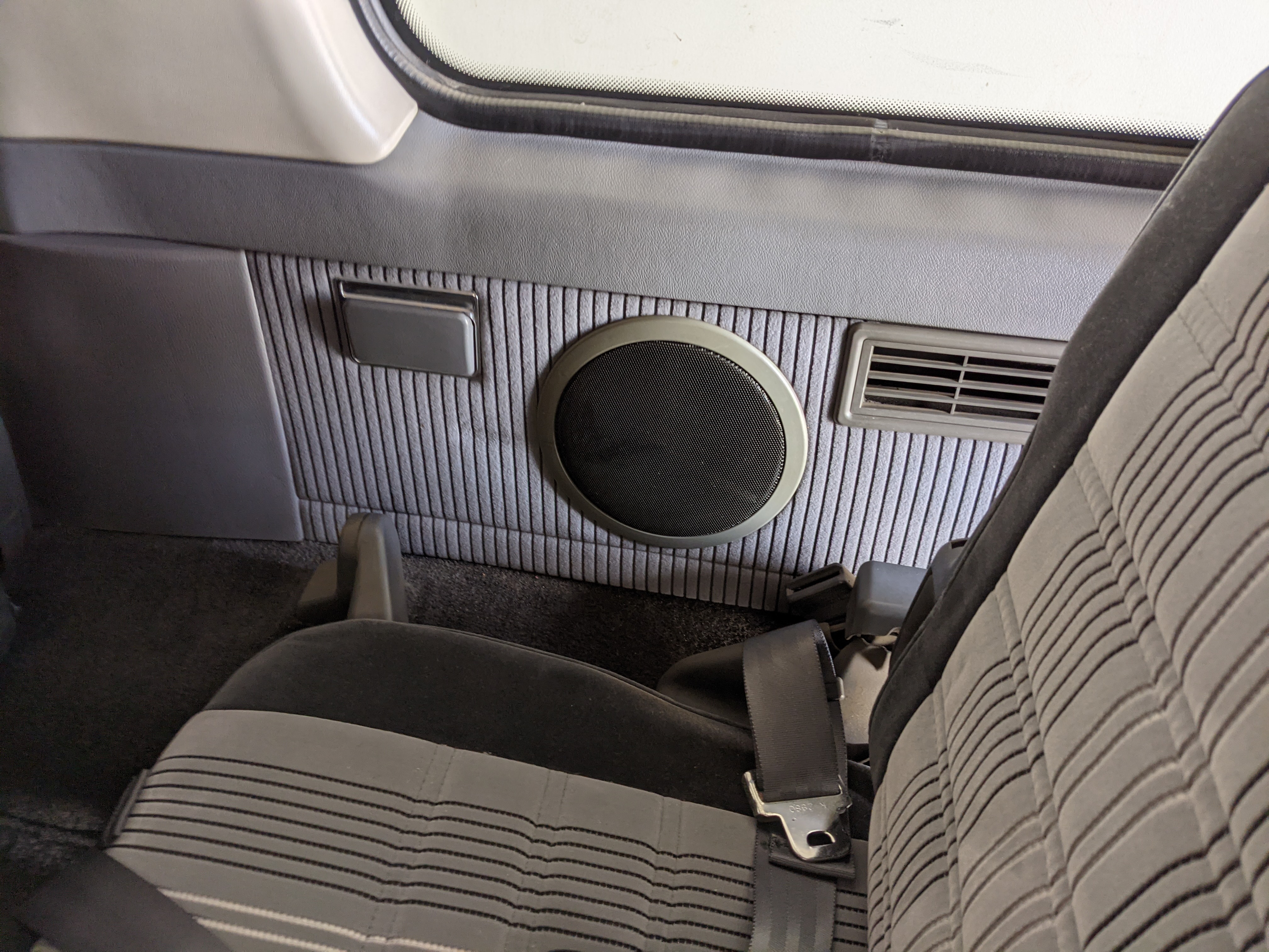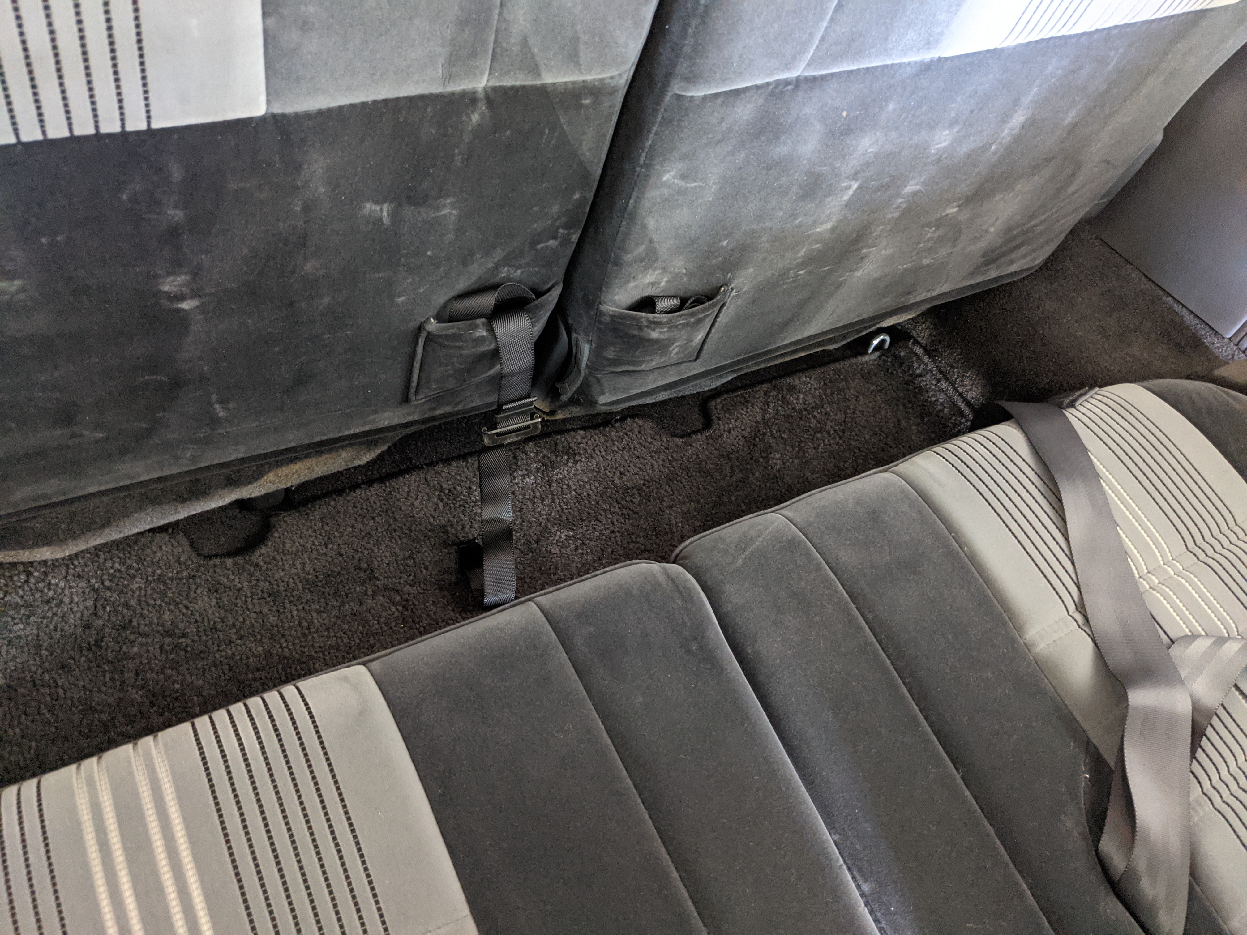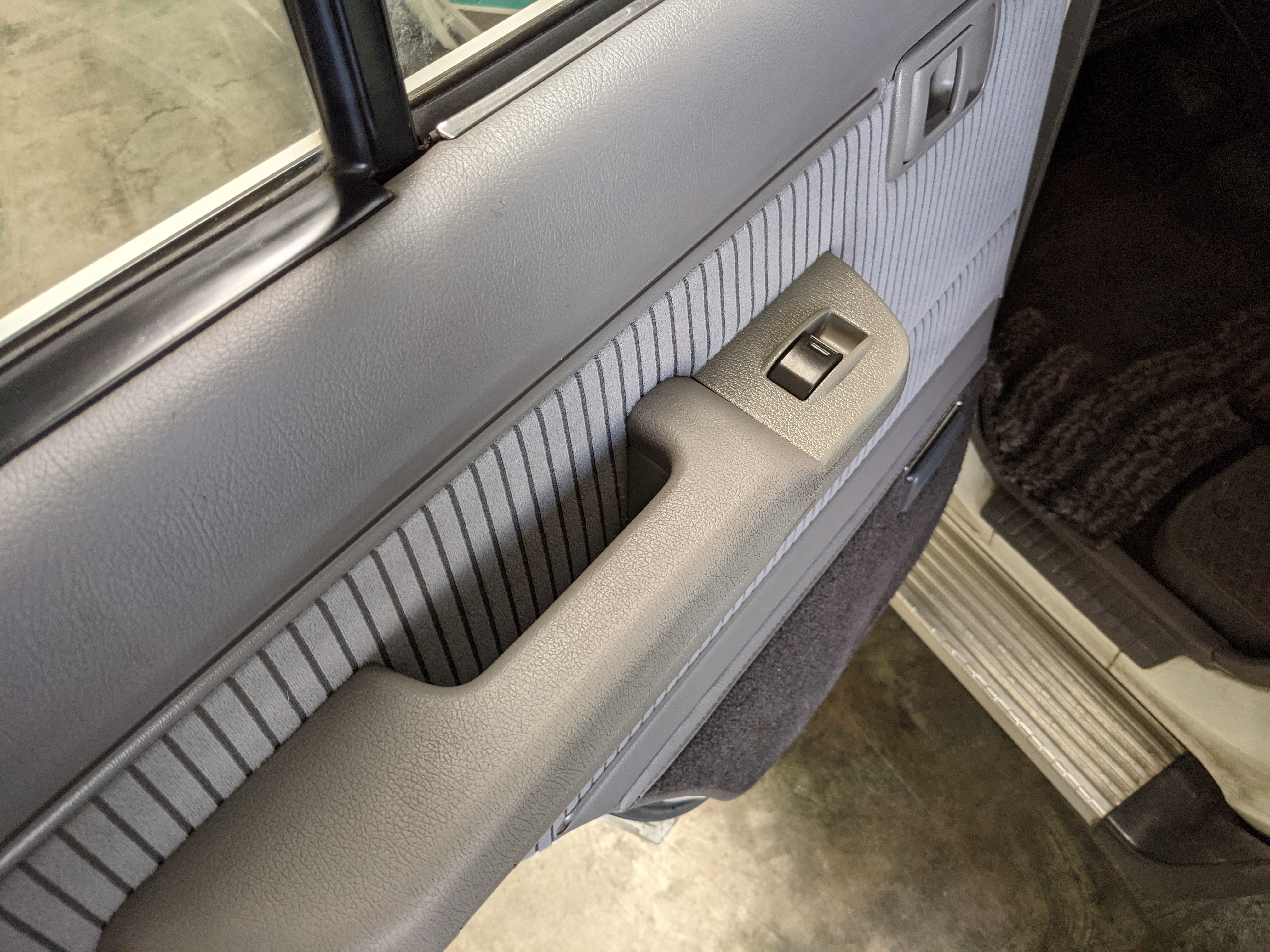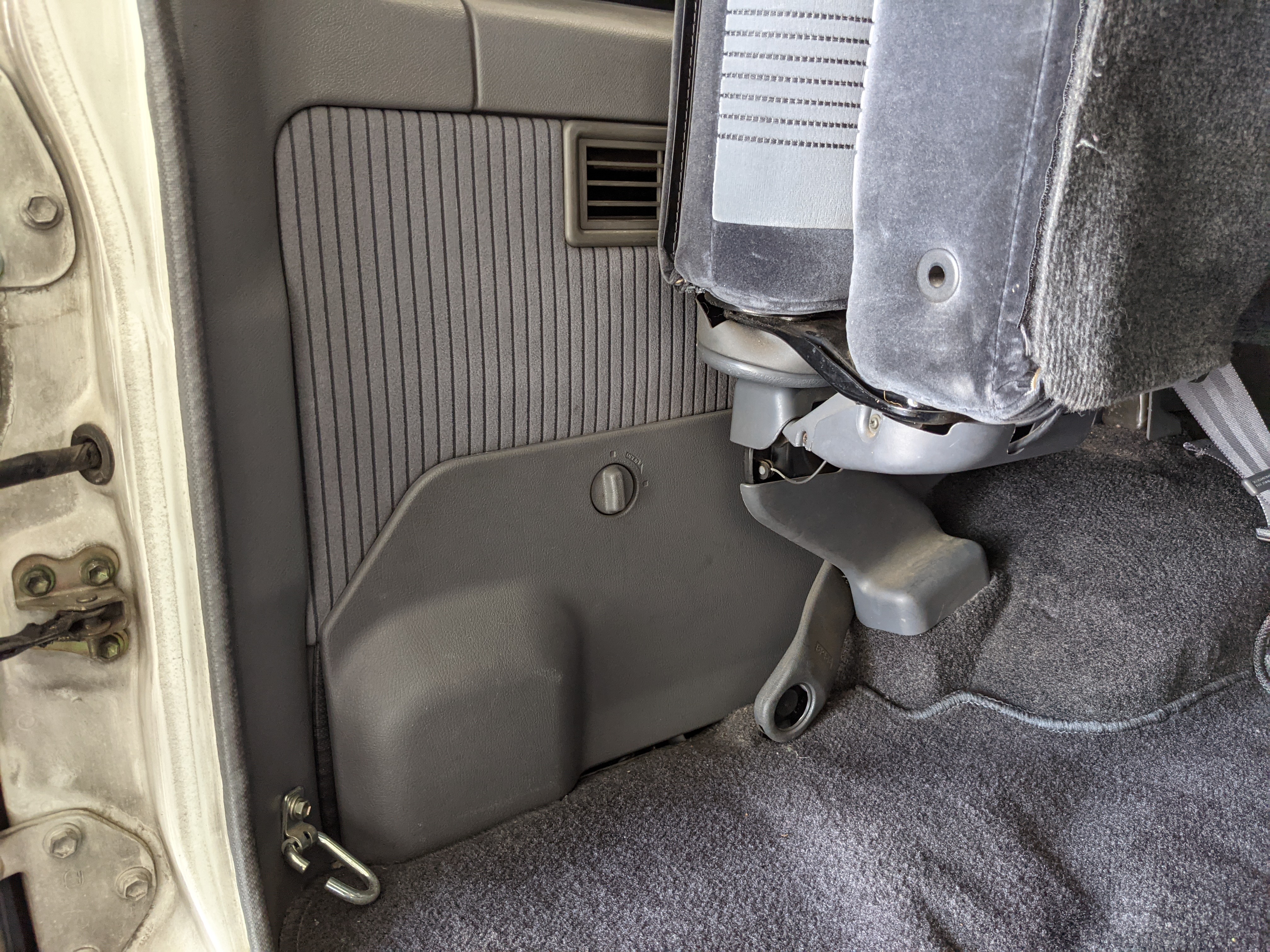Inside is clean, comfortable and functional. Power windows, air conditioning, turbo emblazoned headrests, and perhaps the most important, the 5 speed manual transmission and the 3 pedals. On the center dash is a unique altimeter/thermometer combo telling you how high up you are, along with the interior and exterior temperatures in celsius. All the original instruction stickers are still here as well. Dash is not cracked or warped at all, door cards are clean and free of stains, rips or wear of any kind. Driver’s seat has a small tear where the seat piping is poking through. Rear seats are perfect, as are the third row seats. Everything functions as it should, glass has no chips or scratches. All switches work, lights and gauges function correctly. Included is the complete Toyota tool kit which includes a Toyota bottle jack and assorted wrenches, center cap removing and center cap applying tools, and a Toyota-branded foldable metal wheel chuck, tucked into a Toyota tool bag.