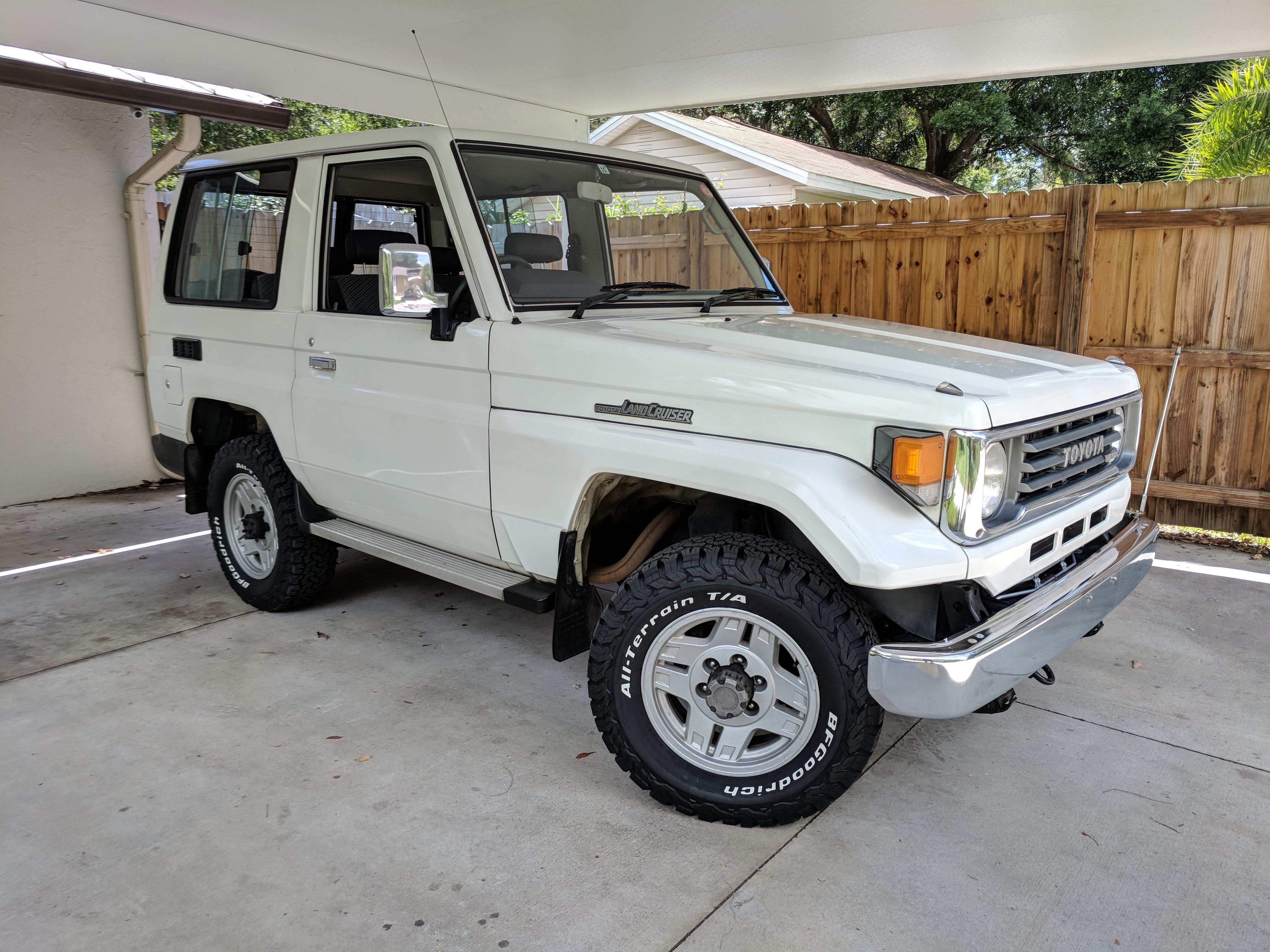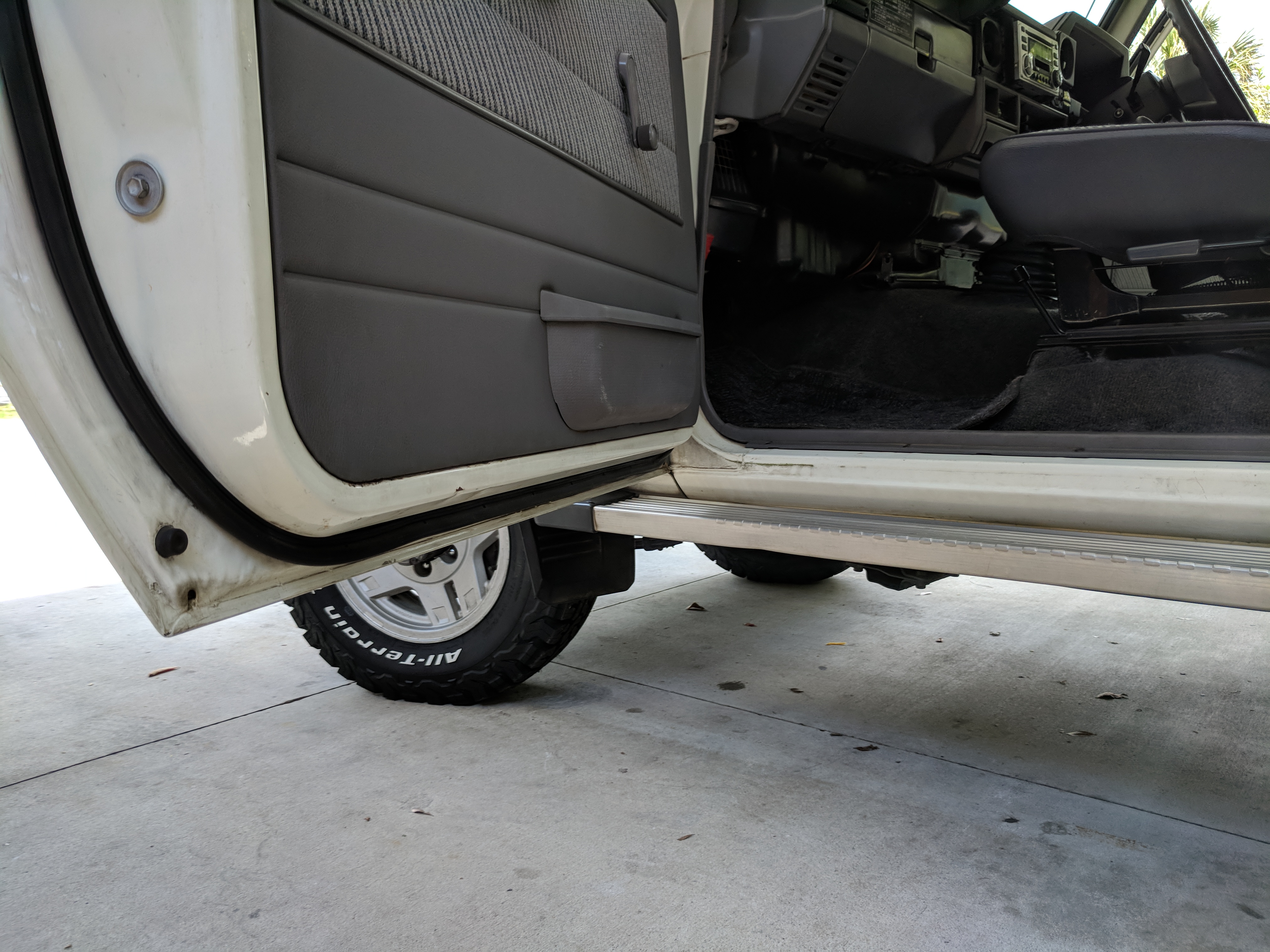 Stylistically the 70 series is based off the original 40 series, made famous here in the USA by the FJ40. Details include an inboard grill with a hood that tapers a bit toward the front, giving you left and right fenders over the front wheels. As this is a short wheelbase version, two doors on either side with the typical barn-door style rear opening. OEM running boards and dealer-installed bumper stick to tell you where your left front of your Cruiser is doing.