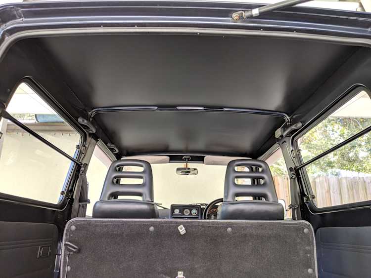 Inside you have a stock interior in fantastic shape. Factory original Jimny MOMO steering wheel with Jimny rhino on the horn and seats that let you know this is a Wild Wind edition. Working original clock, altimeter and clinometer are mounted in the center, with an aftermarket Sony Minidisc headunit installed below. A turbo timer is installed underneath that.