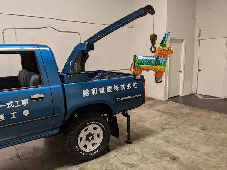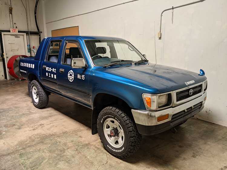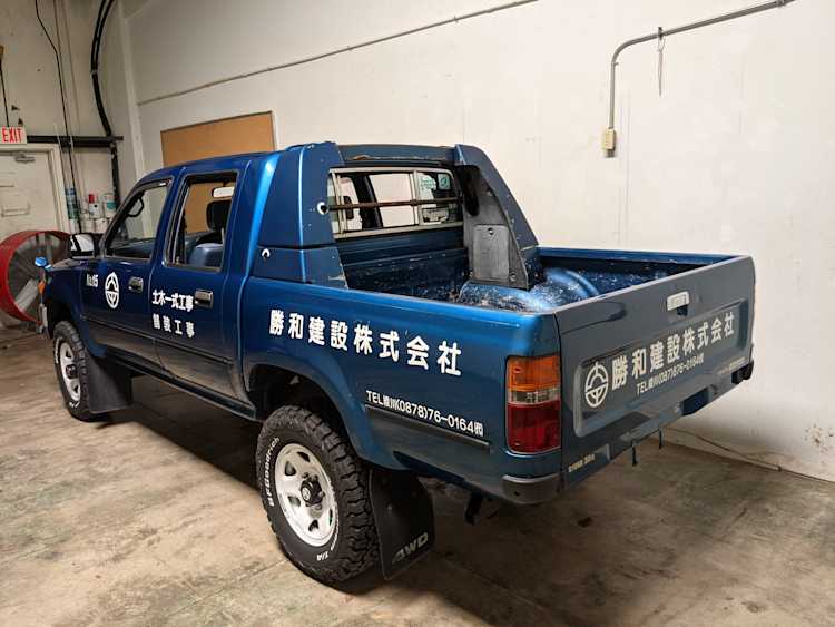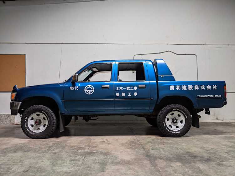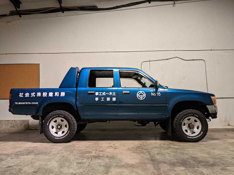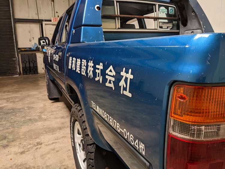 You are looking at a singular, wholly unique Toyota Hilux. There are others, but there is only a single example of No.15 wearing it’s former occupation’s uniform proudly. Beyond the decals, this model is also one of the extremely small number of ‘Active Base’ Hiluxes. This gives you a unique, Toyota-equipped integrated power crane in the bed. Information on this package is extremely scarce, beyond a couple of scattered posts across the internet, a YouTube video a gentleman in Japan posted, and a press release from the 90s by Toyota itself it is extremely difficult to find any information on them. Lucky for us this Hilux’s crane is completely functional and complete.