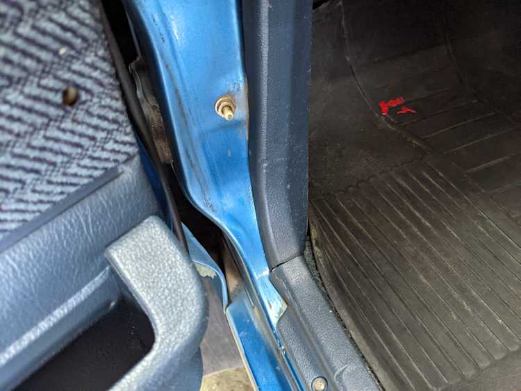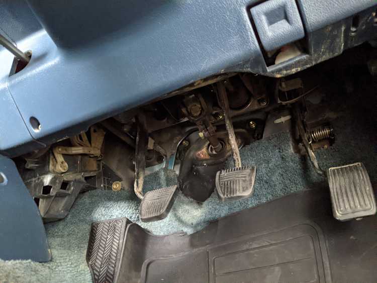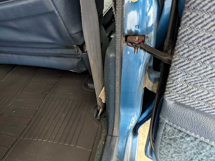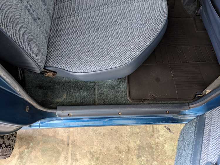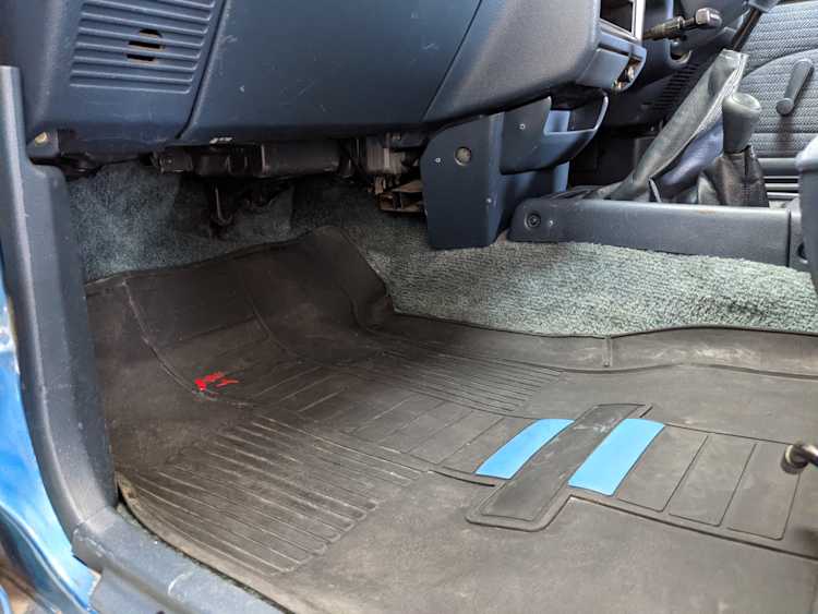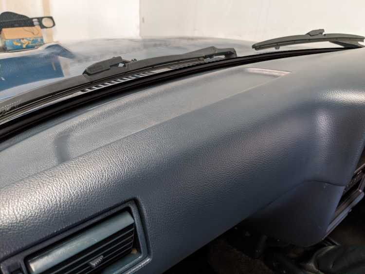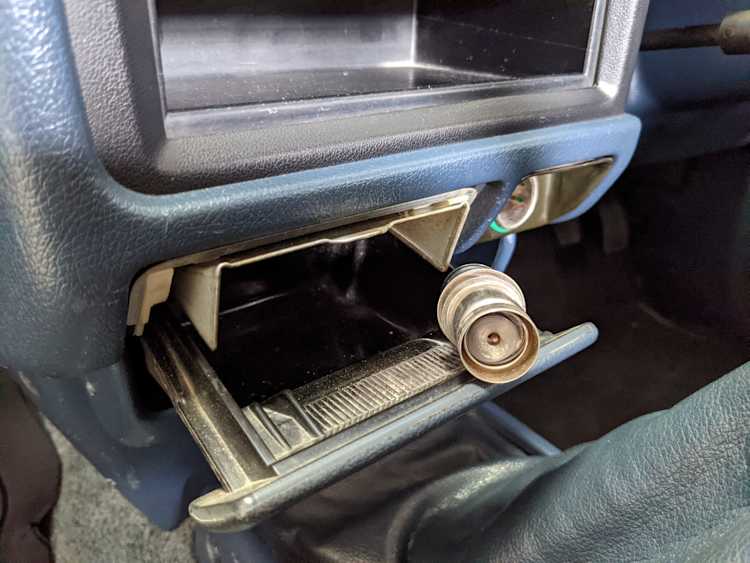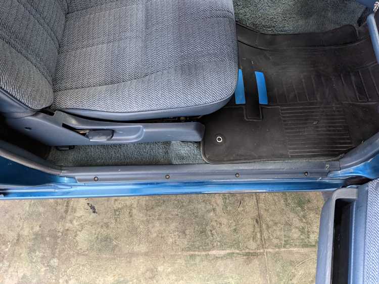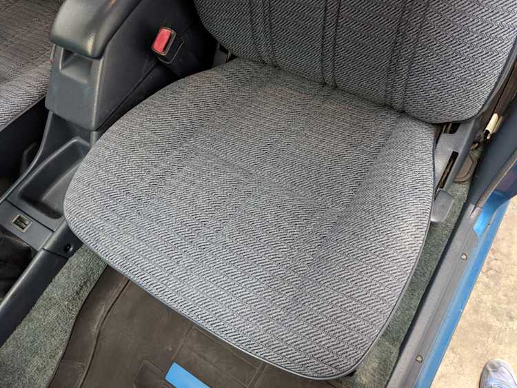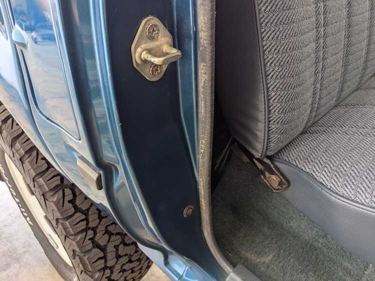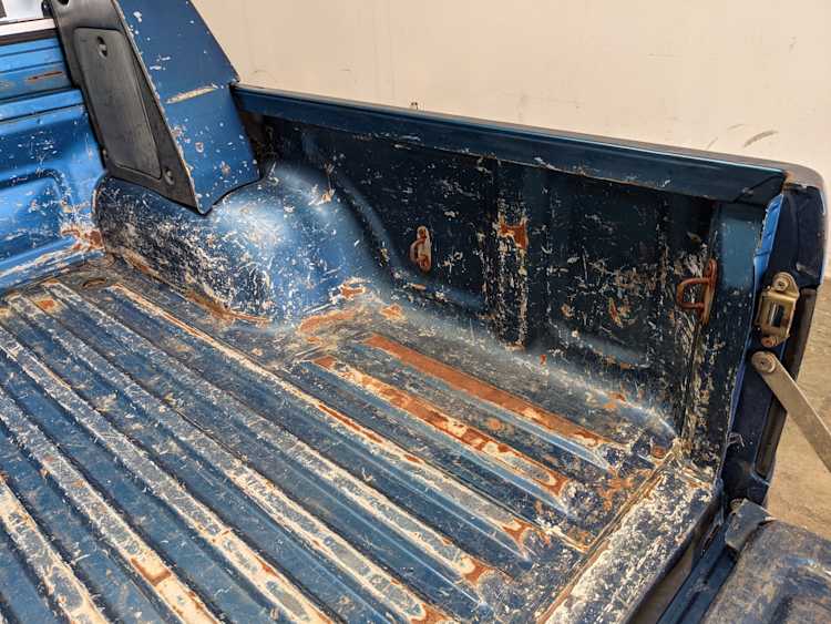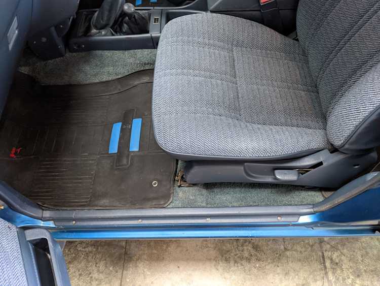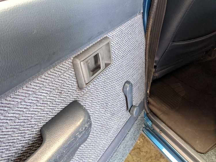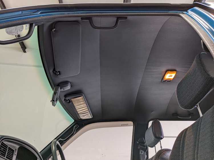 Interior is actually remarkably sorted for being a former construction truck from 1992. Non smoker (if you can believe it!), with the benefit of thick vinyl seat covers being on it since new (since removed), allowing the great blue fabric covering the seats to survive. Original radio is still installed, with the OEM single speaker over on the driver’s side. No cracks in the dash, no tears in the seat, no burns anywhere.
