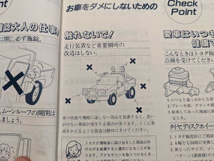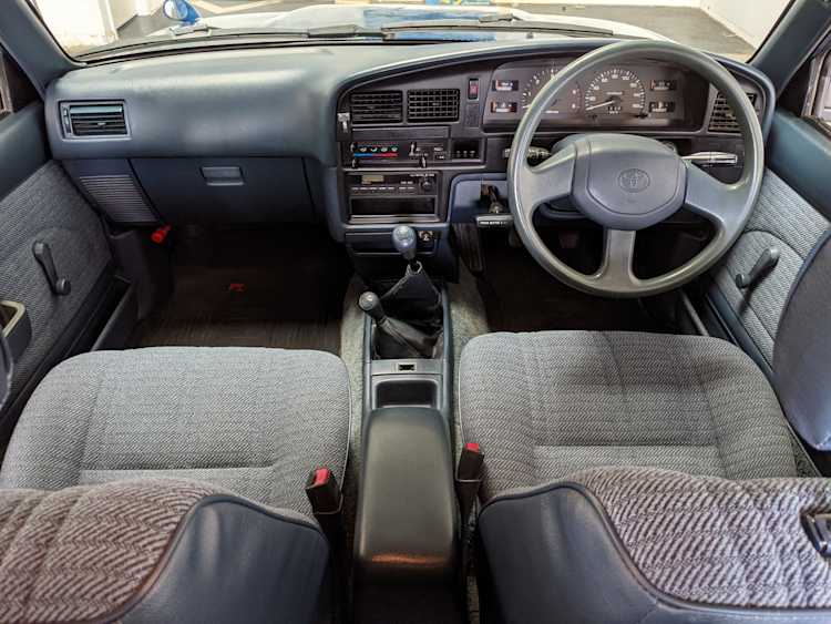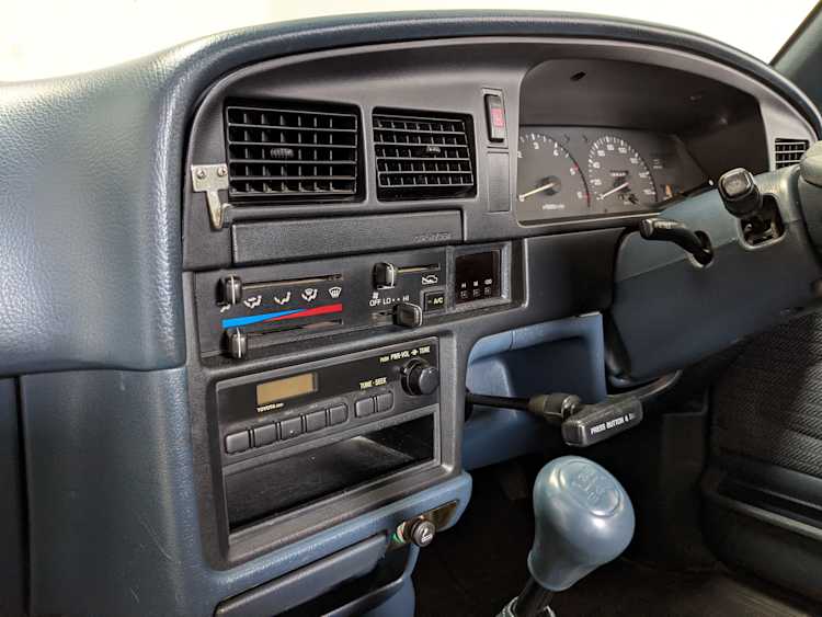 Mechanically this Hilux is what you want: Diesel, manual transmission, 4x4. The 3L 2.8 liter 4 cyl NA diesel engine can not die, is completely cast iron (no aluminum head here) with wholly mechanical injection. Nobody would call this truck fast, but it absolutely will get you to where you need to go. AC works great, drives straight and true, no leaks, no burning of oil, no issues at all. She’s ready to work if need be.