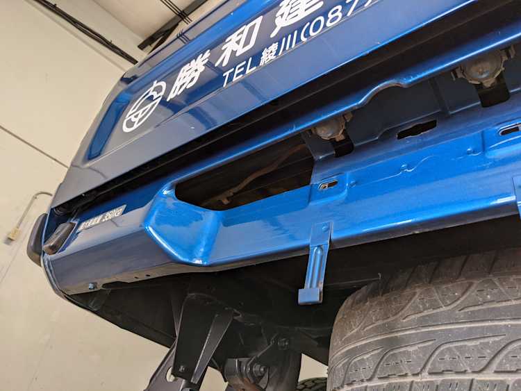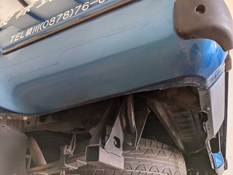 ‘Active Base’ is a Toyota-designated package that is applied to the trucks equipped with the unique crane system in the bed. Looks like a roll bar when stowed away, but hides a manually adjusted, electrically actuated crane capable of lifting 180-450 kg (396- 992 pounds) depending on angle and rotation of the boom. Toolkit behind the rear seat includes a few unique pieces as well including a metal L-bracket that adapts the standard bottle back to a quasi-outrigger connecting to a unique chassis portion on the rear left of the truck under the bed.