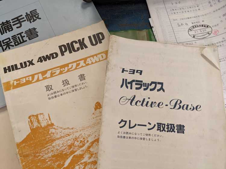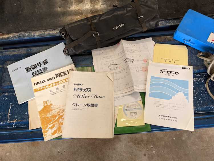 This 1992 Hilux is complete and original. All three keys, every portion of the toolkit is included, the complete manual set, including the ‘Active Base’ instructions, is also here. The only thing that has been added to this truck is the decals serving as its working uniform and almost 30 years of earned patina.