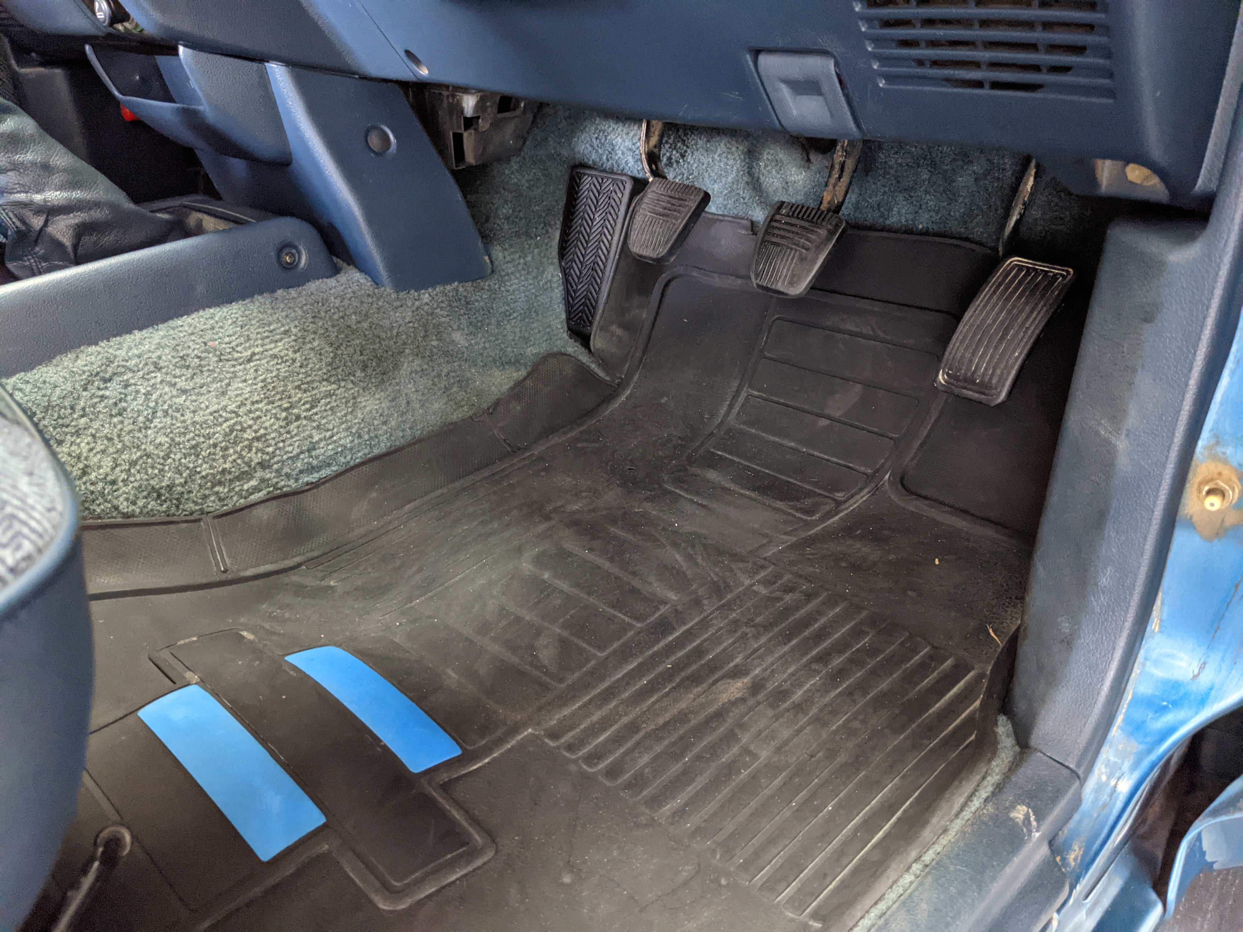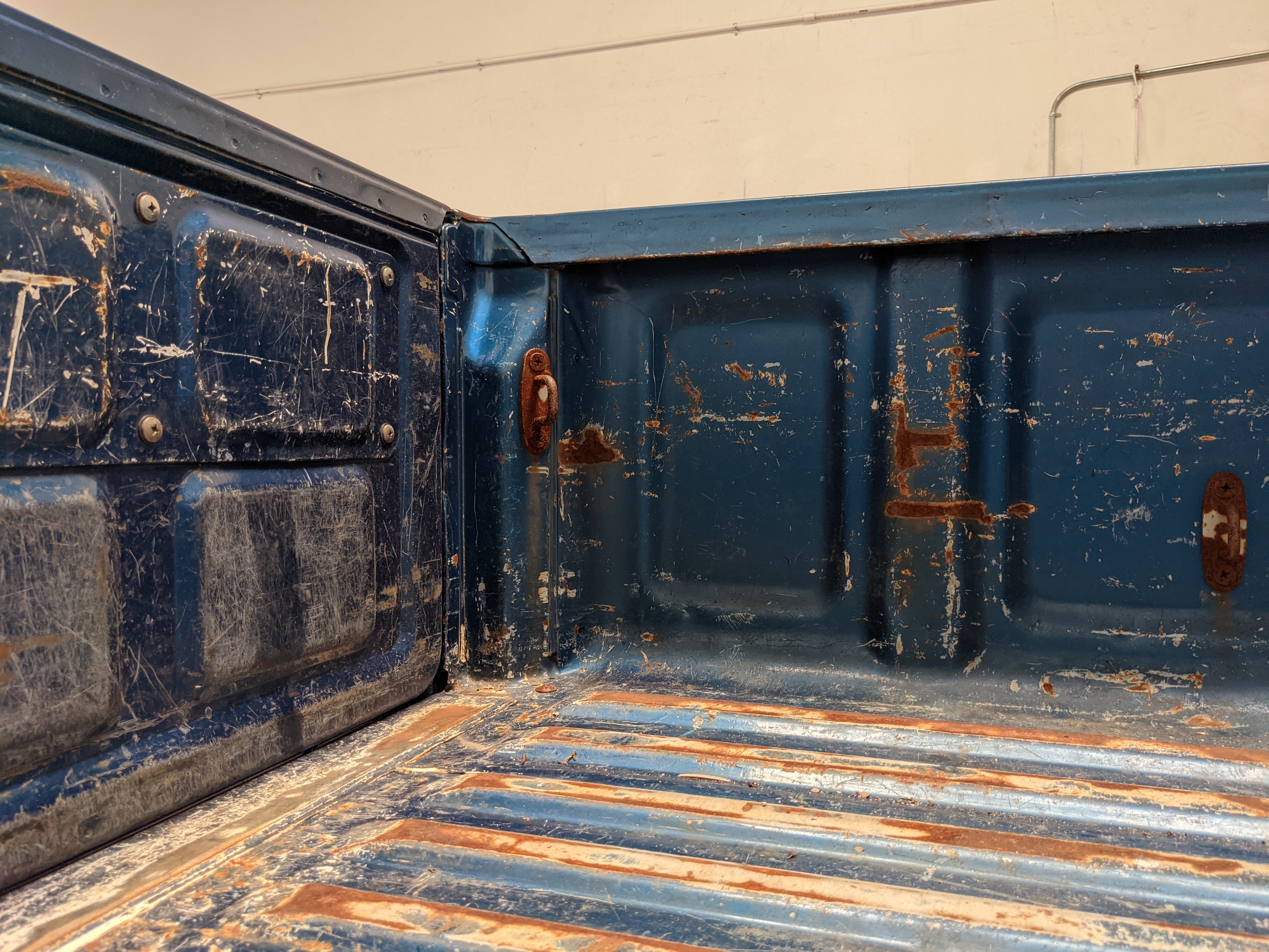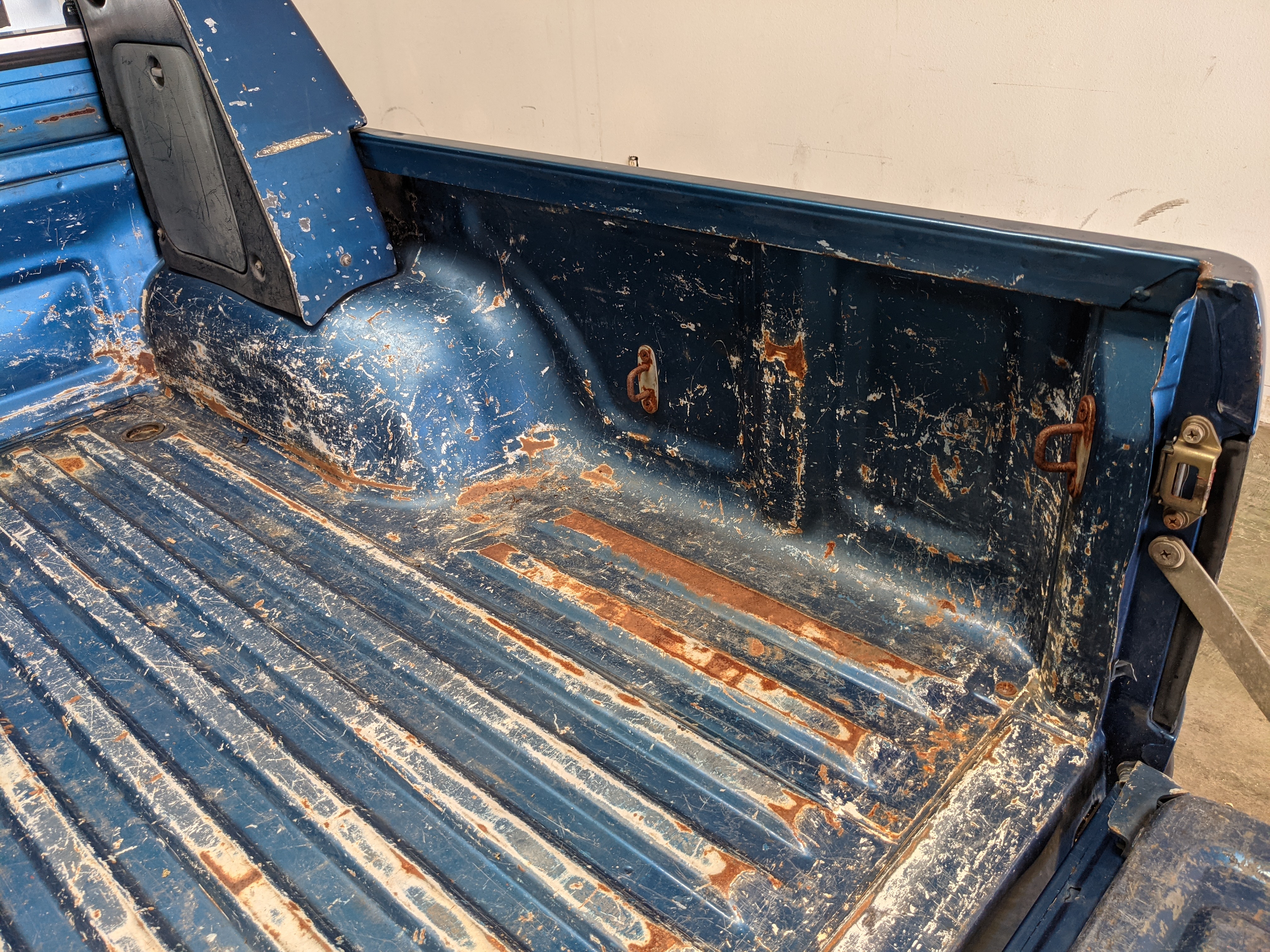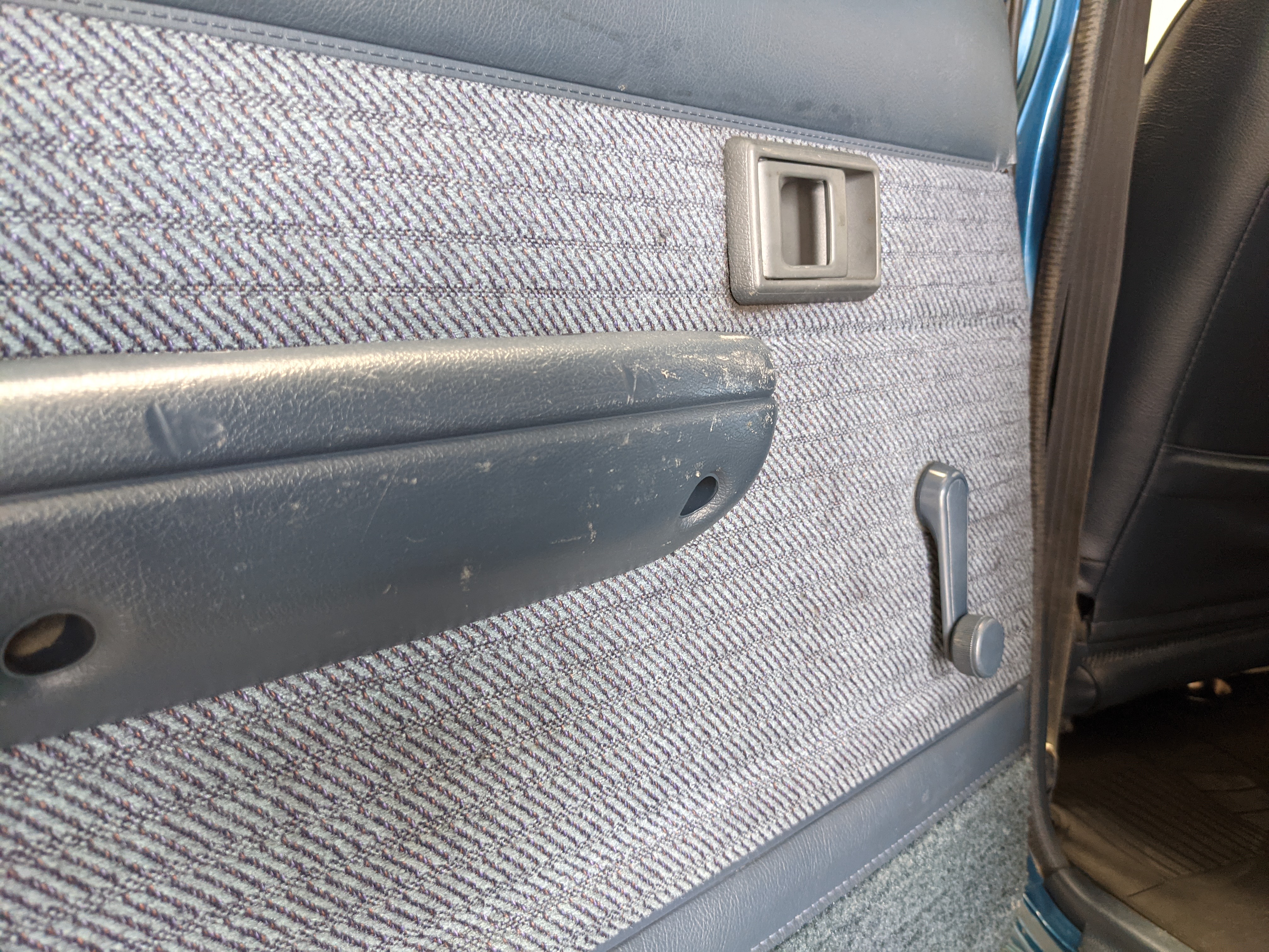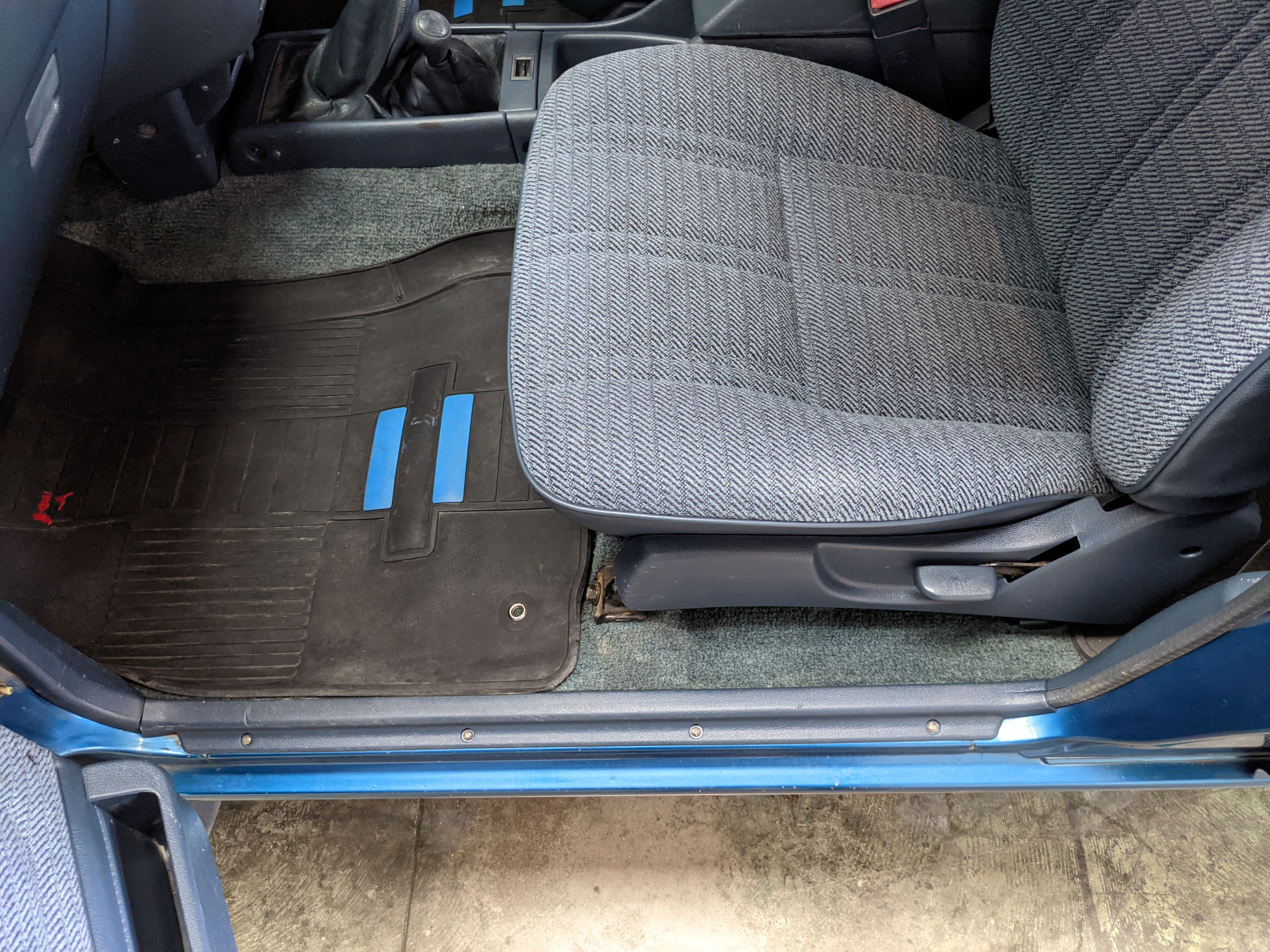 Interior is actually remarkably sorted for being a former construction truck from 1992. Non smoker (if you can believe it!), with the benefit of thick vinyl seat covers being on it since new (since removed), allowing the great blue fabric covering the seats to survive. Original radio is still installed, with the OEM single speaker over on the driver’s side. No cracks in the dash, no tears in the seat, no burns anywhere.