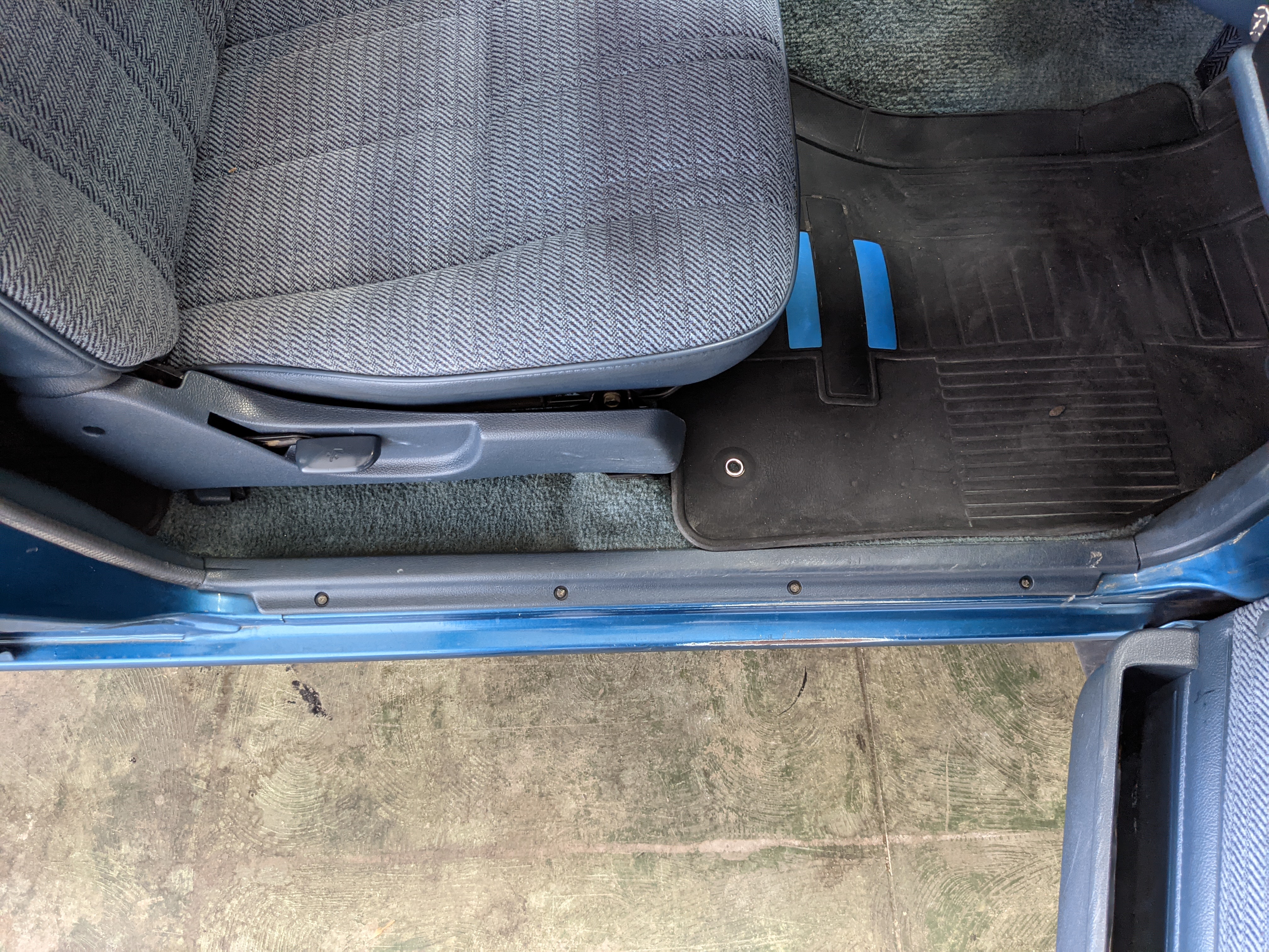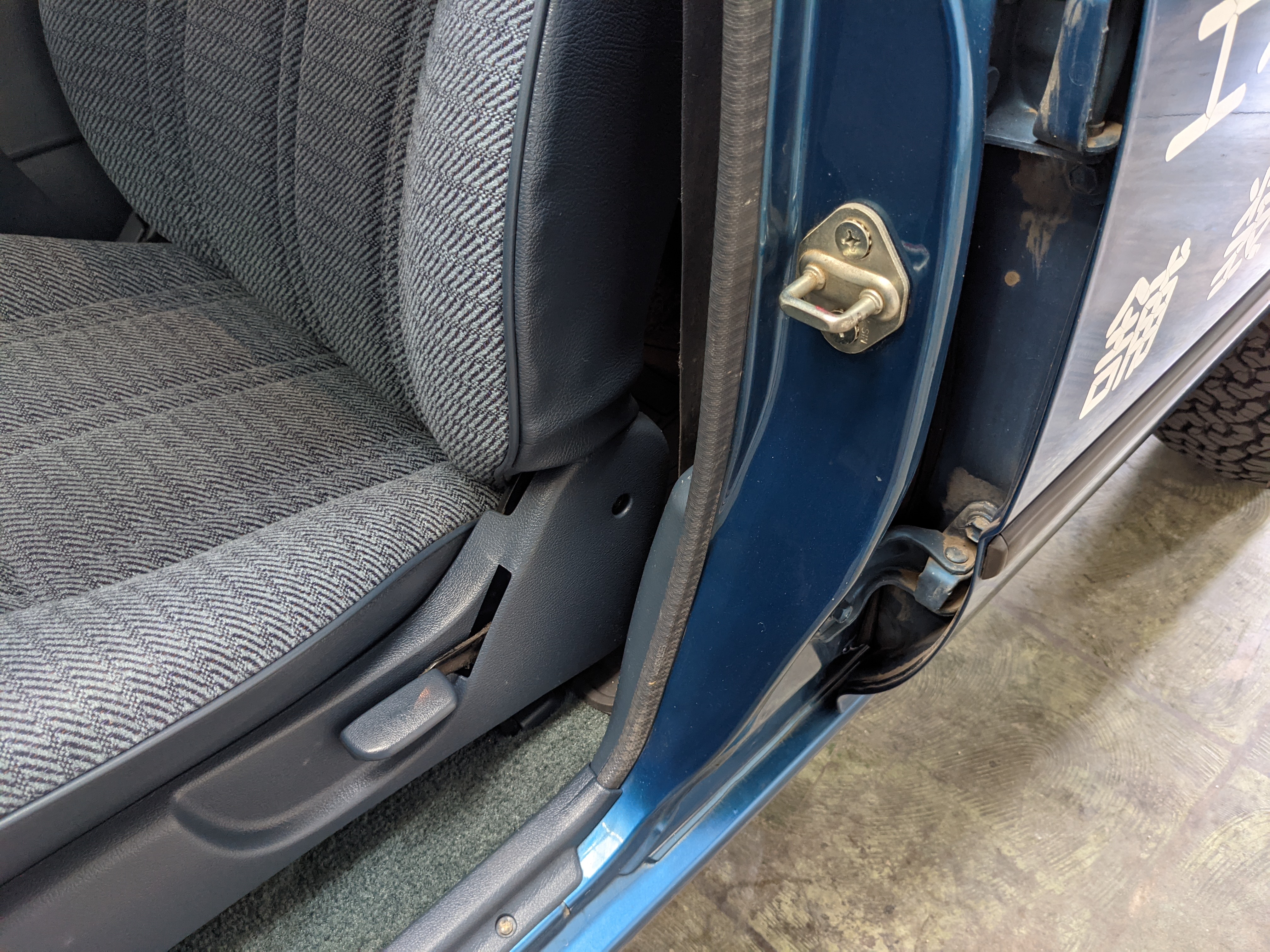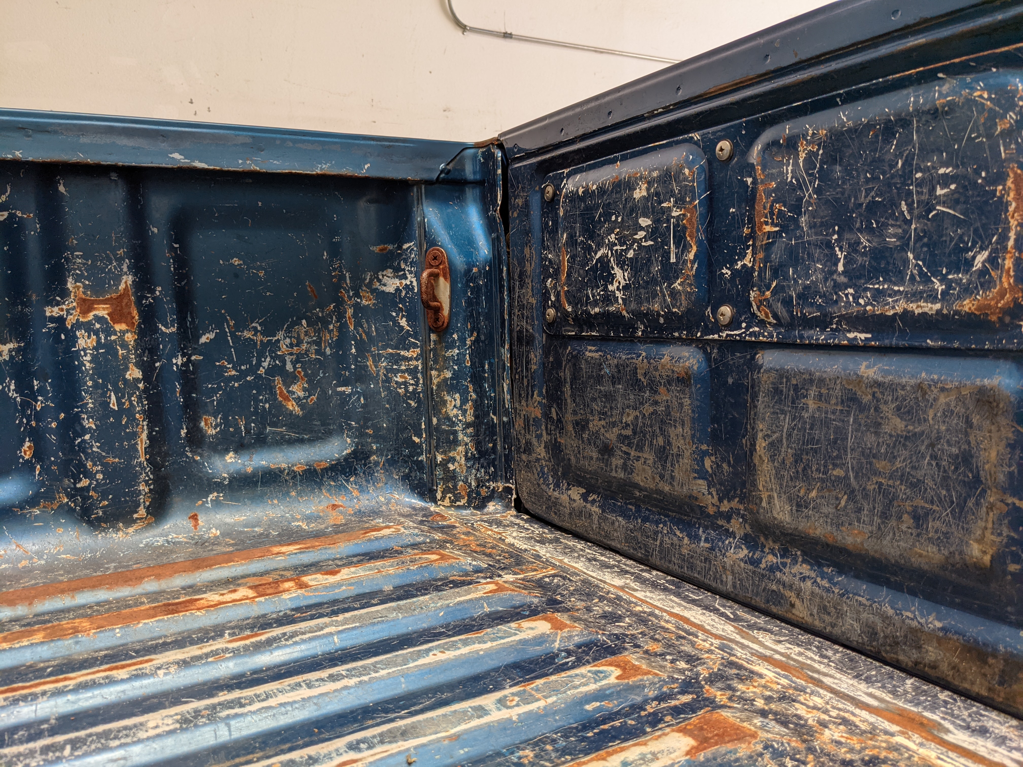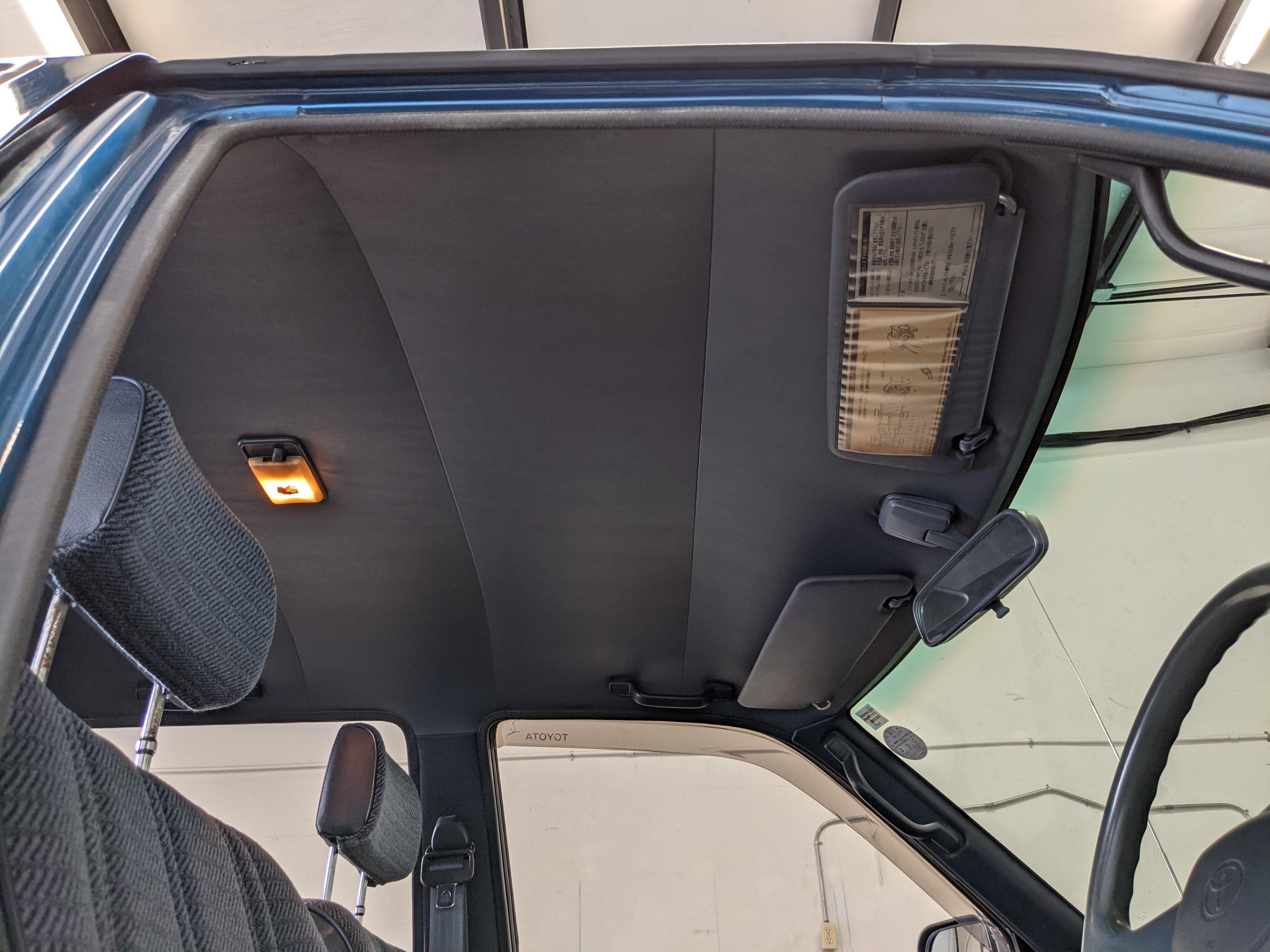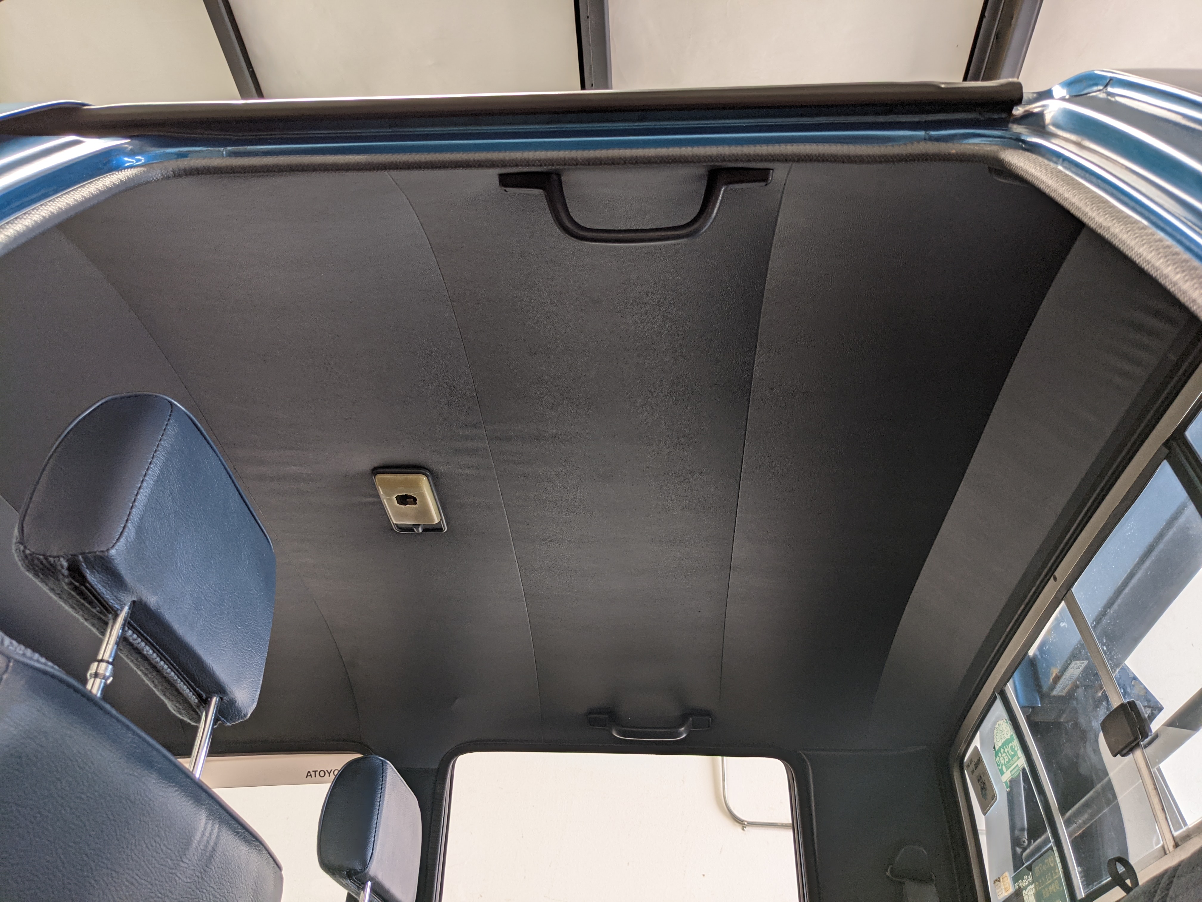 Interior is actually remarkably sorted for being a former construction truck from 1992. Non smoker (if you can believe it!), with the benefit of thick vinyl seat covers being on it since new (since removed), allowing the great blue fabric covering the seats to survive. Original radio is still installed, with the OEM single speaker over on the driver’s side. No cracks in the dash, no tears in the seat, no burns anywhere.
