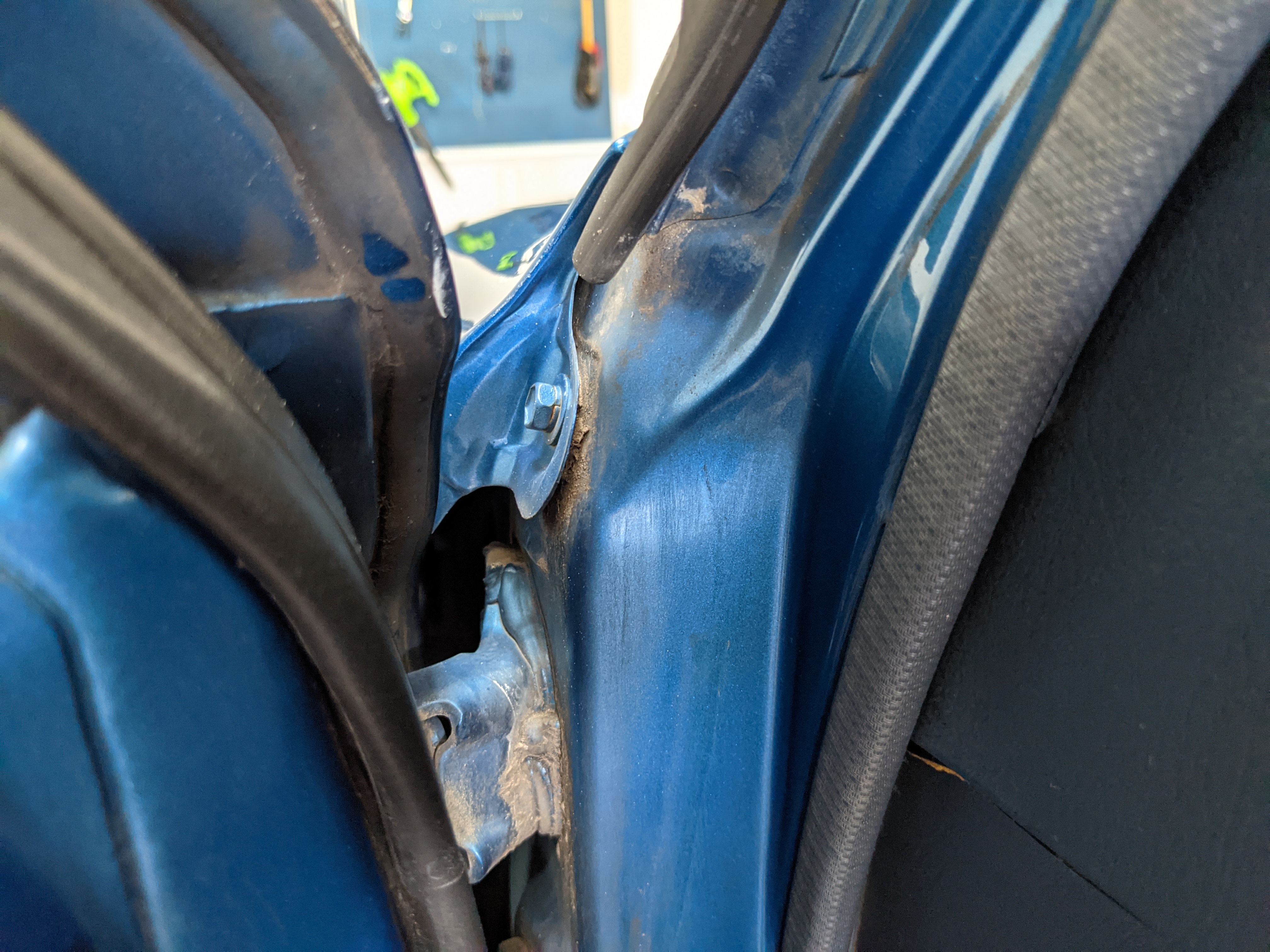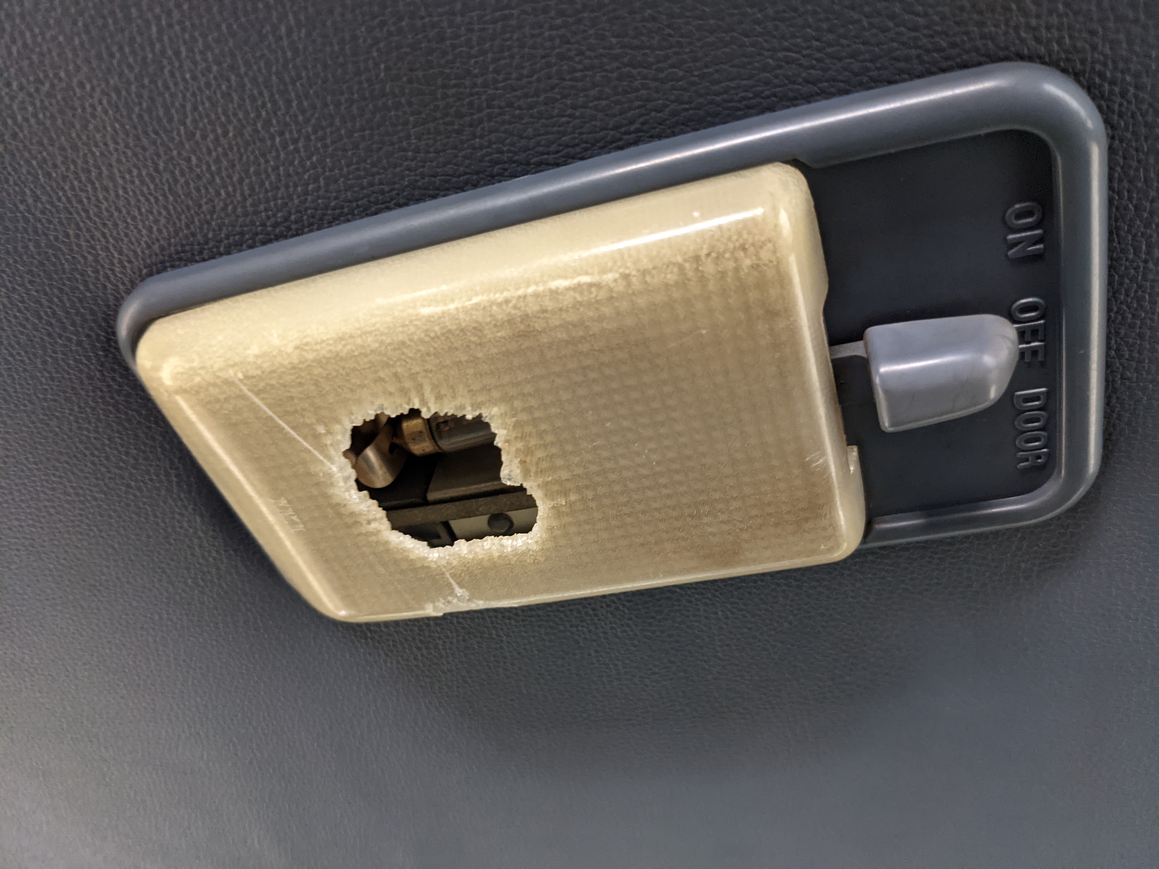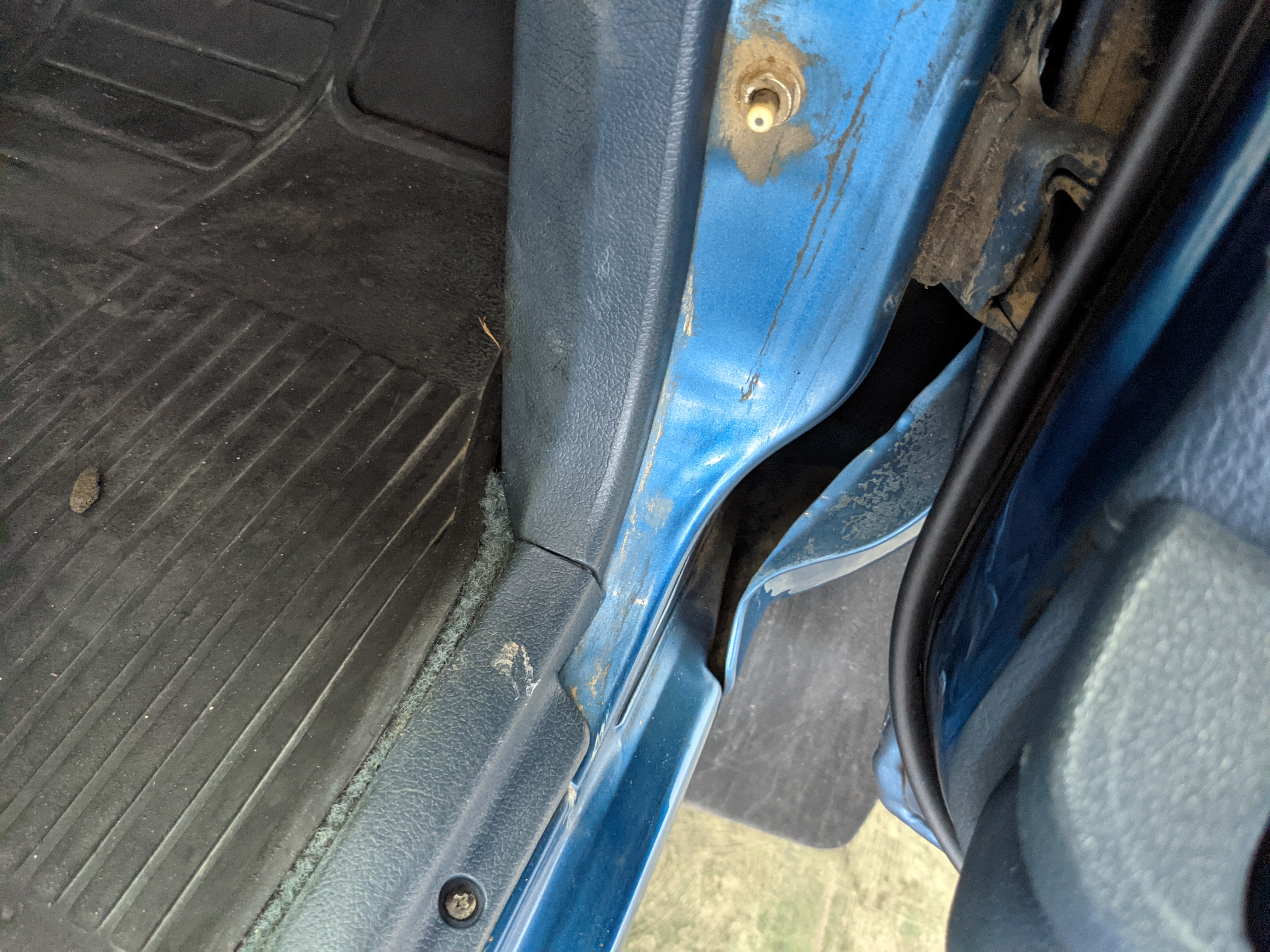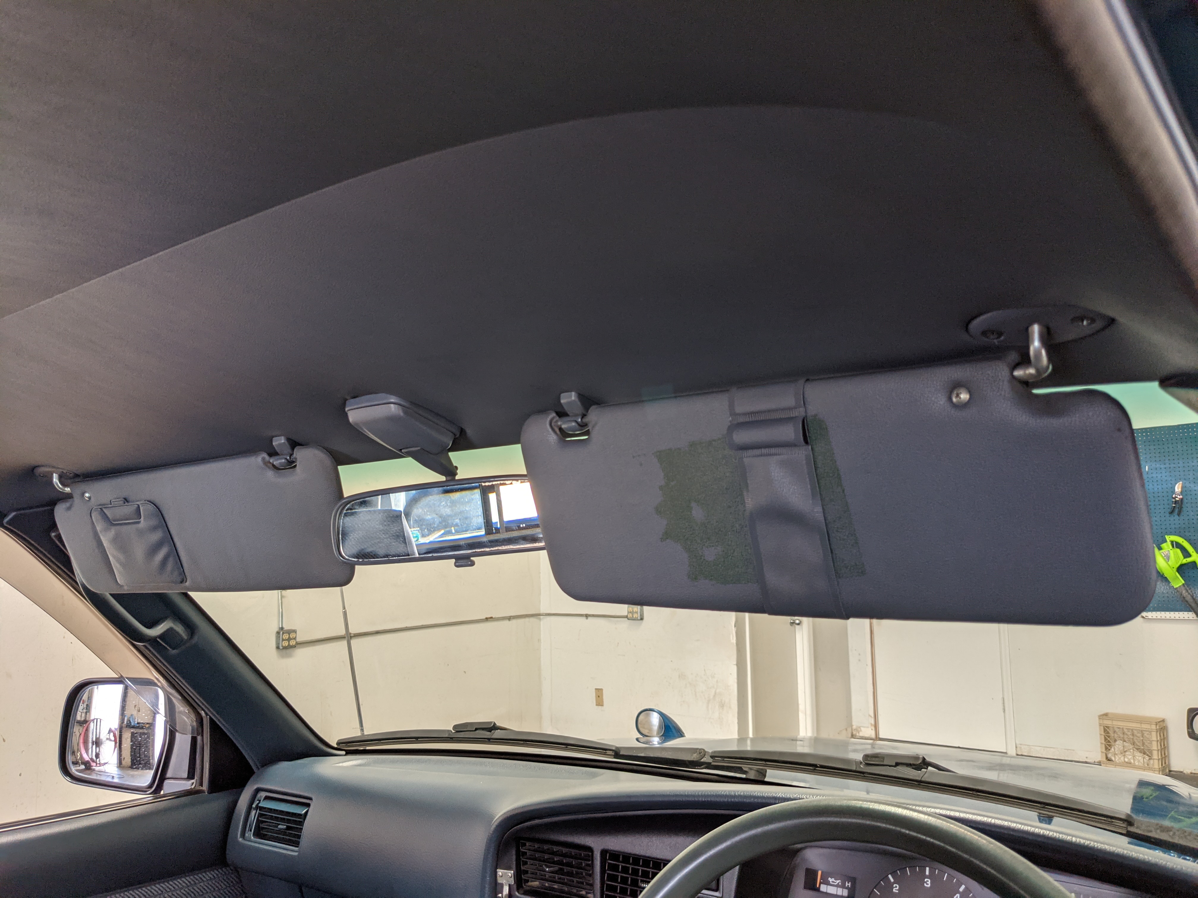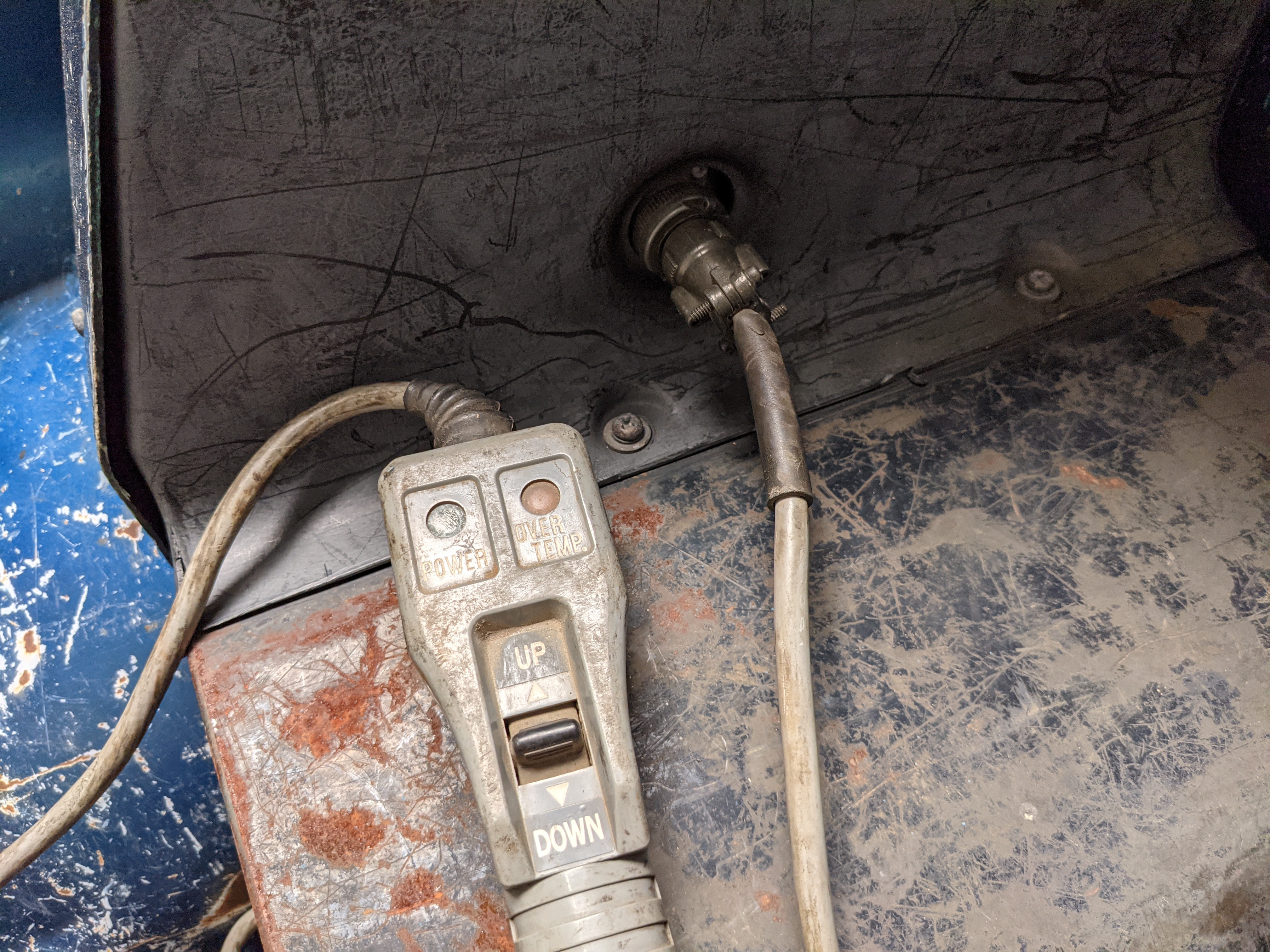 Interior is actually remarkably sorted for being a former construction truck from 1992. Non smoker (if you can believe it!), with the benefit of thick vinyl seat covers being on it since new (since removed), allowing the great blue fabric covering the seats to survive. Original radio is still installed, with the OEM single speaker over on the driver’s side. No cracks in the dash, no tears in the seat, no burns anywhere.