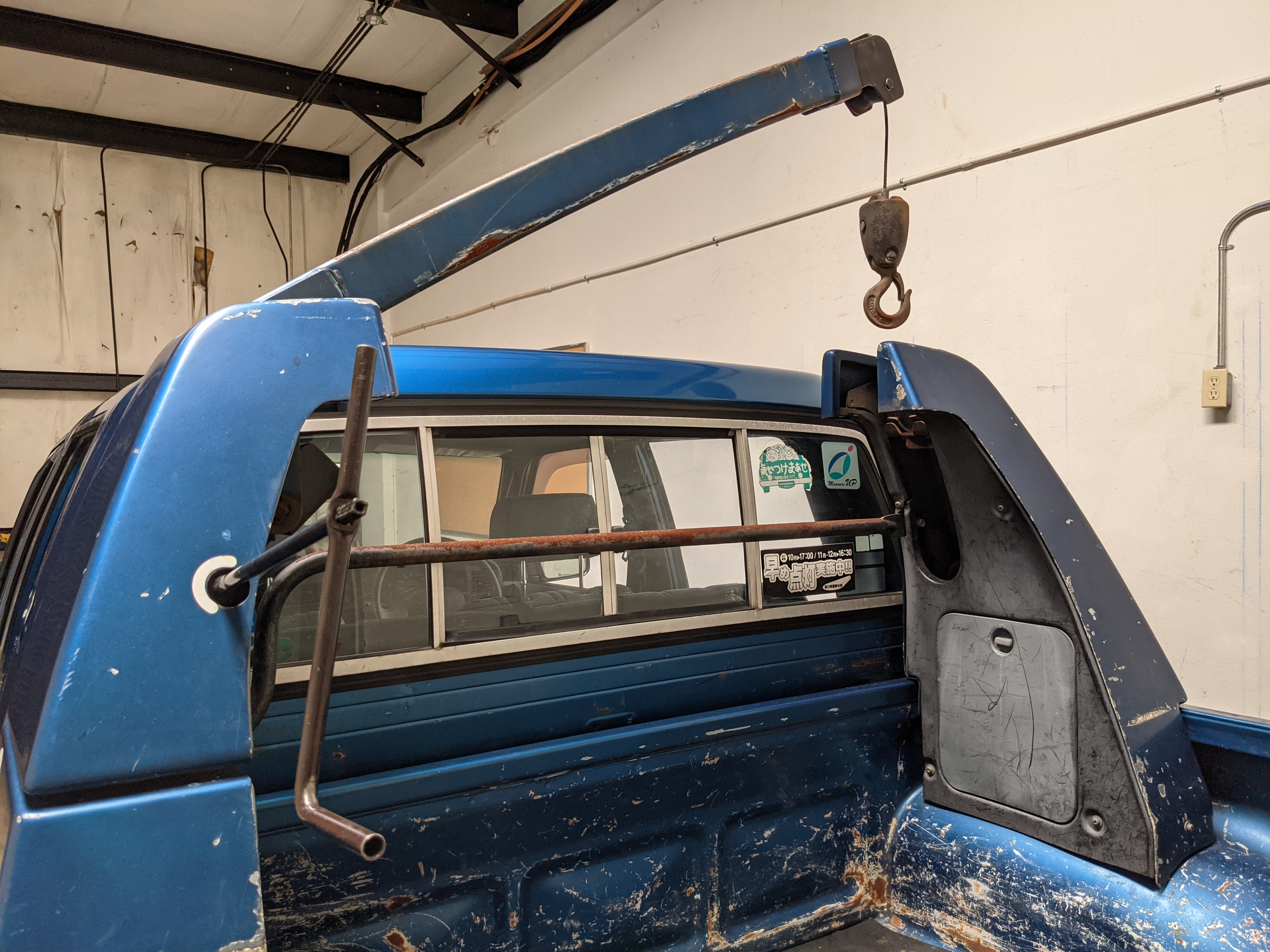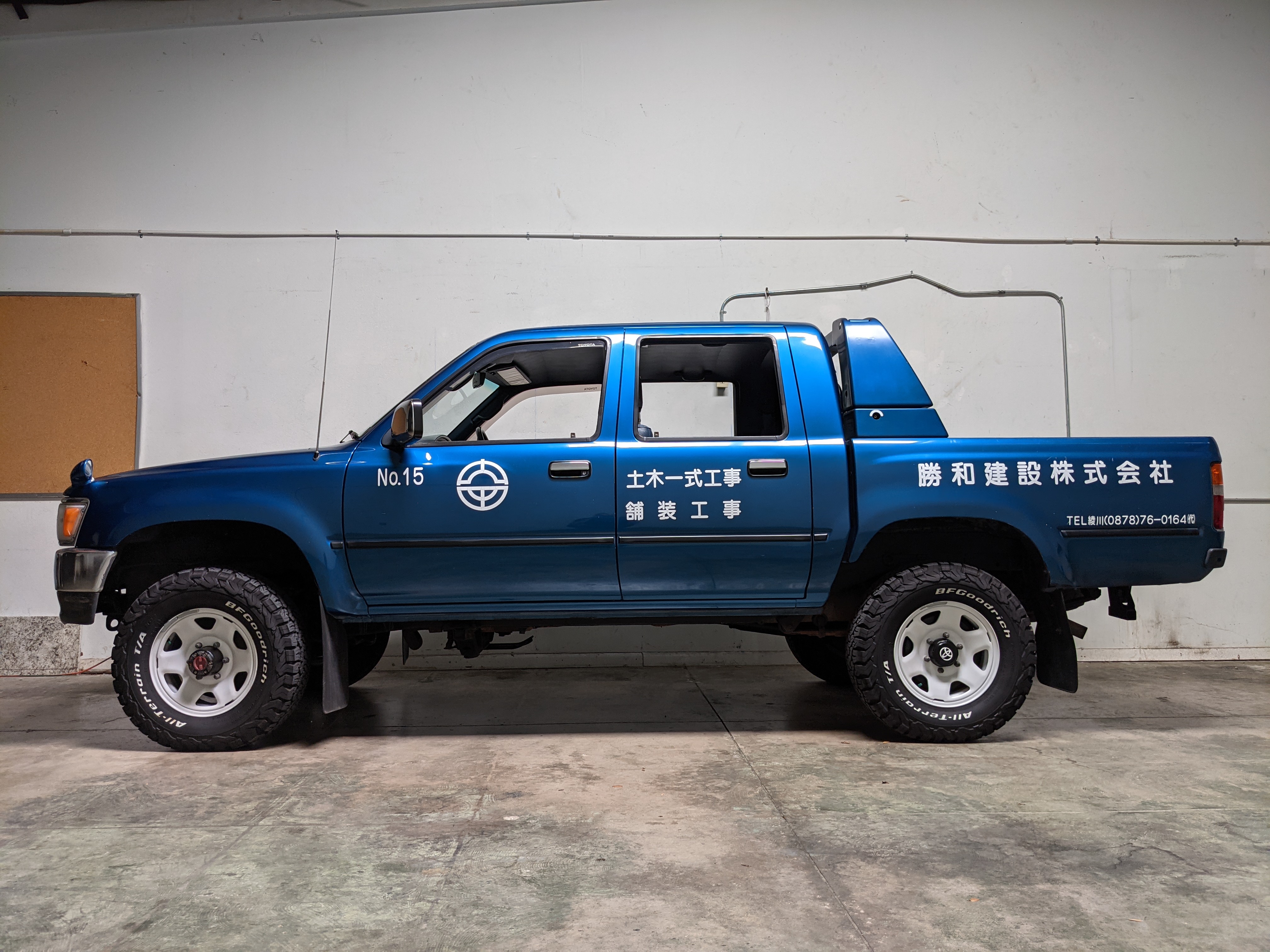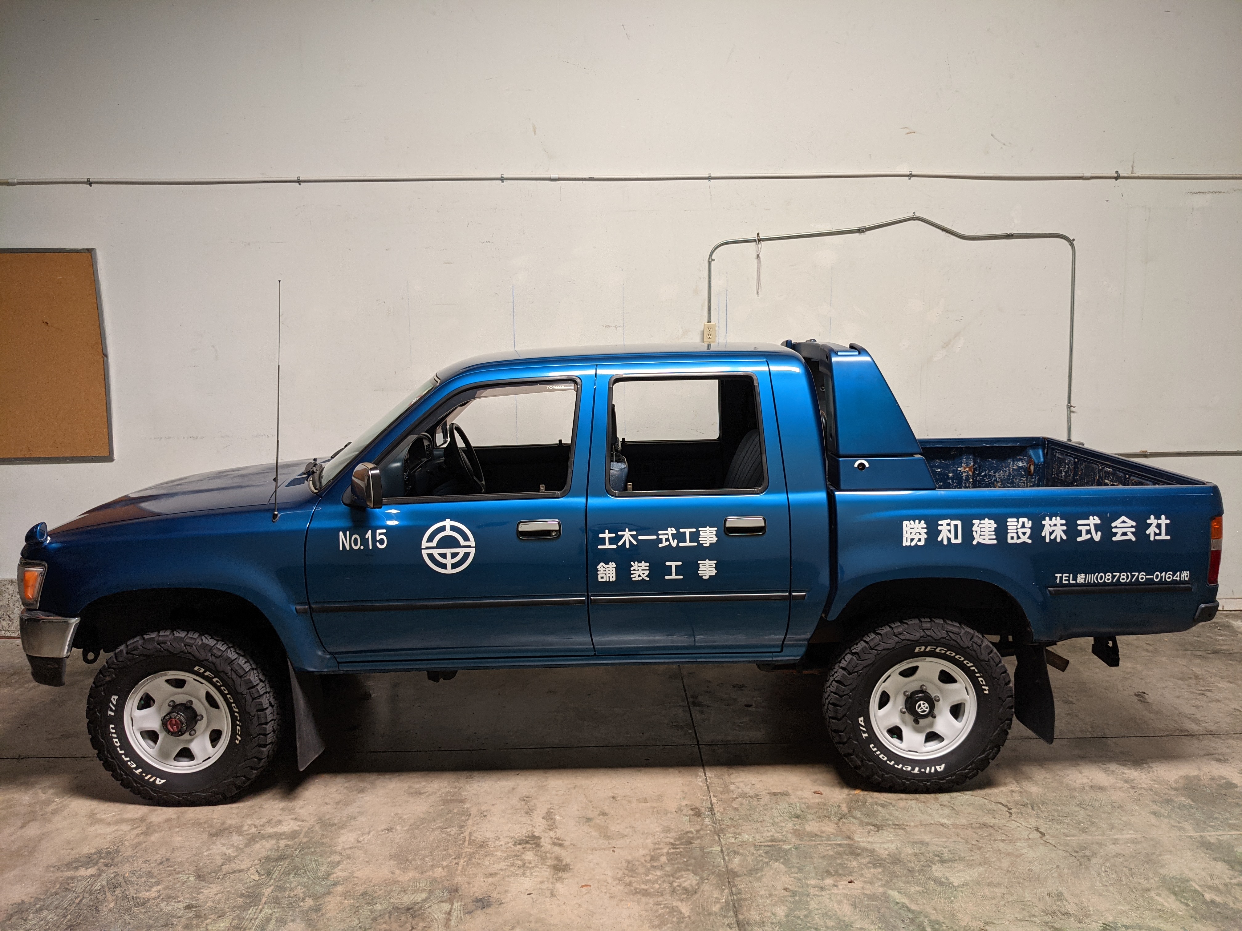 You are looking at a singular, wholly unique Toyota Hilux. There are others, but there is only a single example of No.15 wearing it’s former occupation’s uniform proudly. Beyond the decals, this model is also one of the extremely small number of ‘Active Base’ Hiluxes. This gives you a unique, Toyota-equipped integrated power crane in the bed. Information on this package is extremely scarce, beyond a couple of scattered posts across the internet, a YouTube video a gentleman in Japan posted, and a press release from the 90s by Toyota itself it is extremely difficult to find any information on them. Lucky for us this Hilux’s crane is completely functional and complete.