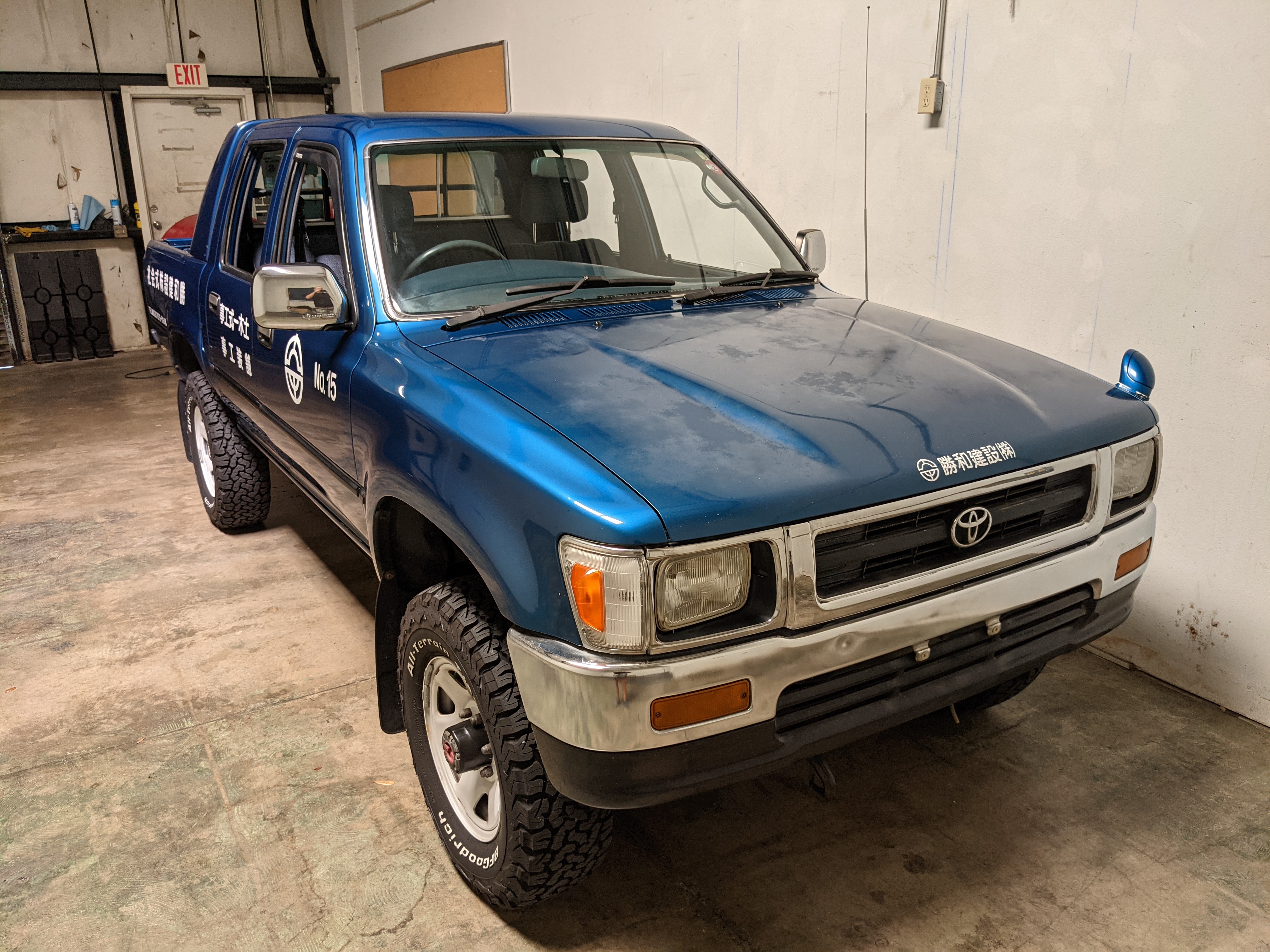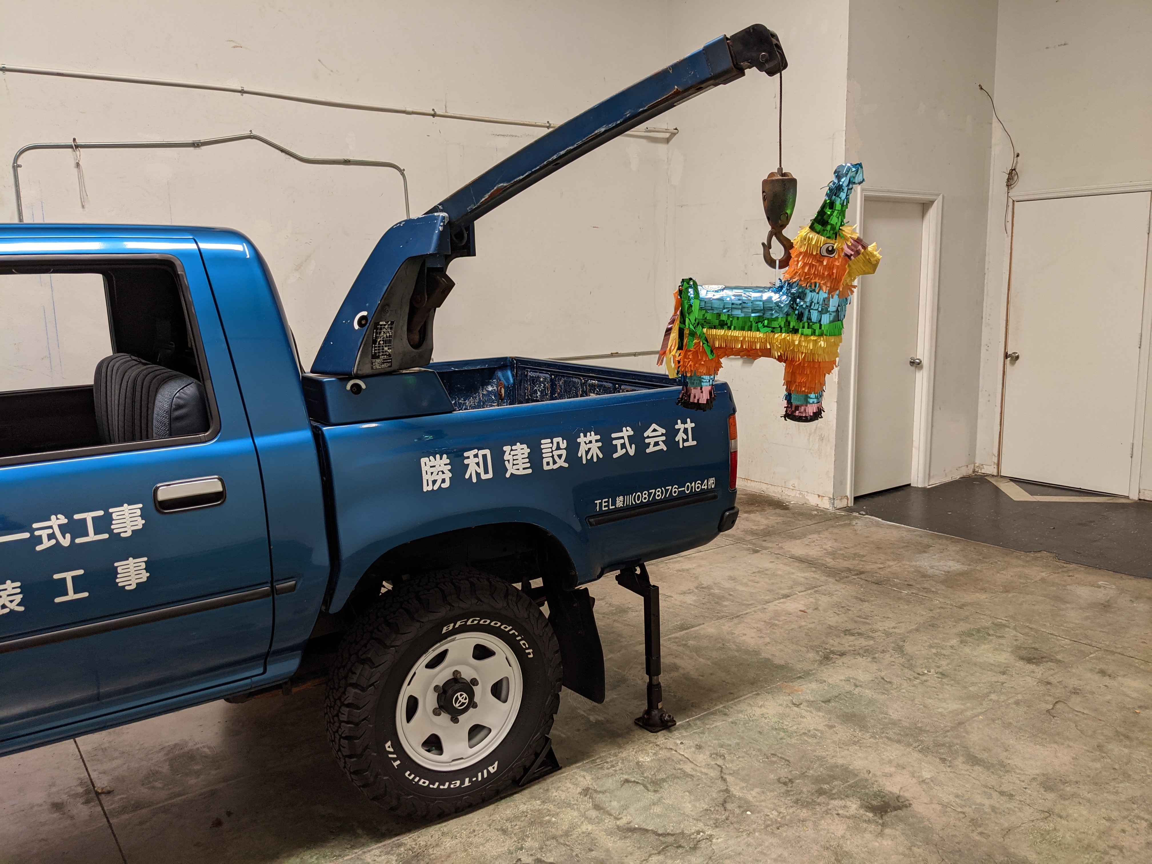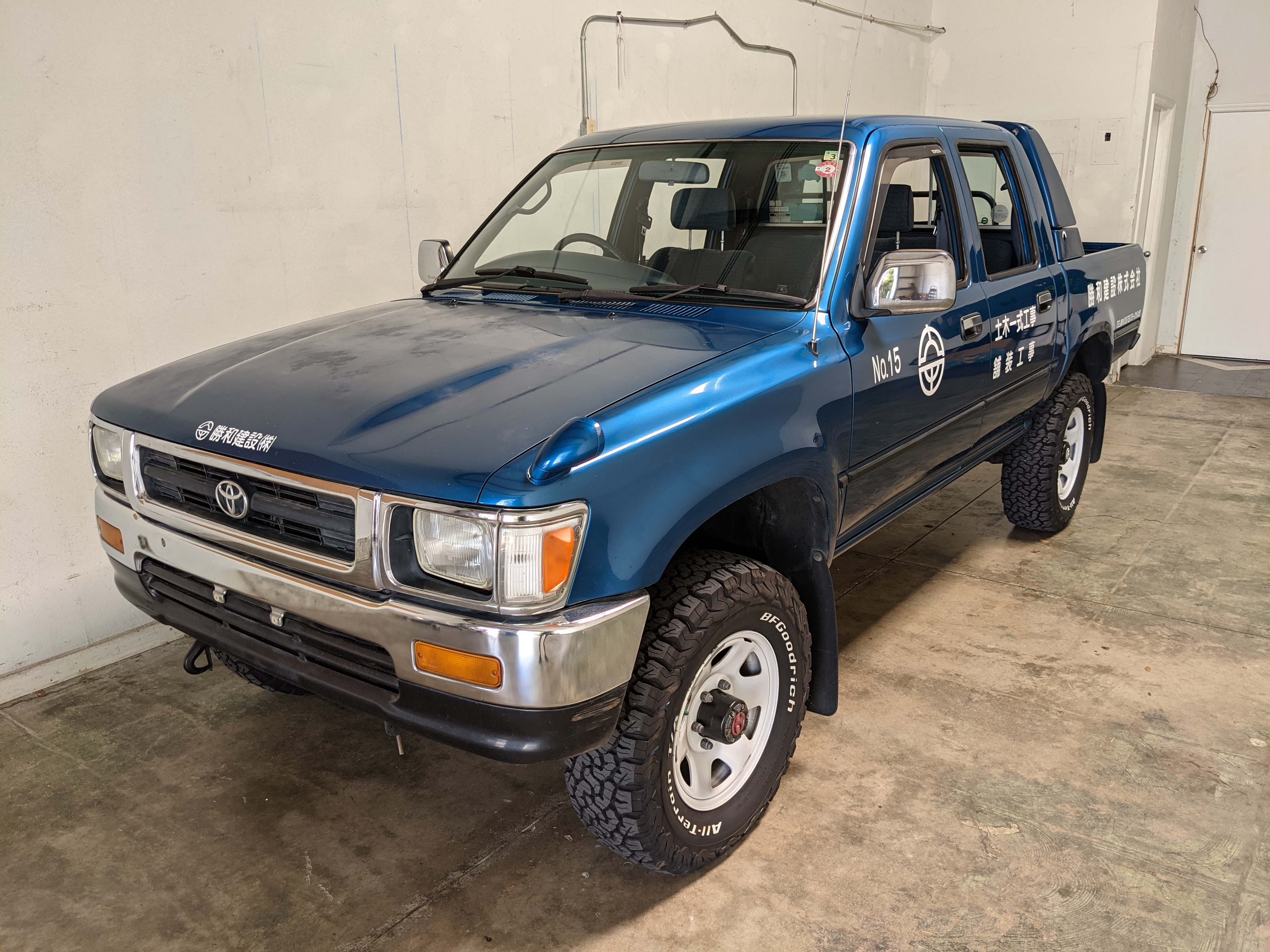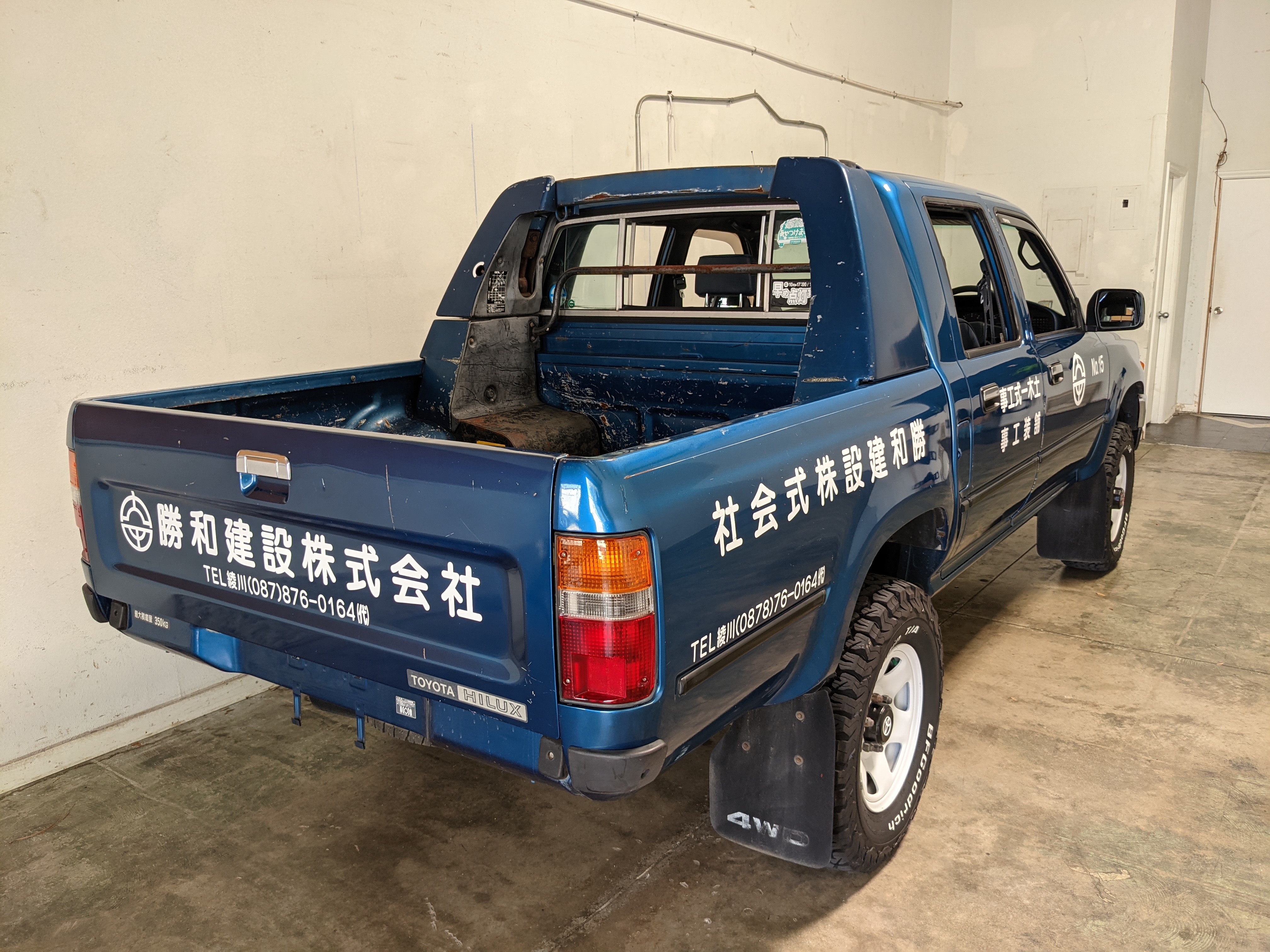 You are looking at a singular, wholly unique Toyota Hilux. There are others, but there is only a single example of No.15 wearing it’s former occupation’s uniform proudly. Beyond the decals, this model is also one of the extremely small number of ‘Active Base’ Hiluxes. This gives you a unique, Toyota-equipped integrated power crane in the bed. Information on this package is extremely scarce, beyond a couple of scattered posts across the internet, a YouTube video a gentleman in Japan posted, and a press release from the 90s by Toyota itself it is extremely difficult to find any information on them. Lucky for us this Hilux’s crane is completely functional and complete.