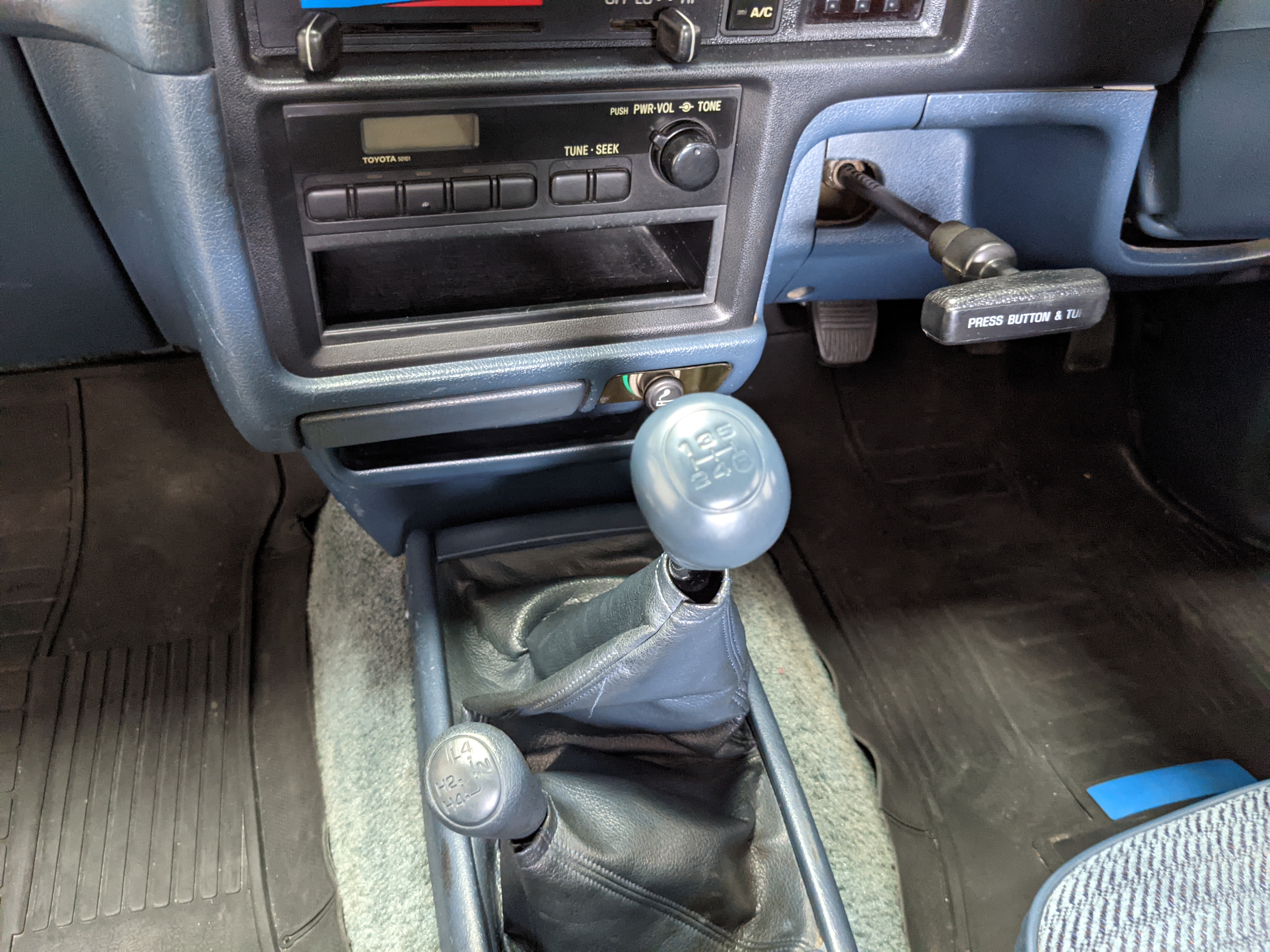 Mechanically this Hilux is what you want: Diesel, manual transmission, 4x4. The 3L 2.8 liter 4 cyl NA diesel engine can not die, is completely cast iron (no aluminum head here) with wholly mechanical injection. Nobody would call this truck fast, but it absolutely will get you to where you need to go. AC works great, drives straight and true, no leaks, no burning of oil, no issues at all. She’s ready to work if need be.