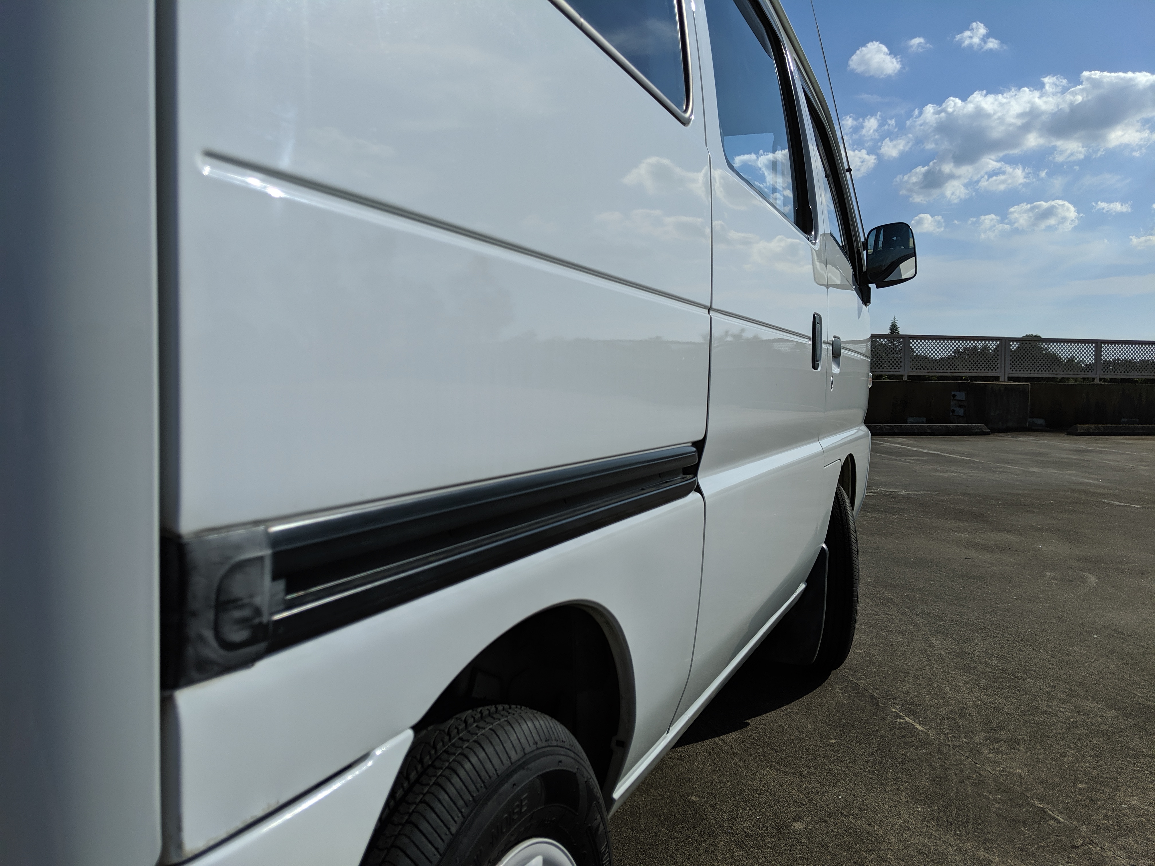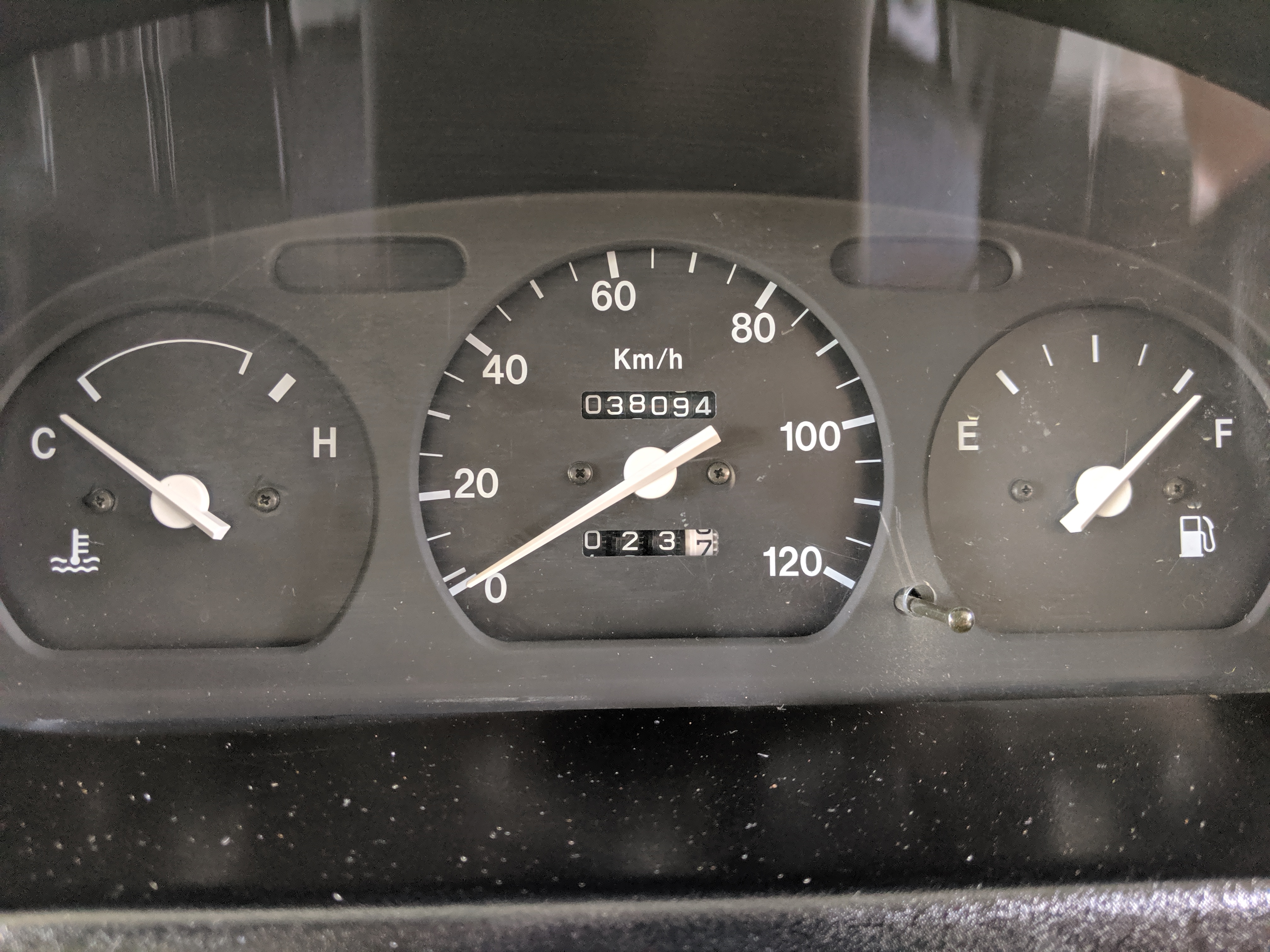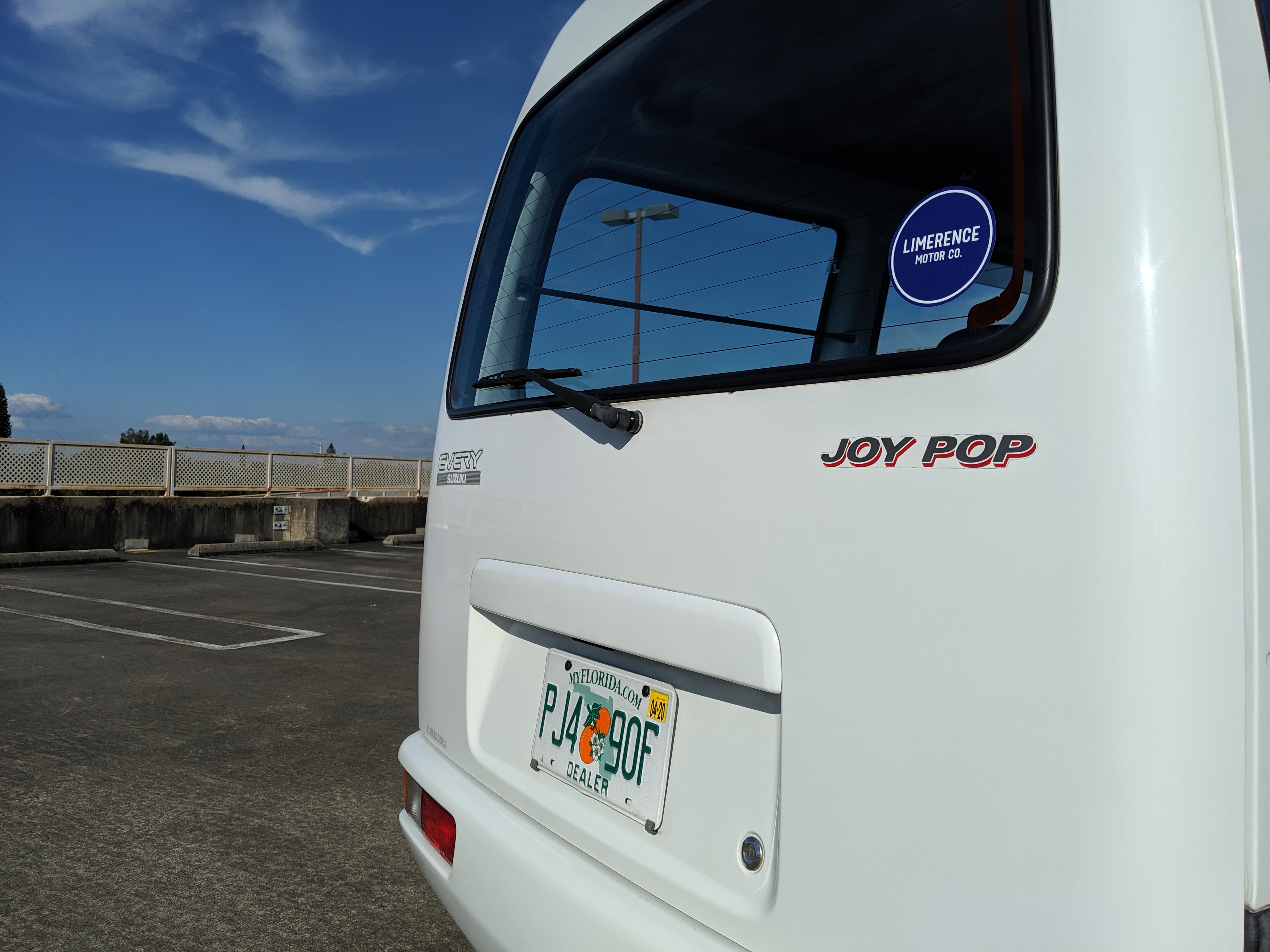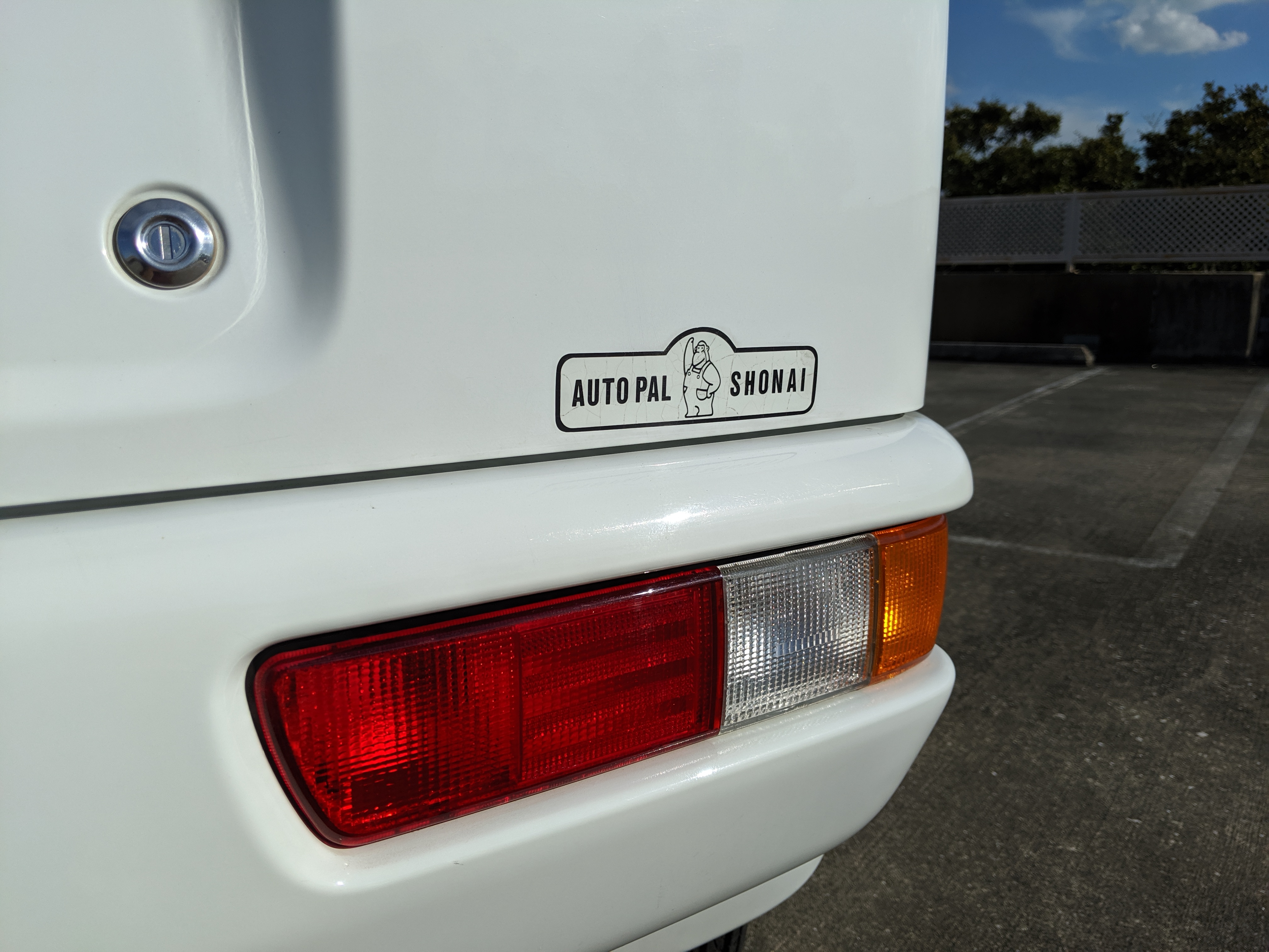 While it is a trope for a dealership to claim that the car being sold was owned by a little old lady and only driven to church on Sundays, Japan has various tags that are to be applied to vehicles based on their owners. This Joy Pop was sold at auction wearing a 'koreisha mark', indicating that the driver of the vehicle is over 70 years old. Based on the amount of wood and sawdust on the inside of it when it arrived here in the USA I don't think the previous owner was taking it to church so much as maybe driving wood back and forth between a few locations. Based on the condition and low mileage I don’t imagine they drove much since 1993.