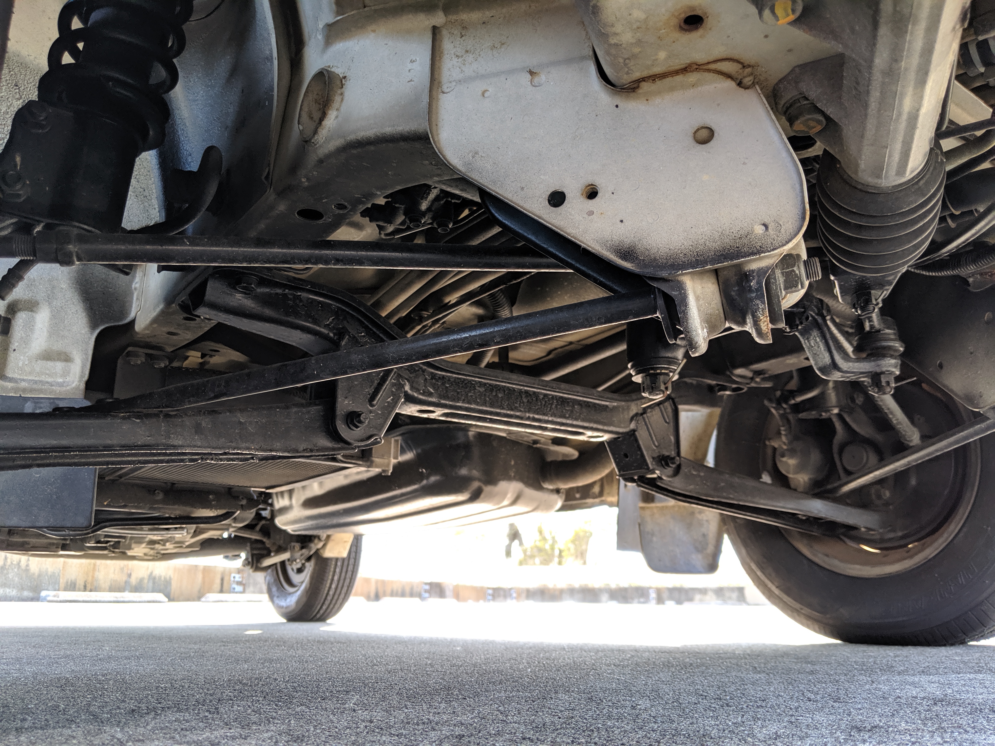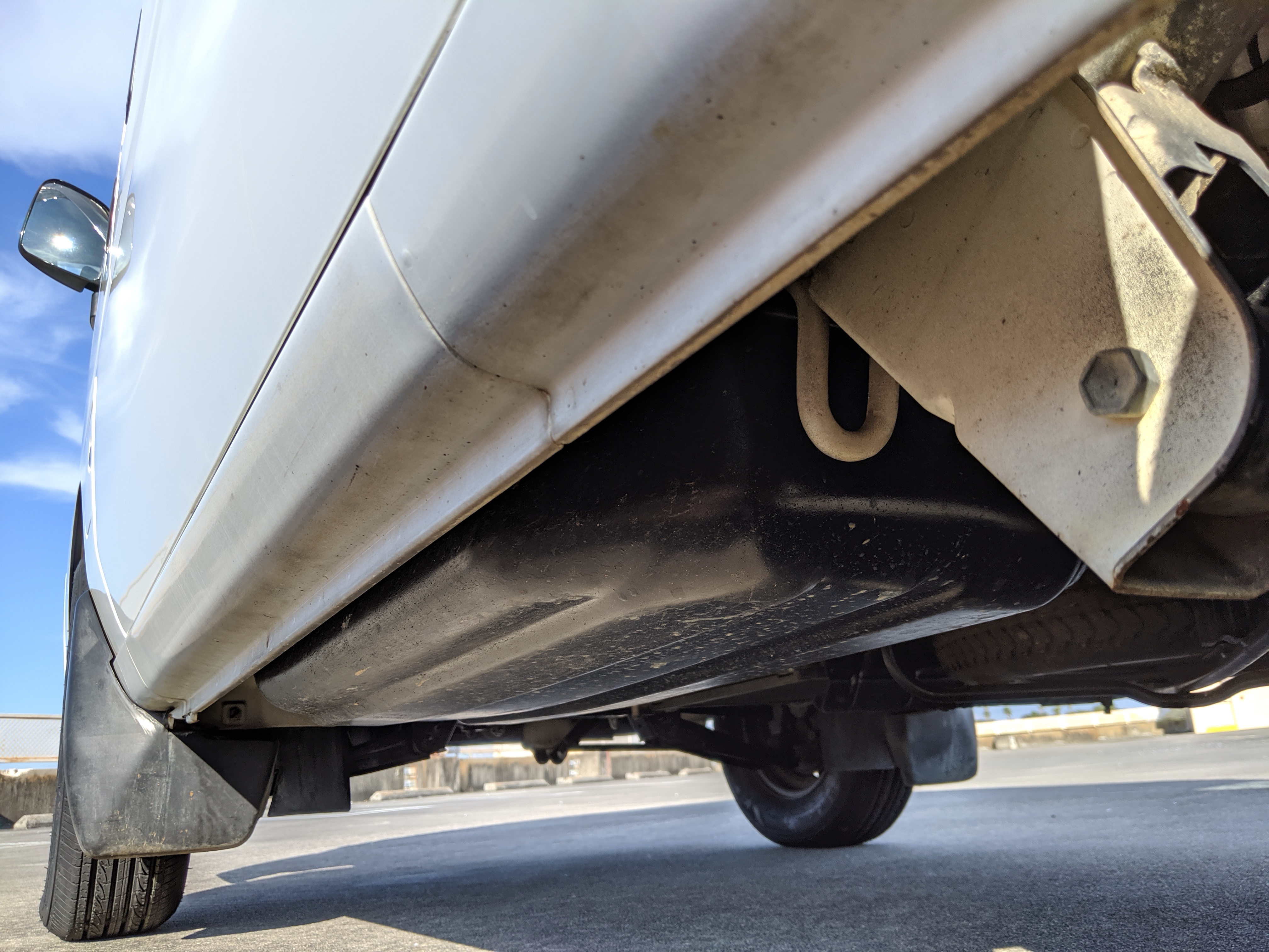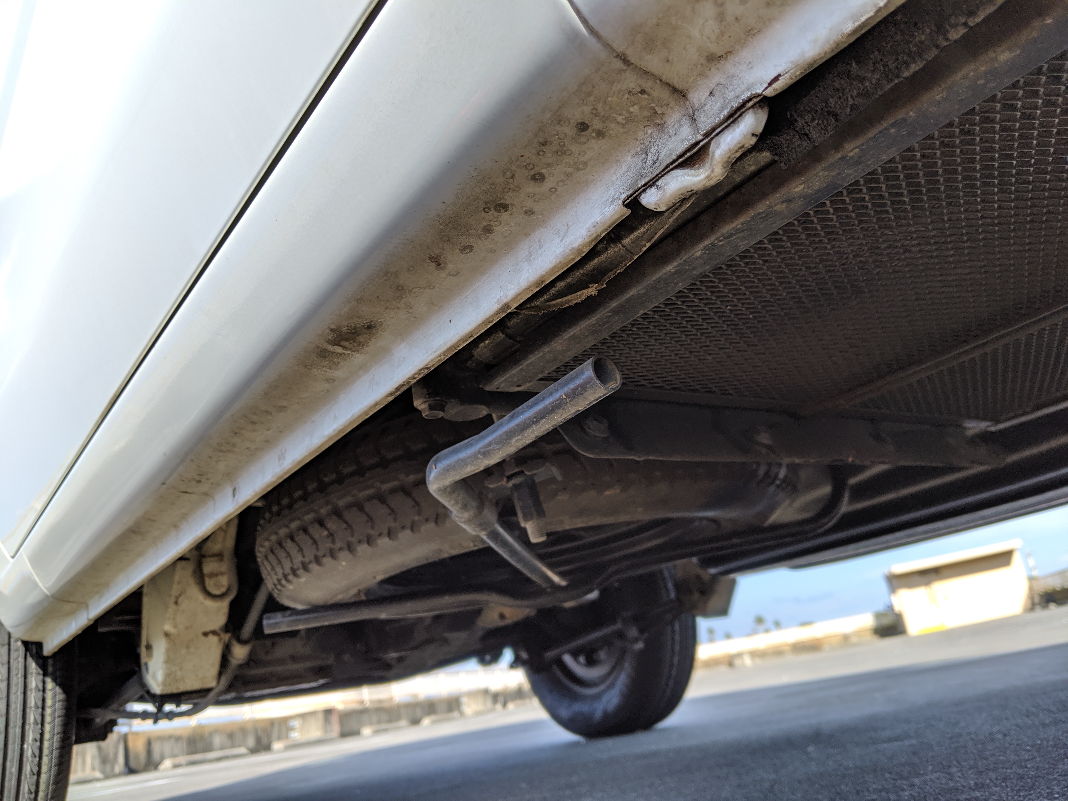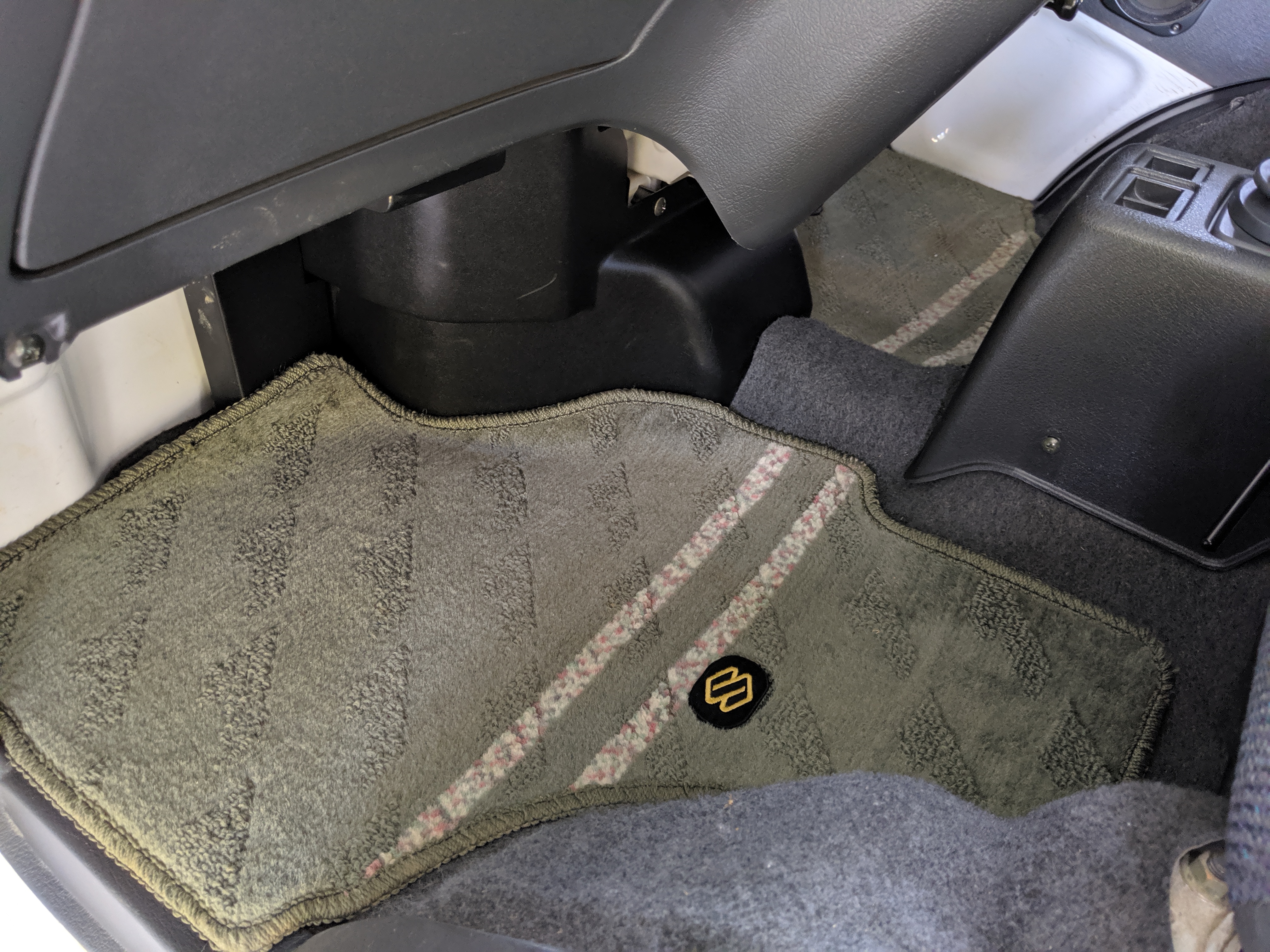 Exterior is white, with a set of white wheel covers. Tires are brand new, with no dents, rust, or corrosion to be found anywhere. Glass is clean, clear and also in perfect condition. Emblems and labels are in wonderfully good shape, with a bonus ‘AUTO PAL SHONAI’ sticker on the rear. Underside is remarkably clean as well. There are a few blemishes on the outside, most notably the front left and rear bumpers as shown in the pictures.