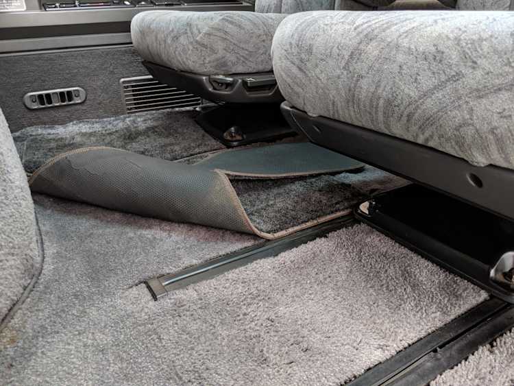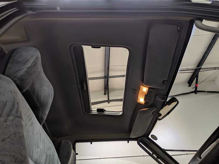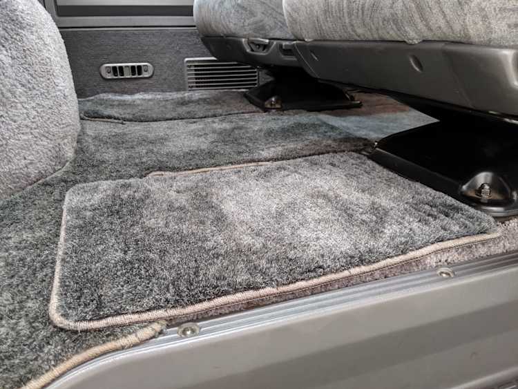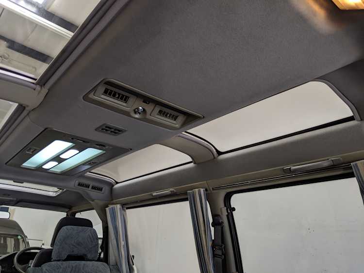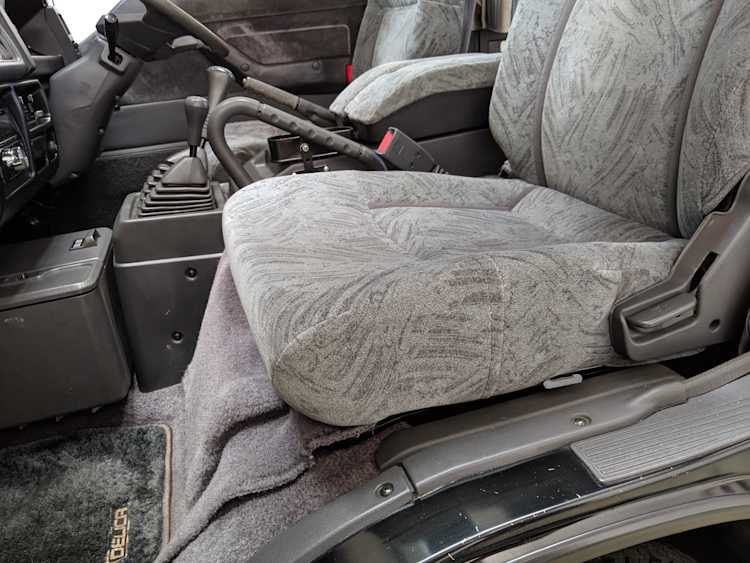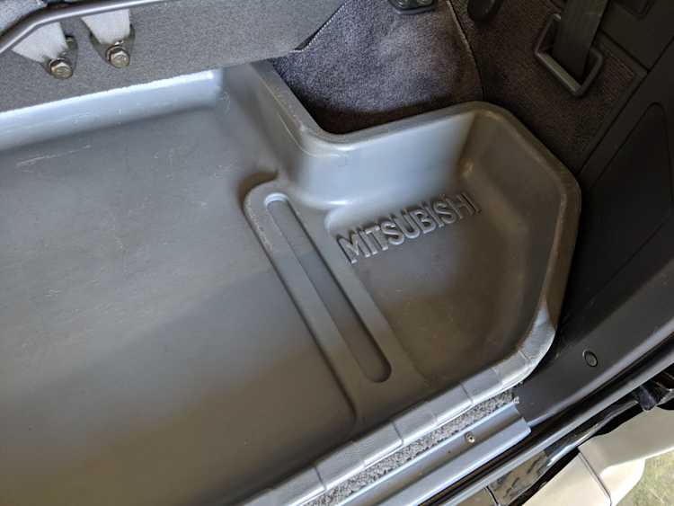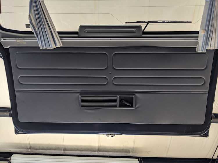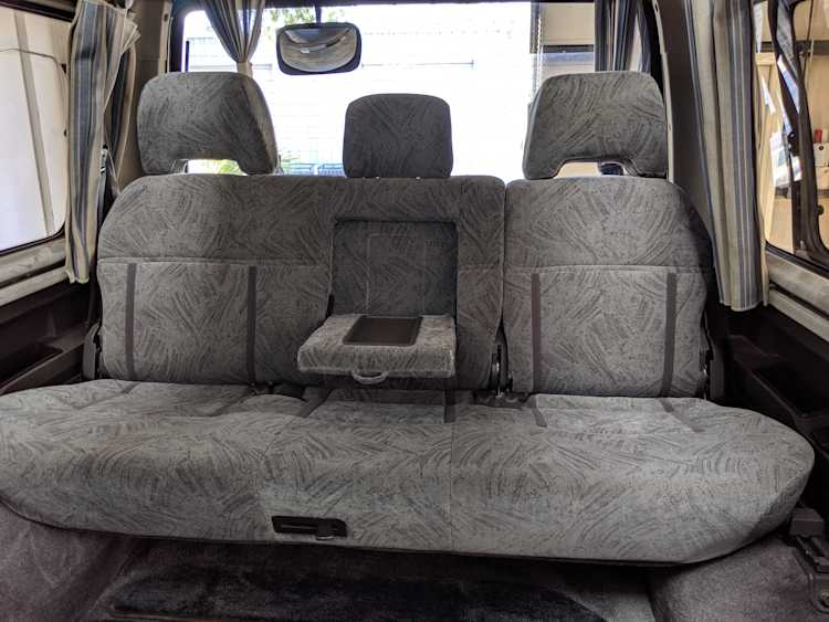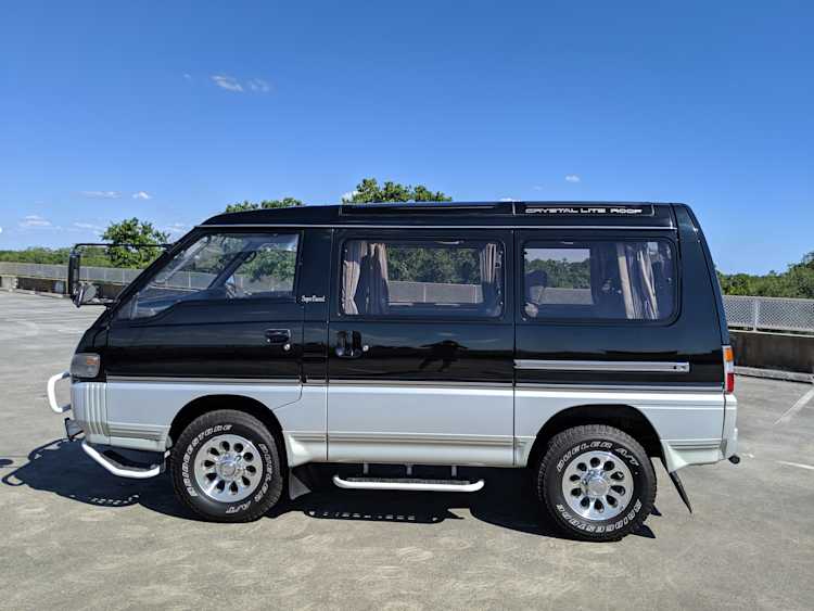 In back is the real place to be, with two spinning captain’s chairs in the same luscious fabric as the front, which can be spun around 360 degrees locking at various points, though it should be noted that in order to use the shoulder belts you must be facing forward. These two chairs can also slide forward and backward along the floor. The rear bench seat is donned in the familiar fabric pattern and has a center armrest. On the right wall opposite the sliding door is the rear controls for the rear heater and AC unit. Controls are also located for the driver up front. All the original floor mats are included and are way softer than floor mats should be for any vehicle. In the rear cargo area is a little bonus in the form of a plastic tray embossed with ‘MITSUBISHI’. Above in the roof is the defining characteristic of high-trim Delicas, the Crystal Lite Roof. 4 large curved glass panels give a excellent view of the sky while driving. Each shade can be individually opened or closed, or be toggled all at once. Rear vents and a large overhead fluorescent light show up here as well. Please note that the left front rear shade is ‘sticky’, the reason is the cable that drives the shade is damaged a bit meaning it can close all the way but will need to be helped along to open back up. Completing the aesthetic is curtains that can be drawn over all the exterior rear windows. You’d be hard pressed to find a newer, lower mileage, manual transmission Super Exceed. These L300 Delicas have the following they do for a reason, if you’d like to jump in you couldn’t do better than this 1994 Delica.