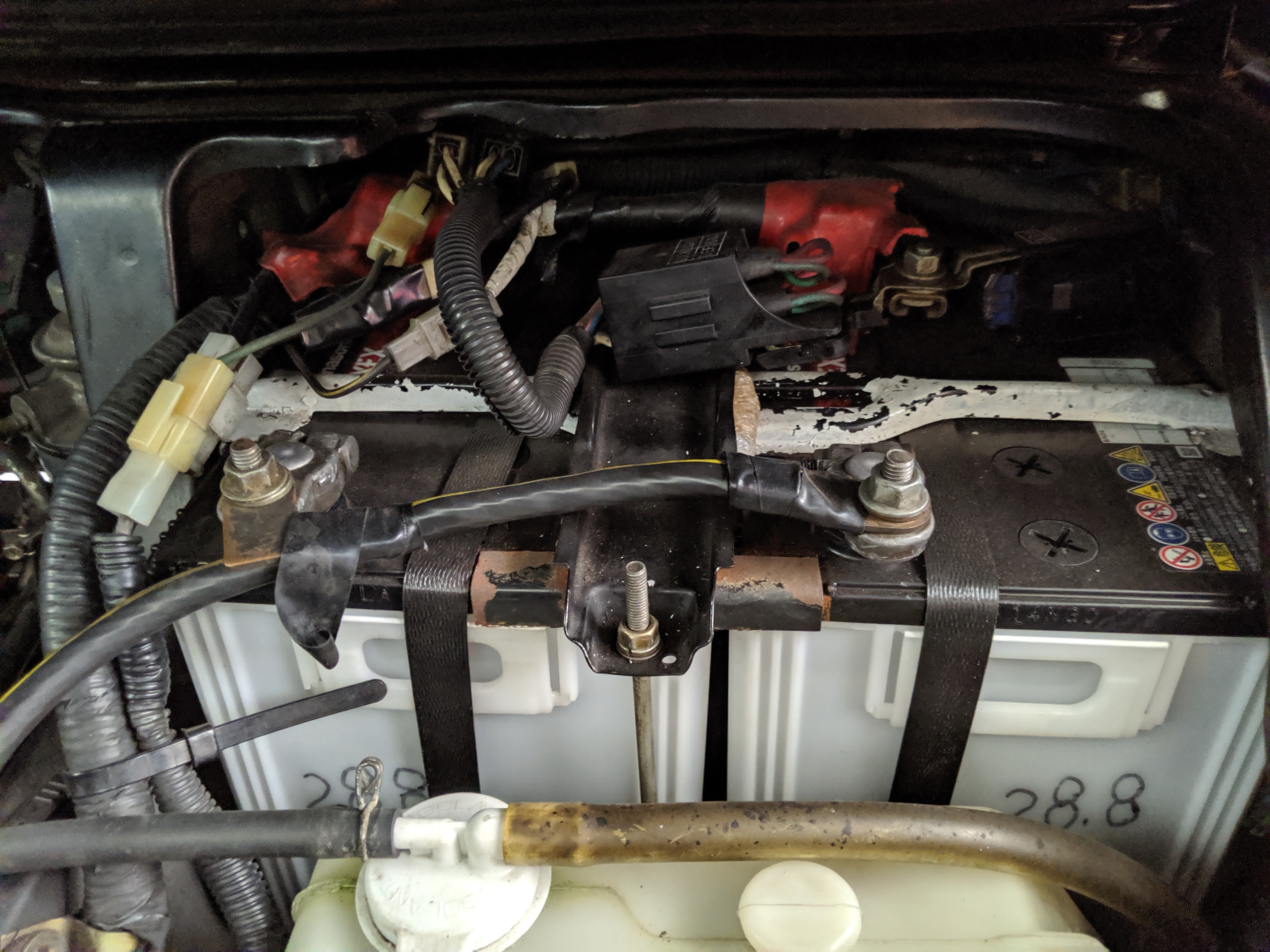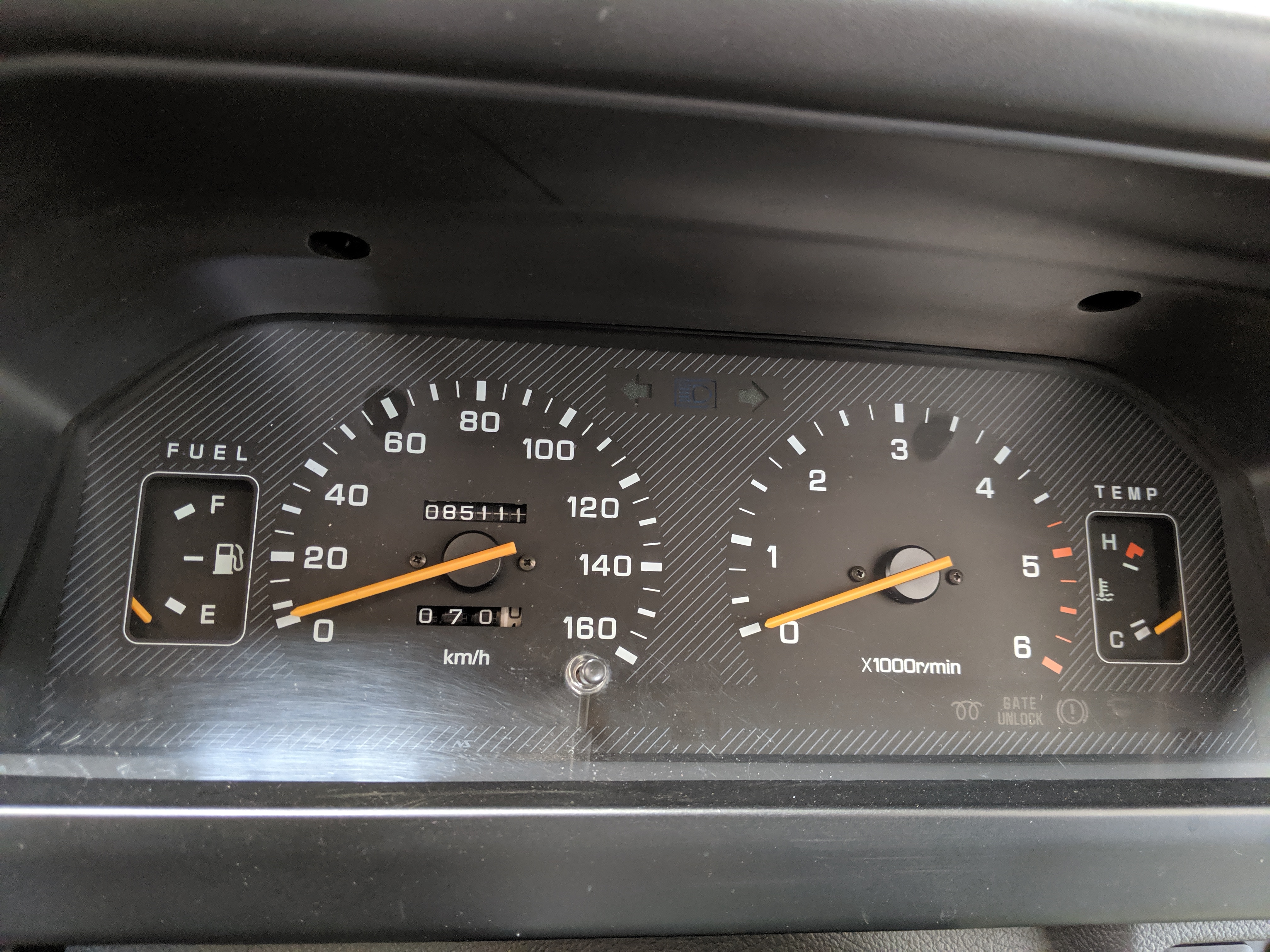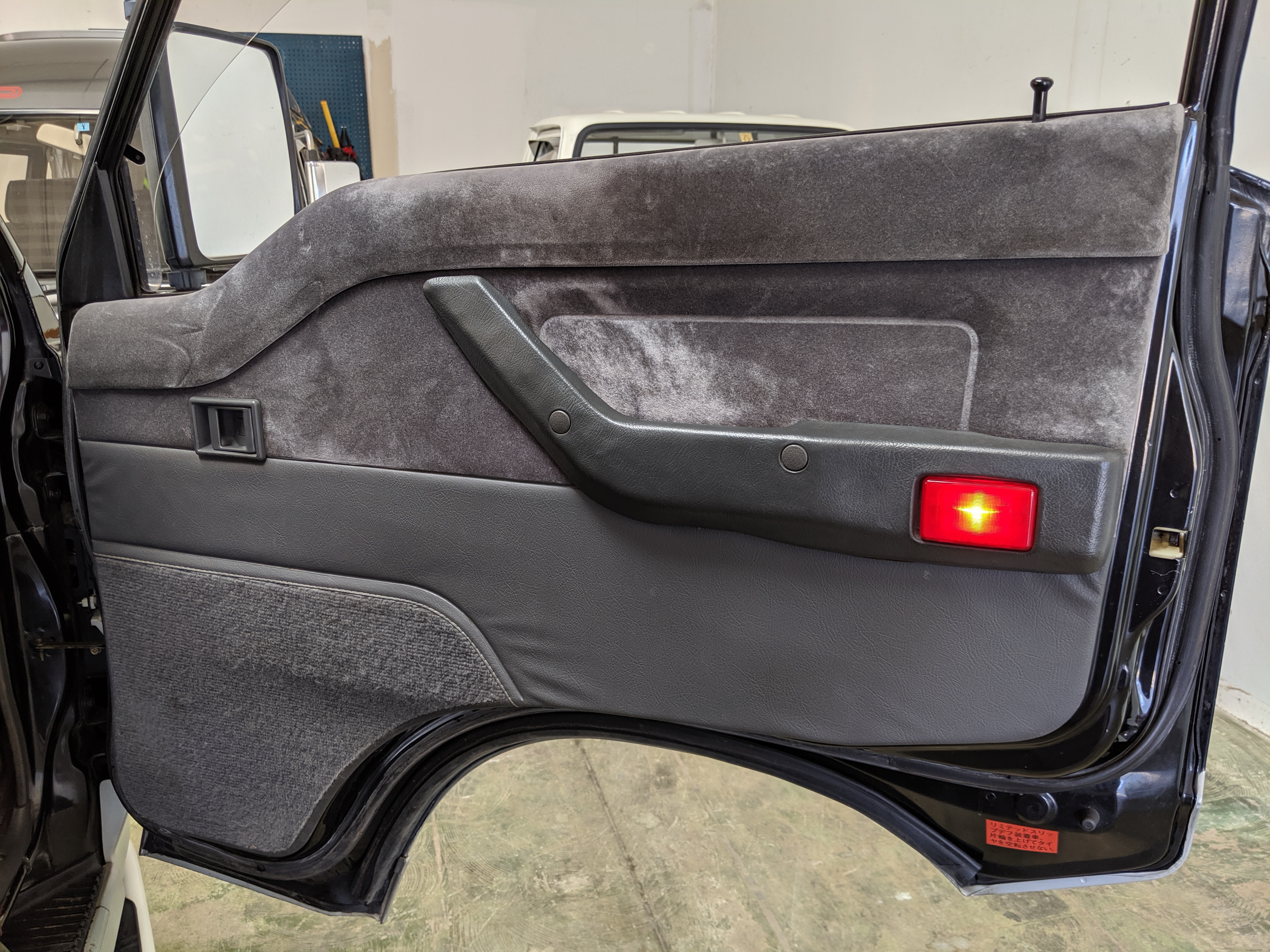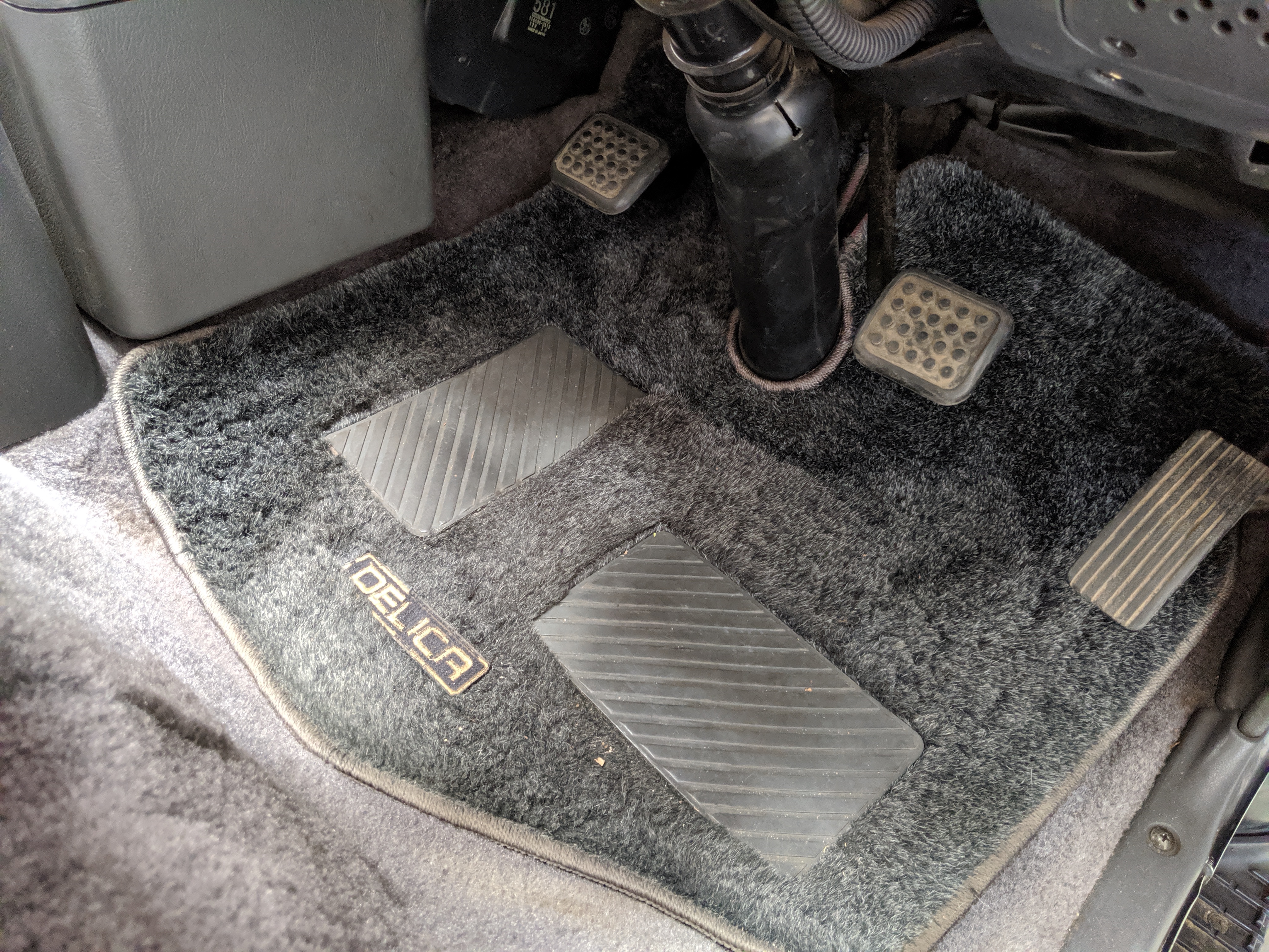 Inside is the good stuff. Thick pile carpeting and even thicker floor mats with Chamonix-style seats throughout. Everything is where it should be, save for they center pod that usually goes on the dashboard that includes an interior and exterior thermometer and inclinometer. Previous owner had a (poorly installed) TV installed there, though the vehicle included the OEM inclinometer pod. We had to have that shipped separately, and it is included with the purchase of the van. Besides that, everything is clean, clear and in glorious original condition. Gauge cluster says it all, with an odometer showing under 86,000 total kms, translating to an absurdly low 54,000 miles. In the center starting at the bottom you’ve got the functioning COOL BOX, which can both heat and cool its contents and also make ice. Above that is the HVAC controls, including excellent functional air conditioning and heat. The original double-din OEM headunit will also be included (it is in the same shipment as the inclinometer) though a Pioneer unit is installed at the moment, giving you a CD player, USB and AUX input. Above the rearview mirror and dome lights are controls for the rear Crystal Lite Roof shade controls with a manual sunroof just for the driver and front passenger. The glove box contains the original Delica user’s manual.