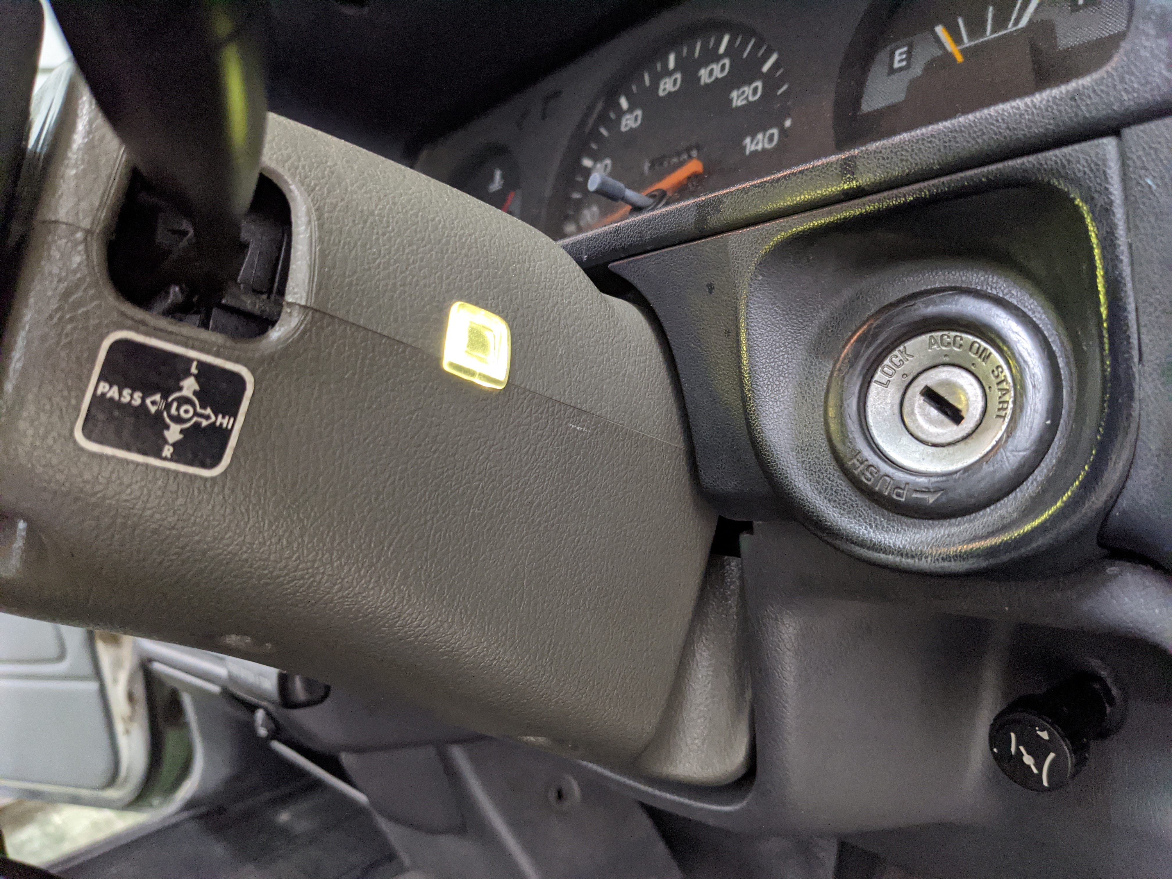 This 1994 Hilux just might be the most pure form of ‘pickup’. Body on frame with solid front and rear axles with leaf springs at all four corners. Single cab, long bed, fully-cast iron 3L 2.8 liter diesel engine, completely mechanical injection pump with a 5 speed manual transmission. Dual battery setup. Fully-mechanical and lever-actuated 4x4 transfer case, manual AISIN locking hubs. Integrated cargo rack on the bed with tie-downs spaced evenly along the outer lip. Original factory steel wheels, painted white, wrapped in brand new BF Goodrich KO2s white letters out. Completely vinyl interior with a single bench seat, roll up windows and completely analog instrument cluster. You don’t even get a tachometer. The single luxury option equipped on this truck (and boy is it a good one) is wonderfully cold air conditioning. Because this truck is a 1994 the AC is a factory-original R134 system. Your headunit is an OEM Toyota radio. This truck is a true immortal.