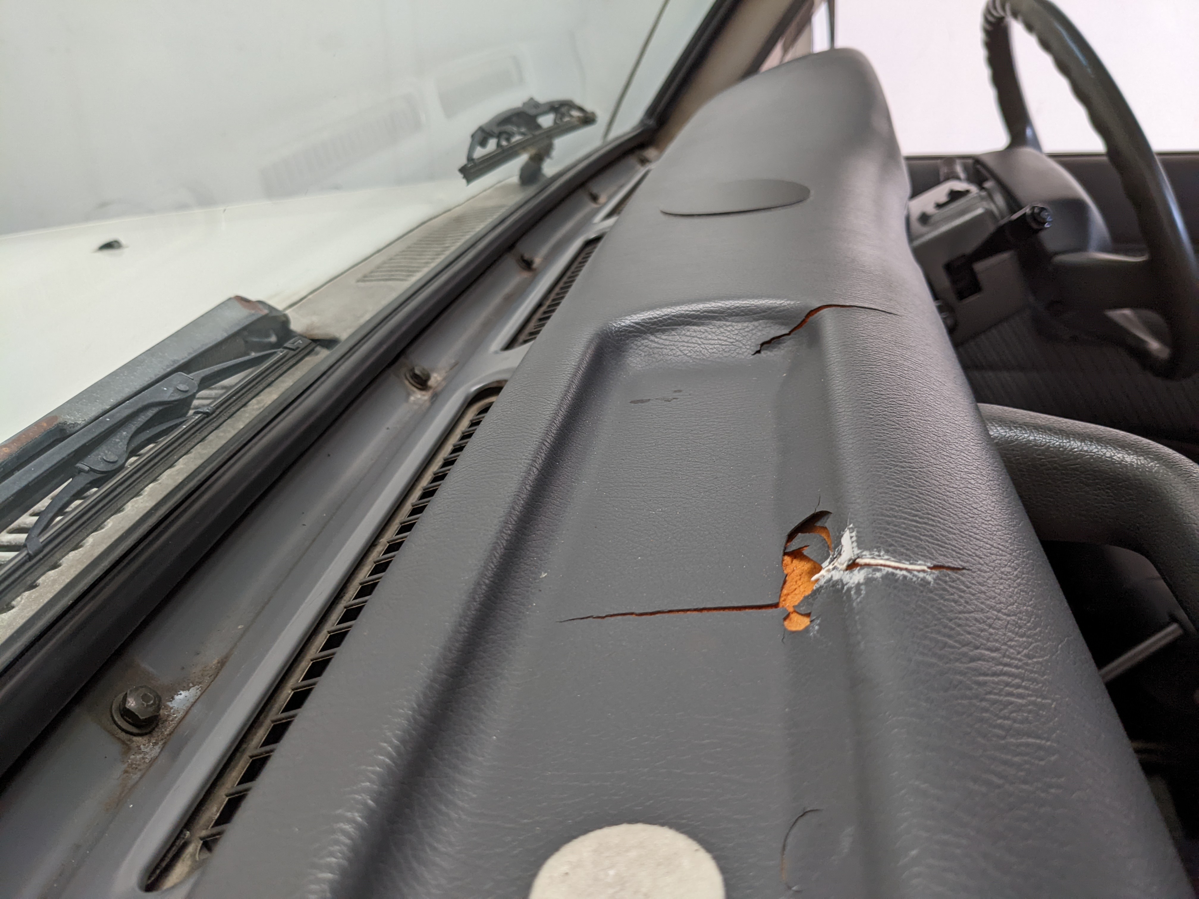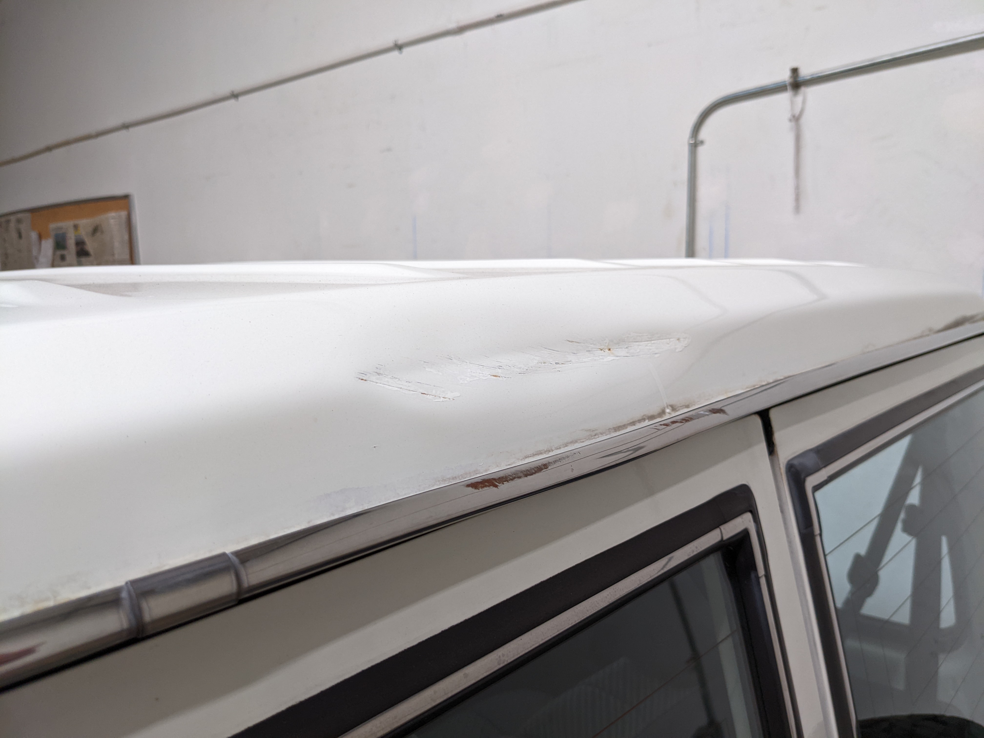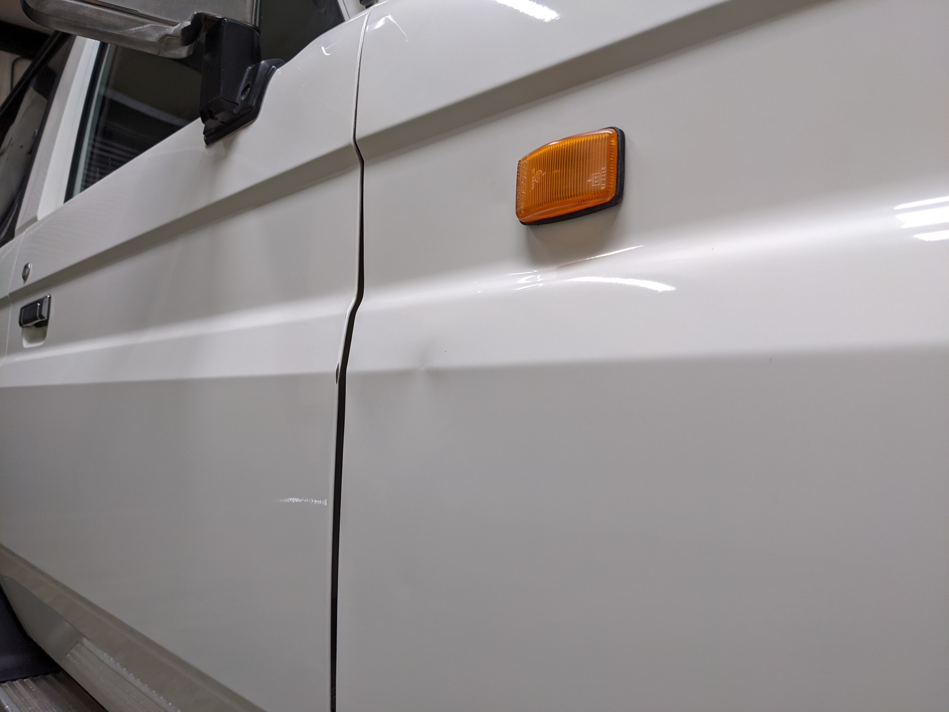Exterior is quite clean for the age, though there is a dent on the right front fender, along with a dent in the rear top portion of the roof. Likewise there are four total points of rust, on either door toward the rear of the window track plus on each side of the rear quarter panels just in front of the rear wheels. Please see pictures.