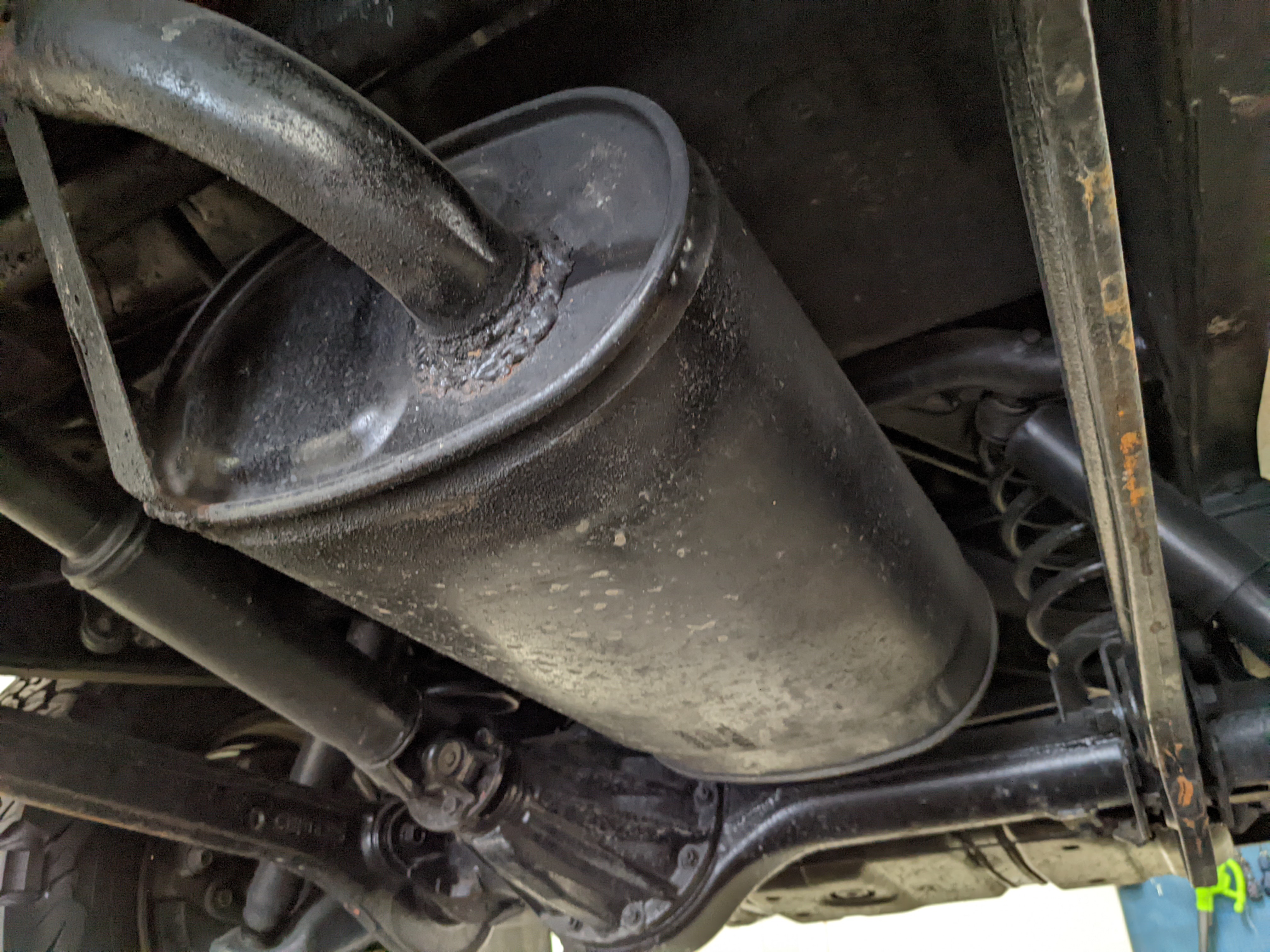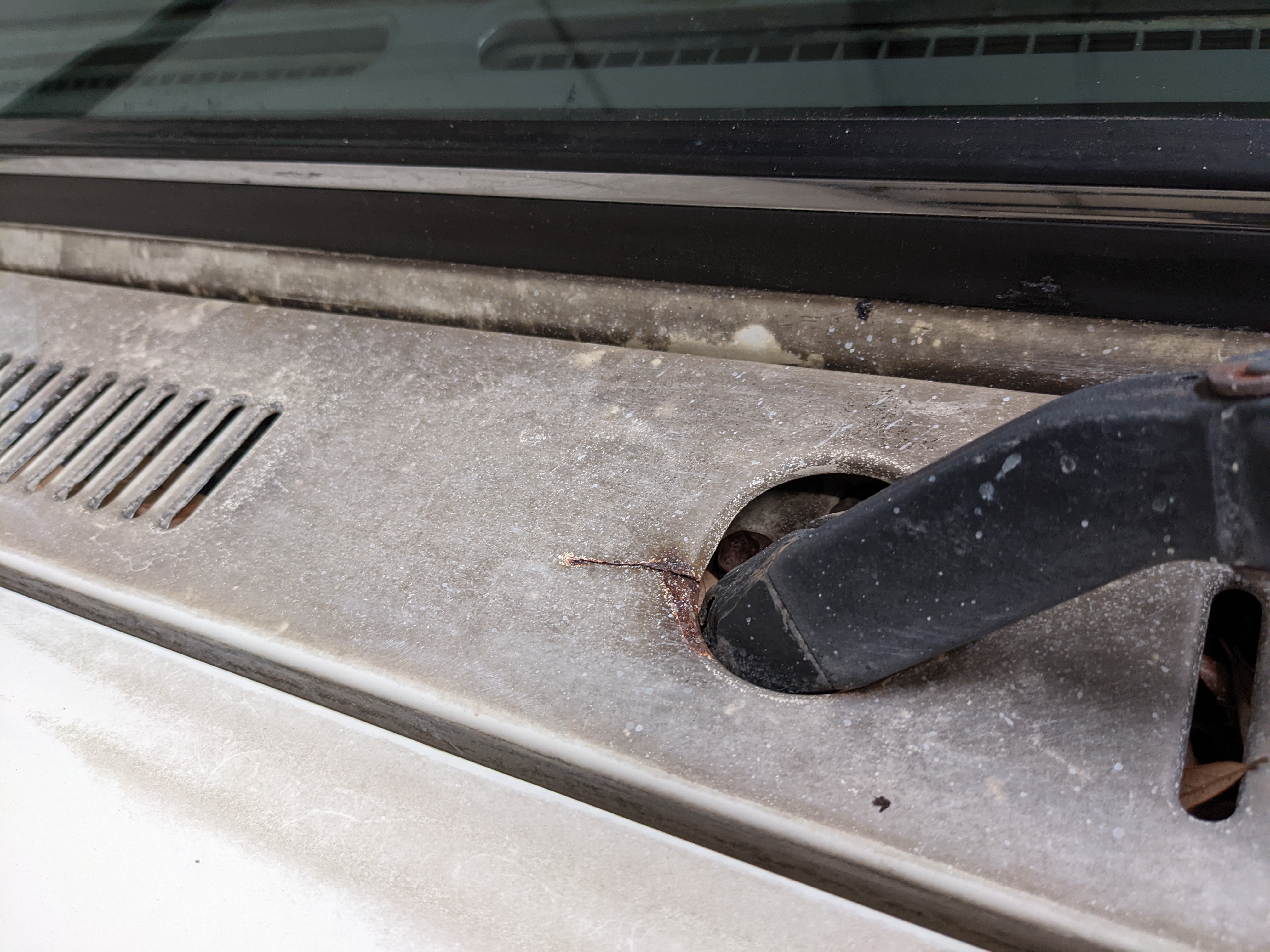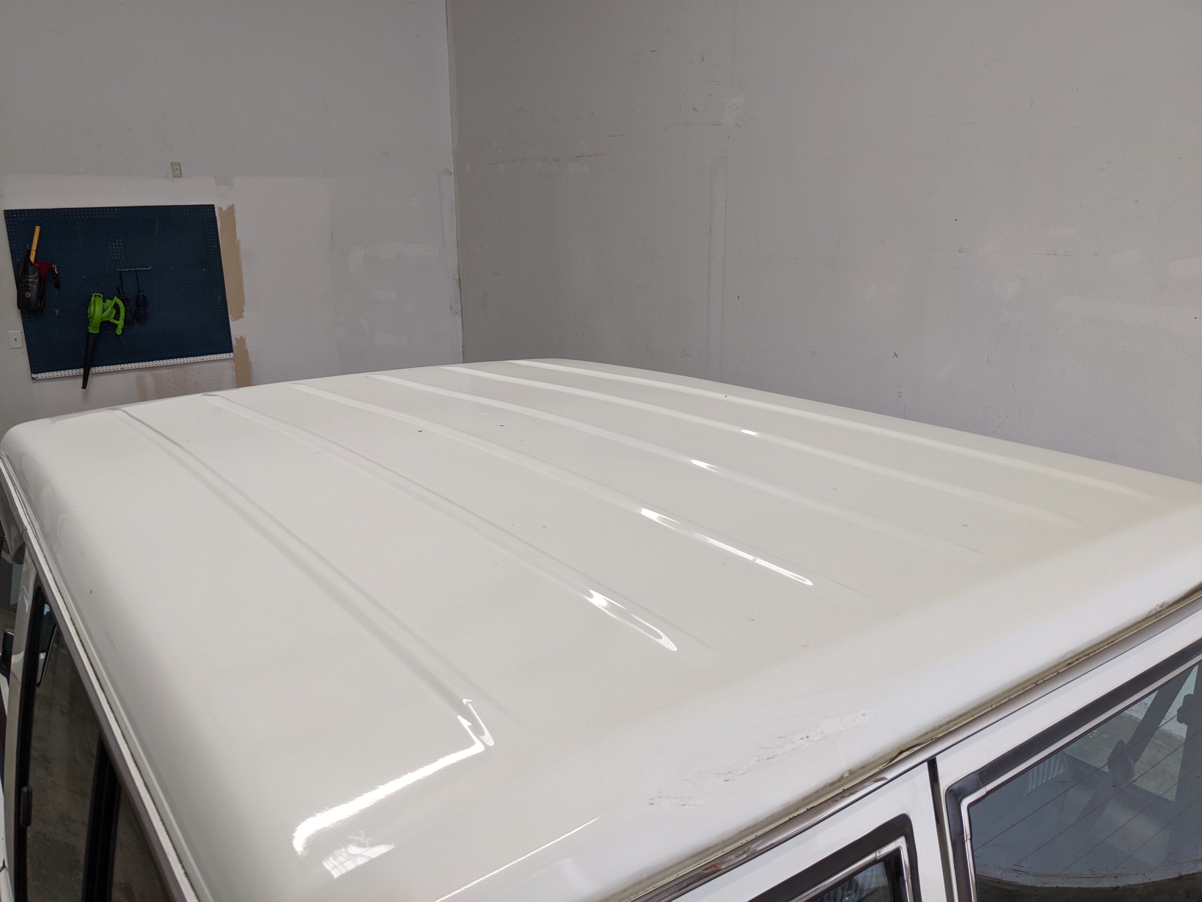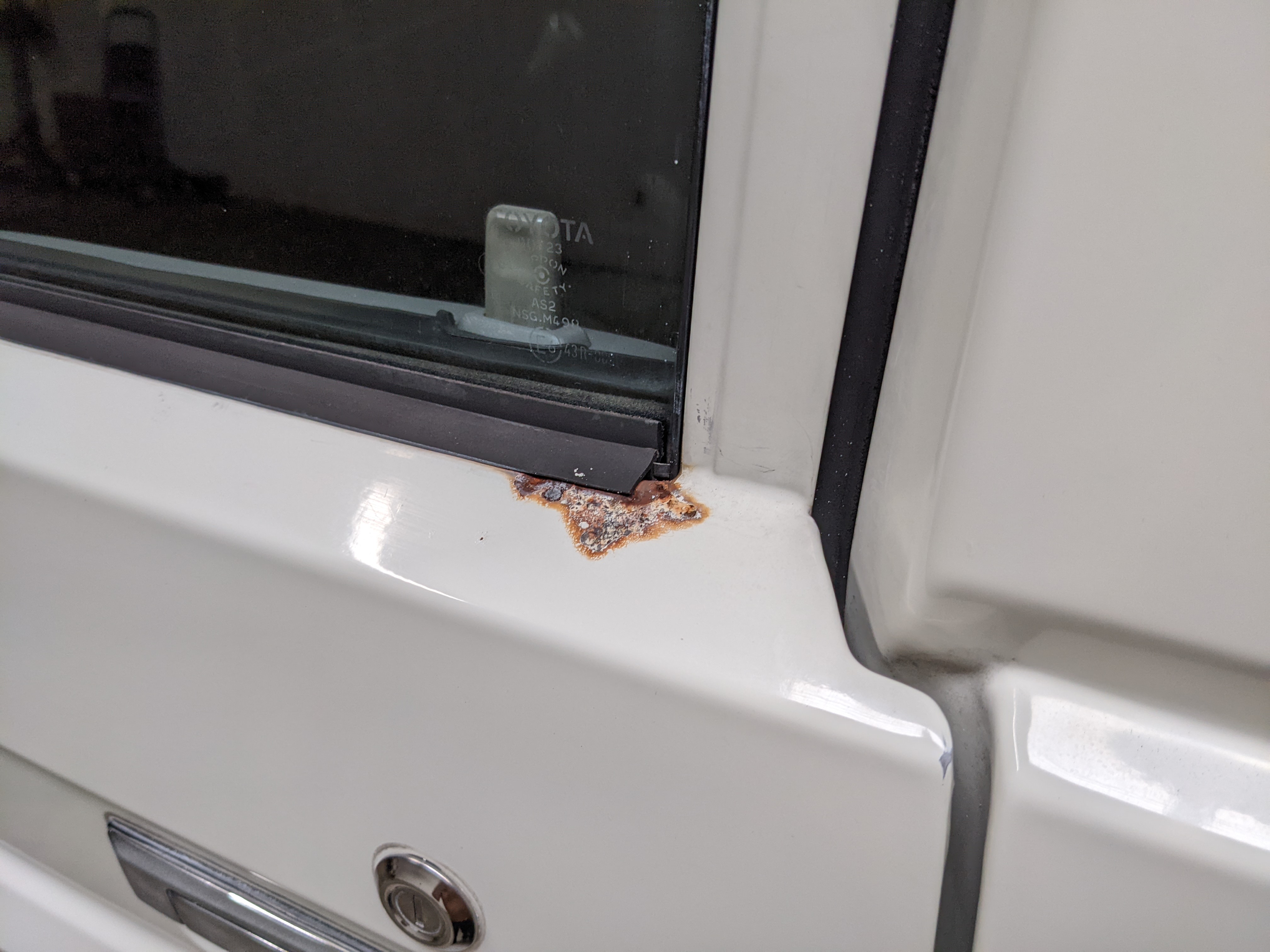 Exterior is quite clean for the age, though there is a dent on the right front fender, along with a dent in the rear top portion of the roof. Likewise there are four total points of rust, on either door toward the rear of the window track plus on each side of the rear quarter panels just in front of the rear wheels. Please see pictures.