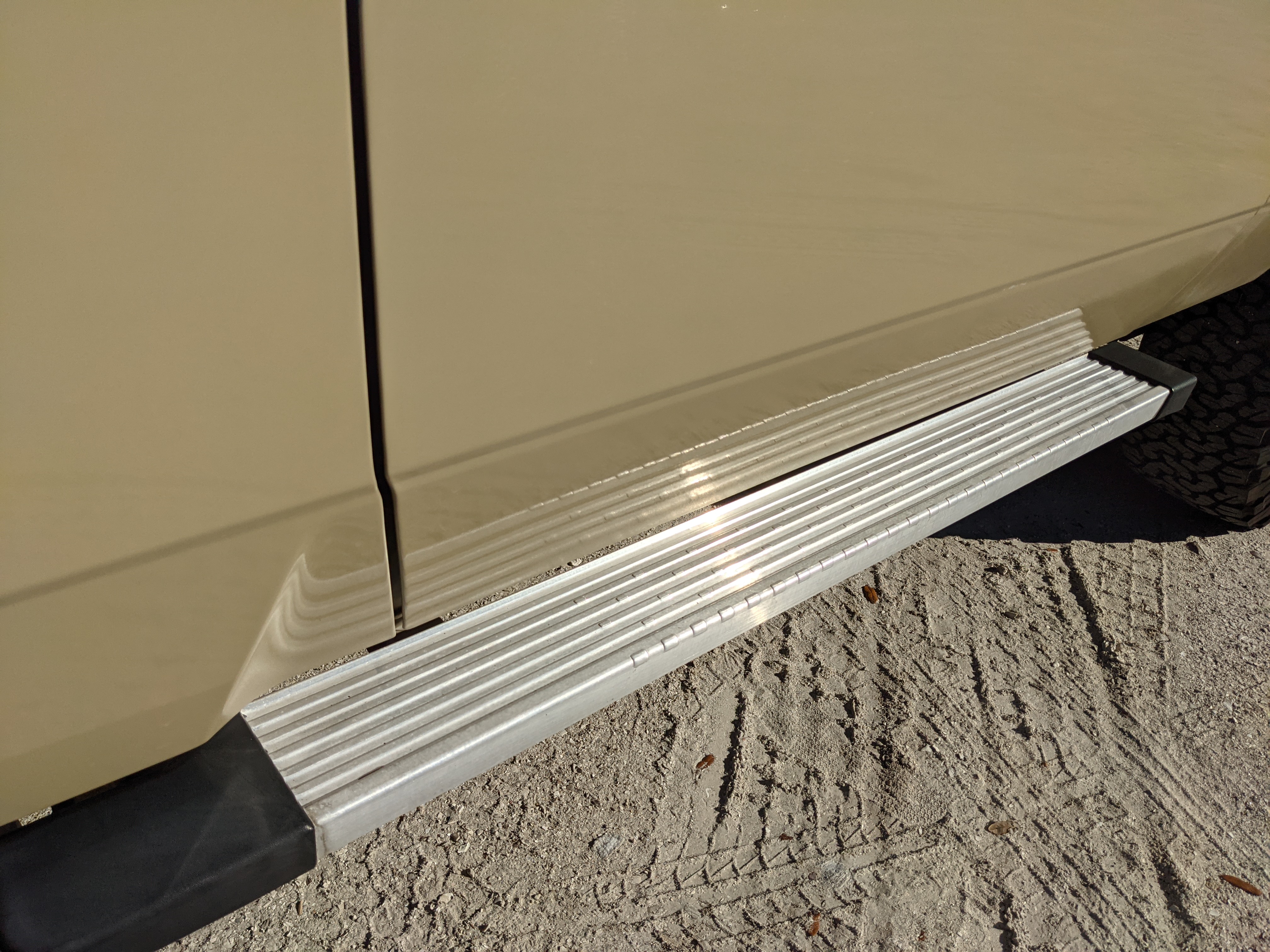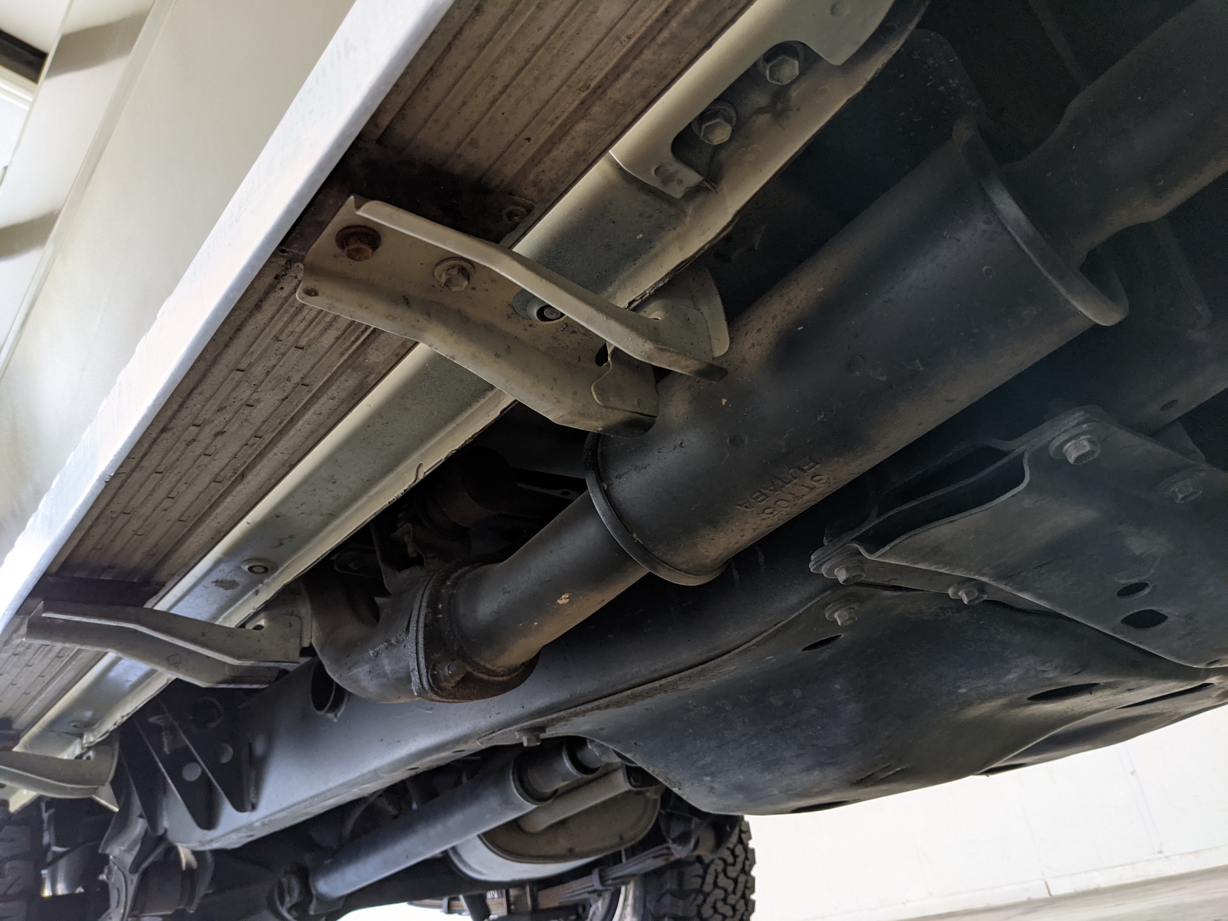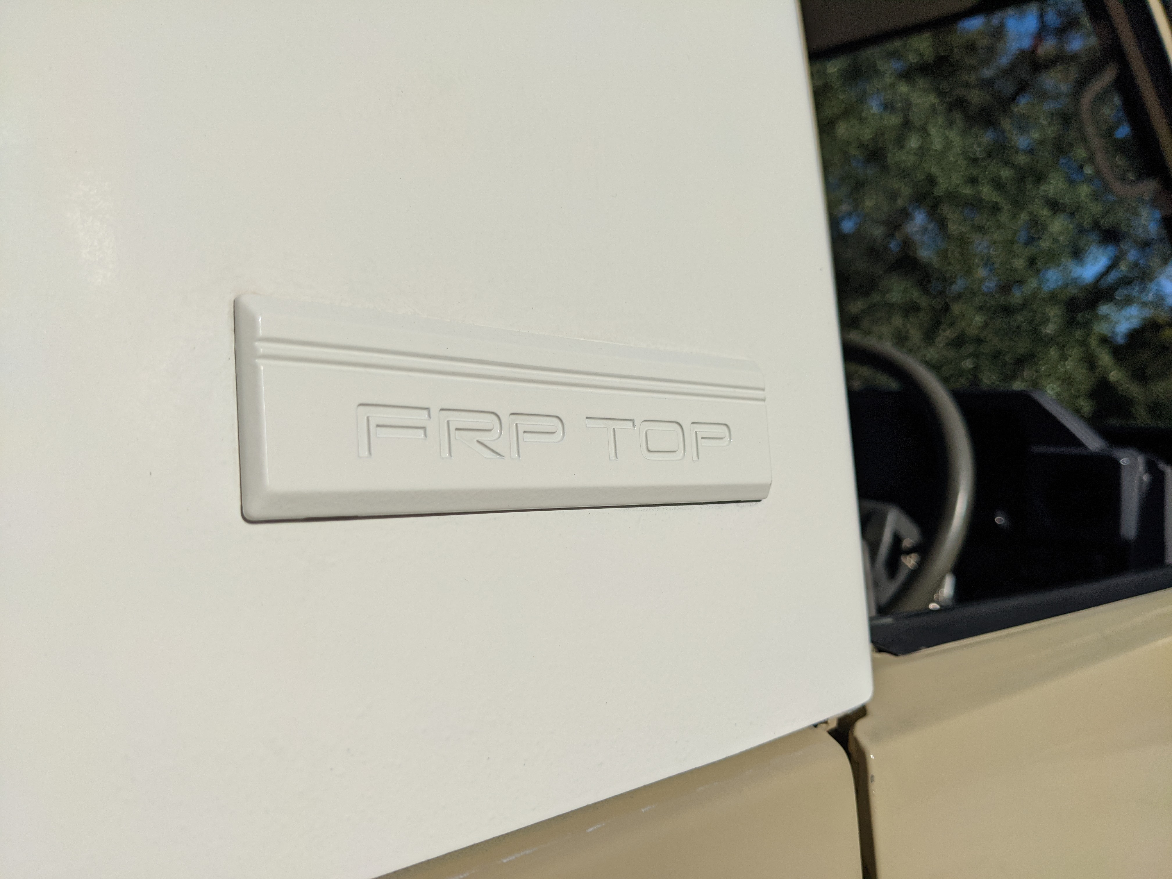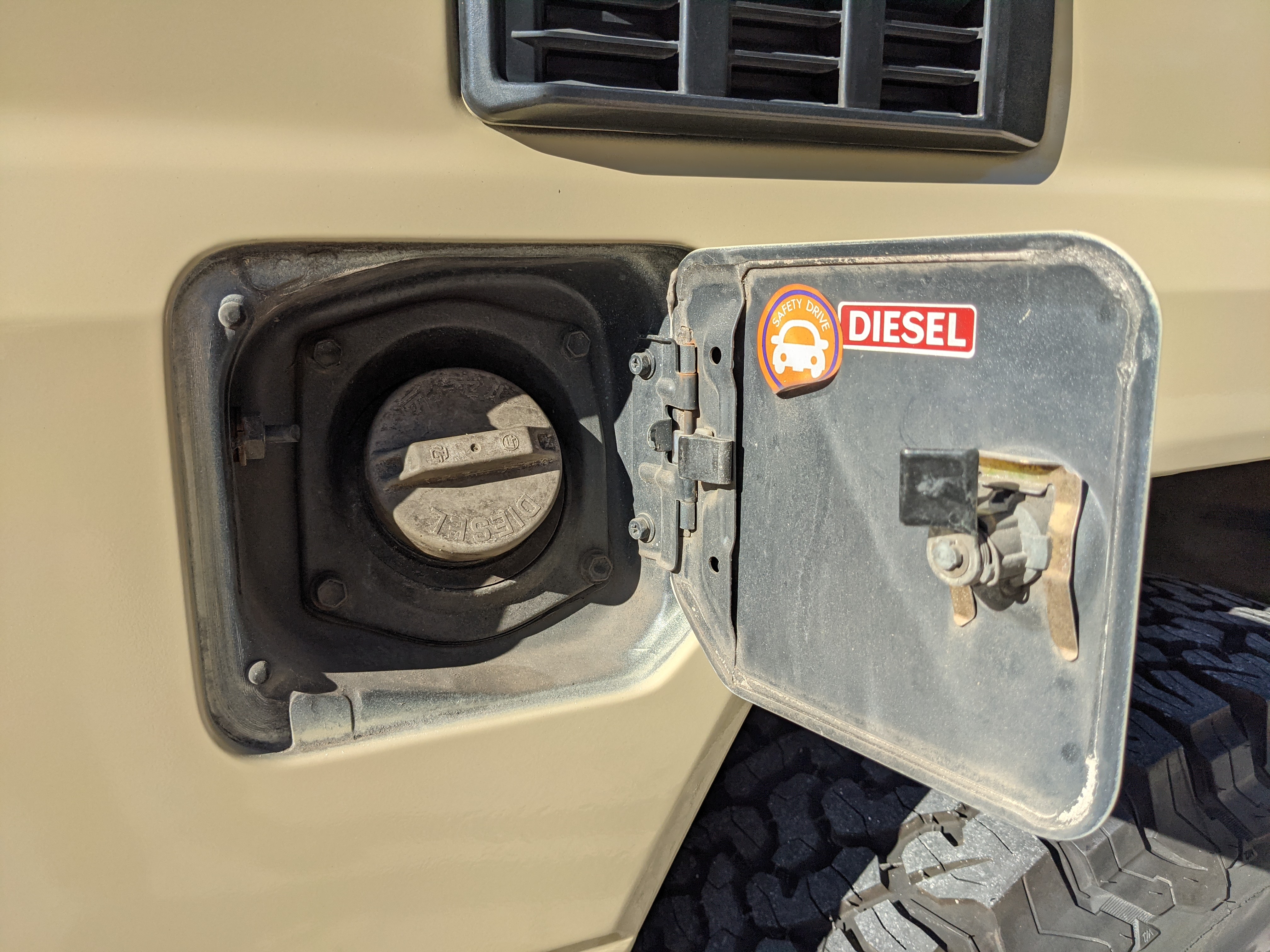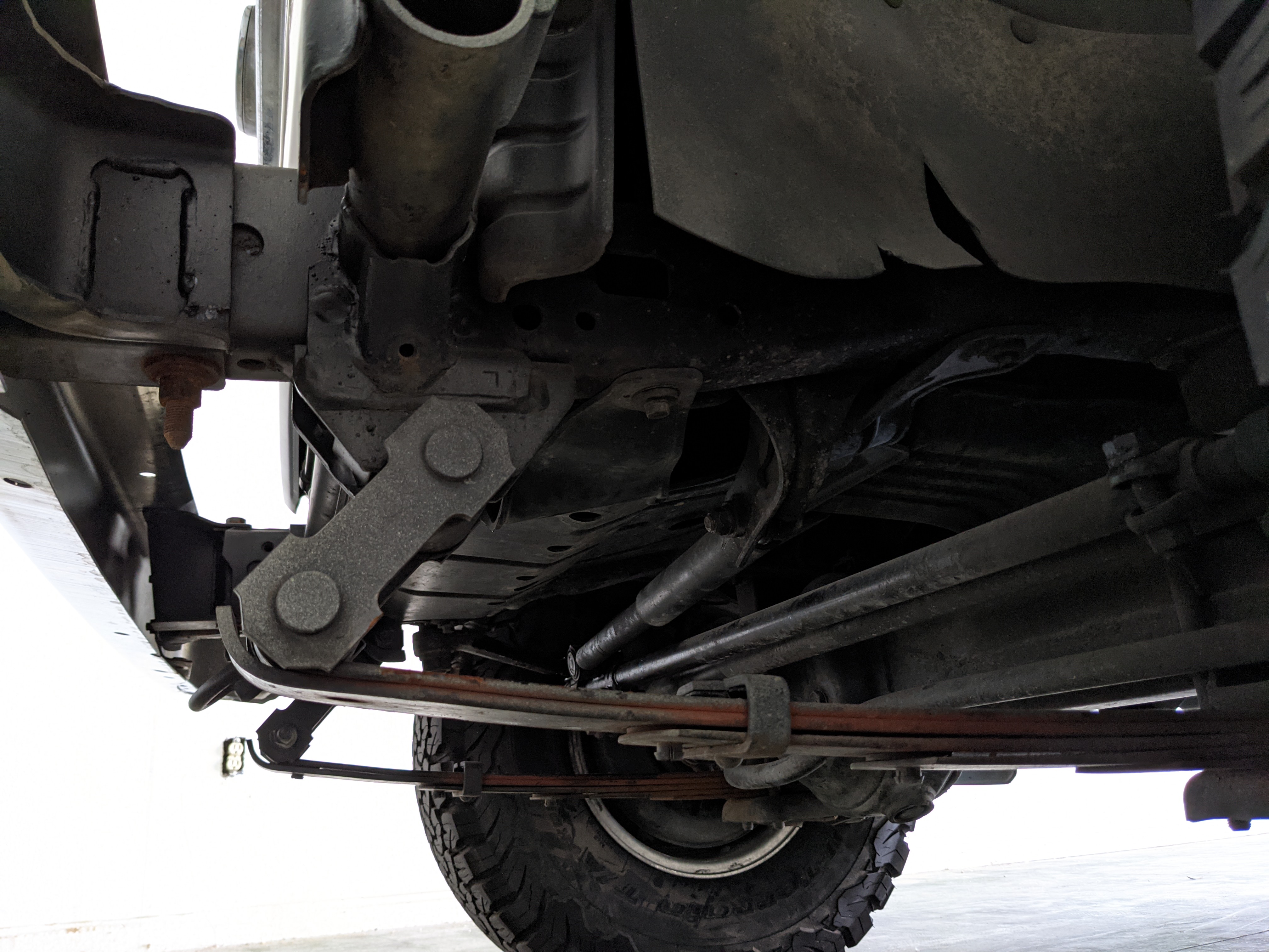 Desert tan on this narrow body model with a bright white FRP top gives a great contrast against most ‘always mad grrr’ designs that SUVs of this type typically wear these days. No dents or dings in the body work either, just straight, clean edges. Spare tire cover has been removed for an even more minimalist look. Aftermarket aluminum wheels are wrapped in brand new 32 inch BF Goodrich KO2s, white letters out.