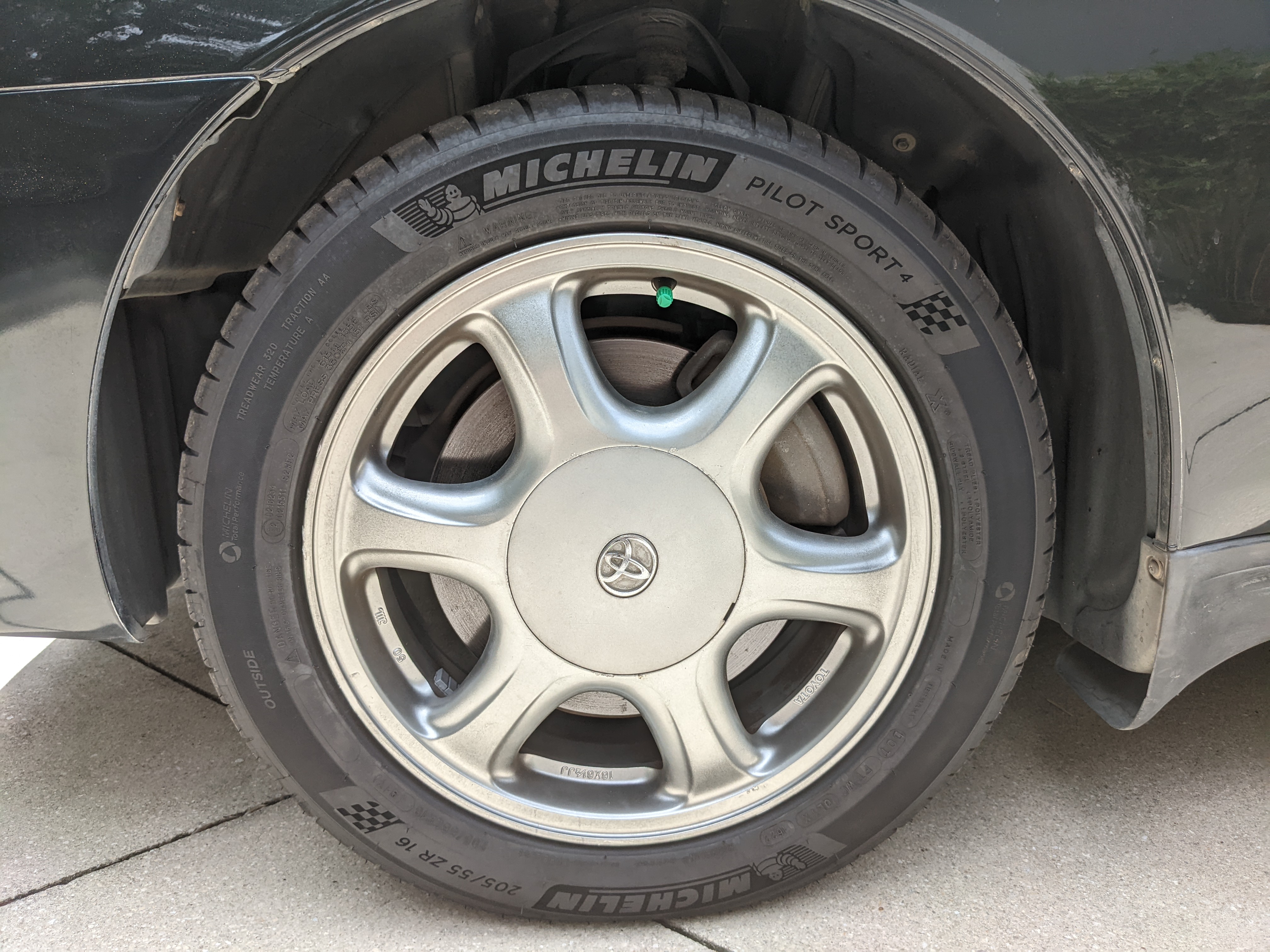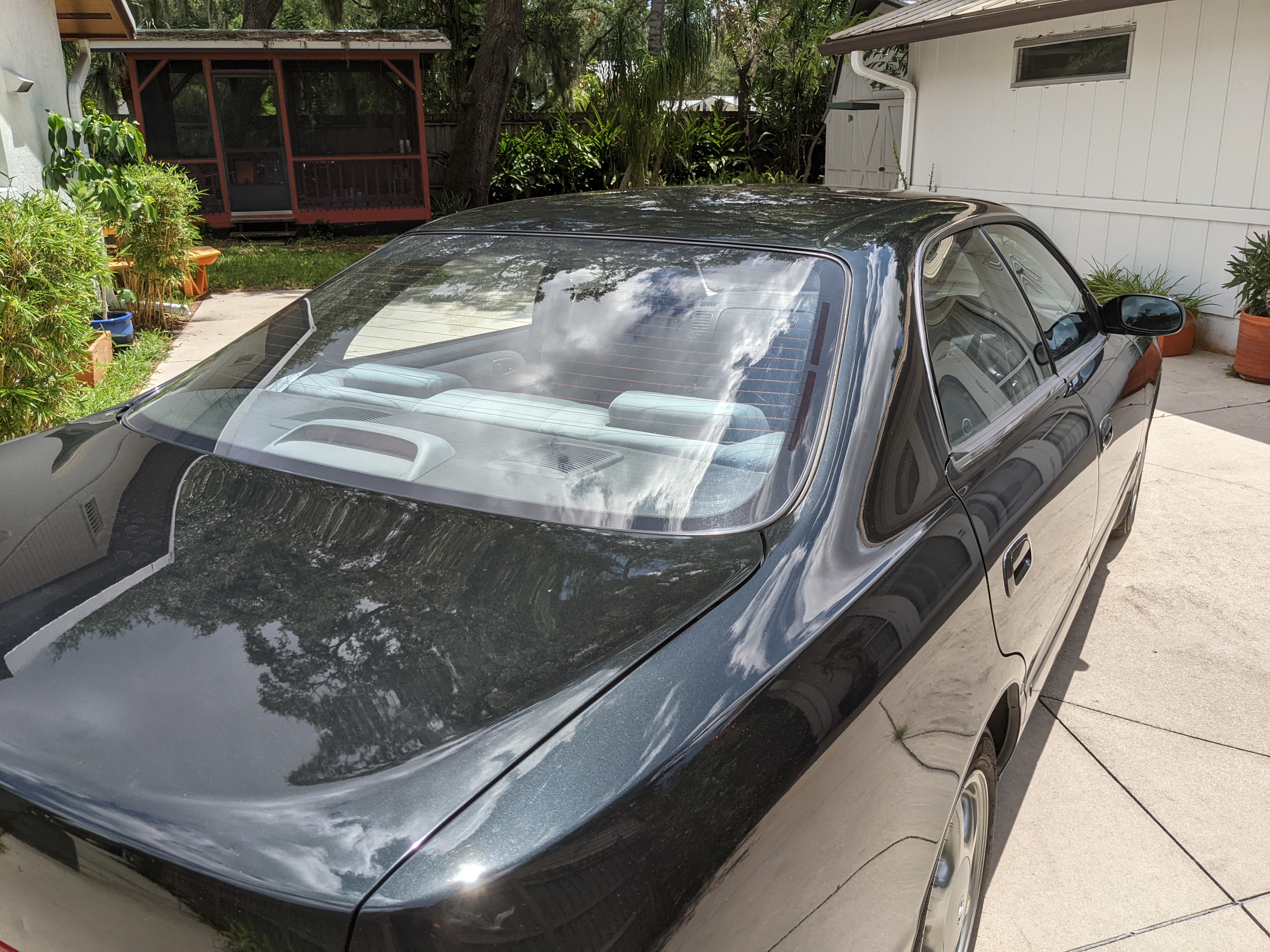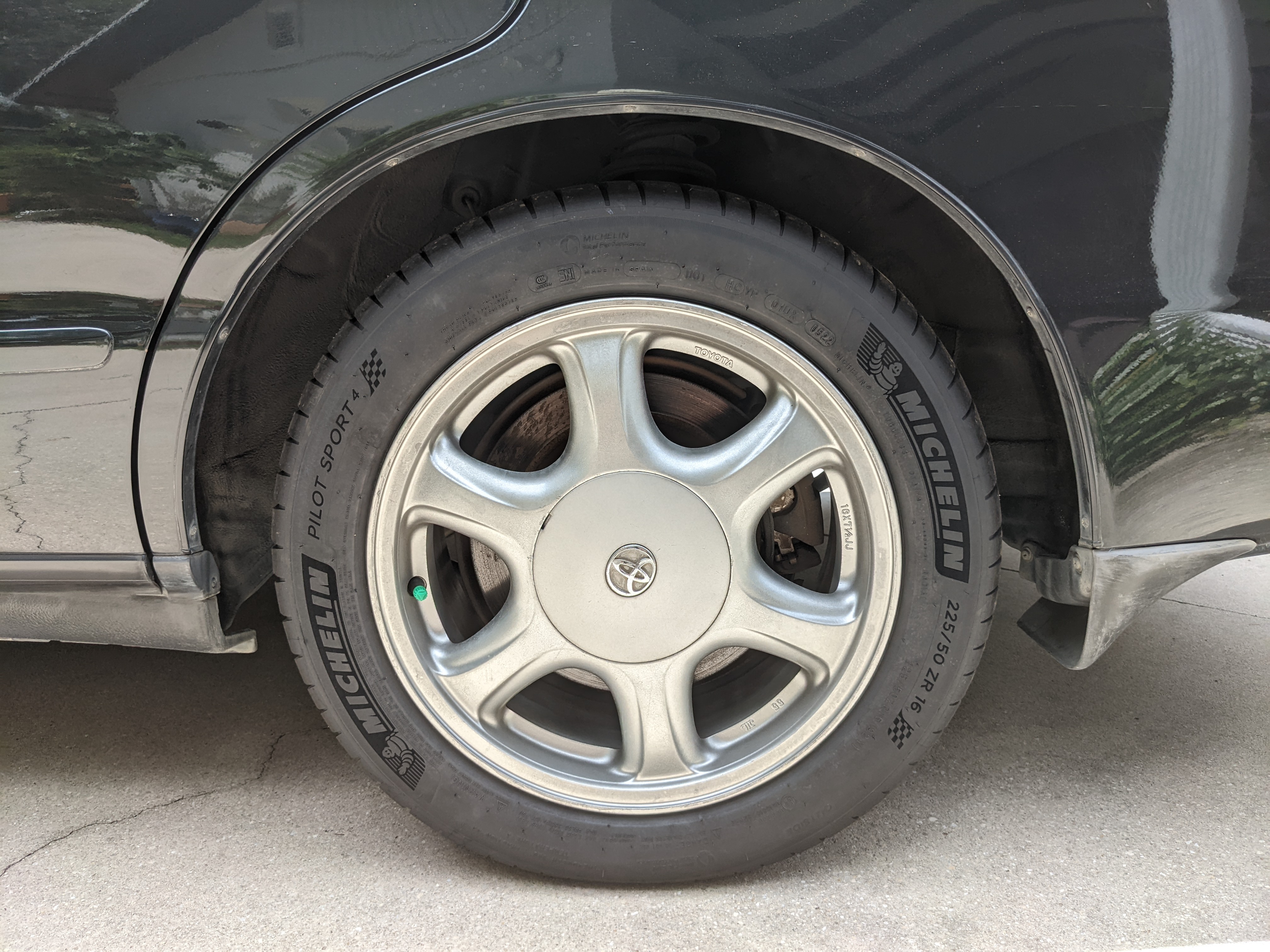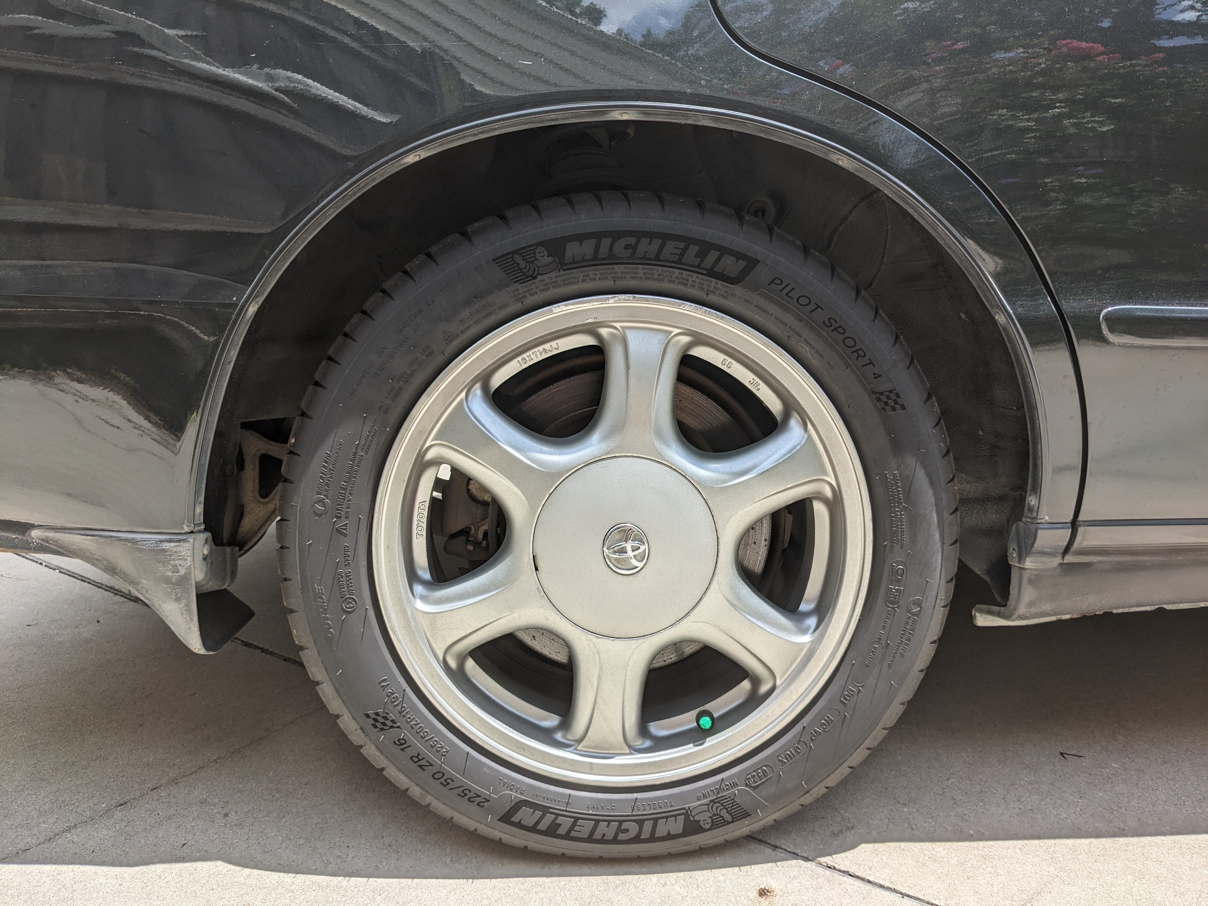 Alright so, enough history. This brings us to the car you see before you: a dark green, perfectly intact and completely stock, JZX90 Toyota Chaser Tourer V. "Tourer V" is the nameplate that would replace the "GT twin-turbo" with the advent of the X90 series cars, but denotes the highest performance variant all the same. Rated at 276 hp, which is the highest allowed at the time by Japanese law, and has been subsequently shown to be significantly lower than what the car actually produces, this car is quick. Power delivery is smooth, predictable, and when you really get on it, the turbo spool is really something. A long-geared transmission and limited-slip differential translate power cleanly and efficiently, and with a good set of tires (currently equipped with new Michelin Pilot Sport 4s), this car is, by all definitions, a sleeper. Additionally, both the 1JZ and 2JZ motors have been shown to have incredible power overhead, making them very popular for modification. Adding only a single turbo, a larger front mounted intercooler, bigger injectors, and a tune, most JZs will make nearly double stock horsepower numbers without opening up the engine or even breaking a sweat.