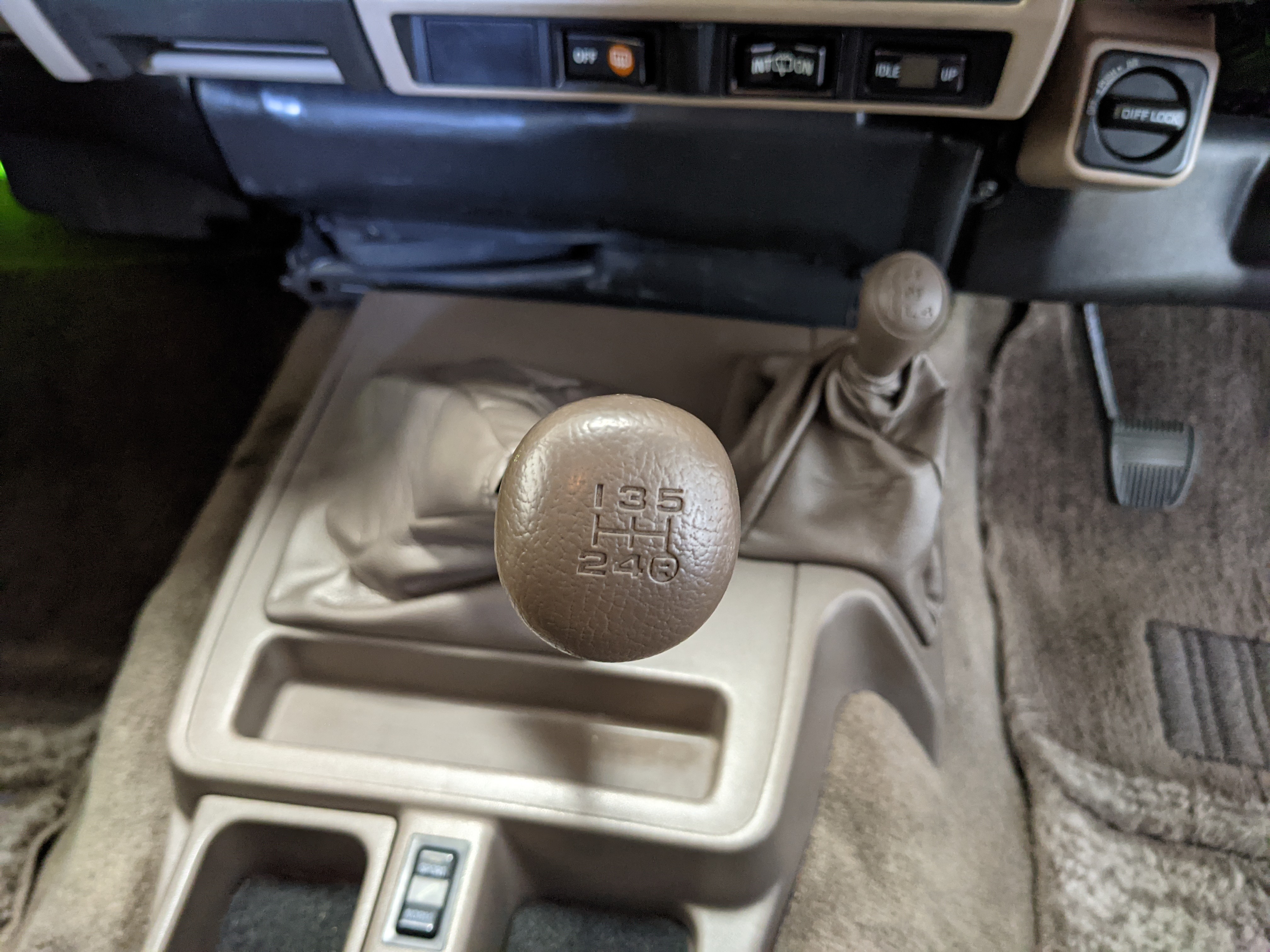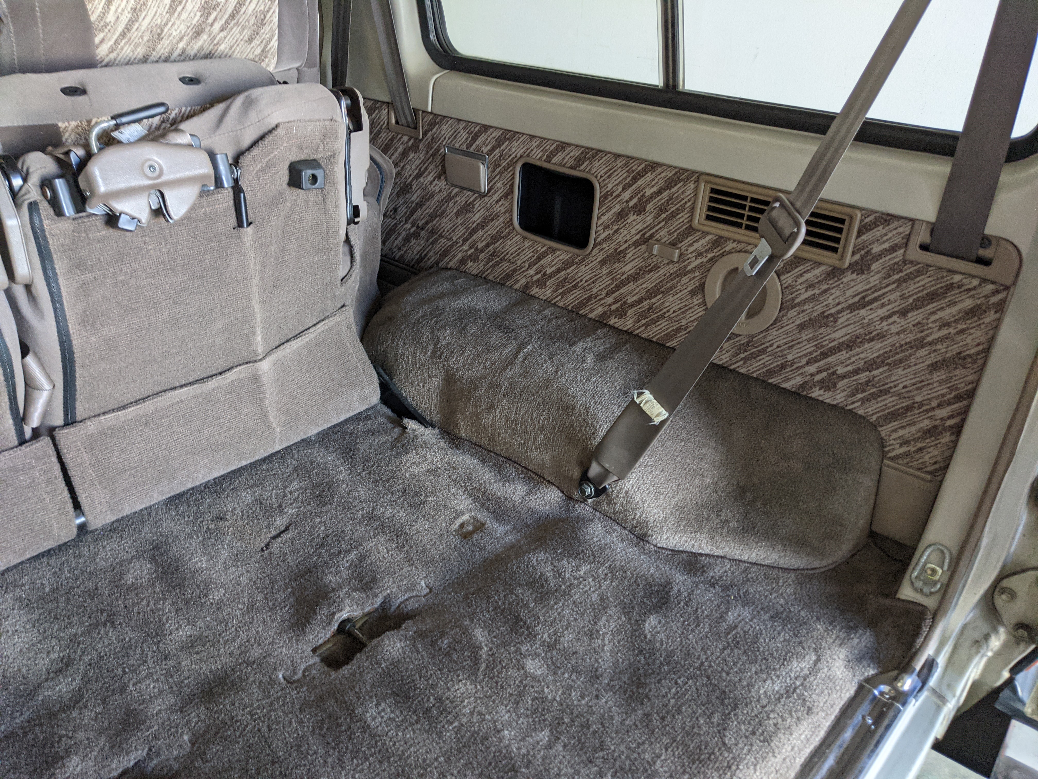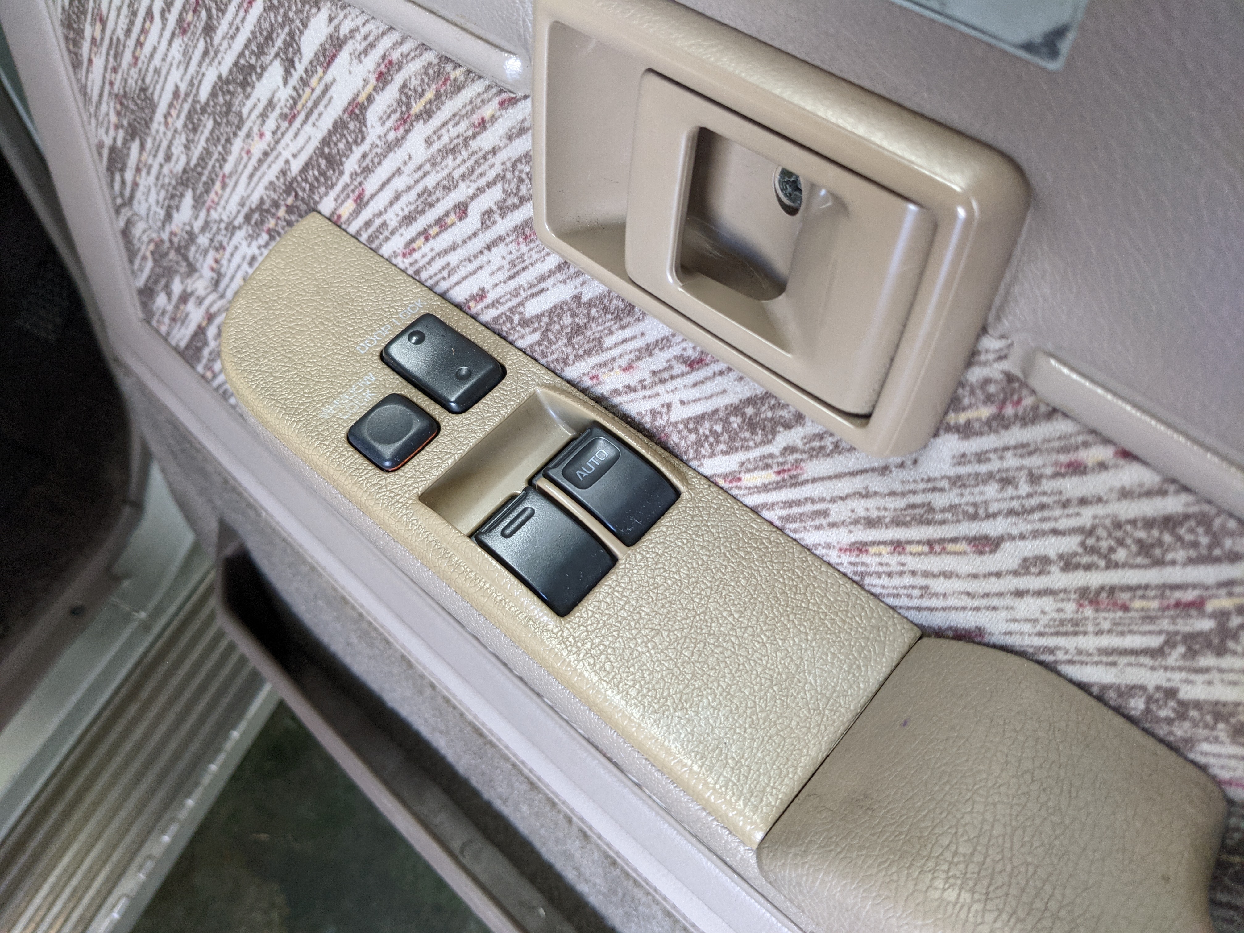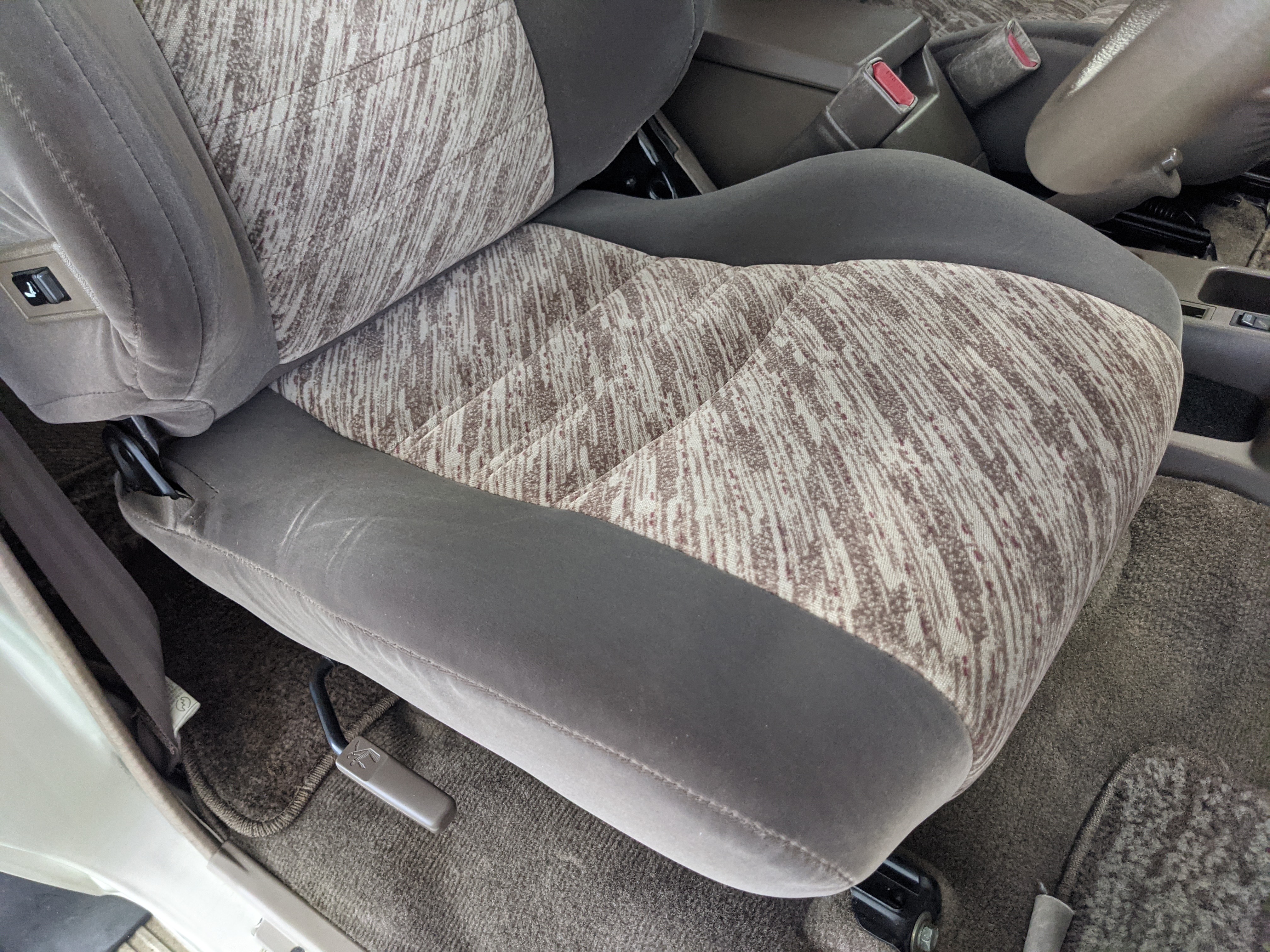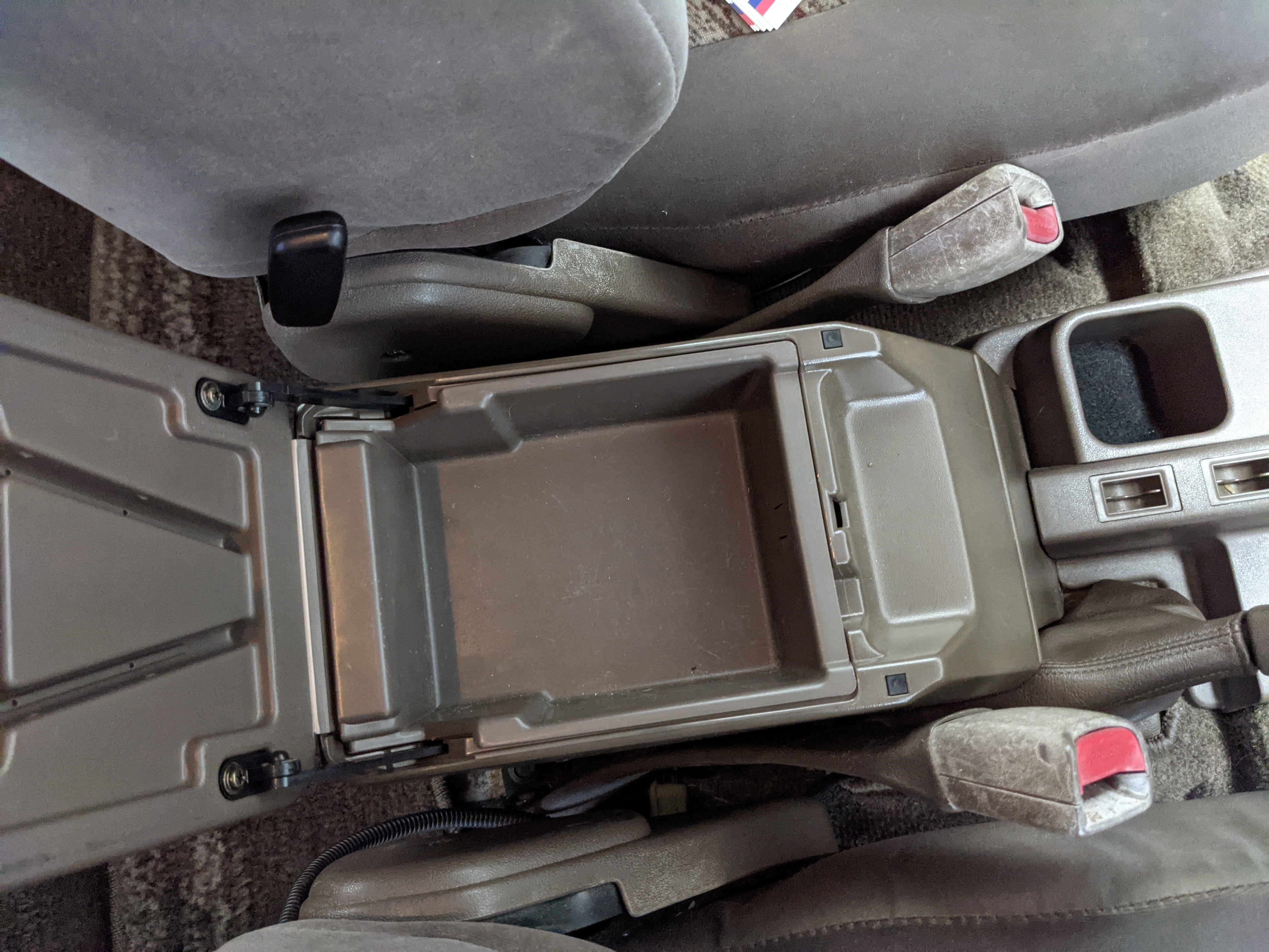 Inside is awash in what Toyota calls ‘sable’, but you or I would call it ‘beige’. That’s not a knock by the way, I find the interior of this Prado excellent to be enveloped in. Seating for 5 is what is listed, but that 5th person better be a small kid or they are going to hate riding with you. Power windows, power locks, 5 speed manual, diff lock switch and push button 4WD with lever-actuated low range. You do have to get out to lock your hubs, but nobody ever has anything bad to say about AISIN hubs. Air conditioning works perfectly, as does heat. Your stereo is a clean and simple Clarion M508, giving you all the musical connectivity you desire without throwing off the interior aesthetic. Speakers themselves have been upgraded at some point in the past and sound quite excellent. Previous owner was a non-smoker as evidenced by the spotless ashtray and cigarette lighter, also the complete lack of burns. Rear seats can fold forward giving you more cargo space when the time arrives.