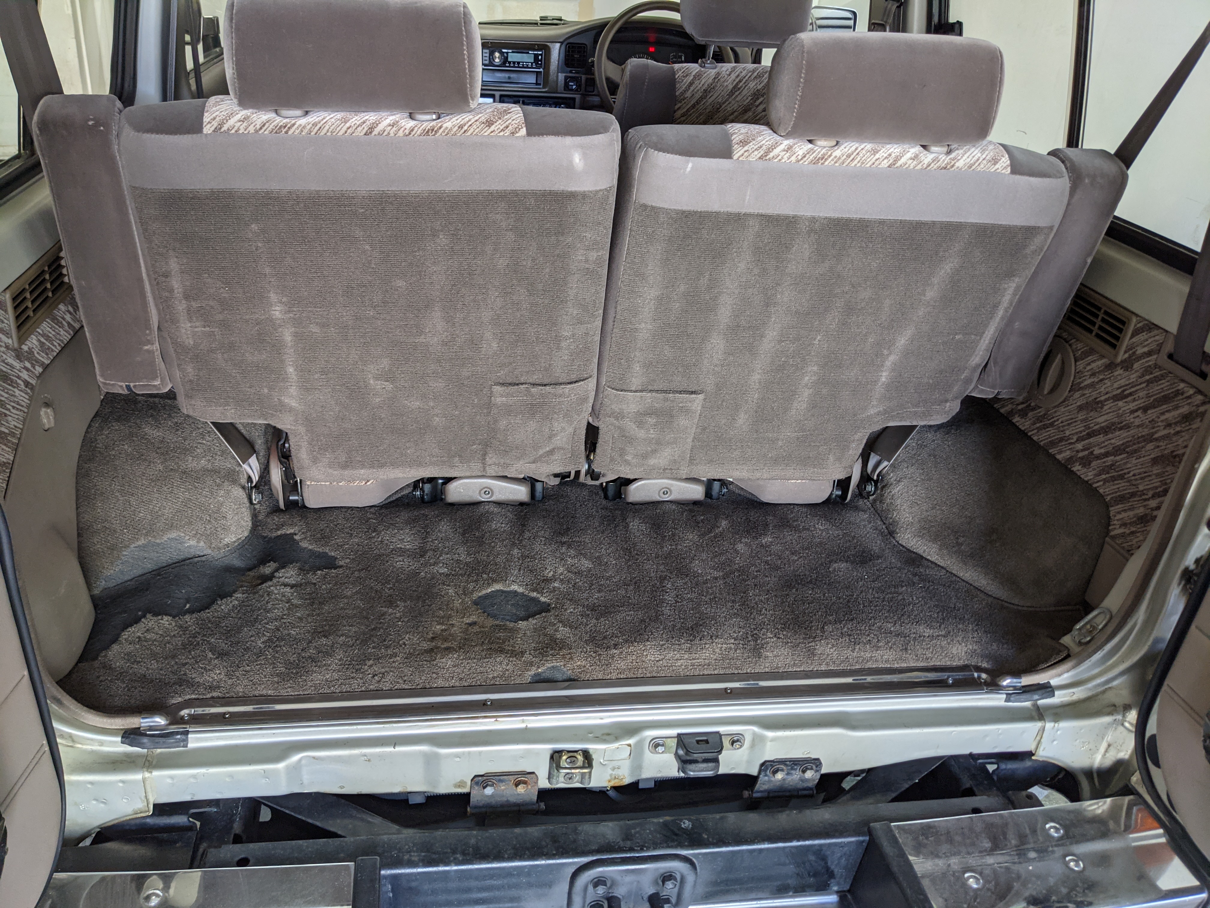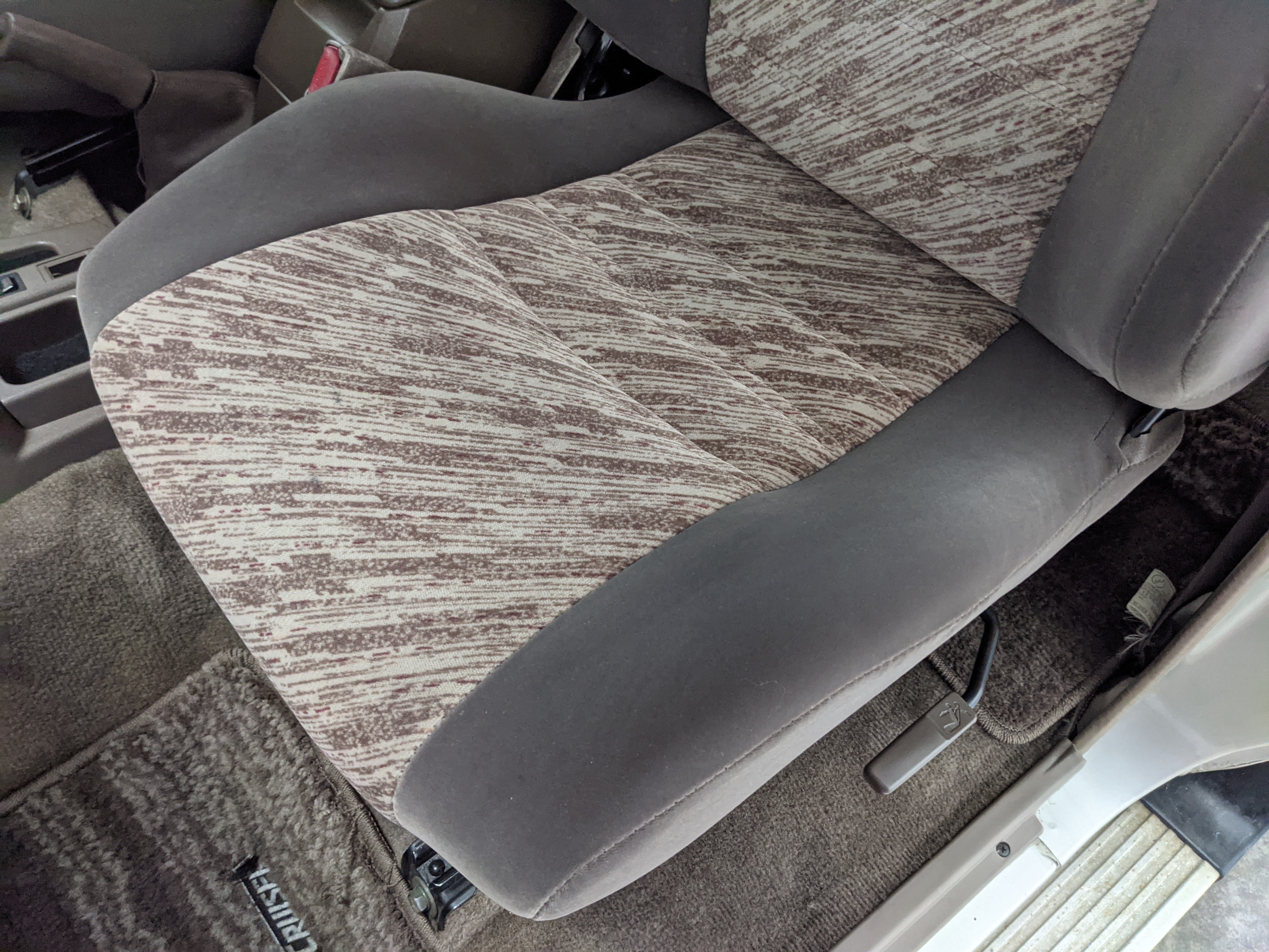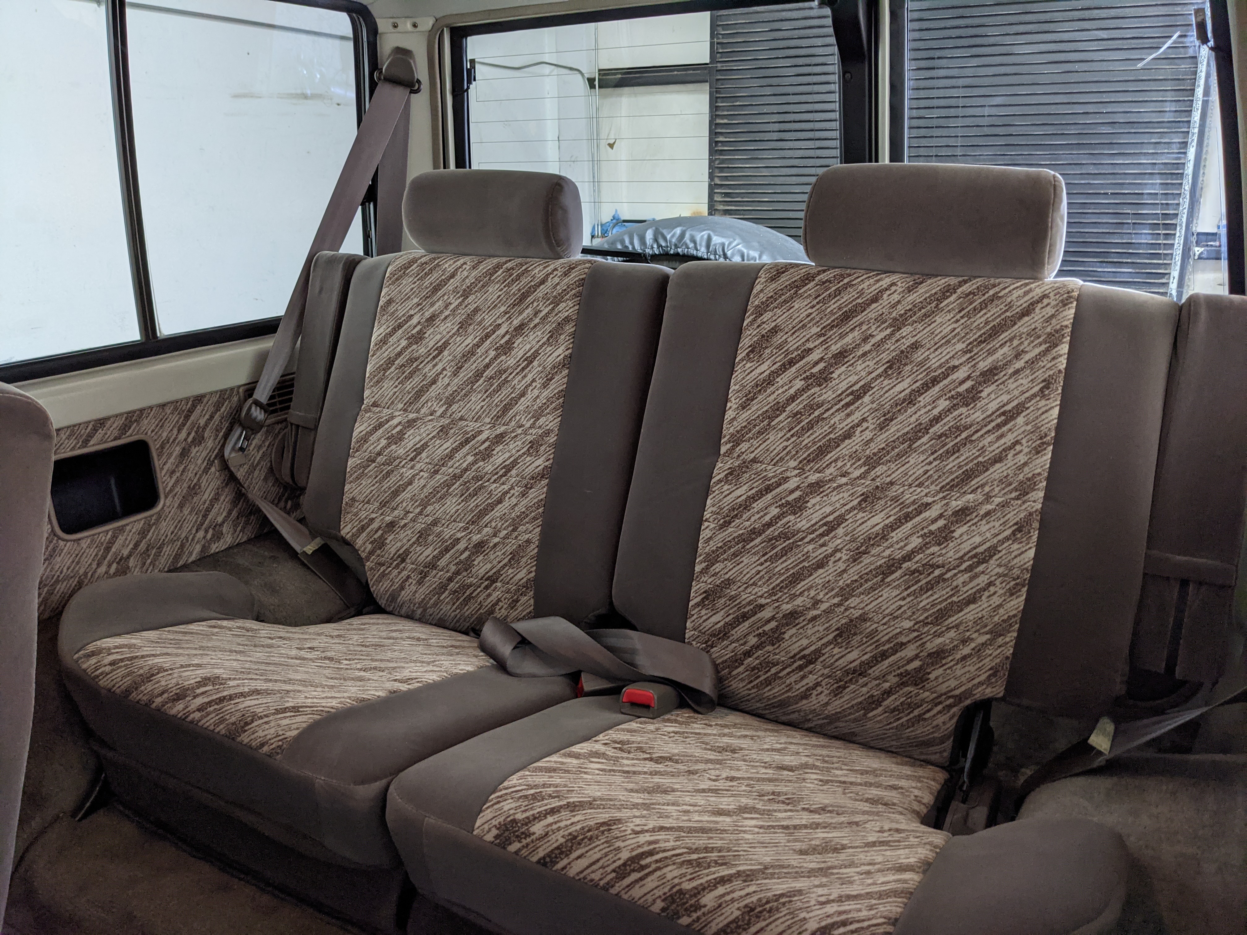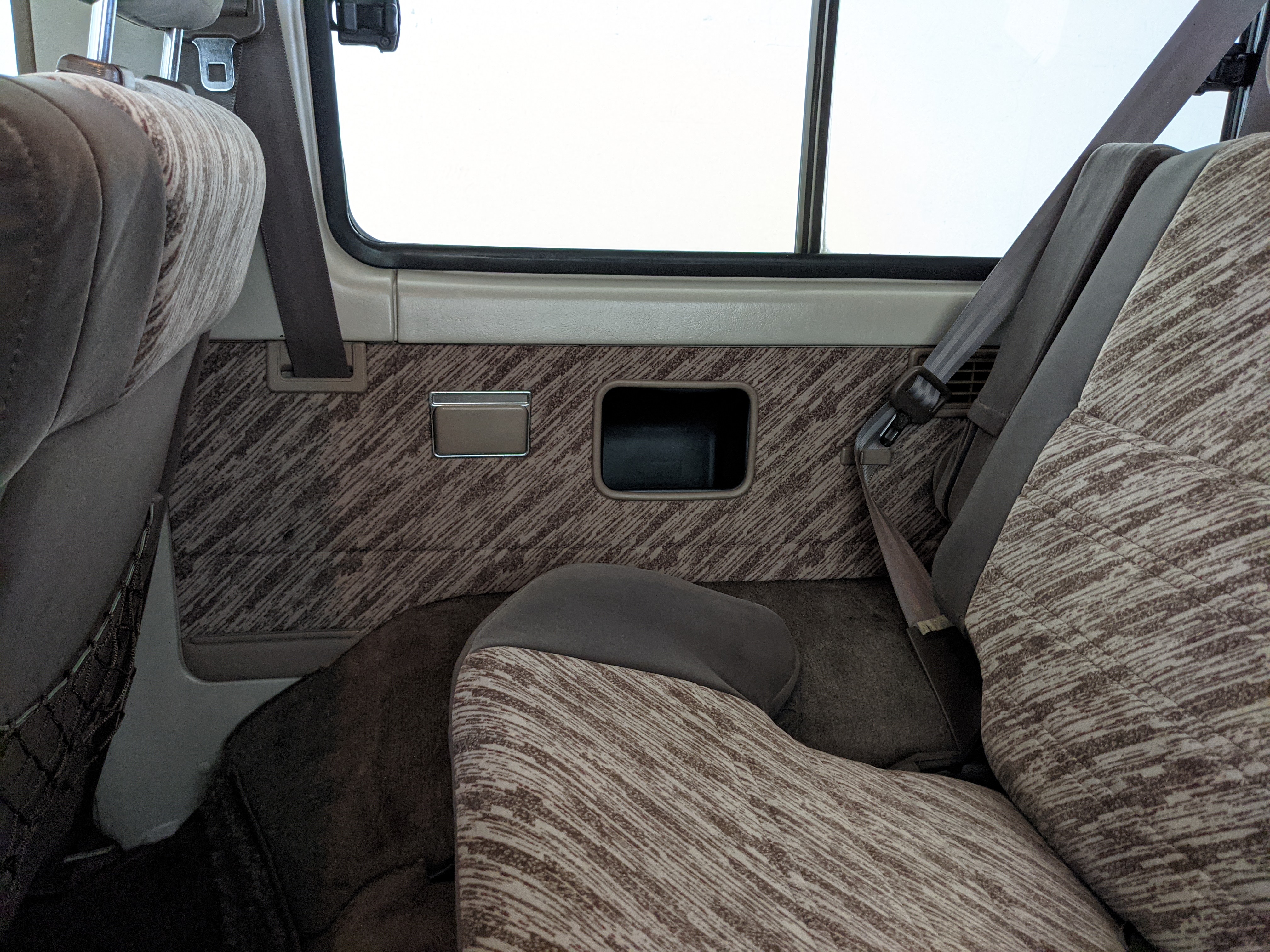 Inside is awash in what Toyota calls ‘sable’, but you or I would call it ‘beige’. That’s not a knock by the way, I find the interior of this Prado excellent to be enveloped in. Seating for 5 is what is listed, but that 5th person better be a small kid or they are going to hate riding with you. Power windows, power locks, 5 speed manual, diff lock switch and push button 4WD with lever-actuated low range. You do have to get out to lock your hubs, but nobody ever has anything bad to say about AISIN hubs. Air conditioning works perfectly, as does heat. Your stereo is a clean and simple Clarion M508, giving you all the musical connectivity you desire without throwing off the interior aesthetic. Speakers themselves have been upgraded at some point in the past and sound quite excellent. Previous owner was a non-smoker as evidenced by the spotless ashtray and cigarette lighter, also the complete lack of burns. Rear seats can fold forward giving you more cargo space when the time arrives.
